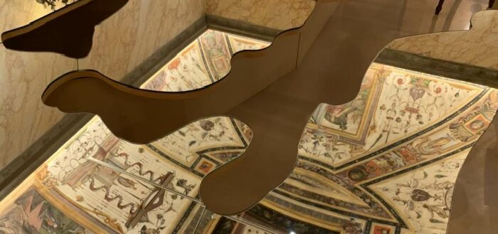 Palazzo Boncompagni, Bologna, 3 febbraio 3 giugno 2026. Testo e fotografia Vincenzo Battista. La sagoma dell’Italia che specchia e fa specchiare è forse il punto di caduta “dell’Infinito” di Pistoletto – il suo DNA...
