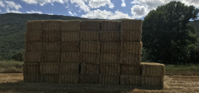 Dopo la trebbiatura, i totem nei campi della Conca aquilana.