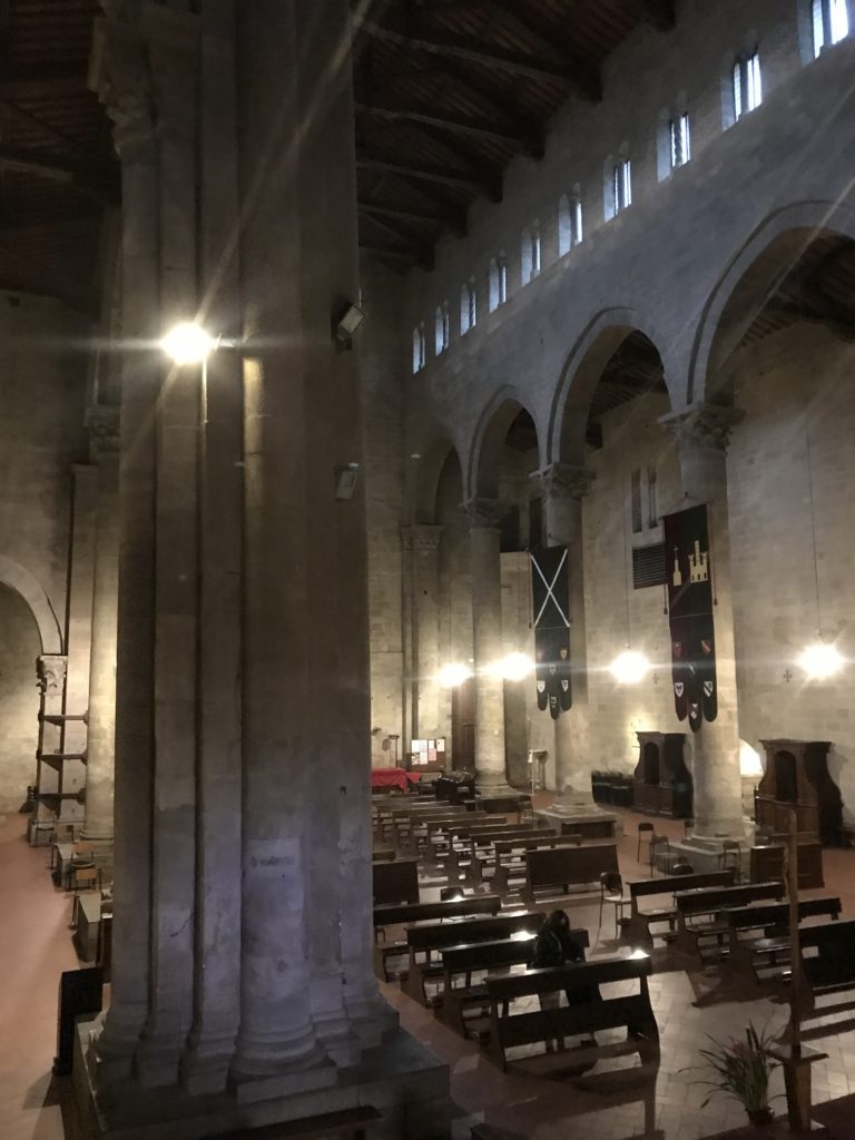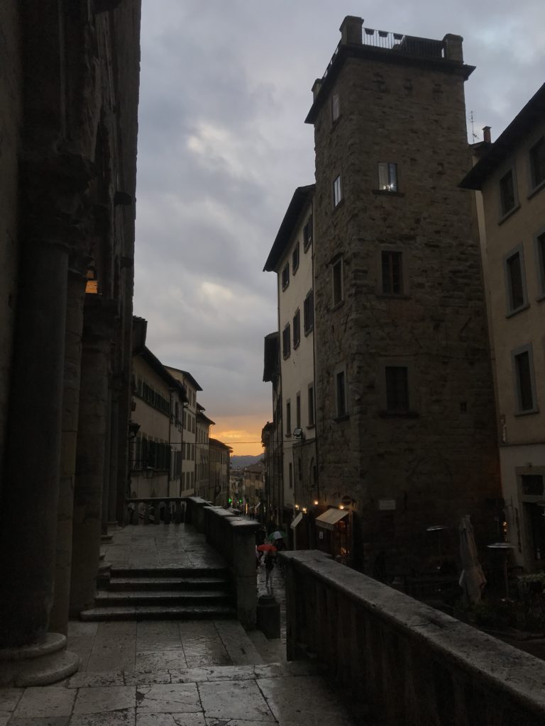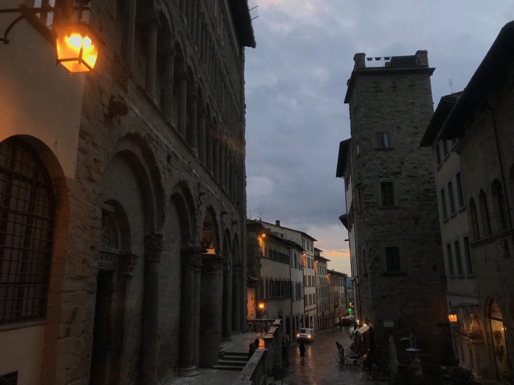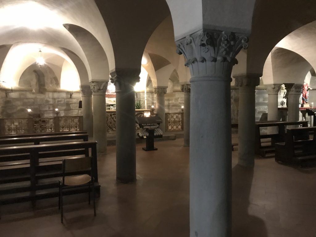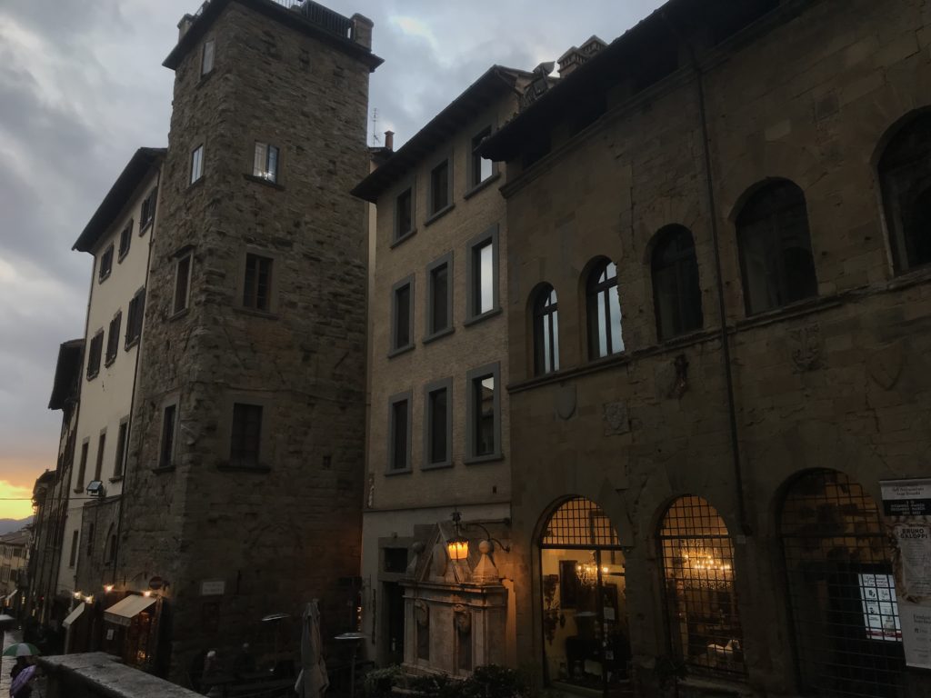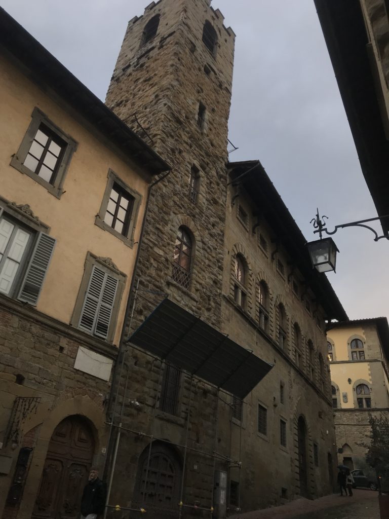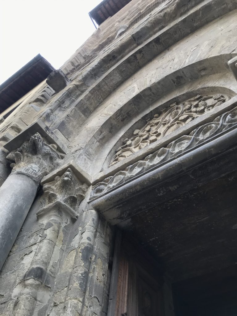 Architettura romanica, uno degli esempio in Italia più rilevanti nel panorama delle origini comunali e degli insediamenti religiosi dentro il borgo difensivo di Arezzo. Sull’asse viario un tempo Cassia Vetus, inizialmente sorta come chiesa battesimale, in un’are archeologica di impronta romana, tanto che le sei colonne di granito della facciata sono lì a testimoniare il recupero e il riuso. Riedificata nel XII secolo e rinnovata nel XIII , la chiesa di Santa Maria della Pieve di Arezzo mantiene il prospetto romanico con tre ordini di tre monofore (visibili dall’interno). La facciata si presenta con cinque arcate includendo i tre portali e i tre ordini sovrapposti alle aree logge: dodici al primo ordine, ventiquattro al secondo e trentadue al terzo. Nel 1330 l’ultimazione della torre campanaria, con cinque ordini di bifore aperta ai quattro lati. Nella lunetta centrale le allegorie dei dodici mesi con i lavoro agricoli praticati dalle genti del contado, gruppo scultoreo policromo. L’interno a tre navate, presbiterio e cripta e un abside semicircolare. Nell’altare centrale con inserti pittorici che Vasari realizzò per il sepolcro di famiglia. Rilevanti i capitelli presenti nella cripta che raffigurano anche teste di arieti e montoni: simboli del potere e della cultura armentizia, che forse ha commissionato la cripta intestandosi così il proprio logo e brand.