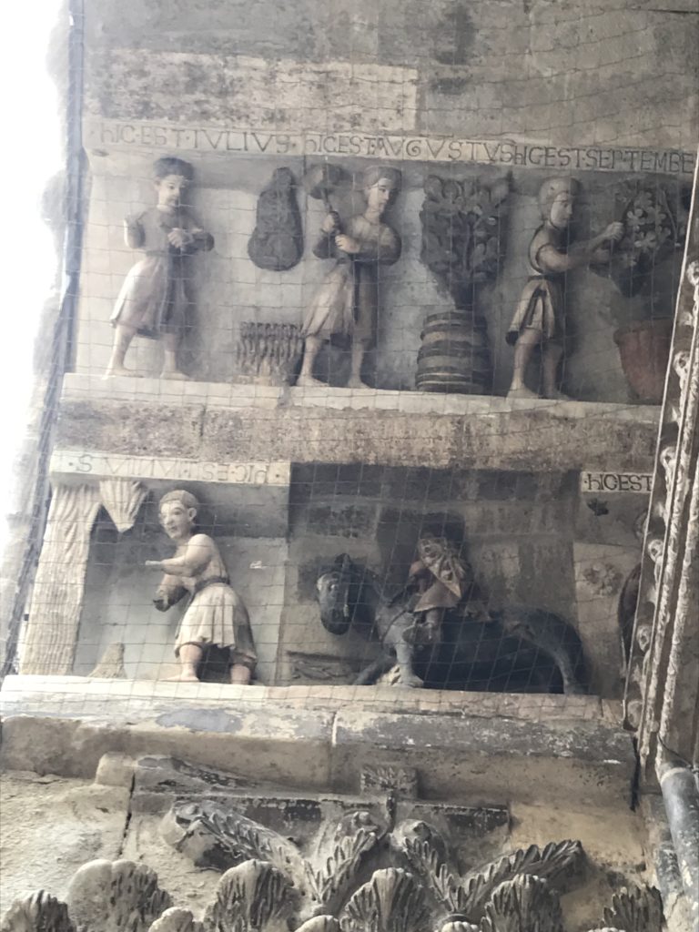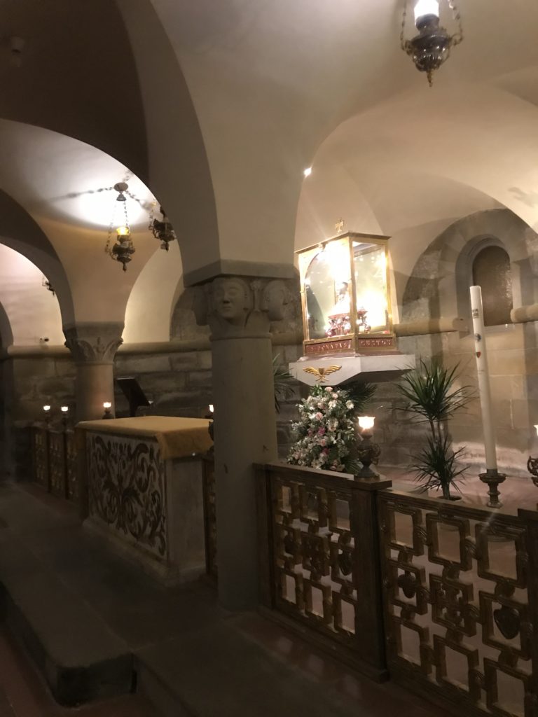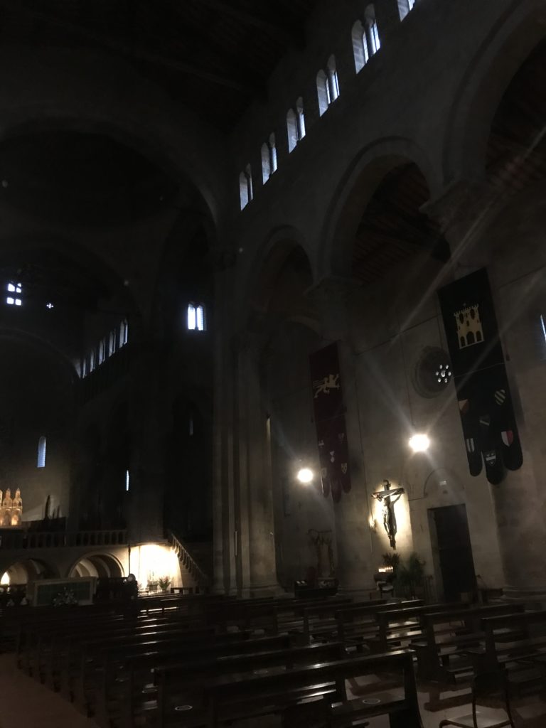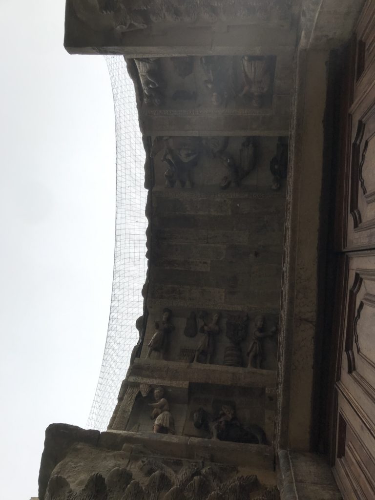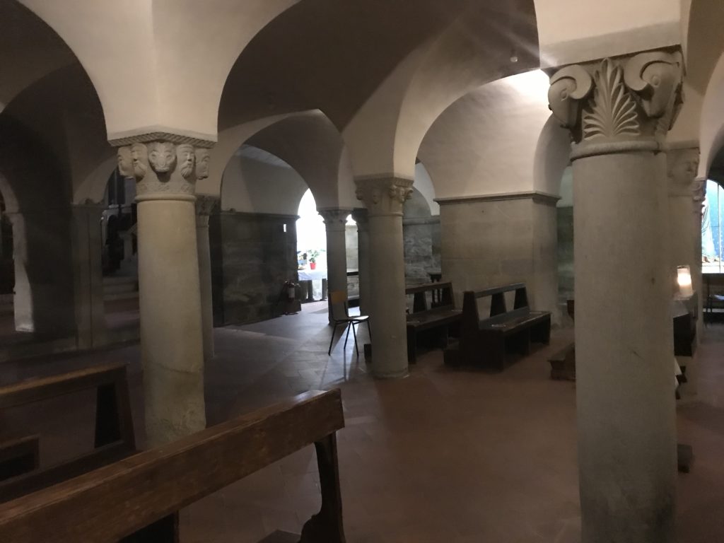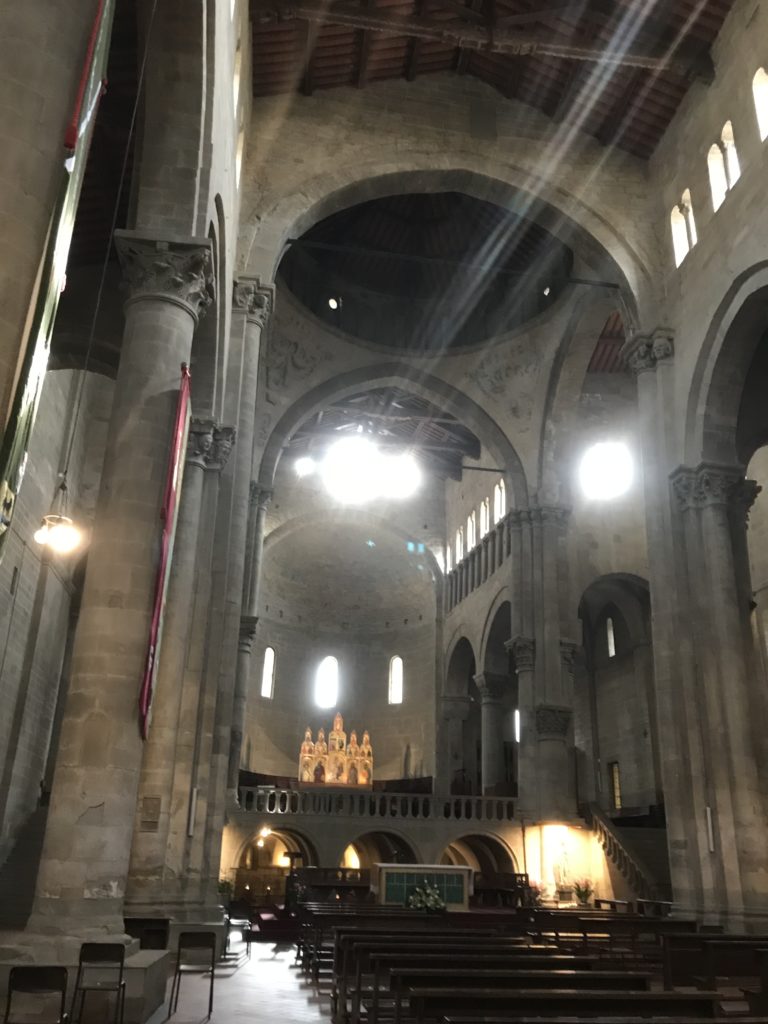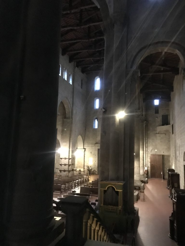 Architettura romanica, uno degli esempio in Italia più rilevanti nel panorama delle origini comunali e degli insediamenti religiosi dentro il borgo difensivo di Arezzo. Sull’asse viario un tempo Cassia Vetus, inizialmente sorta come chiesa battesimale, in un’are archeologica di impronta romana, tanto che le sei colonne di granito della facciata sono lì a testimoniare il recupero e il riuso. Riedificata nel XII secolo e rinnovata nel XIII , la chiesa di Santa Maria della Pieve di Arezzo mantiene il prospetto romanico con tre ordini di tre monofore (visibili dall’interno). La facciata si presenta con cinque arcate includendo i tre portali e i tre ordini sovrapposti alle aree logge: dodici al primo ordine, ventiquattro al secondo e trentadue al terzo. Nel 1330 l’ultimazione della torre campanaria, con cinque ordini di bifore aperta ai quattro lati. Nella lunetta centrale le allegorie dei dodici mesi con i lavoro agricoli praticati dalle genti del contado, gruppo scultoreo policromo. L’interno a tre navate, presbiterio e cripta e un abside semicircolare. Nell’altare centrale con inserti pittorici che Vasari realizzò per il sepolcro di famiglia. Rilevanti i capitelli presenti nella cripta che raffigurano anche teste di arieti e montoni: simboli del potere e della cultura armentizia, che forse ha commissionato la cripta intestandosi così il proprio logo e brand.