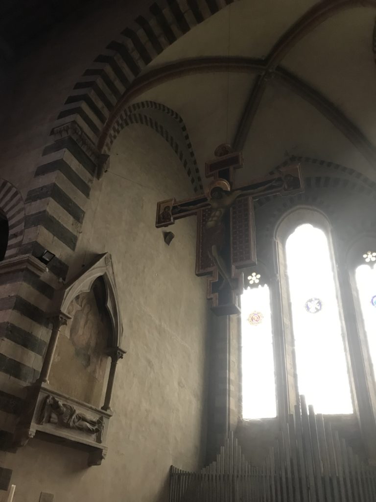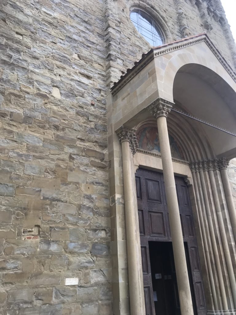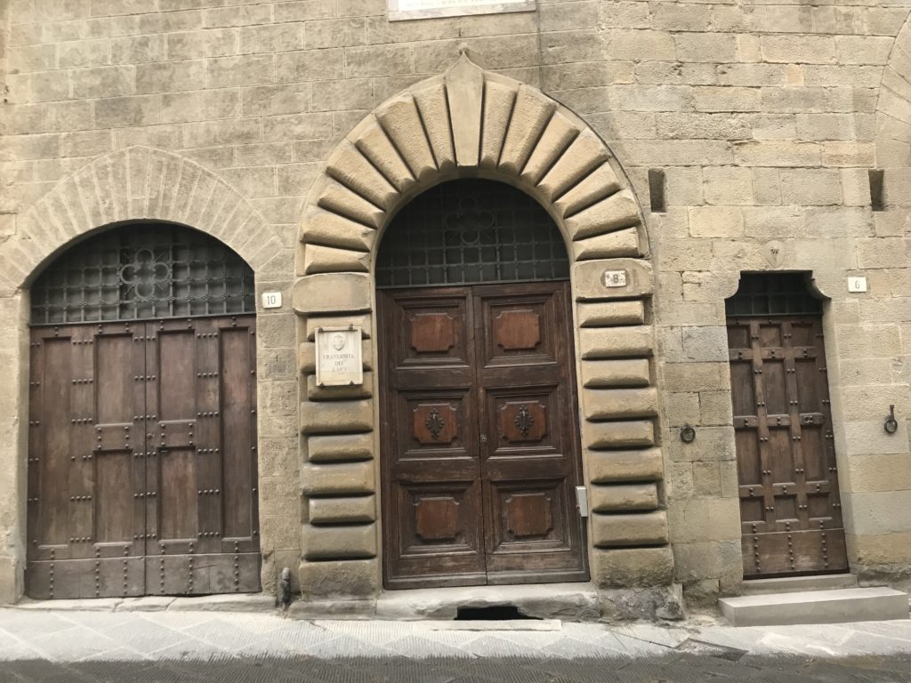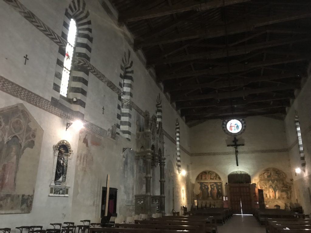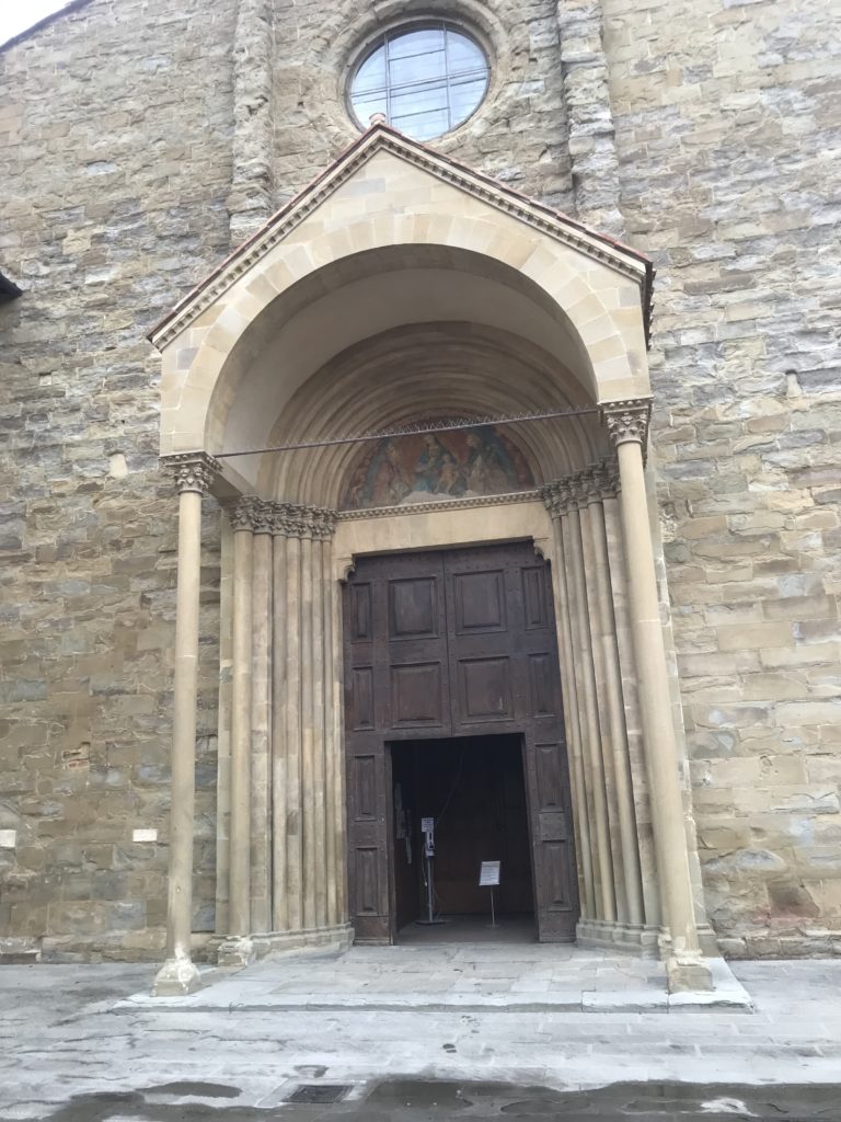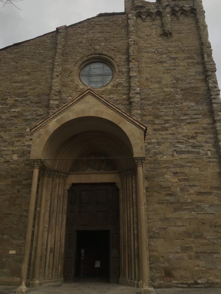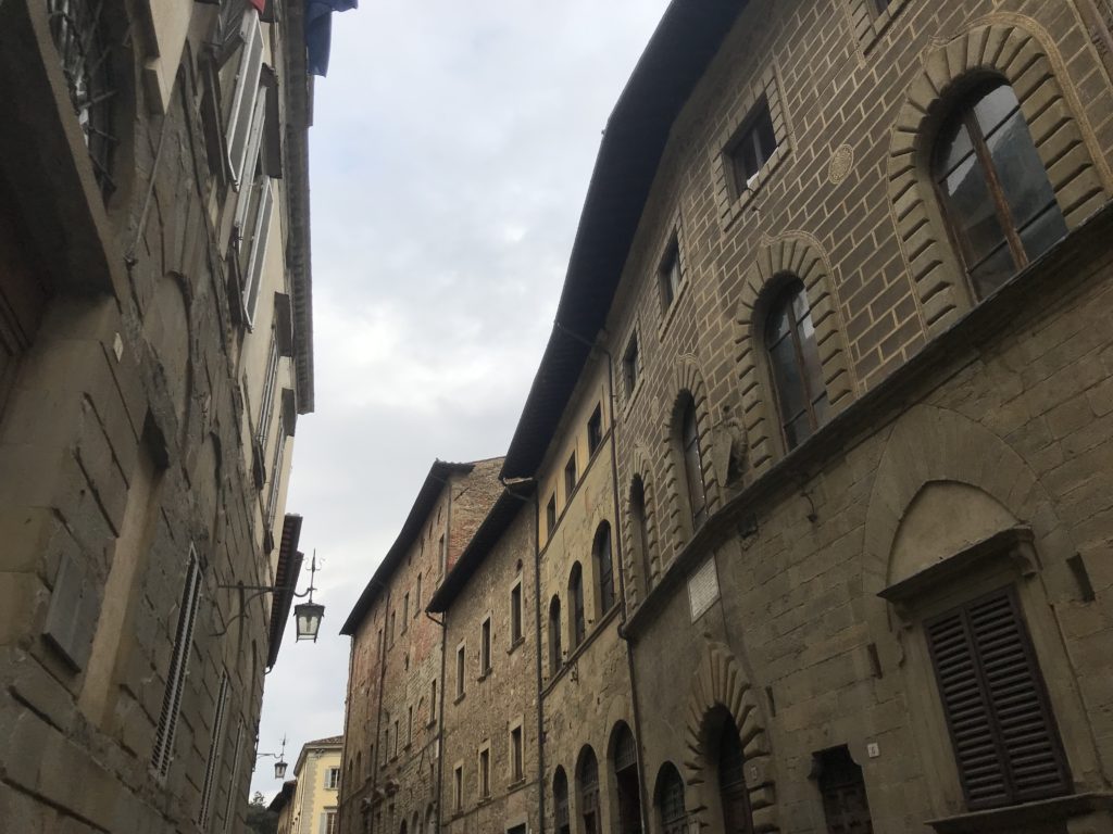 La prima cinta muraria, etrusca, risale al V secolo. Un quadrilatero rettangolare con un perimetro di circa due chilometri. Una seconda cinta muraria si rese necessaria con l’aumento della popolazione, questa volta di circa cinque chilometri. Divenuta romana, Arezzo ebbe la sua terza cinta muraria, “cinta laterizia”, con uno spesso di 4,30 metri. Plinio, Vitruvio e Livio citano la fortificazione e la sua possenza nei loro trattati. La quarta cinta muraria intorno al VII per la difesa dai Longobardi misurava circa 1600 metri. Nel XII secolo la quinta fortificazione perimetrale si estendeva per oltre due chilometri, e poi la sesta di tre chilometri sempre nel Medioevo. Tra il 1319 e il 1330 la settima linea difensiva occupava circa cinque chilometri. Dopo decenni di assedi e devastazioni, ribellioni contro il potere di Firenze si ebbe la rovina della cortina protettiva, tanto che la città resto così a lungo indifesa. Nel 1538 Cosimo I dé Medici rese il borgo di Arezzo difensivo con alte torri e merli, robusti terrapieni. Nel 1800 subì gravi danneggiamenti dalle mine delle truppe francesi. La Basilica di San Domenico, d’impronta romanica, fu costruita nel 1275. La facciata è asimmetrica con il campanile a vela. L’interno con una sola navata, 12 finestre monofore la cui distanza diminuisce avvicinandosi all’abside con una percezione di profondità prospettica e illuminazione naturale orientata anche sull’altare. Nell’abside il Crocifisso di Cimabue, il sepolcro di Gregorio X in un arco ogivale trilobato, oltre alle opere affrescate trecentesche, sculture e la preziosità degli arredi. Nel 1276, la Basilica ospitò il primo Conclave ricordato nella storia della Chiesa.