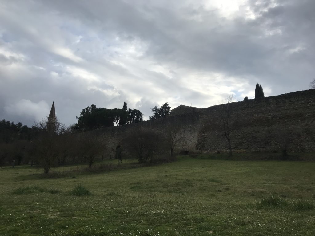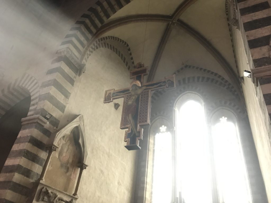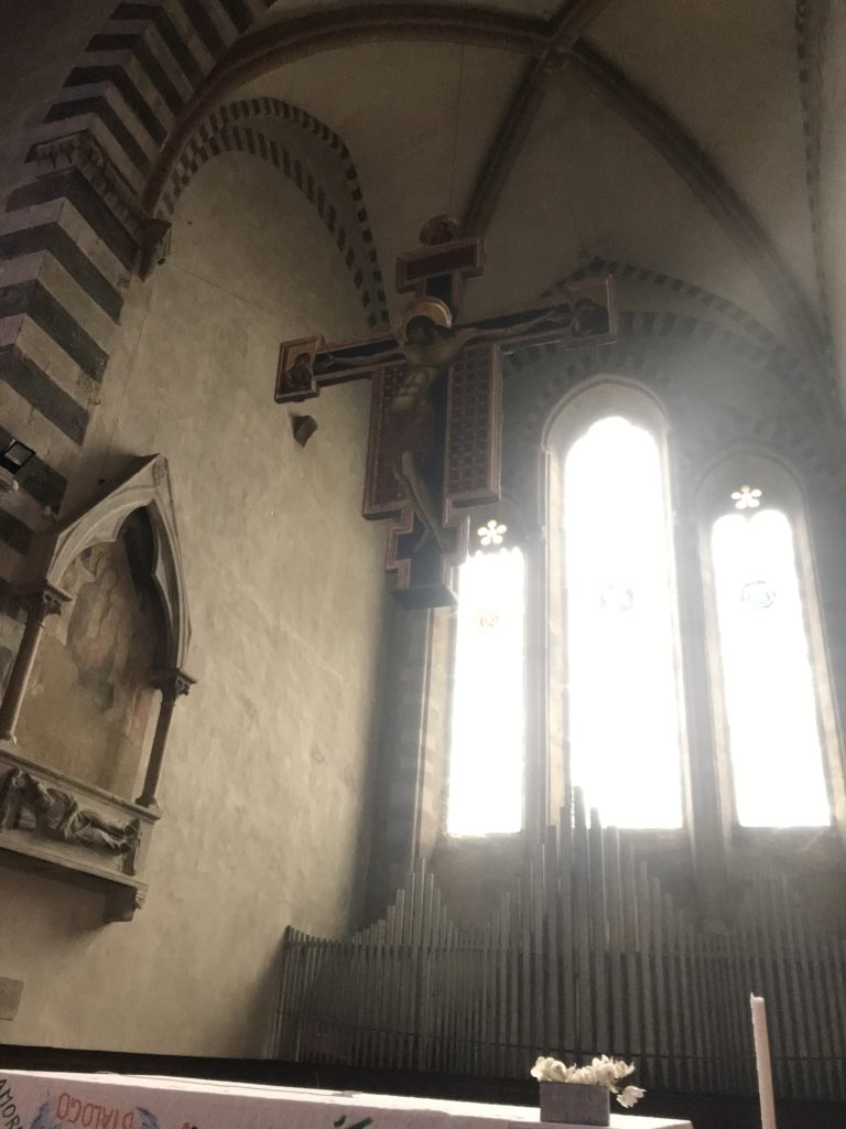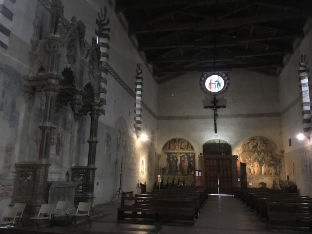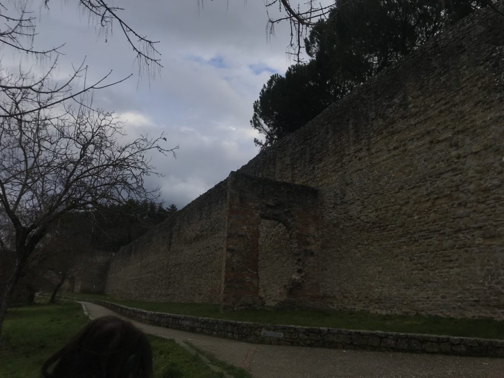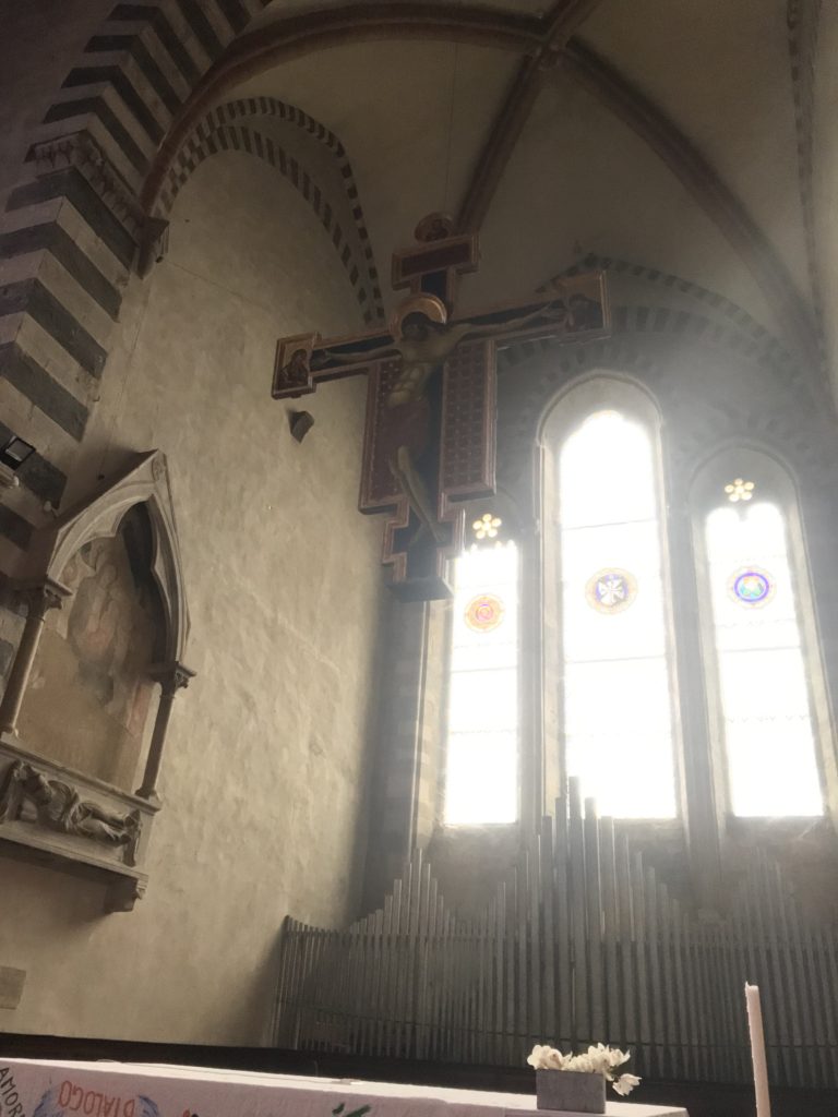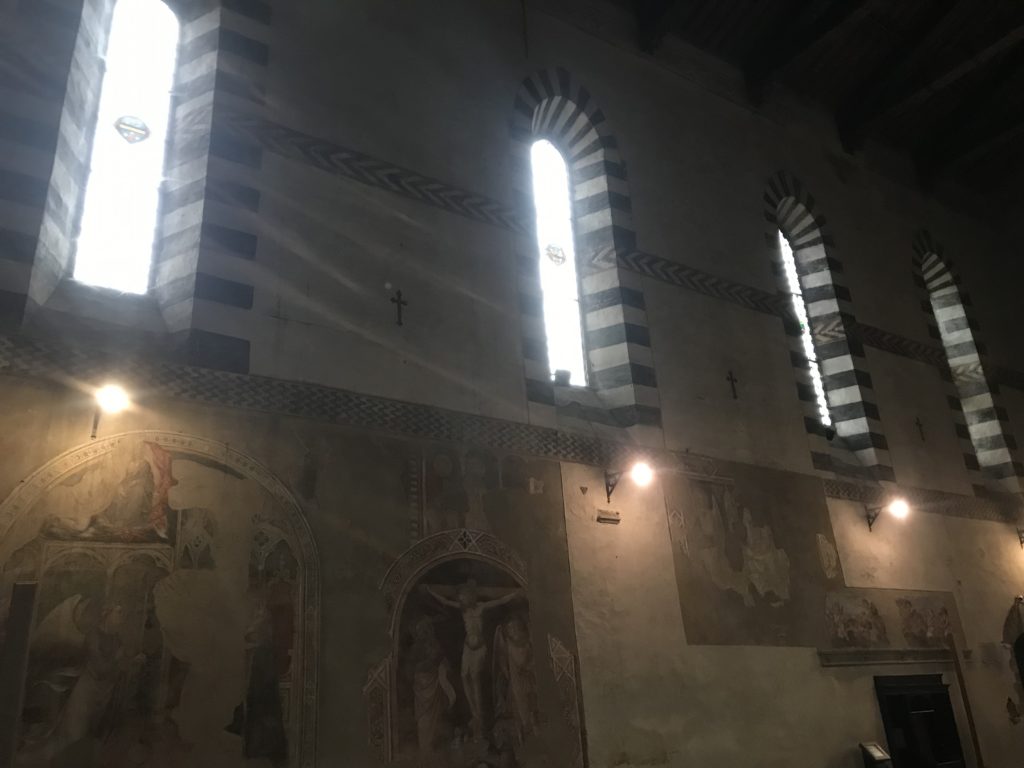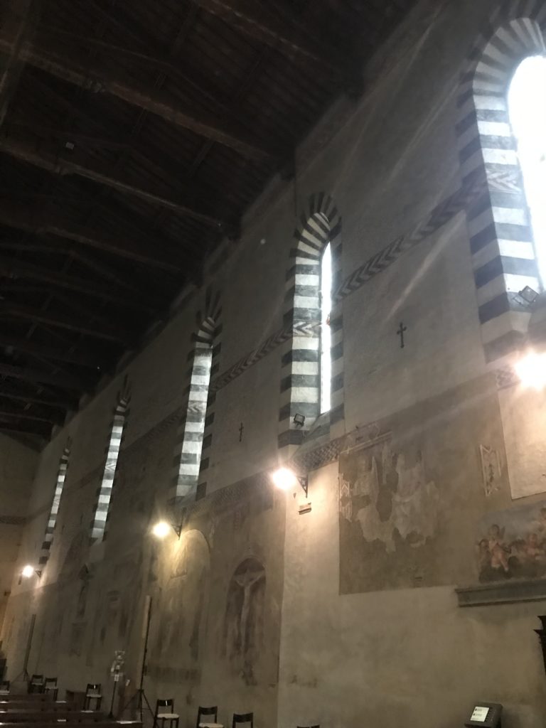 La prima cinta muraria, etrusca, risale al V secolo. Un quadrilatero rettangolare con un perimetro di circa due chilometri. Una seconda cinta muraria si rese necessaria con l’aumento della popolazione, questa volta di circa cinque chilometri. Divenuta romana, Arezzo ebbe la sua terza cinta muraria, “cinta laterizia”, con uno spesso di 4,30 metri. Plinio, Vitruvio e Livio citano la fortificazione e la sua possenza nei loro trattati. La quarta cinta muraria intorno al VII per la difesa dai Longobardi misurava circa 1600 metri. Nel XII secolo la quinta fortificazione perimetrale si estendeva per oltre due chilometri, e poi la sesta di tre chilometri sempre nel Medioevo. Tra il 1319 e il 1330 la settima linea difensiva occupava circa cinque chilometri. Dopo decenni di assedi e devastazioni, ribellioni contro il potere di Firenze si ebbe la rovina della cortina protettiva, tanto che la città resto così a lungo indifesa. Nel 1538 Cosimo I dé Medici rese il borgo di Arezzo difensivo con alte torri e merli, robusti terrapieni. Nel 1800 subì gravi danneggiamenti dalle mine delle truppe francesi. La Basilica di San Domenico, d’impronta romanica, fu costruita nel 1275. La facciata è asimmetrica con il campanile a vela. L’interno con una sola navata, 12 finestre monofore la cui distanza diminuisce avvicinandosi all’abside con una percezione di profondità prospettica e illuminazione naturale orientata anche sull’altare. Nell’abside il Crocifisso di Cimabue, il sepolcro di Gregorio X in un arco ogivale trilobato, oltre alle opere affrescate trecentesche, sculture e la preziosità degli arredi. Nel 1276, la Basilica ospitò il primo Conclave ricordato nella storia della Chiesa.