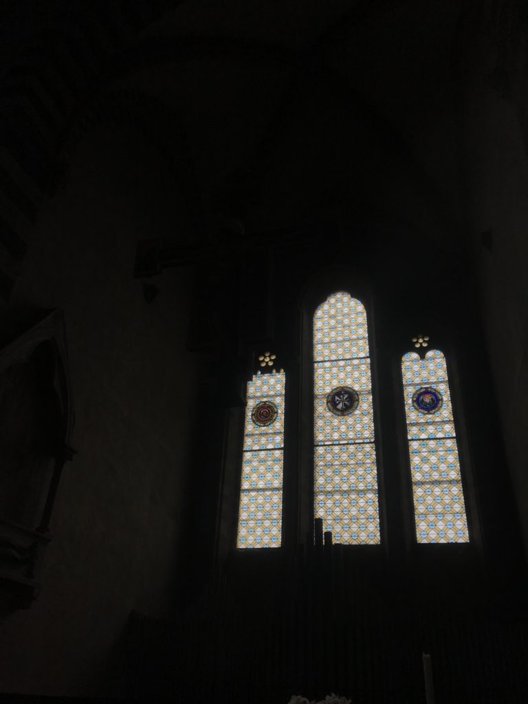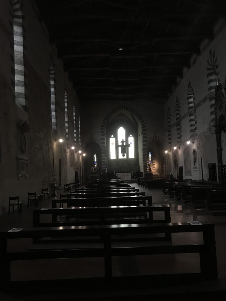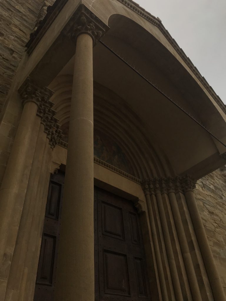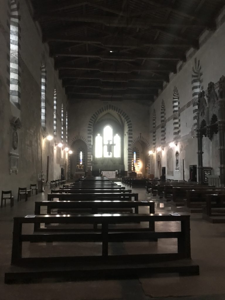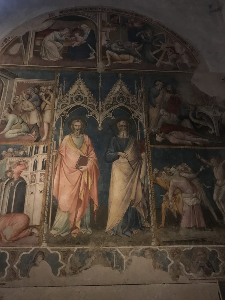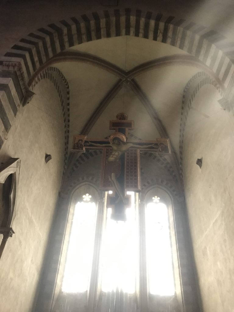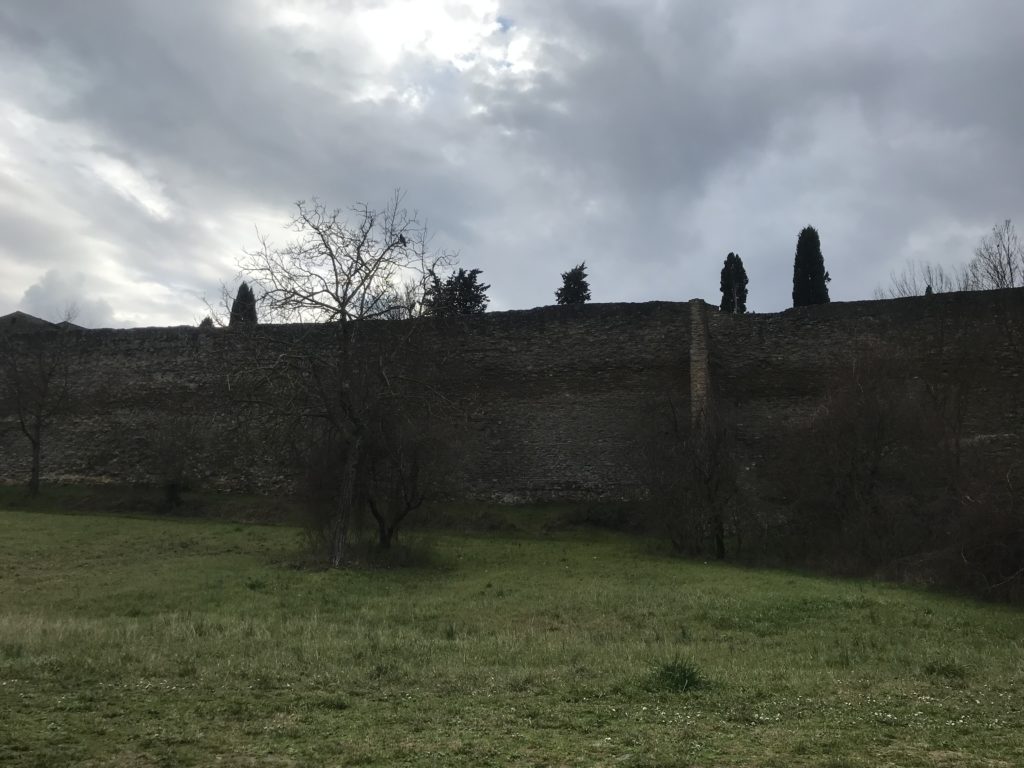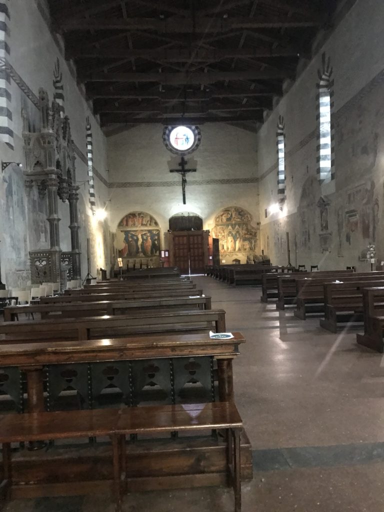 La prima cinta muraria, etrusca, risale al V secolo. Un quadrilatero rettangolare con un perimetro di circa due chilometri. Una seconda cinta muraria si rese necessaria con l’aumento della popolazione, questa volta di circa cinque chilometri. Divenuta romana, Arezzo ebbe la sua terza cinta muraria, “cinta laterizia”, con uno spesso di 4,30 metri. Plinio, Vitruvio e Livio citano la fortificazione e la sua possenza nei loro trattati. La quarta cinta muraria intorno al VII per la difesa dai Longobardi misurava circa 1600 metri. Nel XII secolo la quinta fortificazione perimetrale si estendeva per oltre due chilometri, e poi la sesta di tre chilometri sempre nel Medioevo. Tra il 1319 e il 1330 la settima linea difensiva occupava circa cinque chilometri. Dopo decenni di assedi e devastazioni, ribellioni contro il potere di Firenze si ebbe la rovina della cortina protettiva, tanto che la città resto così a lungo indifesa. Nel 1538 Cosimo I dé Medici rese il borgo di Arezzo difensivo con alte torri e merli, robusti terrapieni. Nel 1800 subì gravi danneggiamenti dalle mine delle truppe francesi. La Basilica di San Domenico, d’impronta romanica, fu costruita nel 1275. La facciata è asimmetrica con il campanile a vela. L’interno con una sola navata, 12 finestre monofore la cui distanza diminuisce avvicinandosi all’abside con una percezione di profondità prospettica e illuminazione naturale orientata anche sull’altare. Nell’abside il Crocifisso di Cimabue, il sepolcro di Gregorio X in un arco ogivale trilobato, oltre alle opere affrescate trecentesche, sculture e la preziosità degli arredi. Nel 1276, la Basilica ospitò il primo Conclave ricordato nella storia della Chiesa.