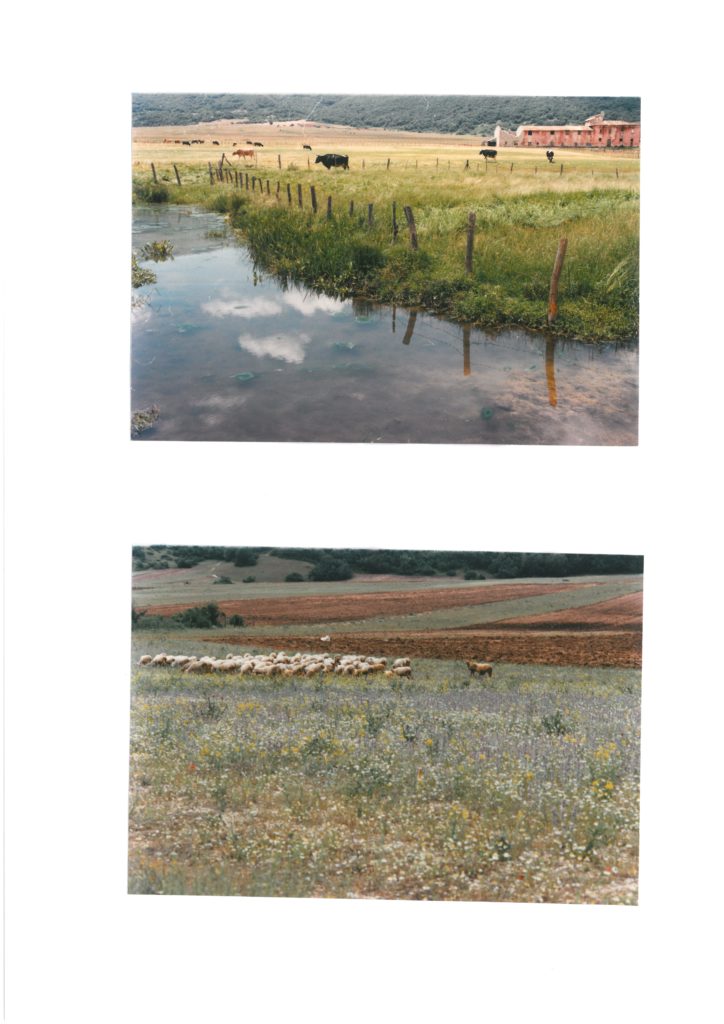 C’era un pastore a Cascina che aveva la moglie ad Antrodoco. Si sussurrava che tutti o giorni ammazzava una pecora e la buttava nell’inghiottitoio di Palanzano (piano contiguo a quello di Cascina) e la pecora, passando sotto il monte Giano, finiva ad Antrodoco dove la moglie la prendeva dal torrente che riemengeva in superfice dalle viscere della montagna. Un giorno, la moglie, ad Antrodoco (in località Sigillo) al posto della pecora, prese dal torrente il bastone e il cappello del marito trascinato dalle acque. Intuendo cosa fosse accaduto, piangeva e diceva.” L’acqua cascinese dolce era e amara mi si fece”. Dopo il bastone e il cappello, seguì anche il corpo del pastore morto. Il padrone del gregge si era accorto del furto quotidiano causato dal pastore ed aveva utilizzato l’inghiottitoio di Palanzano, ma per un altro scopo. Gli elementi fisici, i luoghi descritti, a cui fa riferimento questo racconto di narrativa orale fantastica ci sono, esistono, e realmente possono essere individuati, e anche compresi, pur sempre restando nell’ambito di una rappresentazione metastorica (non sovrapponendo la storia, permane costante nel fluire di questa) che la comunità, nell’articolato racconto popolare, fa di sé. Mentre la tradizione orale che l’ha “conservata e amministrata”, in questo bacino geografico di Cascina risponde ad una “memoria lunga” della gente che viveva il paesaggio, “guardava la natura” e ne metabolizzava gli elementi fondanti lo stesso territorio: l’acqua, le sorgenti, l’inghiottitoio visto come una sciagura perché nascondeva per sempre l’acqua, risorsa fondamentale per la comunità locale; il lavoro di pastore salariato, la transumanza nella Campagna romana, gli aspri conflitti con gli armentari; la montagna luogo mitico per eccellenza dei briganti, ed accadimenti prodigiosi; le fiere e i mercati che si svolgevano nel versante opposto, ad Antrodoco, raggiunto dopo molte are a piedi. La drammatizzazione infine, di questi elementi concludeva il racconto popolare, dando valore autoctono a questa area montana dell’Abruzzo appenninico interno che confina con il Lazio. Il territorio geografico è il piano di Cascina, situato a 20 km nord- ovest dell’Aquila. Esteso piano coltivato ed area di allevamento, segna, con i rilievi, il confine settentrionale con la provincia di Rieti ad ovest, con il monte Giano (1820 m.) e Calvo (1898 m.). Le cavità ellittiche di Cascina a Palanzano ricadenti nel territorio comunale di Cagnano Amiterno e L’Aquila, a quota 1000 metri, disegnano una mappa di particolare caratterizzazione ambientale, di una unicità di sistemi: boschi di faggio secolari, acero e carpino; l’area naturalistica di Macchialunga (1246 m) con il bosco di betulle vincolato a bene naturalistico ambientale; l’inghiottitoio di Palanzano, sorgenti corsi d’acqua ed aree acquitrinose, rafforzano le forti valenze ambientali della piana di Cascina e della sua regione carsica. A questo si aggiunge un paesaggio storico risultato di un insediamento del XIII secolo, originato dalla nascita del feudo di Cascina. Sulla piana invece sorgono gli agglomerati rurali e le case sparse contadine, occupare in prevalenza nei mesi dell’immissione dei capi di bestiame dalle frazioni di Cagnano, dove una piccola comunità di allevatori coltiva il fondo agrario e concorre a mantenere l’ambiente vivo in una continuità storica di uso del paesaggio che è uno dei valori di riferimento. L’incontro con questi luoghi permette senza retorica di “osservarli dal di dentro” dal loro nucleo costitutivo, dal “Dna”, non essendo formazioni statiche come apparentemente ed erroneamente si pensa, ma fattivamente integrate con l’ambiente e con un “attivo sistema minore di segni”, di lavoro che deve essere ancora compreso e restituito a giusta dignità, come poche volte è accaduto in passato, soprattutto oggi con la programmazione di un nuovo sviluppo legato ai parchi nazionali e alle oasi naturalistiche, per non lasciarsi indietro le comunità che hanno ereditato la storia del paesaggio appenninico.