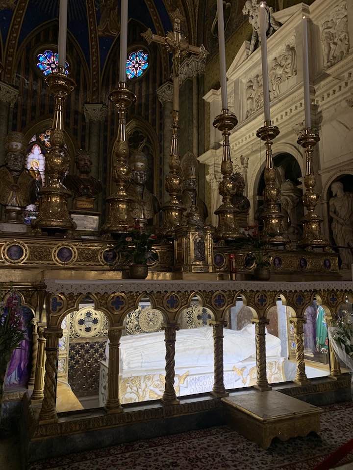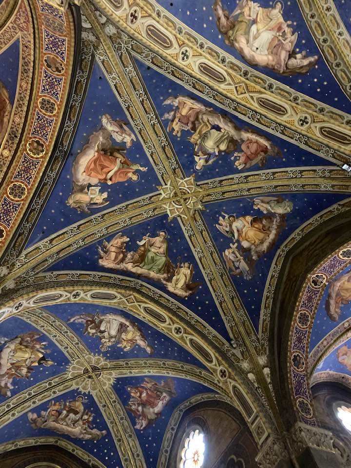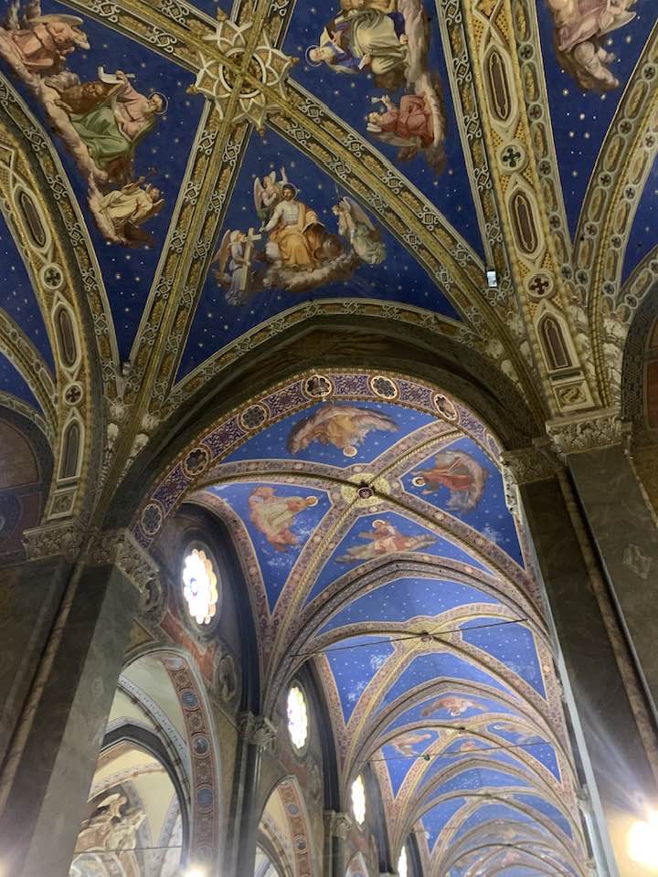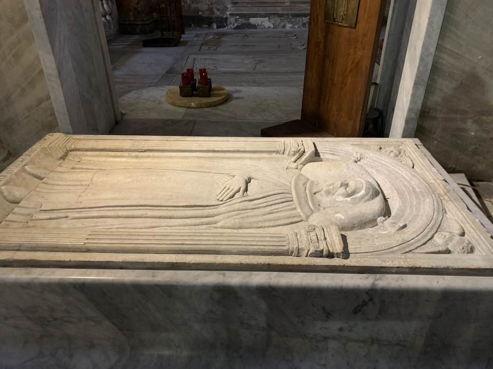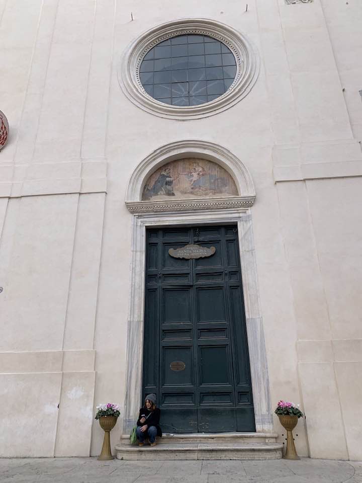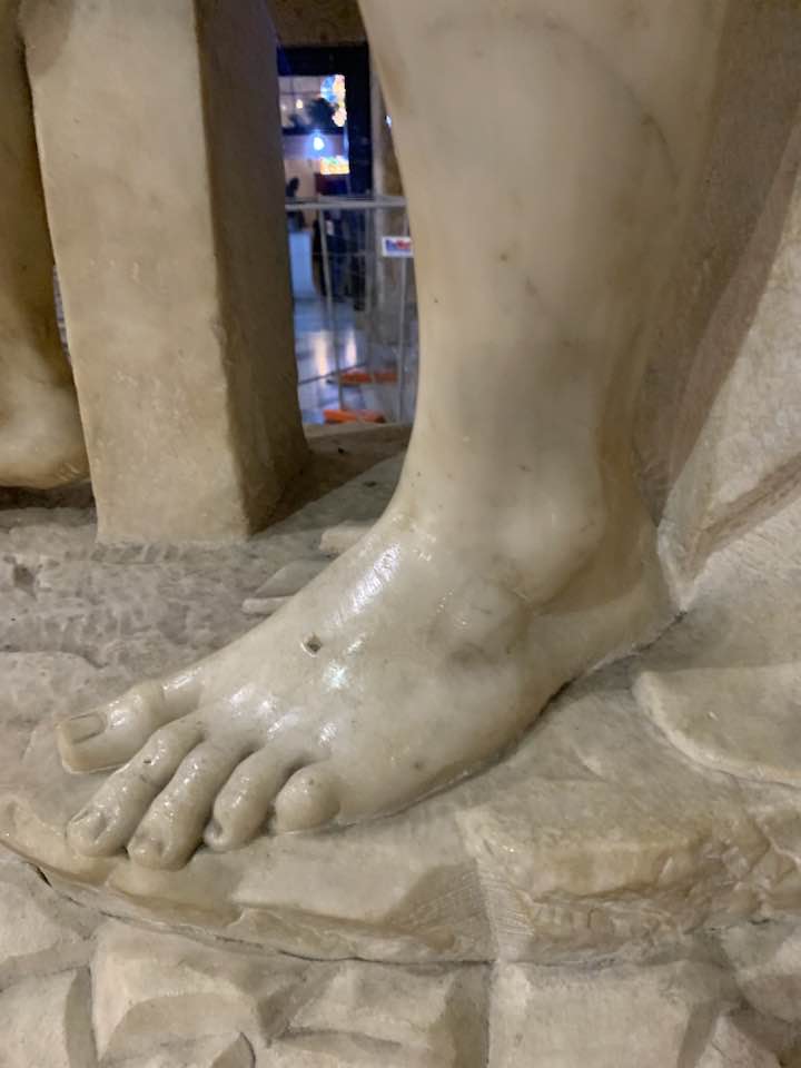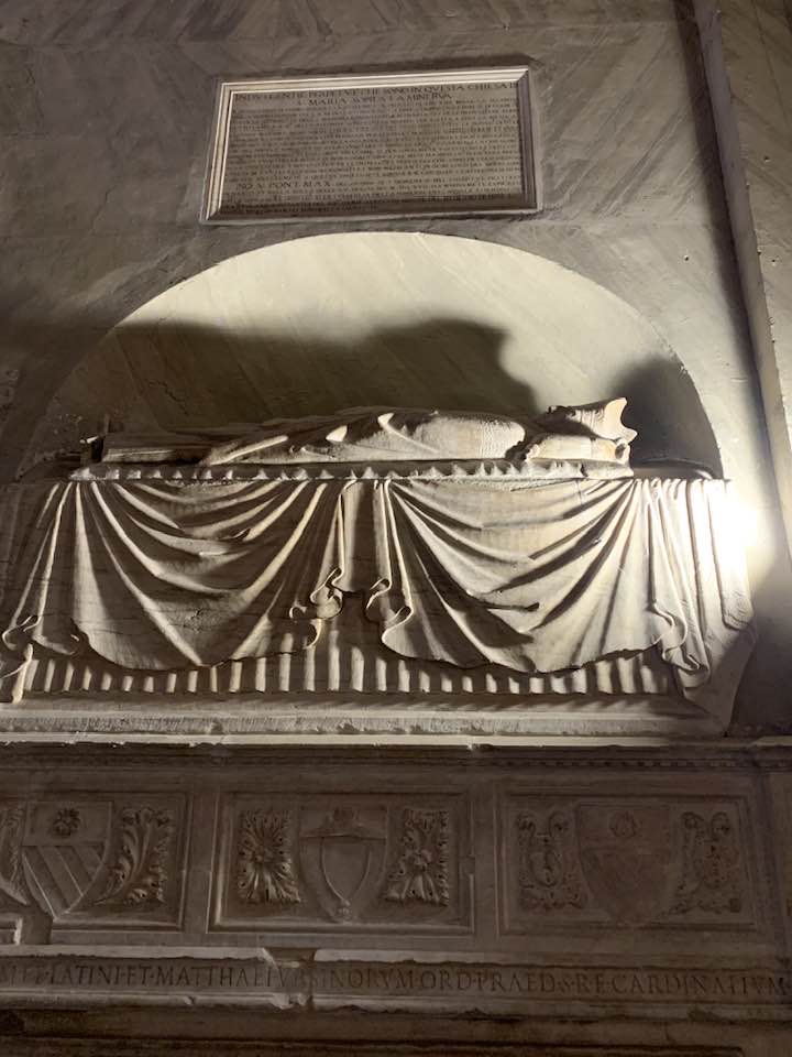 Irriverente Michelangelo, come nel suo carattere, poiché persino la scultura “Cristo alla Croce” viene scolpita nella sua nudità ritenuta inaccettabile, ma poi coperta nella sua parte intima non da lui. La statua marmorea (h. 2025 ) realizzata nel 1509 – 1520 ca. è conservata nella Basilica di Santa Maria sopra Minerva a Roma. Rocambolesca è stata la realizzazione in più versioni. Il drappeggio del bronzo dorato copre come detto le parti intime del Cristo, collocato dopo il Concilio di Trento. Non si fa scrupoli Michelangelo, progetta e realizza la scultura senza inibizioni, la nudità e la carnalità nelle sue opere costituiscono elementi imprescindibili per affermare il linguaggio della cultura senza censure o imposizioni da parte delle committenze. La scultura “Cristo alla Croce” è in perfetta torsione, elegante e molto anatomica con il baricentro posto sulla gamba sinistra, mentre quella destra è libera, si flette lievemente, il tallone si alza. Le braccia si contrappongono alla torsione del busto. La testa si volge ignorando la pesante croce di un Cristo Risorto, liberato, con il volto austero ed elegante nei tratti anatomici. Le mani cingono la croce, quella destra avvolge l’asse della croce e con l’indice piegato sembra pronunciare, indicandolo, l’atto e l’oggetto del suo martirio ma senza dargli troppo importanza, anzi è “distante”, è il passato declinato, mentre la mano destra tiene la spugna avvolta da una corda e issata dal lungo bastone di canna allungato fino al suo volto sofferente inchiodato sulla croce. L’anatomia del corpo con il suo pronunciamento muscolare rimanda allo spirito libero di Michelangelo, che nella sua vita ha dettato alle committenze i principi della scultura e della pittura che si uniscono, senza mediazioni.
