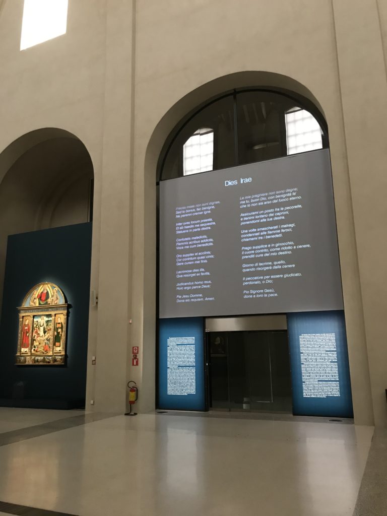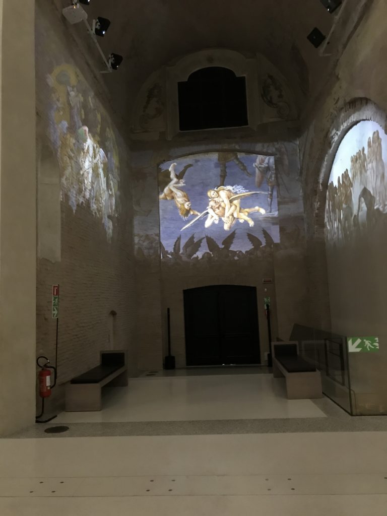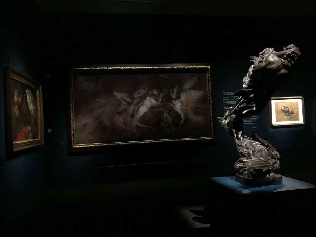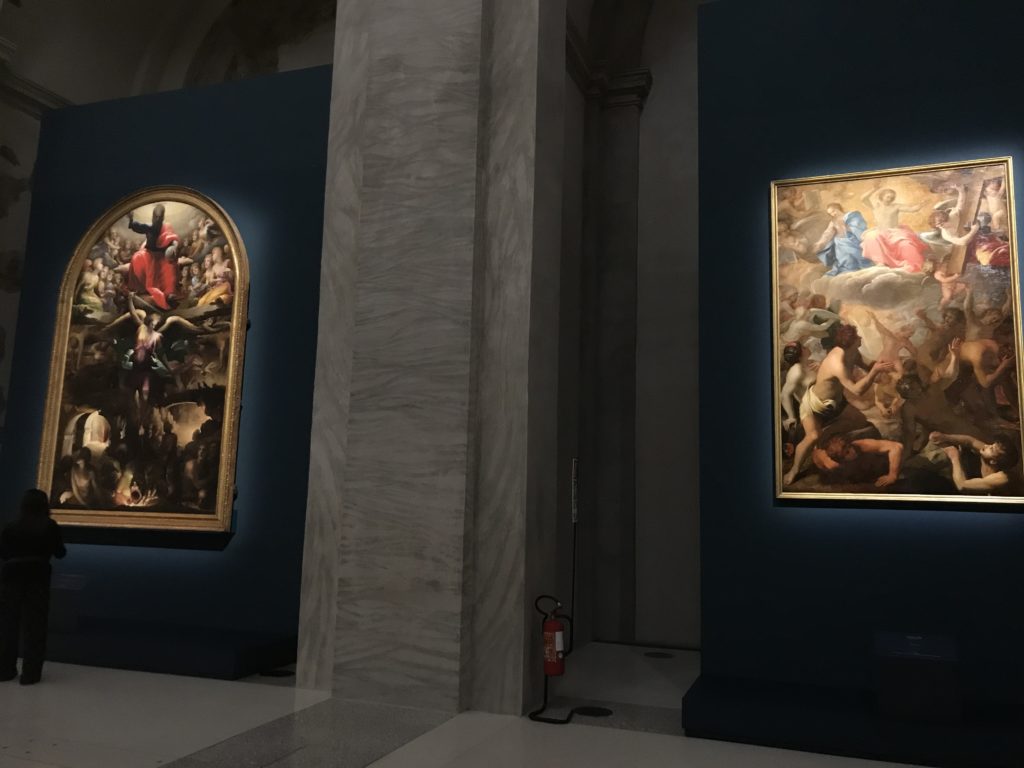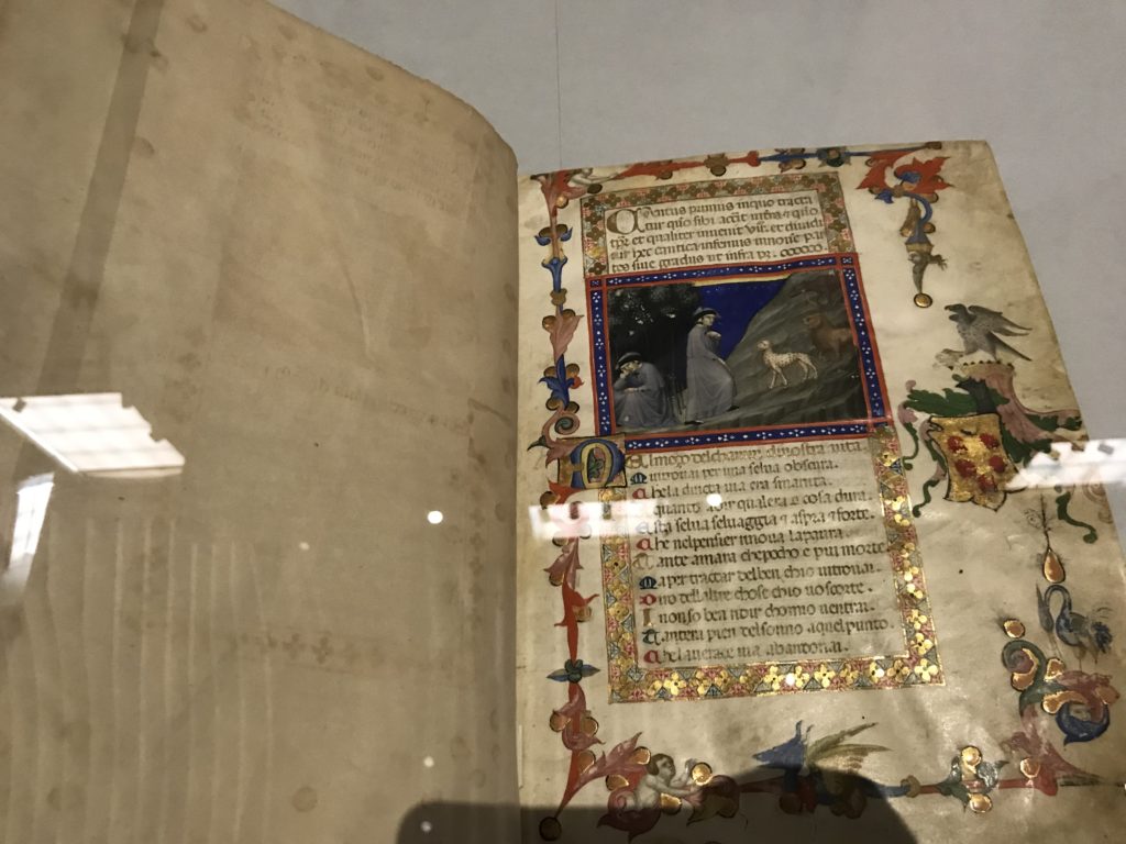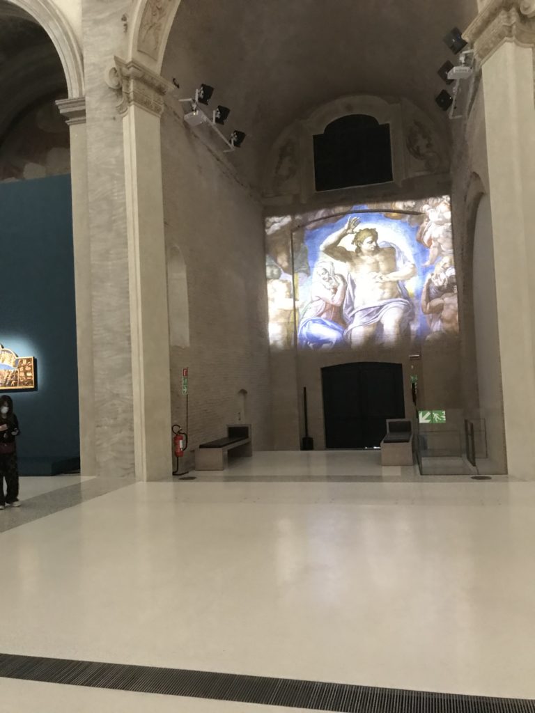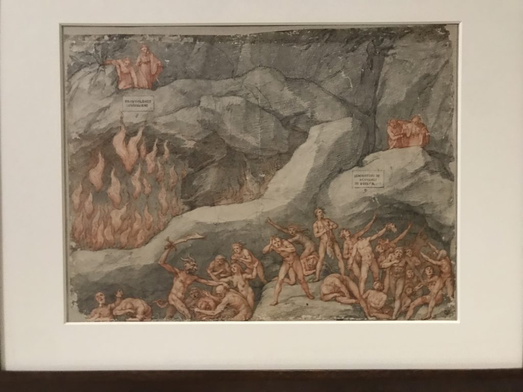 Forlì, tra il 1302 e 1313, è frequentata da Dante Alighieri, esule politico poiché ghibellino. La grande mostra multimediale sulla “Commedia”, e con rari pezzi provenienti da tutto il mondo, vuole rendere omaggio alla città romagnola. La figura di Dante è centrale, appunto, nella mostra “Dante, la visione dell’arte”, per le contaminazioni culturali in un arco temporale che va dal Duecento al Novecento. Le visioni figurative e a tratti oniriche di Cimabue, Giotto, Beato Angelico, Michelangelo, Tintoretto, Canova, Andrea del Castagno e molti altri sono state allestite, tutte, intorno al Sommo Poeta; e poi i preraffaeliti con Dante Gabriele Rossetti, i macchiaioli, i simbolisti e il Novecento di Galileo Chini, Plinio Nomellini, Felice Casorati, Lucio Fontana, Pablo Picasso. Più che una mostra, “Dante. La visione dell’arte”, nel settimo centenario della sua morte, è un evento culturale, un’occasione unica tra dipinti, sculture, disegni, illustrazioni e manoscritti. Beato Angelico, Michelangelo, Tintoretto gli autori che non ci si aspetta di vedere con alcune particolari opere (escono di rado dai loro musei), e oltre i maestri del Novecento su cui spicca Previati con il dipinto simbolista “Paolo e Francesca” di grande suggestione. La narrazione della “Divina Commedia” è l’asse centrale dell’esposizione intorno alla quale le arti visive si sono inchinate e hanno reso visuale e comunicativo per secoli, appunto, il suo testo, Michelangelo per primo, come effetto a dir poco esaltante della grande pittura scenica senza censure (inizialmente) nel “Giudizio” della Cappella Sistina. La mostra si pone su un livello internazionale, assolutamente da visitare, ho detto ai ragazzi del liceo “D. Cotugno” – L’Aquila durante l’esame di Stato. I grandi musei del pianeta: dall’Hermitage di San Pietroburgo, alla Walker Art Gallery di Liverpool, dalla National Gallery di Sofia alla Staatliche Kunstsammlungen di Dresda, dal Museum of Art di Toledo ai Musée des Beaux-Art di Nancy, di Tours, di Anger hanno fornito le loro più importanti collezioni insieme a quelli italiani: Galleria Nazionale d’Arte Moderna e Contemporanea di Roma, la Galleria Borghese, i Musei Vaticani e la Biblioteca Apostolica Vaticana, la Biblioteca Medicea Laurenziana, il Museo di Capodimonte. La visita. E’ come entrare in una dimensione sospesa che non si aspetta, bisogna poi avere il “Filo di Arianna” per muoversi nel complesso percorso espositivo – come fosse una capsula fuori dal tempo e dallo spazio – dentro musica, pittura, le parole e i versi di Dante proiettati nel complesso dei musei – convento di San Domenico come una sorta di ” lancio mediatico” insieme ai libri rari, proiezioni multimediali, allestimenti scenici, e infine trascorrere nella mostra un tempo particolare nel fascino interdisciplinare dei linguaggi e delle arti – un caleidoscopio che si muove nella griglia dei percorsi espositivi, – come non mai si potrà vedere per molti e molti anni nella grande bellezza figurativa, visionaria degli artisti, di secoli e secoli di interpretazioni su Dante, intorno a Dante, fino ai giorni d’oggi. La mostra: un’esperienza subliminale con i manoscritti e le prime edizioni a stampa della “Commedia”, i codici miniati del XIV e XV secolo, la stagione rinascimentale, il Neoclassicismo e la cultura preromantica e romantica, il Genio insomma, catalizza, anche il Risorgimento, la Prima Guerra Mondiale, e infine nella grafica e le edizioni a stampa tra la fine del Settecento e il Novecento mentre, nella scuola, Dante è sempre attuale e centrale per la formazione degli studenti, e per quel quinto canto dell’Inferno – l’ingresso nel Secondo Cerchio, i lussuriosi- divenuto un simbolo per un frastornato Dante. Vede loro che volano “due che ‘nsieme vanno,/ e paiono sì al vento esser , leggieri”… ( e come si diceva la straordinaria la pittura di Previati dei due amanti…) . Ma chi sono? Si svelano, ecco, l’incontro. Paolo e Francesca. In quel luogo buio e tetro di violenza, di bufera incessante, dove riecheggiano i pianti e gli stenti, si sente “ muggire” il vento, e i flussi di corrente contrari, e questa tempesta infernale non si arresta mai, trascina gli spiriti con la sua violenza, in particolare quando arrivano davanti al bordo del baratro infernale: la bufera delle passioni in vita è ora presente in quel luogo infimo dei lussuriosi, viceversa, Dante, utilizza parole che evocano la vita : “colombe”, “dolce”, “amor” quasi a tentare di assolverli, i due amanti, sdoganarli, i due amanti, a favore del “troppo amato…”, ma condannati infine all’ eterno dolore. Una dicotomia. Dunque lei, Francesca, parla, Paolo l’amore indissolubile piange intorno a lei, Dante è turbato, ha pena per quella categoria di dannati e Francesca è il primo peccatore a dialogare con lui che, sopraffatto, sviene. Una ulteriore prova della partecipazione emotiva davanti alla forza morale di Francesca, del suo spirito e della custodia, è l’affidamento e la protezione che ha nei confronti di Paolo quasi fosse indifeso. Ecco, ancora, torna l’interpretazione di Previati simbolista, visionario, che dipinge una versione di Paolo Malatesta e Francesca da Polenta (Paolo e Francesca, 1909, olio su tela, cm 230 x 260 ) nel vortice di quel campo visivo di una bellezza cruda, “oltre i confini della cornice”, la luminosità vibrante, elegante, immateriale dalle pennellate ondulate, i due volti cupi e solcati dalla stanchezza, i corpi giovani ma segnati dal dolore che si avvinghiano e salgono, quasi una levitazione alla ricerca della luce e dell’ossigeno sopra di loro, e le mani che si uniscono, i lunghi capelli rossi di Francesca che si sollevano dal corpo nel quadro quasi attratti da una forza occulta ascendente, i due corpi illuminati da un fascio di luce e dai colori tonali caldi e freddi nelle varianti cromatiche dell’ocra, della biacca, dei pas