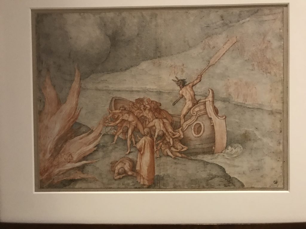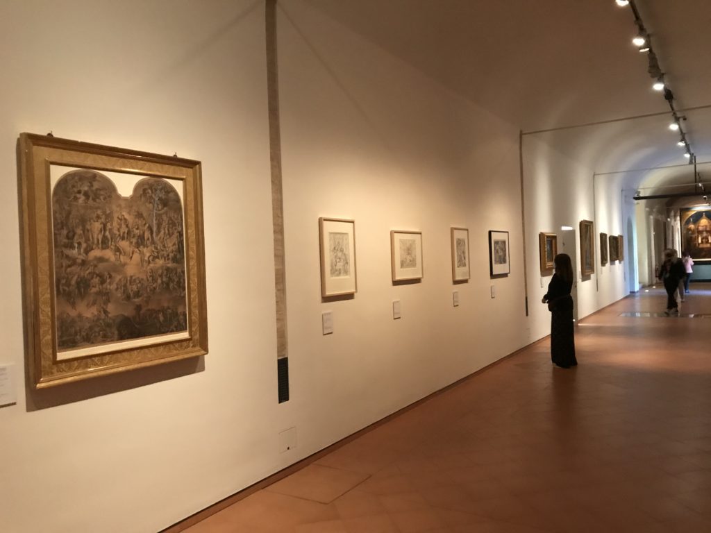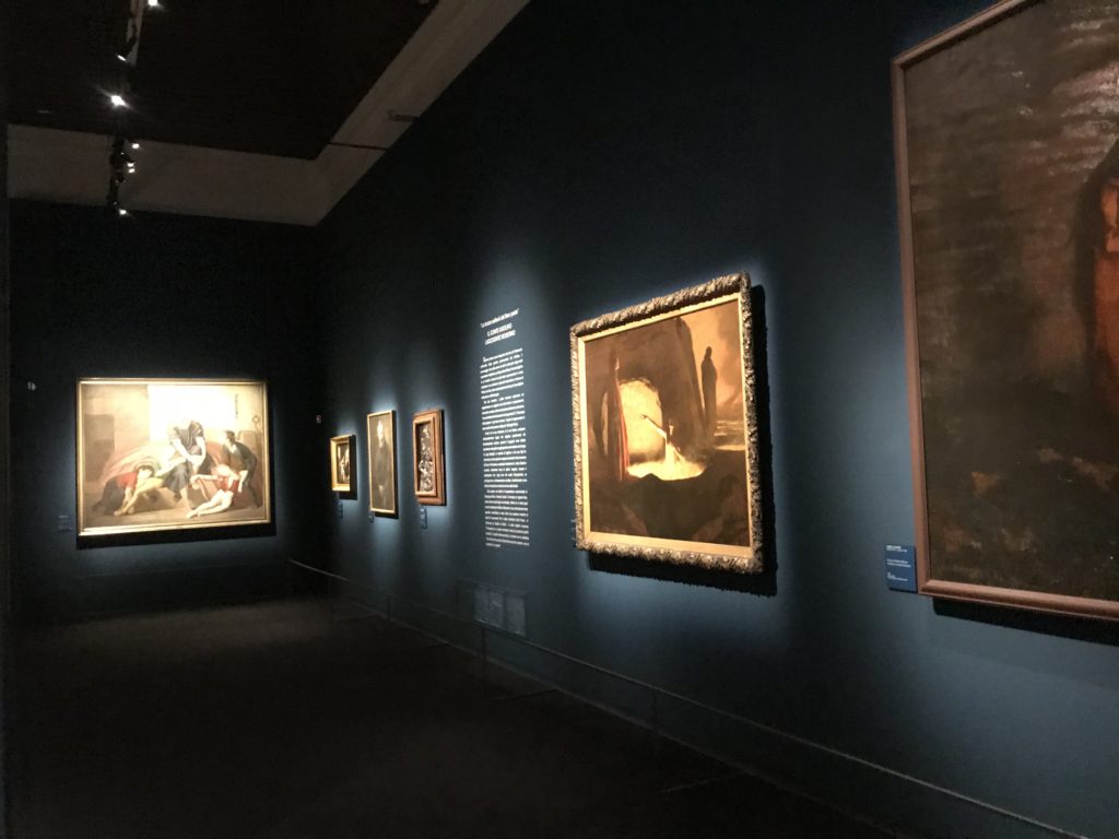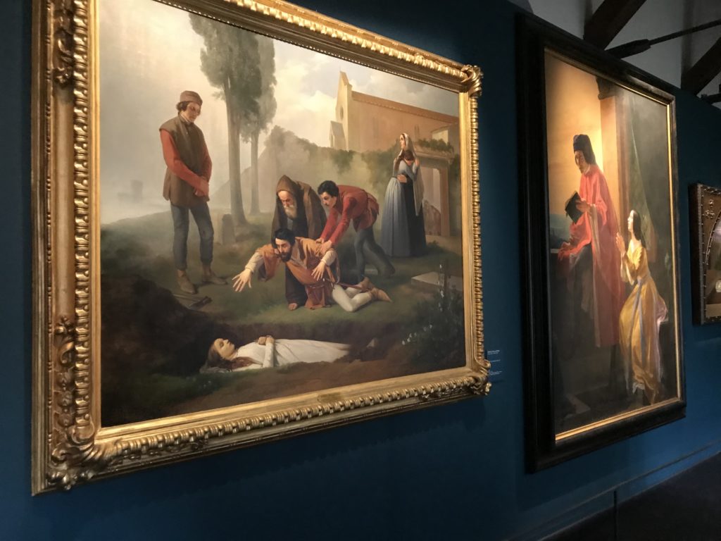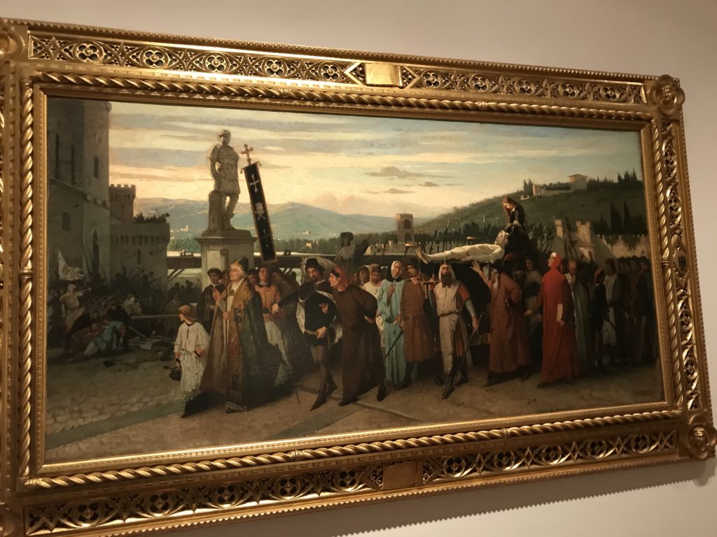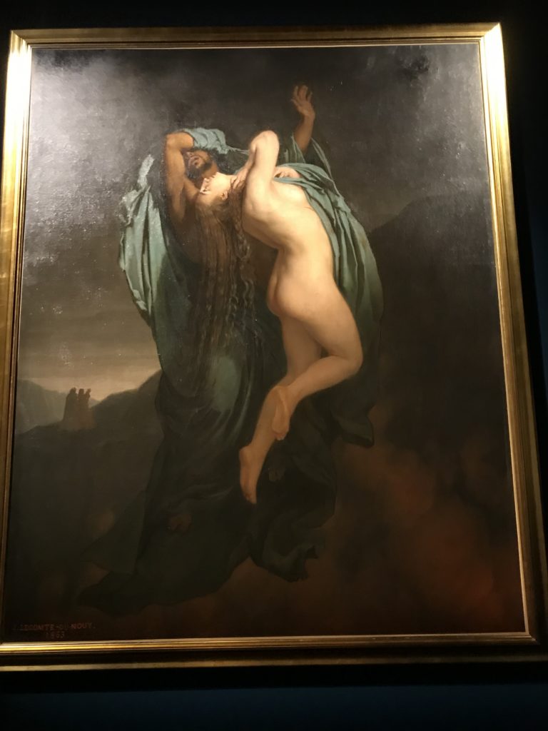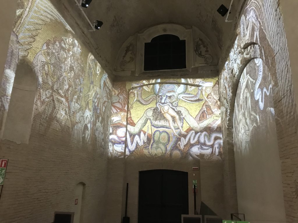 Forlì, tra il 1302 e 1313, è frequentata da Dante Alighieri, esule politico poiché ghibellino. La grande mostra multimediale sulla “Commedia”, e con rari pezzi provenienti da tutto il mondo, vuole rendere omaggio alla città romagnola. La figura di Dante è centrale, appunto, nella mostra “Dante, la visione dell’arte”, per le contaminazioni culturali in un arco temporale che va dal Duecento al Novecento. Le visioni figurative e a tratti oniriche di Cimabue, Giotto, Beato Angelico, Michelangelo, Tintoretto, Canova, Andrea del Castagno e molti altri sono state allestite, tutte, intorno al Sommo Poeta; e poi i preraffaeliti con Dante Gabriele Rossetti, i macchiaioli, i simbolisti e il Novecento di Galileo Chini, Plinio Nomellini, Felice Casorati, Lucio Fontana, Pablo Picasso. Più che una mostra, “Dante. La visione dell’arte”, nel settimo centenario della sua morte, è un evento culturale, un’occasione unica tra dipinti, sculture, disegni, illustrazioni e manoscritti. Beato Angelico, Michelangelo, Tintoretto gli autori che non ci si aspetta di vedere con alcune particolari opere (escono di rado dai loro musei), e oltre i maestri del Novecento su cui spicca Previati con il dipinto simbolista “Paolo e Francesca” di grande suggestione. La narrazione della “Divina Commedia” è l’asse centrale dell’esposizione intorno alla quale le arti visive si sono inchinate e hanno reso visuale e comunicativo per secoli, appunto, il suo testo, Michelangelo per primo, come effetto a dir poco esaltante della grande pittura scenica senza censure (inizialmente) nel “Giudizio” della Cappella Sistina. La mostra si pone su un livello internazionale, assolutamente da visitare, ho detto ai ragazzi del liceo “D. Cotugno” – L’Aquila durante l’esame di Stato. I grandi musei del pianeta: dall’Hermitage di San Pietroburgo, alla Walker Art Gallery di Liverpool, dalla National Gallery di Sofia alla Staatliche Kunstsammlungen di Dresda, dal Museum of Art di Toledo ai Musée des Beaux-Art di Nancy, di Tours, di Anger hanno fornito le loro più importanti collezioni insieme a quelli italiani: Galleria Nazionale d’Arte Moderna e Contemporanea di Roma, la Galleria Borghese, i Musei Vaticani e la Biblioteca Apostolica Vaticana, la Biblioteca Medicea Laurenziana, il Museo di Capodimonte. La visita. E’ come entrare in una dimensione sospesa che non si aspetta, bisogna poi avere il “Filo di Arianna” per muoversi nel complesso percorso espositivo – come fosse una capsula fuori dal tempo e dallo spazio – dentro musica, pittura, le parole e i versi di Dante proiettati nel complesso dei musei – convento di San Domenico come una sorta di ” lancio mediatico” insieme ai libri rari, proiezioni multimediali, allestimenti scenici, e infine trascorrere nella mostra un tempo particolare nel fascino interdisciplinare dei linguaggi e delle arti – un caleidoscopio che si muove nella griglia dei percorsi espositivi, – come non mai si potrà vedere per molti e molti anni nella grande bellezza figurativa, visionaria degli artisti, di secoli e secoli di interpretazioni su Dante, intorno a Dante, fino ai giorni d’oggi. La mostra: un’esperienza subliminale con i manoscritti e le prime edizioni a stampa della “Commedia”, i codici miniati del XIV e XV secolo, la stagione rinascimentale, il Neoclassicismo e la cultura preromantica e romantica, il Genio insomma, catalizza, anche il Risorgimento, la Prima Guerra Mondiale, e infine nella grafica e le edizioni a stampa tra la fine del Settecento e il Novecento mentre, nella scuola, Dante è sempre attuale e centrale per la formazione degli studenti, e per quel quinto canto dell’Inferno – l’ingresso nel Secondo Cerchio, i lussuriosi- divenuto un simbolo per un frastornato Dante. Vede loro che volano “due che ‘nsieme vanno,/ e paiono sì al vento esser , leggieri”… ( e come si diceva la straordinaria la pittura di Previati dei due amanti…) . Ma chi sono? Si svelano, ecco, l’incontro. Paolo e Francesca. In quel luogo buio e tetro di violenza, di bufera incessante, dove riecheggiano i pianti e gli stenti, si sente “ muggire” il vento, e i flussi di corrente contrari, e questa tempesta infernale non si arresta mai, trascina gli spiriti con la sua violenza, in particolare quando arrivano davanti al bordo del baratro infernale: la bufera delle passioni in vita è ora presente in quel luogo infimo dei lussuriosi, viceversa, Dante, utilizza parole che evocano la vita : “colombe”, “dolce”, “amor” quasi a tentare di assolverli, i due amanti, sdoganarli, i due amanti, a favore del “troppo amato…”, ma condannati infine all’ eterno dolore. Una dicotomia. Dunque lei, Francesca, parla, Paolo l’amore indissolubile piange intorno a lei, Dante è turbato, ha pena per quella categoria di dannati e Francesca è il primo peccatore a dialogare con lui che, sopraffatto, sviene. Una ulteriore prova della partecipazione emotiva davanti alla forza morale di Francesca, del suo spirito e della custodia, è l’affidamento e la protezione che ha nei confronti di Paolo quasi fosse indifeso. Ecco, ancora, torna l’interpretazione di Previati simbolista, visionario, che dipinge una versione di Paolo Malatesta e Francesca da Polenta (Paolo e Francesca, 1909, olio su tela, cm 230 x 260 ) nel vortice di quel campo visivo di una bellezza cruda, “oltre i confini della cornice”, la luminosità vibrante, elegante, immateriale dalle pennellate ondulate, i due volti cupi e solcati dalla stanchezza, i corpi giovani ma segnati dal dolore che si avvinghiano e salgono, quasi una levitazione alla ricerca della luce e dell’ossigeno sopra di loro, e le mani che si uniscono, i lunghi capelli rossi di Francesca che si sollevano dal corpo nel quadro quasi attratti da una forza occulta ascendente, i due corpi illuminati da un fascio di luce e dai colori tonali caldi e freddi nelle varianti cromatiche dell’ocra, della biacca, dei pas