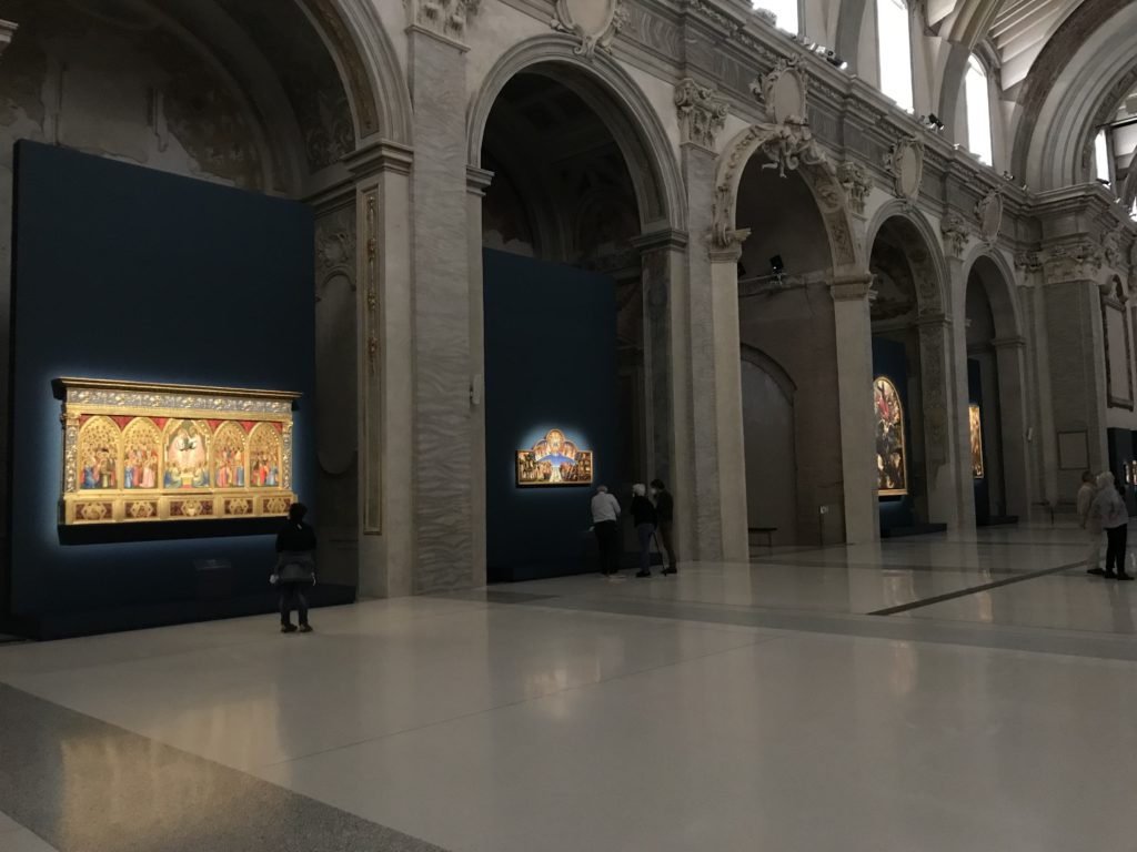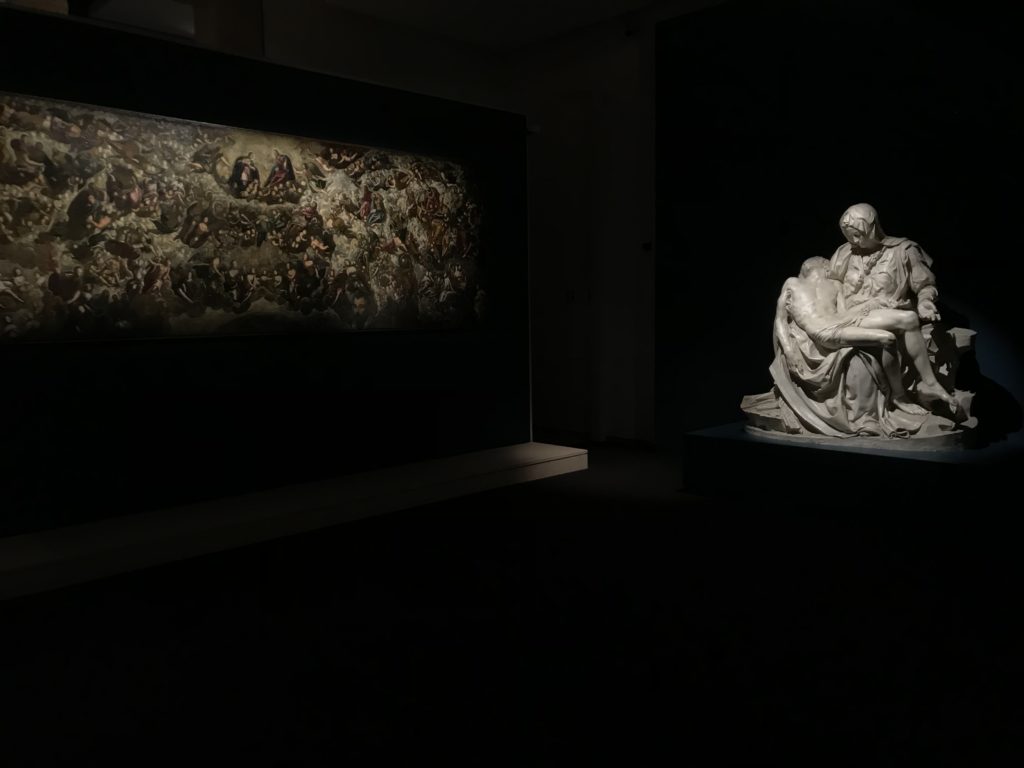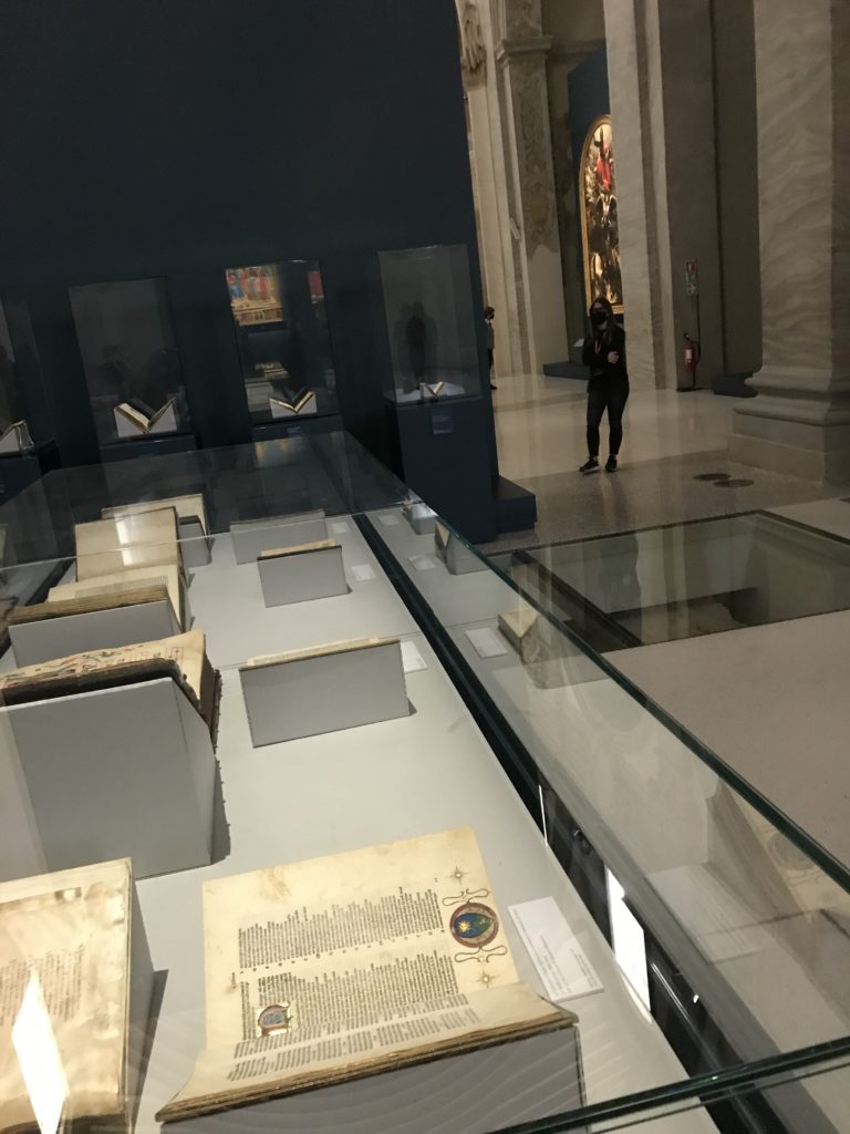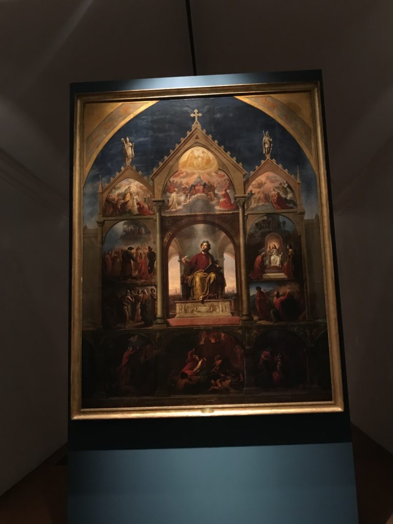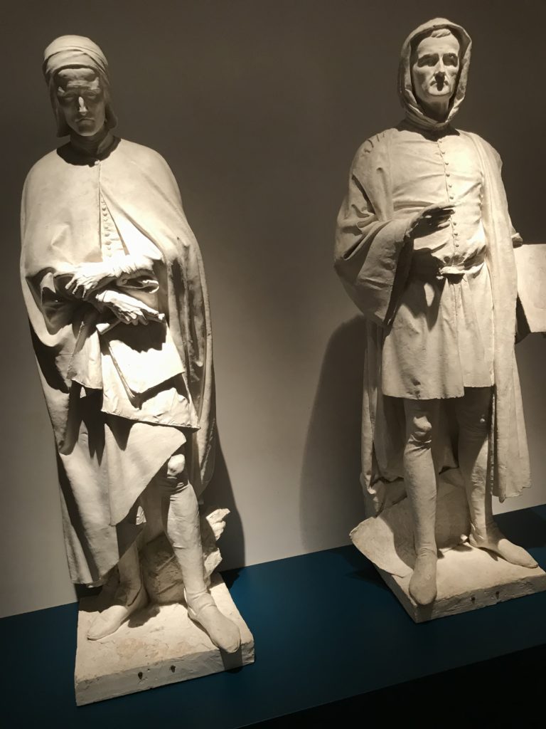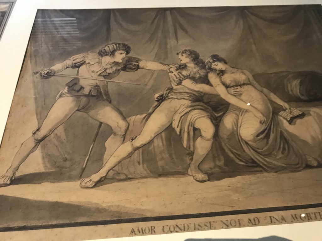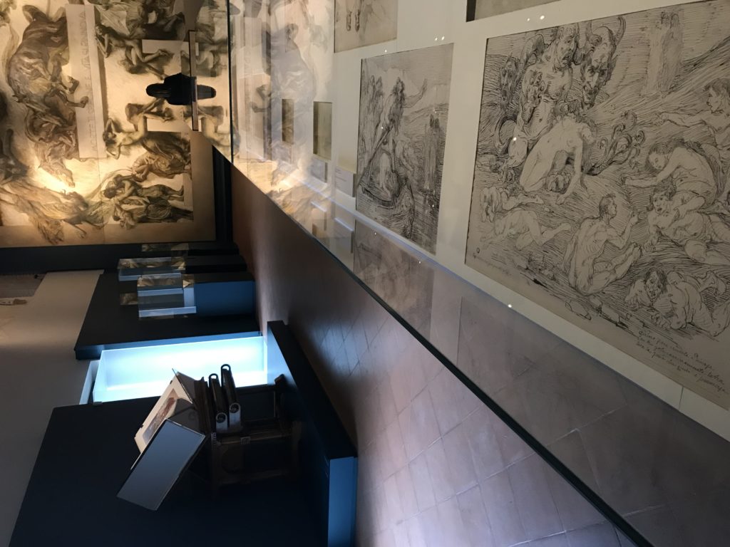 Forlì, tra il 1302 e 1313, è frequentata da Dante Alighieri, esule politico poiché ghibellino. La grande mostra multimediale sulla “Commedia”, e con rari pezzi provenienti da tutto il mondo, vuole rendere omaggio alla città romagnola. La figura di Dante è centrale, appunto, nella mostra “Dante, la visione dell’arte”, per le contaminazioni culturali in un arco temporale che va dal Duecento al Novecento. Le visioni figurative e a tratti oniriche di Cimabue, Giotto, Beato Angelico, Michelangelo, Tintoretto, Canova, Andrea del Castagno e molti altri sono state allestite, tutte, intorno al Sommo Poeta; e poi i preraffaeliti con Dante Gabriele Rossetti, i macchiaioli, i simbolisti e il Novecento di Galileo Chini, Plinio Nomellini, Felice Casorati, Lucio Fontana, Pablo Picasso. Più che una mostra, “Dante. La visione dell’arte”, nel settimo centenario della sua morte, è un evento culturale, un’occasione unica tra dipinti, sculture, disegni, illustrazioni e manoscritti. Beato Angelico, Michelangelo, Tintoretto gli autori che non ci si aspetta di vedere con alcune particolari opere (escono di rado dai loro musei), e oltre i maestri del Novecento su cui spicca Previati con il dipinto simbolista “Paolo e Francesca” di grande suggestione. La narrazione della “Divina Commedia” è l’asse centrale dell’esposizione intorno alla quale le arti visive si sono inchinate e hanno reso visuale e comunicativo per secoli, appunto, il suo testo, Michelangelo per primo, come effetto a dir poco esaltante della grande pittura scenica senza censure (inizialmente) nel “Giudizio” della Cappella Sistina. La mostra si pone su un livello internazionale, assolutamente da visitare, ho detto ai ragazzi del liceo “D. Cotugno” – L’Aquila durante l’esame di Stato. I grandi musei del pianeta: dall’Hermitage di San Pietroburgo, alla Walker Art Gallery di Liverpool, dalla National Gallery di Sofia alla Staatliche Kunstsammlungen di Dresda, dal Museum of Art di Toledo ai Musée des Beaux-Art di Nancy, di Tours, di Anger hanno fornito le loro più importanti collezioni insieme a quelli italiani: Galleria Nazionale d’Arte Moderna e Contemporanea di Roma, la Galleria Borghese, i Musei Vaticani e la Biblioteca Apostolica Vaticana, la Biblioteca Medicea Laurenziana, il Museo di Capodimonte. La visita. E’ come entrare in una dimensione sospesa che non si aspetta, bisogna poi avere il “Filo di Arianna” per muoversi nel complesso percorso espositivo – come fosse una capsula fuori dal tempo e dallo spazio – dentro musica, pittura, le parole e i versi di Dante proiettati nel complesso dei musei – convento di San Domenico come una sorta di ” lancio mediatico” insieme ai libri rari, proiezioni multimediali, allestimenti scenici, e infine trascorrere nella mostra un tempo particolare nel fascino interdisciplinare dei linguaggi e delle arti – un caleidoscopio che si muove nella griglia dei percorsi espositivi, – come non mai si potrà vedere per molti e molti anni nella grande bellezza figurativa, visionaria degli artisti, di secoli e secoli di interpretazioni su Dante, intorno a Dante, fino ai giorni d’oggi. La mostra: un’esperienza subliminale con i manoscritti e le prime edizioni a stampa della “Commedia”, i codici miniati del XIV e XV secolo, la stagione rinascimentale, il Neoclassicismo e la cultura preromantica e romantica, il Genio insomma, catalizza, anche il Risorgimento, la Prima Guerra Mondiale, e infine nella grafica e le edizioni a stampa tra la fine del Settecento e il Novecento mentre, nella scuola, Dante è sempre attuale e centrale per la formazione degli studenti, e per quel quinto canto dell’Inferno – l’ingresso nel Secondo Cerchio, i lussuriosi- divenuto un simbolo per un frastornato Dante. Vede loro che volano “due che ‘nsieme vanno,/ e paiono sì al vento esser , leggieri”… ( e come si diceva la straordinaria la pittura di Previati dei due amanti…) . Ma chi sono? Si svelano, ecco, l’incontro. Paolo e Francesca. In quel luogo buio e tetro di violenza, di bufera incessante, dove riecheggiano i pianti e gli stenti, si sente “ muggire” il vento, e i flussi di corrente contrari, e questa tempesta infernale non si arresta mai, trascina gli spiriti con la sua violenza, in particolare quando arrivano davanti al bordo del baratro infernale: la bufera delle passioni in vita è ora presente in quel luogo infimo dei lussuriosi, viceversa, Dante, utilizza parole che evocano la vita : “colombe”, “dolce”, “amor” quasi a tentare di assolverli, i due amanti, sdoganarli, i due amanti, a favore del “troppo amato…”, ma condannati infine all’ eterno dolore. Una dicotomia. Dunque lei, Francesca, parla, Paolo l’amore indissolubile piange intorno a lei, Dante è turbato, ha pena per quella categoria di dannati e Francesca è il primo peccatore a dialogare con lui che, sopraffatto, sviene. Una ulteriore prova della partecipazione emotiva davanti alla forza morale di Francesca, del suo spirito e della custodia, è l’affidamento e la protezione che ha nei confronti di Paolo quasi fosse indifeso. Ecco, ancora, torna l’interpretazione di Previati simbolista, visionario, che dipinge una versione di Paolo Malatesta e Francesca da Polenta (Paolo e Francesca, 1909, olio su tela, cm 230 x 260 ) nel vortice di quel campo visivo di una bellezza cruda, “oltre i confini della cornice”, la luminosità vibrante, elegante, immateriale dalle pennellate ondulate, i due volti cupi e solcati dalla stanchezza, i corpi giovani ma segnati dal dolore che si avvinghiano e salgono, quasi una levitazione alla ricerca della luce e dell’ossigeno sopra di loro, e le mani che si uniscono, i lunghi capelli rossi di Francesca che si sollevano dal corpo nel quadro quasi attratti da una forza occulta ascendente, i due corpi illuminati da un fascio di luce e dai colori tonali caldi e freddi nelle varianti cromatiche dell’ocra, della biacca, dei pas