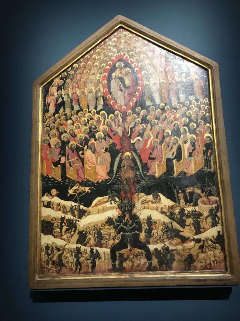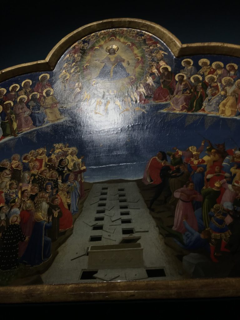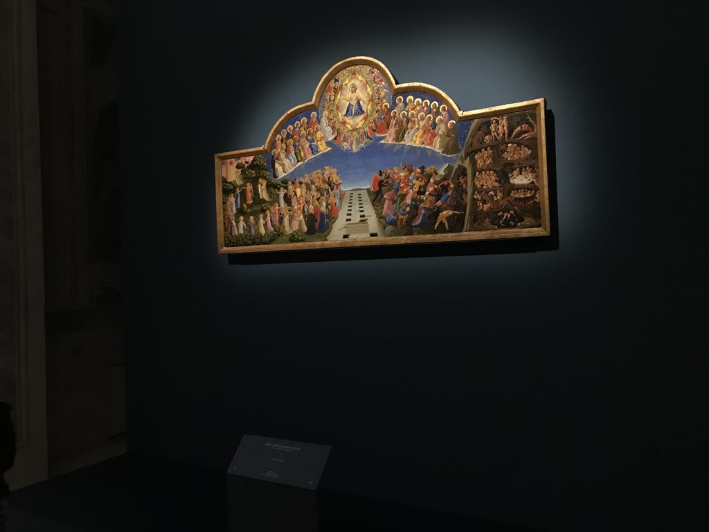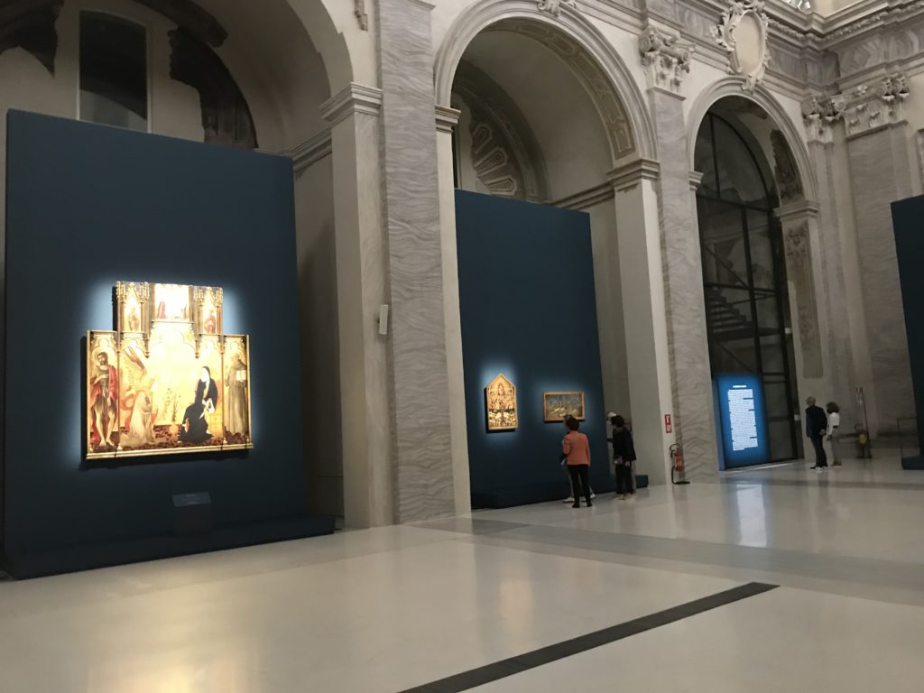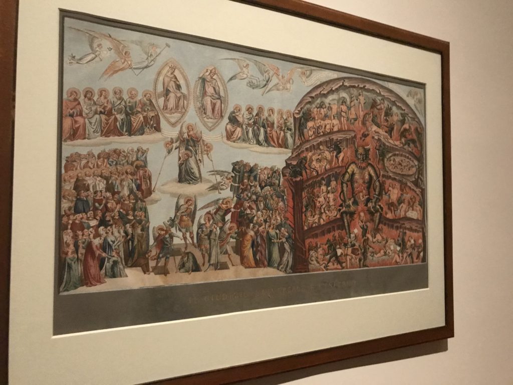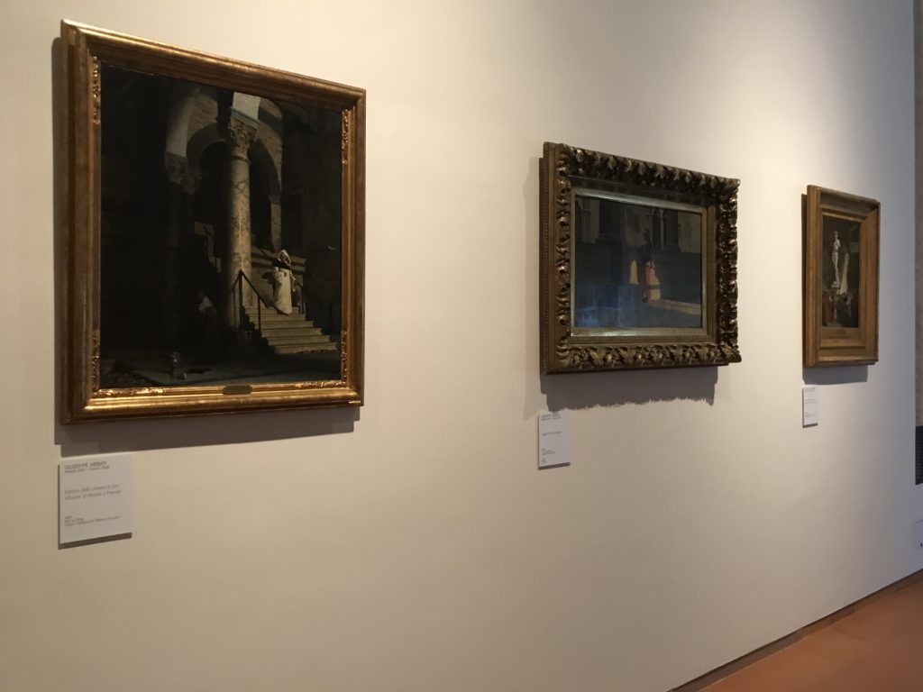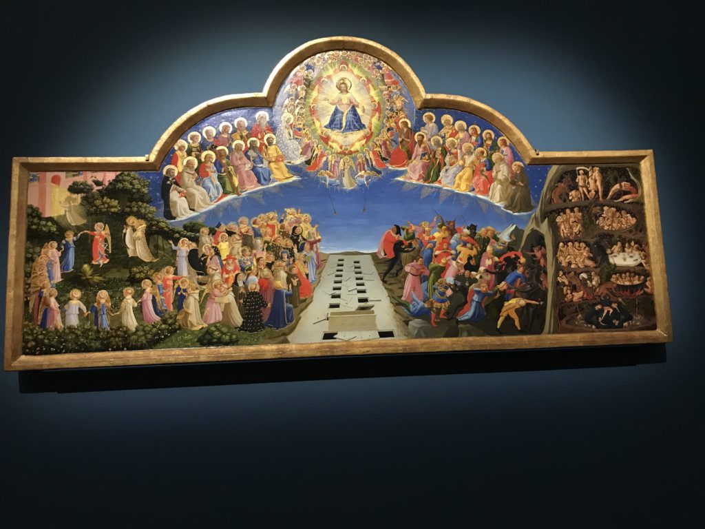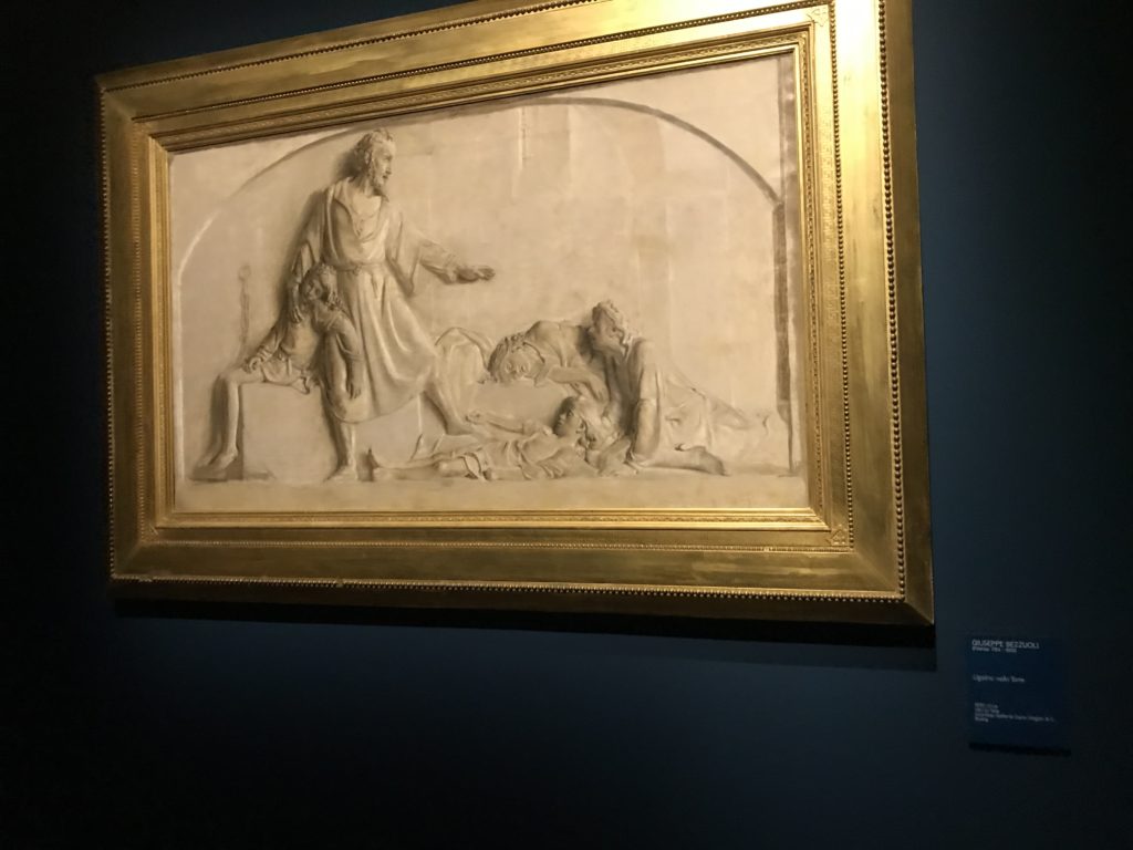 Forlì, tra il 1302 e 1313, è frequentata da Dante Alighieri, esule politico poiché ghibellino. La grande mostra multimediale sulla “Commedia”, e con rari pezzi provenienti da tutto il mondo, vuole rendere omaggio alla città romagnola. La figura di Dante è centrale, appunto, nella mostra “Dante, la visione dell’arte”, per le contaminazioni culturali in un arco temporale che va dal Duecento al Novecento. Le visioni figurative e a tratti oniriche di Cimabue, Giotto, Beato Angelico, Michelangelo, Tintoretto, Canova, Andrea del Castagno e molti altri sono state allestite, tutte, intorno al Sommo Poeta; e poi i preraffaeliti con Dante Gabriele Rossetti, i macchiaioli, i simbolisti e il Novecento di Galileo Chini, Plinio Nomellini, Felice Casorati, Lucio Fontana, Pablo Picasso. Più che una mostra, “Dante. La visione dell’arte”, nel settimo centenario della sua morte, è un evento culturale, un’occasione unica tra dipinti, sculture, disegni, illustrazioni e manoscritti. Beato Angelico, Michelangelo, Tintoretto gli autori che non ci si aspetta di vedere con alcune particolari opere (escono di rado dai loro musei), e oltre i maestri del Novecento su cui spicca Previati con il dipinto simbolista “Paolo e Francesca” di grande suggestione. La narrazione della “Divina Commedia” è l’asse centrale dell’esposizione intorno alla quale le arti visive si sono inchinate e hanno reso visuale e comunicativo per secoli, appunto, il suo testo, Michelangelo per primo, come effetto a dir poco esaltante della grande pittura scenica senza censure (inizialmente) nel “Giudizio” della Cappella Sistina. La mostra si pone su un livello internazionale, assolutamente da visitare, ho detto ai ragazzi del liceo “D. Cotugno” – L’Aquila durante l’esame di Stato. I grandi musei del pianeta: dall’Hermitage di San Pietroburgo, alla Walker Art Gallery di Liverpool, dalla National Gallery di Sofia alla Staatliche Kunstsammlungen di Dresda, dal Museum of Art di Toledo ai Musée des Beaux-Art di Nancy, di Tours, di Anger hanno fornito le loro più importanti collezioni insieme a quelli italiani: Galleria Nazionale d’Arte Moderna e Contemporanea di Roma, la Galleria Borghese, i Musei Vaticani e la Biblioteca Apostolica Vaticana, la Biblioteca Medicea Laurenziana, il Museo di Capodimonte. La visita. E’ come entrare in una dimensione sospesa che non si aspetta, bisogna poi avere il “Filo di Arianna” per muoversi nel complesso percorso espositivo – come fosse una capsula fuori dal tempo e dallo spazio – dentro musica, pittura, le parole e i versi di Dante proiettati nel complesso dei musei – convento di San Domenico come una sorta di ” lancio mediatico” insieme ai libri rari, proiezioni multimediali, allestimenti scenici, e infine trascorrere nella mostra un tempo particolare nel fascino interdisciplinare dei linguaggi e delle arti – un caleidoscopio che si muove nella griglia dei percorsi espositivi, – come non mai si potrà vedere per molti e molti anni nella grande bellezza figurativa, visionaria degli artisti, di secoli e secoli di interpretazioni su Dante, intorno a Dante, fino ai giorni d’oggi. La mostra: un’esperienza subliminale con i manoscritti e le prime edizioni a stampa della “Commedia”, i codici miniati del XIV e XV secolo, la stagione rinascimentale, il Neoclassicismo e la cultura preromantica e romantica, il Genio insomma, catalizza, anche il Risorgimento, la Prima Guerra Mondiale, e infine nella grafica e le edizioni a stampa tra la fine del Settecento e il Novecento mentre, nella scuola, Dante è sempre attuale e centrale per la formazione degli studenti, e per quel quinto canto dell’Inferno – l’ingresso nel Secondo Cerchio, i lussuriosi- divenuto un simbolo per un frastornato Dante. Vede loro che volano “due che ‘nsieme vanno,/ e paiono sì al vento esser , leggieri”… ( e come si diceva la straordinaria la pittura di Previati dei due amanti…) . Ma chi sono? Si svelano, ecco, l’incontro. Paolo e Francesca. In quel luogo buio e tetro di violenza, di bufera incessante, dove riecheggiano i pianti e gli stenti, si sente “ muggire” il vento, e i flussi di corrente contrari, e questa tempesta infernale non si arresta mai, trascina gli spiriti con la sua violenza, in particolare quando arrivano davanti al bordo del baratro infernale: la bufera delle passioni in vita è ora presente in quel luogo infimo dei lussuriosi, viceversa, Dante, utilizza parole che evocano la vita : “colombe”, “dolce”, “amor” quasi a tentare di assolverli, i due amanti, sdoganarli, i due amanti, a favore del “troppo amato…”, ma condannati infine all’ eterno dolore. Una dicotomia. Dunque lei, Francesca, parla, Paolo l’amore indissolubile piange intorno a lei, Dante è turbato, ha pena per quella categoria di dannati e Francesca è il primo peccatore a dialogare con lui che, sopraffatto, sviene. Una ulteriore prova della partecipazione emotiva davanti alla forza morale di Francesca, del suo spirito e della custodia, è l’affidamento e la protezione che ha nei confronti di Paolo quasi fosse indifeso. Ecco, ancora, torna l’interpretazione di Previati simbolista, visionario, che dipinge una versione di Paolo Malatesta e Francesca da Polenta (Paolo e Francesca, 1909, olio su tela, cm 230 x 260 ) nel vortice di quel campo visivo di una bellezza cruda, “oltre i confini della cornice”, la luminosità vibrante, elegante, immateriale dalle pennellate ondulate, i due volti cupi e solcati dalla stanchezza, i corpi giovani ma segnati dal dolore che si avvinghiano e salgono, quasi una levitazione alla ricerca della luce e dell’ossigeno sopra di loro, e le mani che si uniscono, i lunghi capelli rossi di Francesca che si sollevano dal corpo nel quadro quasi attratti da una forza occulta ascendente, i due corpi illuminati da un fascio di luce e dai colori tonali caldi e freddi nelle varianti cromatiche dell’ocra, della biacca, dei pas