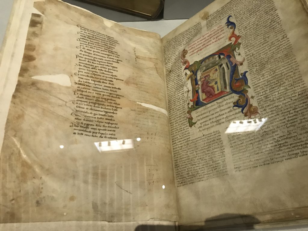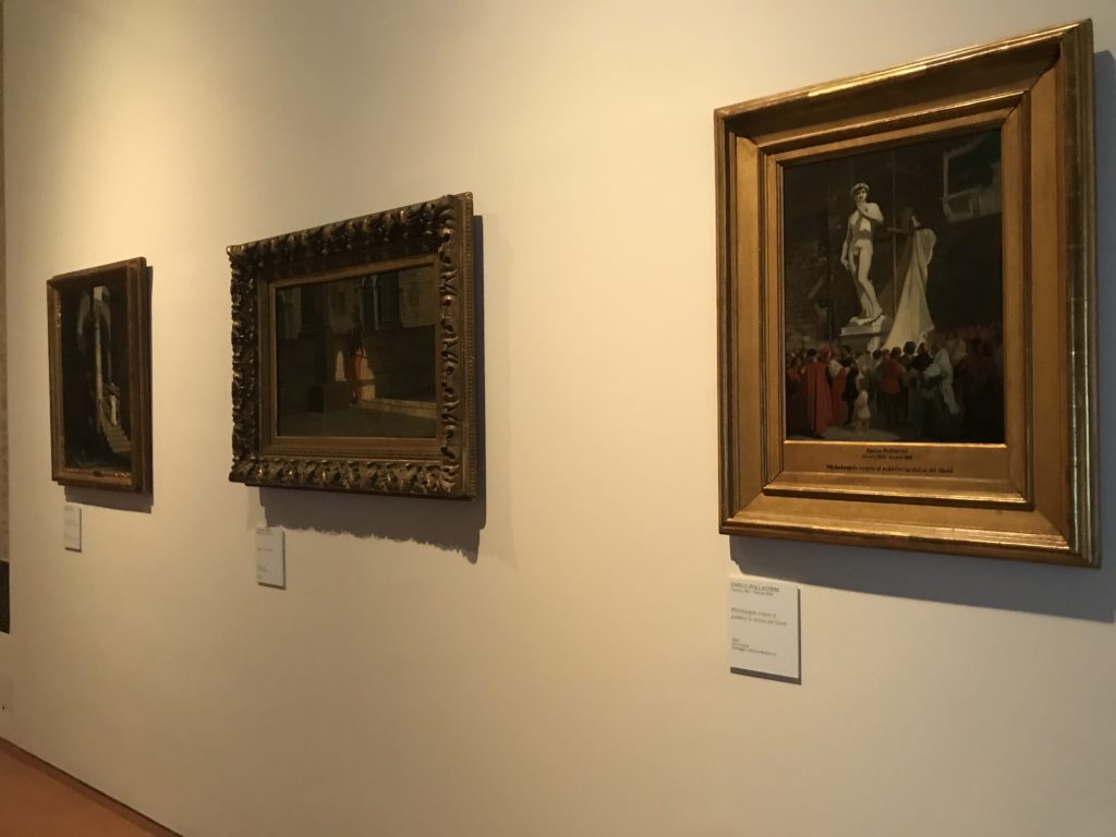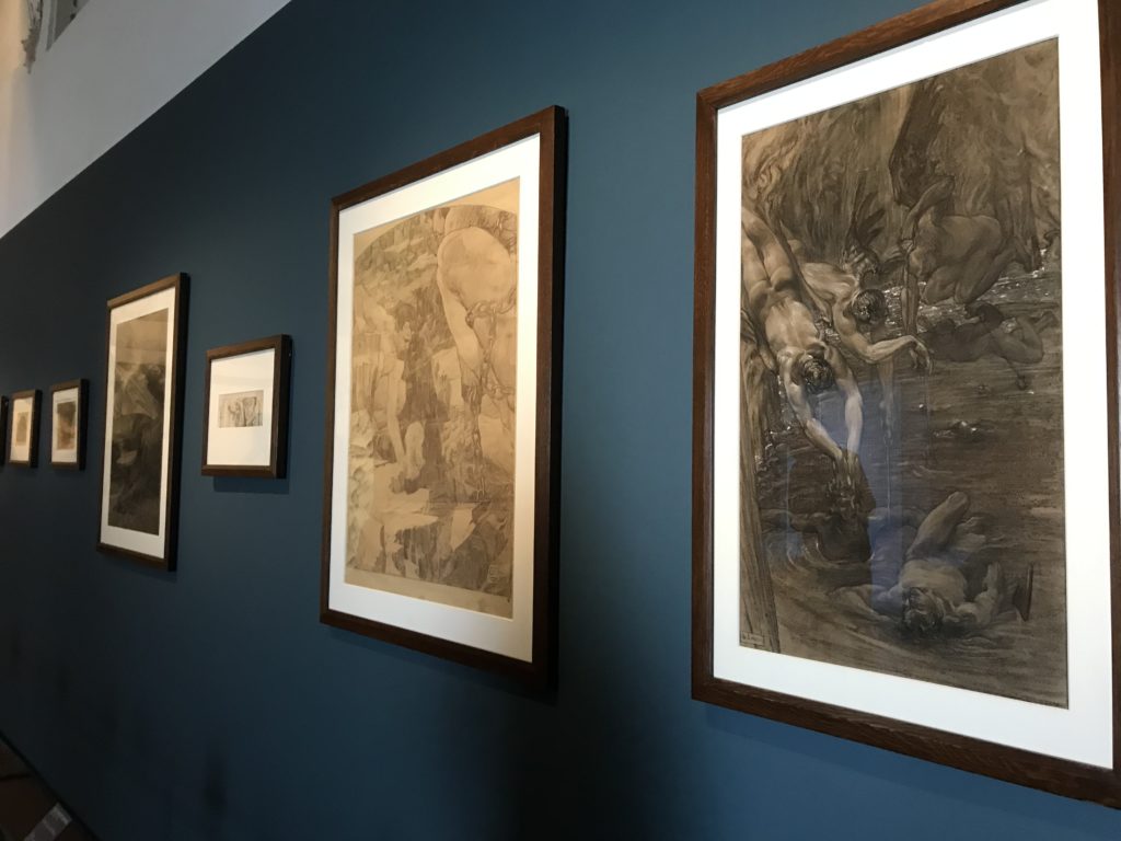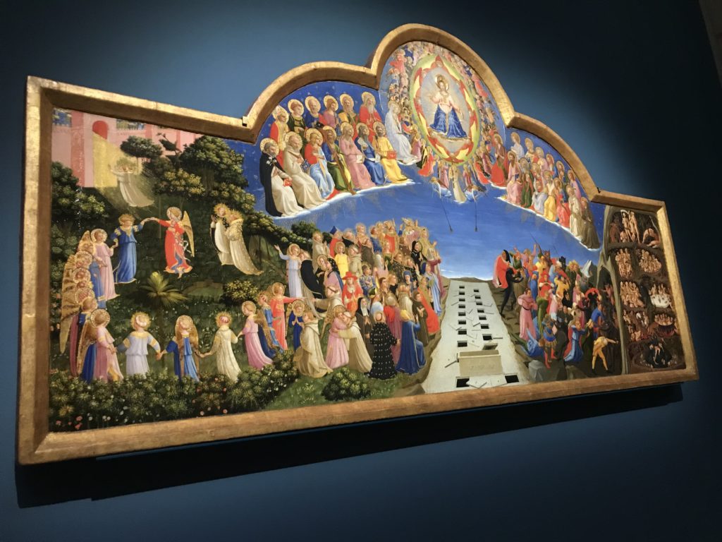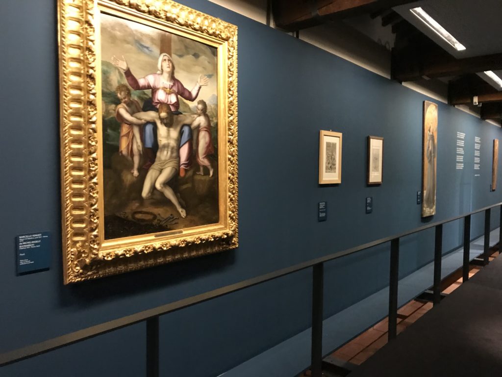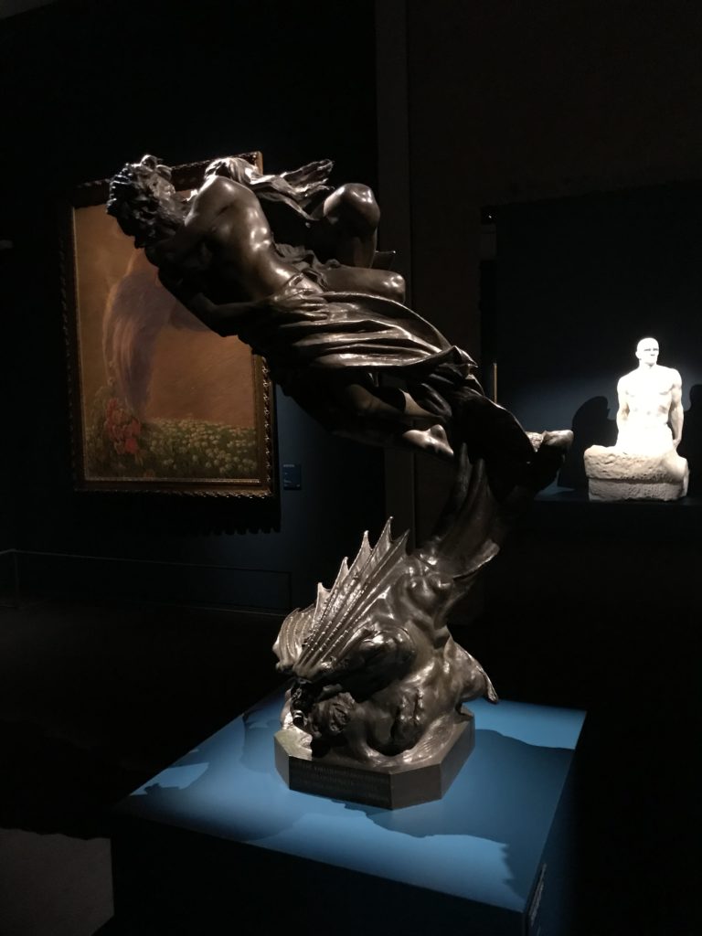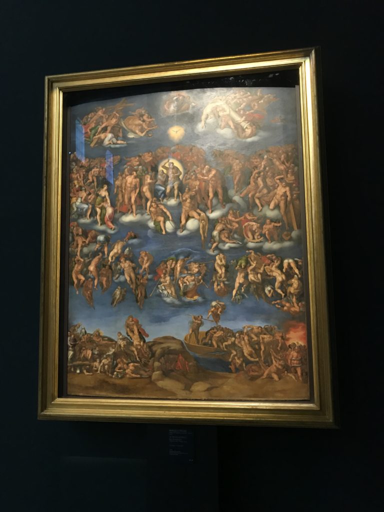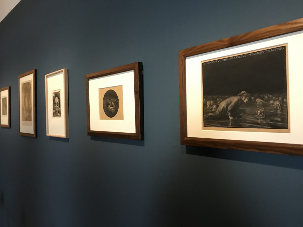 Forlì, tra il 1302 e 1313, è frequentata da Dante Alighieri, esule politico poiché ghibellino. La grande mostra multimediale sulla “Commedia”, e con rari pezzi provenienti da tutto il mondo, vuole rendere omaggio alla città romagnola. La figura di Dante è centrale, appunto, nella mostra “Dante, la visione dell’arte”, per le contaminazioni culturali in un arco temporale che va dal Duecento al Novecento. Le visioni figurative e a tratti oniriche di Cimabue, Giotto, Beato Angelico, Michelangelo, Tintoretto, Canova, Andrea del Castagno e molti altri sono state allestite, tutte, intorno al Sommo Poeta; e poi i preraffaeliti con Dante Gabriele Rossetti, i macchiaioli, i simbolisti e il Novecento di Galileo Chini, Plinio Nomellini, Felice Casorati, Lucio Fontana, Pablo Picasso. Più che una mostra, “Dante. La visione dell’arte”, nel settimo centenario della sua morte, è un evento culturale, un’occasione unica tra dipinti, sculture, disegni, illustrazioni e manoscritti. Beato Angelico, Michelangelo, Tintoretto gli autori che non ci si aspetta di vedere con alcune particolari opere (escono di rado dai loro musei), e oltre i maestri del Novecento su cui spicca Previati con il dipinto simbolista “Paolo e Francesca” di grande suggestione. La narrazione della “Divina Commedia” è l’asse centrale dell’esposizione intorno alla quale le arti visive si sono inchinate e hanno reso visuale e comunicativo per secoli, appunto, il suo testo, Michelangelo per primo, come effetto a dir poco esaltante della grande pittura scenica senza censure (inizialmente) nel “Giudizio” della Cappella Sistina. La mostra si pone su un livello internazionale, assolutamente da visitare, ho detto ai ragazzi del liceo “D. Cotugno” – L’Aquila durante l’esame di Stato. I grandi musei del pianeta: dall’Hermitage di San Pietroburgo, alla Walker Art Gallery di Liverpool, dalla National Gallery di Sofia alla Staatliche Kunstsammlungen di Dresda, dal Museum of Art di Toledo ai Musée des Beaux-Art di Nancy, di Tours, di Anger hanno fornito le loro più importanti collezioni insieme a quelli italiani: Galleria Nazionale d’Arte Moderna e Contemporanea di Roma, la Galleria Borghese, i Musei Vaticani e la Biblioteca Apostolica Vaticana, la Biblioteca Medicea Laurenziana, il Museo di Capodimonte. La visita. E’ come entrare in una dimensione sospesa che non si aspetta, bisogna poi avere il “Filo di Arianna” per muoversi nel complesso percorso espositivo – come fosse una capsula fuori dal tempo e dallo spazio – dentro musica, pittura, le parole e i versi di Dante proiettati nel complesso dei musei – convento di San Domenico come una sorta di ” lancio mediatico” insieme ai libri rari, proiezioni multimediali, allestimenti scenici, e infine trascorrere nella mostra un tempo particolare nel fascino interdisciplinare dei linguaggi e delle arti – un caleidoscopio che si muove nella griglia dei percorsi espositivi, – come non mai si potrà vedere per molti e molti anni nella grande bellezza figurativa, visionaria degli artisti, di secoli e secoli di interpretazioni su Dante, intorno a Dante, fino ai giorni d’oggi. La mostra: un’esperienza subliminale con i manoscritti e le prime edizioni a stampa della “Commedia”, i codici miniati del XIV e XV secolo, la stagione rinascimentale, il Neoclassicismo e la cultura preromantica e romantica, il Genio insomma, catalizza, anche il Risorgimento, la Prima Guerra Mondiale, e infine nella grafica e le edizioni a stampa tra la fine del Settecento e il Novecento mentre, nella scuola, Dante è sempre attuale e centrale per la formazione degli studenti, e per quel quinto canto dell’Inferno – l’ingresso nel Secondo Cerchio, i lussuriosi- divenuto un simbolo per un frastornato Dante. Vede loro che volano “due che ‘nsieme vanno,/ e paiono sì al vento esser , leggieri”… ( e come si diceva la straordinaria la pittura di Previati dei due amanti…) . Ma chi sono? Si svelano, ecco, l’incontro. Paolo e Francesca. In quel luogo buio e tetro di violenza, di bufera incessante, dove riecheggiano i pianti e gli stenti, si sente “ muggire” il vento, e i flussi di corrente contrari, e questa tempesta infernale non si arresta mai, trascina gli spiriti con la sua violenza, in particolare quando arrivano davanti al bordo del baratro infernale: la bufera delle passioni in vita è ora presente in quel luogo infimo dei lussuriosi, viceversa, Dante, utilizza parole che evocano la vita : “colombe”, “dolce”, “amor” quasi a tentare di assolverli, i due amanti, sdoganarli, i due amanti, a favore del “troppo amato…”, ma condannati infine all’ eterno dolore. Una dicotomia. Dunque lei, Francesca, parla, Paolo l’amore indissolubile piange intorno a lei, Dante è turbato, ha pena per quella categoria di dannati e Francesca è il primo peccatore a dialogare con lui che, sopraffatto, sviene. Una ulteriore prova della partecipazione emotiva davanti alla forza morale di Francesca, del suo spirito e della custodia, è l’affidamento e la protezione che ha nei confronti di Paolo quasi fosse indifeso. Ecco, ancora, torna l’interpretazione di Previati simbolista, visionario, che dipinge una versione di Paolo Malatesta e Francesca da Polenta (Paolo e Francesca, 1909, olio su tela, cm 230 x 260 ) nel vortice di quel campo visivo di una bellezza cruda, “oltre i confini della cornice”, la luminosità vibrante, elegante, immateriale dalle pennellate ondulate, i due volti cupi e solcati dalla stanchezza, i corpi giovani ma segnati dal dolore che si avvinghiano e salgono, quasi una levitazione alla ricerca della luce e dell’ossigeno sopra di loro, e le mani che si uniscono, i lunghi capelli rossi di Francesca che si sollevano dal corpo nel quadro quasi attratti da una forza occulta ascendente, i due corpi illuminati da un fascio di luce e dai colori tonali caldi e freddi nelle varianti cromatiche dell’ocra, della biacca, dei pas