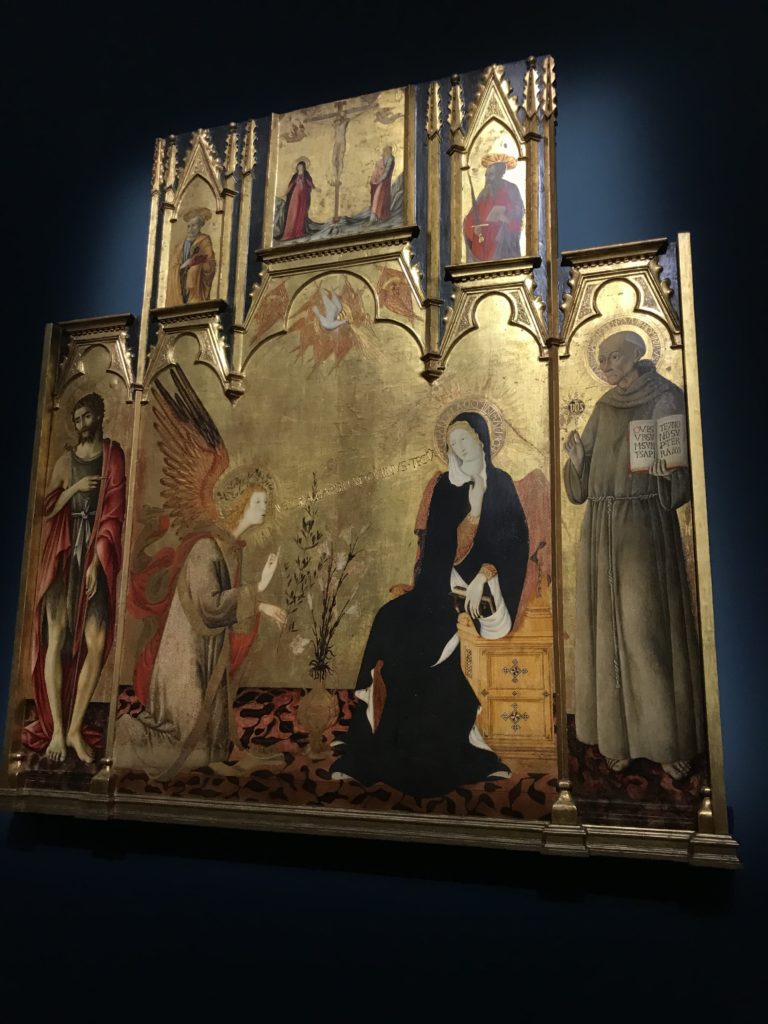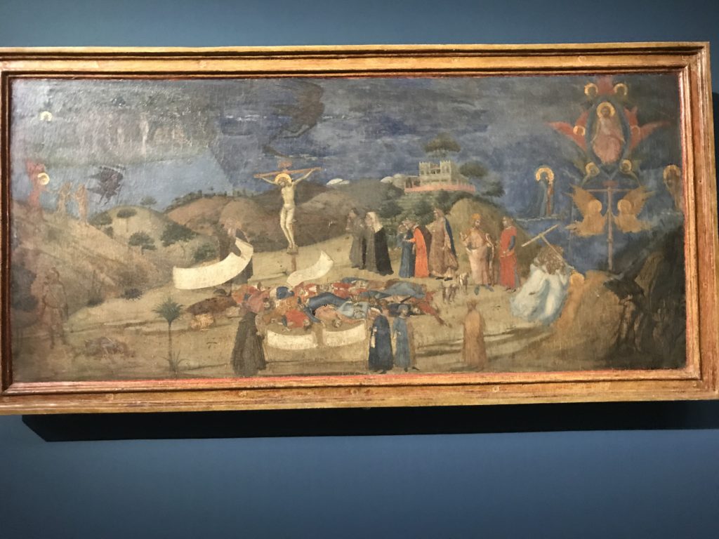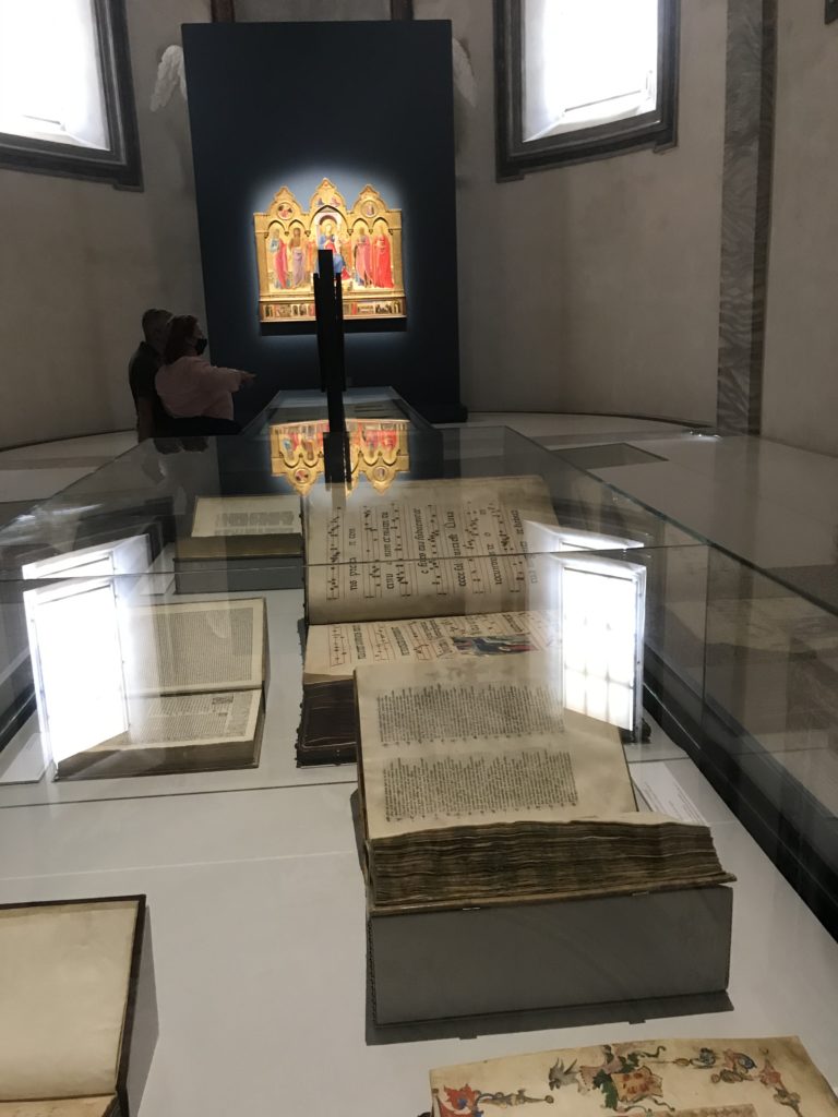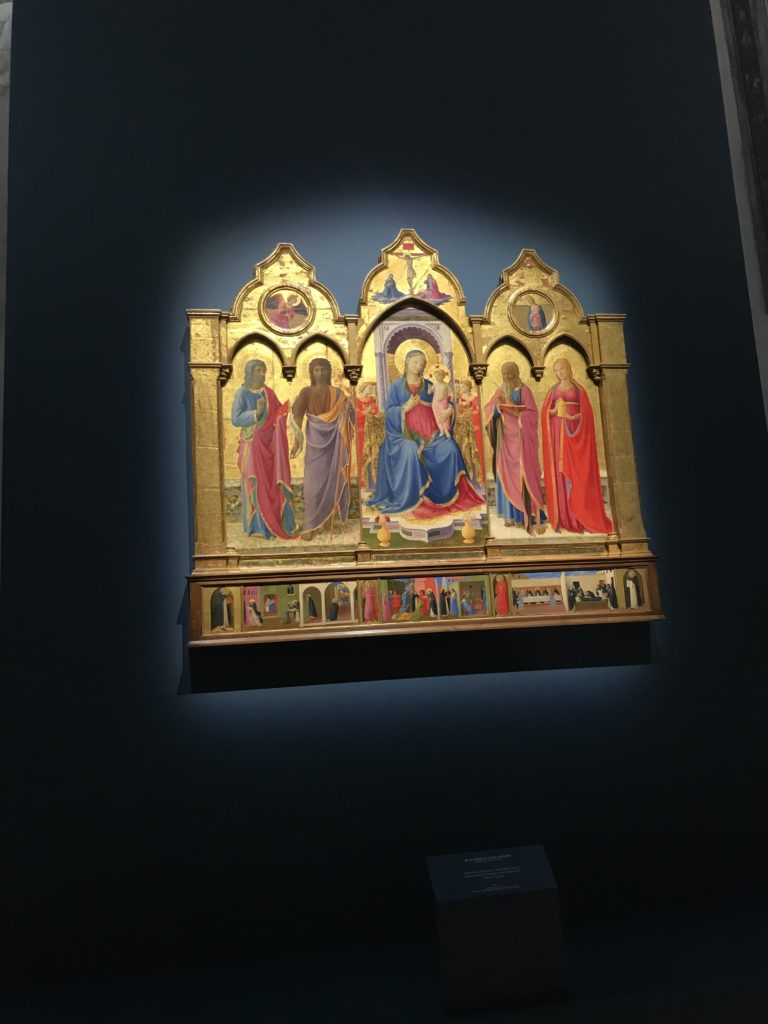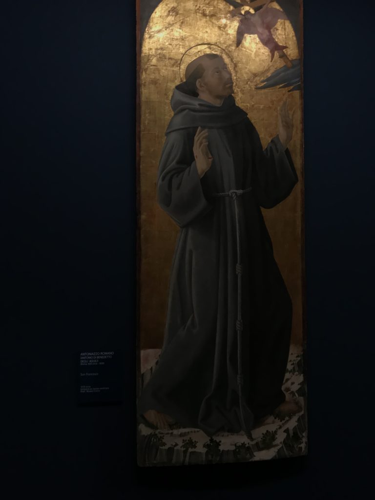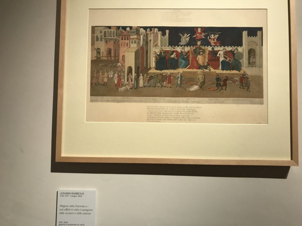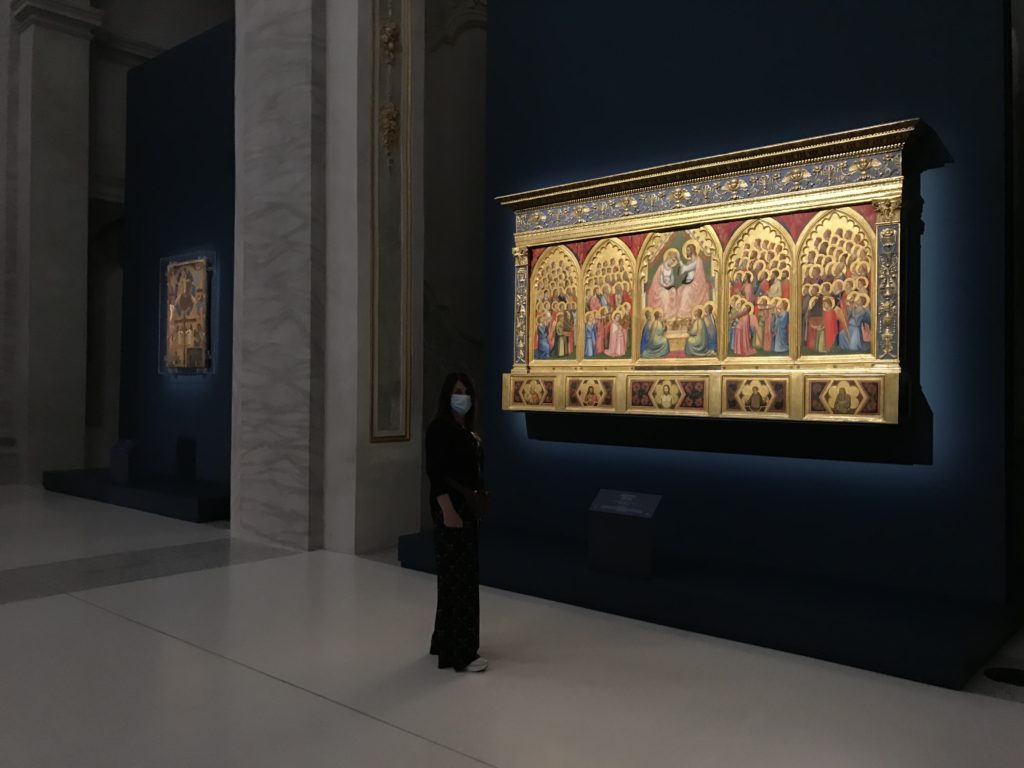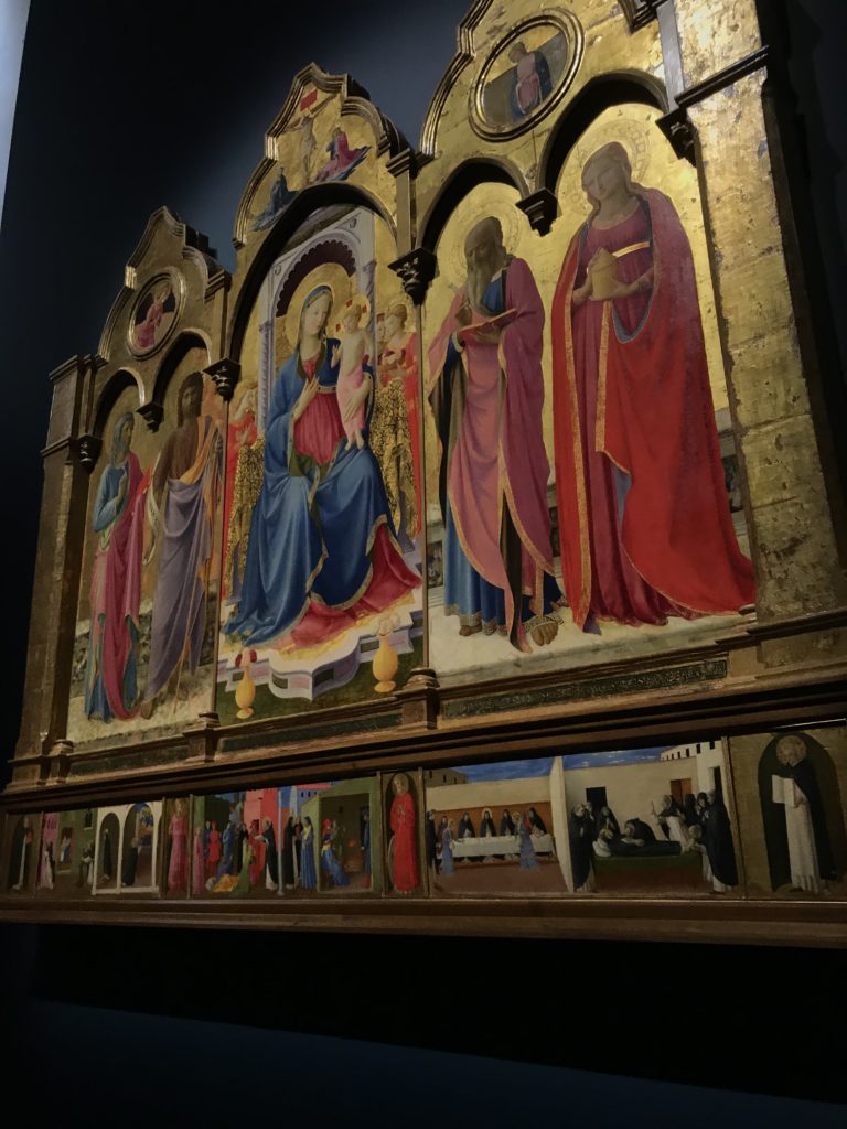 Forlì, tra il 1302 e 1313, è frequentata da Dante Alighieri, esule politico poiché ghibellino. La grande mostra multimediale sulla “Commedia”, e con rari pezzi provenienti da tutto il mondo, vuole rendere omaggio alla città romagnola. La figura di Dante è centrale, appunto, nella mostra “Dante, la visione dell’arte”, per le contaminazioni culturali in un arco temporale che va dal Duecento al Novecento. Le visioni figurative e a tratti oniriche di Cimabue, Giotto, Beato Angelico, Michelangelo, Tintoretto, Canova, Andrea del Castagno e molti altri sono state allestite, tutte, intorno al Sommo Poeta; e poi i preraffaeliti con Dante Gabriele Rossetti, i macchiaioli, i simbolisti e il Novecento di Galileo Chini, Plinio Nomellini, Felice Casorati, Lucio Fontana, Pablo Picasso. Più che una mostra, “Dante. La visione dell’arte”, nel settimo centenario della sua morte, è un evento culturale, un’occasione unica tra dipinti, sculture, disegni, illustrazioni e manoscritti. Beato Angelico, Michelangelo, Tintoretto gli autori che non ci si aspetta di vedere con alcune particolari opere (escono di rado dai loro musei), e oltre i maestri del Novecento su cui spicca Previati con il dipinto simbolista “Paolo e Francesca” di grande suggestione. La narrazione della “Divina Commedia” è l’asse centrale dell’esposizione intorno alla quale le arti visive si sono inchinate e hanno reso visuale e comunicativo per secoli, appunto, il suo testo, Michelangelo per primo, come effetto a dir poco esaltante della grande pittura scenica senza censure (inizialmente) nel “Giudizio” della Cappella Sistina. La mostra si pone su un livello internazionale, assolutamente da visitare, ho detto ai ragazzi del liceo “D. Cotugno” – L’Aquila durante l’esame di Stato. I grandi musei del pianeta: dall’Hermitage di San Pietroburgo, alla Walker Art Gallery di Liverpool, dalla National Gallery di Sofia alla Staatliche Kunstsammlungen di Dresda, dal Museum of Art di Toledo ai Musée des Beaux-Art di Nancy, di Tours, di Anger hanno fornito le loro più importanti collezioni insieme a quelli italiani: Galleria Nazionale d’Arte Moderna e Contemporanea di Roma, la Galleria Borghese, i Musei Vaticani e la Biblioteca Apostolica Vaticana, la Biblioteca Medicea Laurenziana, il Museo di Capodimonte. La visita. E’ come entrare in una dimensione sospesa che non si aspetta, bisogna poi avere il “Filo di Arianna” per muoversi nel complesso percorso espositivo – come fosse una capsula fuori dal tempo e dallo spazio – dentro musica, pittura, le parole e i versi di Dante proiettati nel complesso dei musei – convento di San Domenico come una sorta di ” lancio mediatico” insieme ai libri rari, proiezioni multimediali, allestimenti scenici, e infine trascorrere nella mostra un tempo particolare nel fascino interdisciplinare dei linguaggi e delle arti – un caleidoscopio che si muove nella griglia dei percorsi espositivi, – come non mai si potrà vedere per molti e molti anni nella grande bellezza figurativa, visionaria degli artisti, di secoli e secoli di interpretazioni su Dante, intorno a Dante, fino ai giorni d’oggi. La mostra: un’esperienza subliminale con i manoscritti e le prime edizioni a stampa della “Commedia”, i codici miniati del XIV e XV secolo, la stagione rinascimentale, il Neoclassicismo e la cultura preromantica e romantica, il Genio insomma, catalizza, anche il Risorgimento, la Prima Guerra Mondiale, e infine nella grafica e le edizioni a stampa tra la fine del Settecento e il Novecento mentre, nella scuola, Dante è sempre attuale e centrale per la formazione degli studenti, e per quel quinto canto dell’Inferno – l’ingresso nel Secondo Cerchio, i lussuriosi- divenuto un simbolo per un frastornato Dante. Vede loro che volano “due che ‘nsieme vanno,/ e paiono sì al vento esser , leggieri”… ( e come si diceva la straordinaria la pittura di Previati dei due amanti…) . Ma chi sono? Si svelano, ecco, l’incontro. Paolo e Francesca. In quel luogo buio e tetro di violenza, di bufera incessante, dove riecheggiano i pianti e gli stenti, si sente “ muggire” il vento, e i flussi di corrente contrari, e questa tempesta infernale non si arresta mai, trascina gli spiriti con la sua violenza, in particolare quando arrivano davanti al bordo del baratro infernale: la bufera delle passioni in vita è ora presente in quel luogo infimo dei lussuriosi, viceversa, Dante, utilizza parole che evocano la vita : “colombe”, “dolce”, “amor” quasi a tentare di assolverli, i due amanti, sdoganarli, i due amanti, a favore del “troppo amato…”, ma condannati infine all’ eterno dolore. Una dicotomia. Dunque lei, Francesca, parla, Paolo l’amore indissolubile piange intorno a lei, Dante è turbato, ha pena per quella categoria di dannati e Francesca è il primo peccatore a dialogare con lui che, sopraffatto, sviene. Una ulteriore prova della partecipazione emotiva davanti alla forza morale di Francesca, del suo spirito e della custodia, è l’affidamento e la protezione che ha nei confronti di Paolo quasi fosse indifeso. Ecco, ancora, torna l’interpretazione di Previati simbolista, visionario, che dipinge una versione di Paolo Malatesta e Francesca da Polenta (Paolo e Francesca, 1909, olio su tela, cm 230 x 260 ) nel vortice di quel campo visivo di una bellezza cruda, “oltre i confini della cornice”, la luminosità vibrante, elegante, immateriale dalle pennellate ondulate, i due volti cupi e solcati dalla stanchezza, i corpi giovani ma segnati dal dolore che si avvinghiano e salgono, quasi una levitazione alla ricerca della luce e dell’ossigeno sopra di loro, e le mani che si uniscono, i lunghi capelli rossi di Francesca che si sollevano dal corpo nel quadro quasi attratti da una forza occulta ascendente, i due corpi illuminati da un fascio di luce e dai colori tonali caldi e freddi nelle varianti cromatiche dell’ocra, della biacca, dei pas