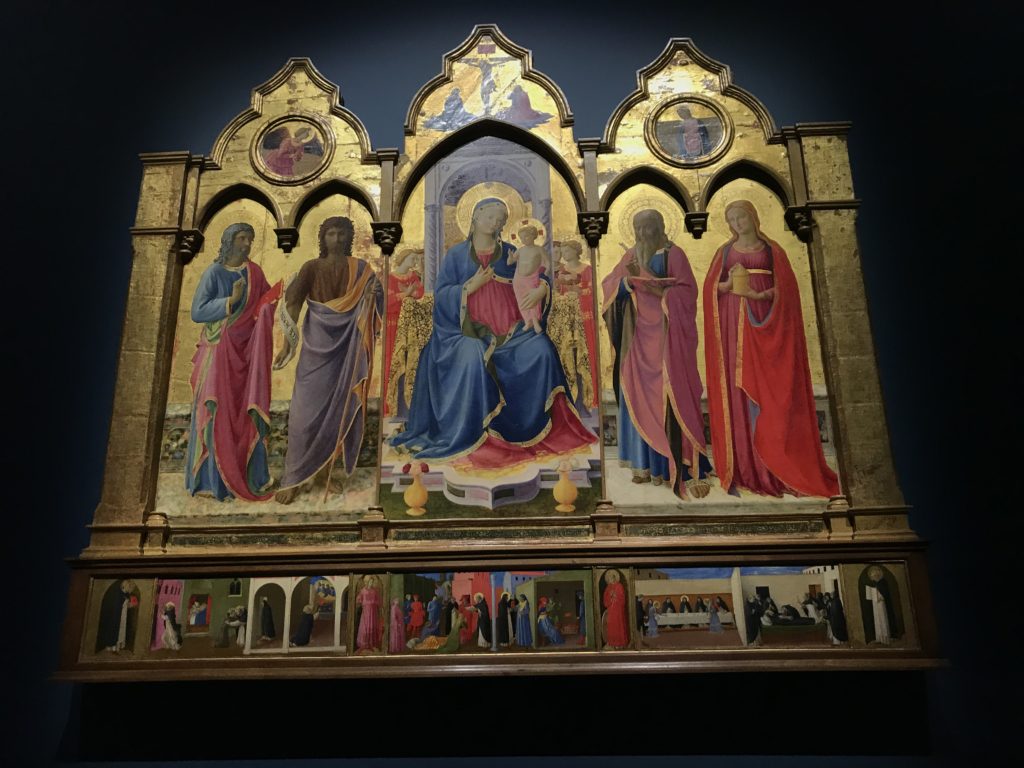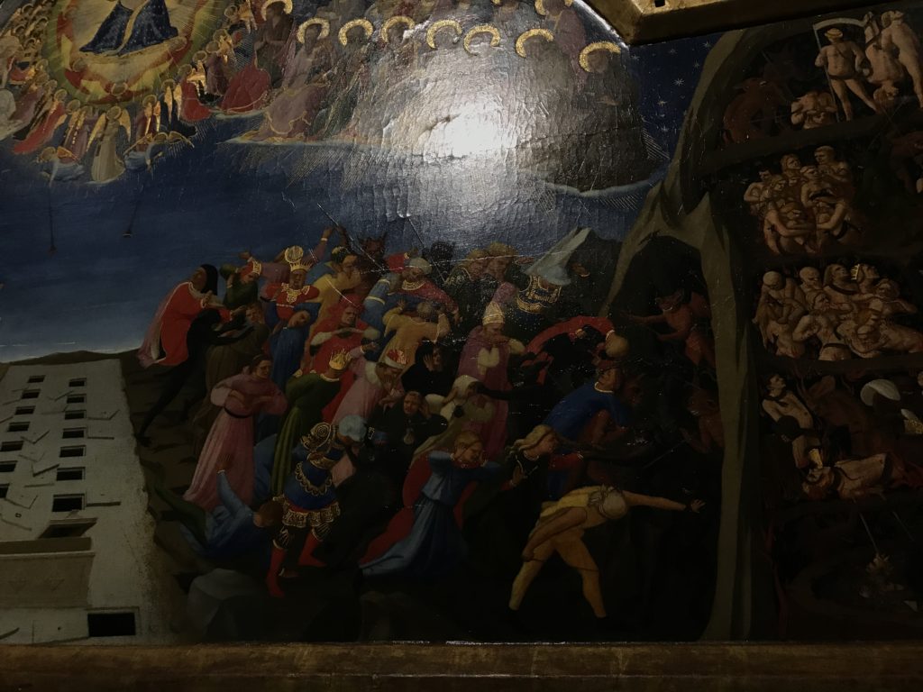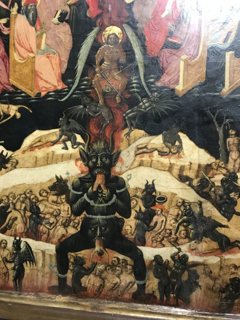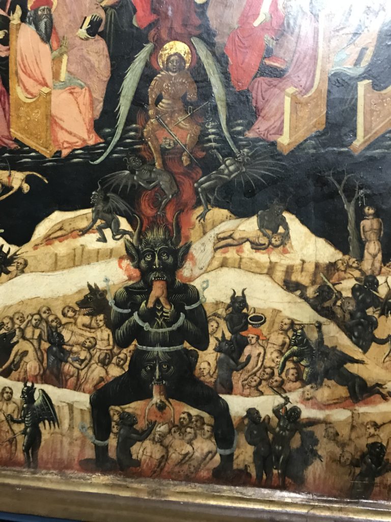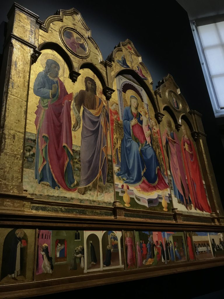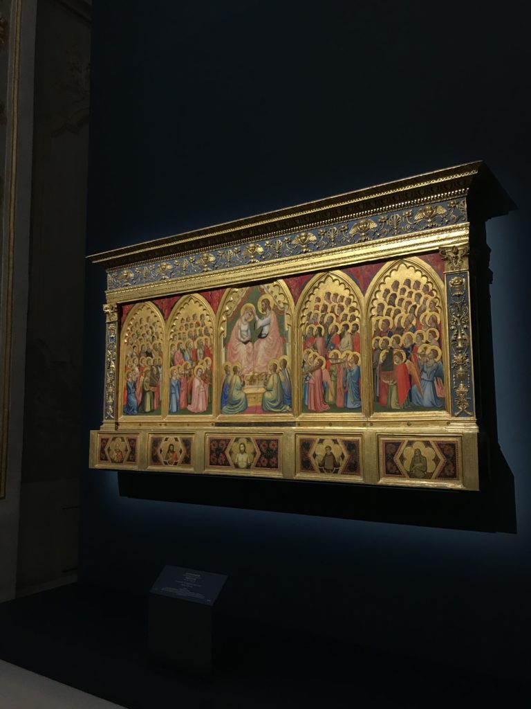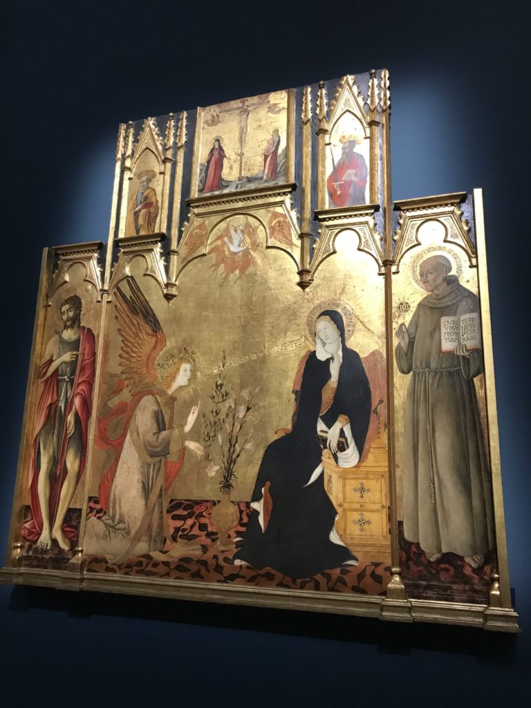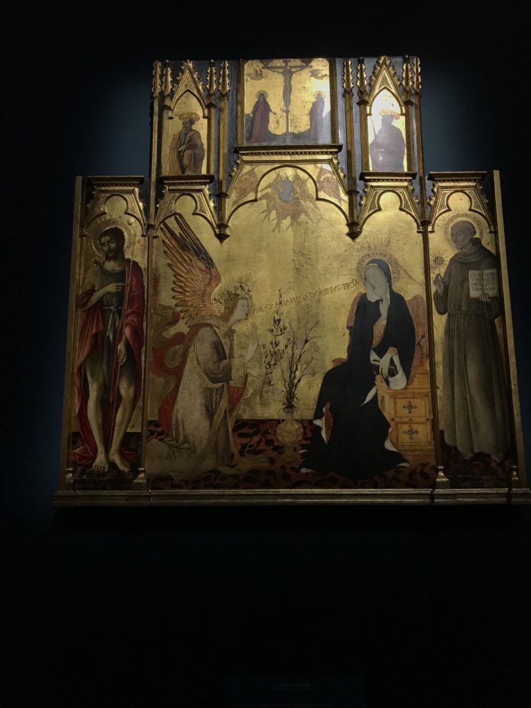 Forlì, tra il 1302 e 1313, è frequentata da Dante Alighieri, esule politico poiché ghibellino. La grande mostra multimediale sulla “Commedia”, e con rari pezzi provenienti da tutto il mondo, vuole rendere omaggio alla città romagnola. La figura di Dante è centrale, appunto, nella mostra “Dante, la visione dell’arte”, per le contaminazioni culturali in un arco temporale che va dal Duecento al Novecento. Le visioni figurative e a tratti oniriche di Cimabue, Giotto, Beato Angelico, Michelangelo, Tintoretto, Canova, Andrea del Castagno e molti altri sono state allestite, tutte, intorno al Sommo Poeta; e poi i preraffaeliti con Dante Gabriele Rossetti, i macchiaioli, i simbolisti e il Novecento di Galileo Chini, Plinio Nomellini, Felice Casorati, Lucio Fontana, Pablo Picasso. Più che una mostra, “Dante. La visione dell’arte”, nel settimo centenario della sua morte, è un evento culturale, un’occasione unica tra dipinti, sculture, disegni, illustrazioni e manoscritti. Beato Angelico, Michelangelo, Tintoretto gli autori che non ci si aspetta di vedere con alcune particolari opere (escono di rado dai loro musei), e oltre i maestri del Novecento su cui spicca Previati con il dipinto simbolista “Paolo e Francesca” di grande suggestione. La narrazione della “Divina Commedia” è l’asse centrale dell’esposizione intorno alla quale le arti visive si sono inchinate e hanno reso visuale e comunicativo per secoli, appunto, il suo testo, Michelangelo per primo, come effetto a dir poco esaltante della grande pittura scenica senza censure (inizialmente) nel “Giudizio” della Cappella Sistina. La mostra si pone su un livello internazionale, assolutamente da visitare, ho detto ai ragazzi del liceo “D. Cotugno” – L’Aquila durante l’esame di Stato. I grandi musei del pianeta: dall’Hermitage di San Pietroburgo, alla Walker Art Gallery di Liverpool, dalla National Gallery di Sofia alla Staatliche Kunstsammlungen di Dresda, dal Museum of Art di Toledo ai Musée des Beaux-Art di Nancy, di Tours, di Anger hanno fornito le loro più importanti collezioni insieme a quelli italiani: Galleria Nazionale d’Arte Moderna e Contemporanea di Roma, la Galleria Borghese, i Musei Vaticani e la Biblioteca Apostolica Vaticana, la Biblioteca Medicea Laurenziana, il Museo di Capodimonte. La visita. E’ come entrare in una dimensione sospesa che non si aspetta, bisogna poi avere il “Filo di Arianna” per muoversi nel complesso percorso espositivo – come fosse una capsula fuori dal tempo e dallo spazio – dentro musica, pittura, le parole e i versi di Dante proiettati nel complesso dei musei – convento di San Domenico come una sorta di ” lancio mediatico” insieme ai libri rari, proiezioni multimediali, allestimenti scenici, e infine trascorrere nella mostra un tempo particolare nel fascino interdisciplinare dei linguaggi e delle arti – un caleidoscopio che si muove nella griglia dei percorsi espositivi, – come non mai si potrà vedere per molti e molti anni nella grande bellezza figurativa, visionaria degli artisti, di secoli e secoli di interpretazioni su Dante, intorno a Dante, fino ai giorni d’oggi. La mostra: un’esperienza subliminale con i manoscritti e le prime edizioni a stampa della “Commedia”, i codici miniati del XIV e XV secolo, la stagione rinascimentale, il Neoclassicismo e la cultura preromantica e romantica, il Genio insomma, catalizza, anche il Risorgimento, la Prima Guerra Mondiale, e infine nella grafica e le edizioni a stampa tra la fine del Settecento e il Novecento mentre, nella scuola, Dante è sempre attuale e centrale per la formazione degli studenti, e per quel quinto canto dell’Inferno – l’ingresso nel Secondo Cerchio, i lussuriosi- divenuto un simbolo per un frastornato Dante. Vede loro che volano “due che ‘nsieme vanno,/ e paiono sì al vento esser , leggieri”… ( e come si diceva la straordinaria la pittura di Previati dei due amanti…) . Ma chi sono? Si svelano, ecco, l’incontro. Paolo e Francesca. In quel luogo buio e tetro di violenza, di bufera incessante, dove riecheggiano i pianti e gli stenti, si sente “ muggire” il vento, e i flussi di corrente contrari, e questa tempesta infernale non si arresta mai, trascina gli spiriti con la sua violenza, in particolare quando arrivano davanti al bordo del baratro infernale: la bufera delle passioni in vita è ora presente in quel luogo infimo dei lussuriosi, viceversa, Dante, utilizza parole che evocano la vita : “colombe”, “dolce”, “amor” quasi a tentare di assolverli, i due amanti, sdoganarli, i due amanti, a favore del “troppo amato…”, ma condannati infine all’ eterno dolore. Una dicotomia. Dunque lei, Francesca, parla, Paolo l’amore indissolubile piange intorno a lei, Dante è turbato, ha pena per quella categoria di dannati e Francesca è il primo peccatore a dialogare con lui che, sopraffatto, sviene. Una ulteriore prova della partecipazione emotiva davanti alla forza morale di Francesca, del suo spirito e della custodia, è l’affidamento e la protezione che ha nei confronti di Paolo quasi fosse indifeso. Ecco, ancora, torna l’interpretazione di Previati simbolista, visionario, che dipinge una versione di Paolo Malatesta e Francesca da Polenta (Paolo e Francesca, 1909, olio su tela, cm 230 x 260 ) nel vortice di quel campo visivo di una bellezza cruda, “oltre i confini della cornice”, la luminosità vibrante, elegante, immateriale dalle pennellate ondulate, i due volti cupi e solcati dalla stanchezza, i corpi giovani ma segnati dal dolore che si avvinghiano e salgono, quasi una levitazione alla ricerca della luce e dell’ossigeno sopra di loro, e le mani che si uniscono, i lunghi capelli rossi di Francesca che si sollevano dal corpo nel quadro quasi attratti da una forza occulta ascendente, i due corpi illuminati da un fascio di luce e dai colori tonali caldi e freddi nelle varianti cromatiche dell’ocra, della biacca, dei pas