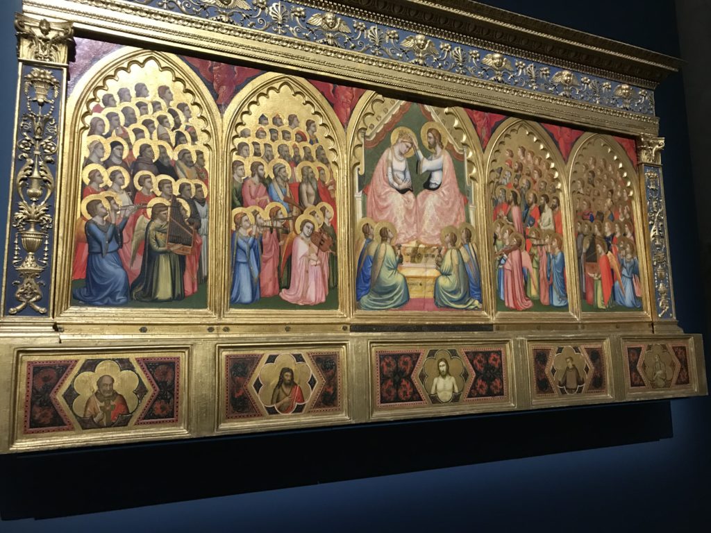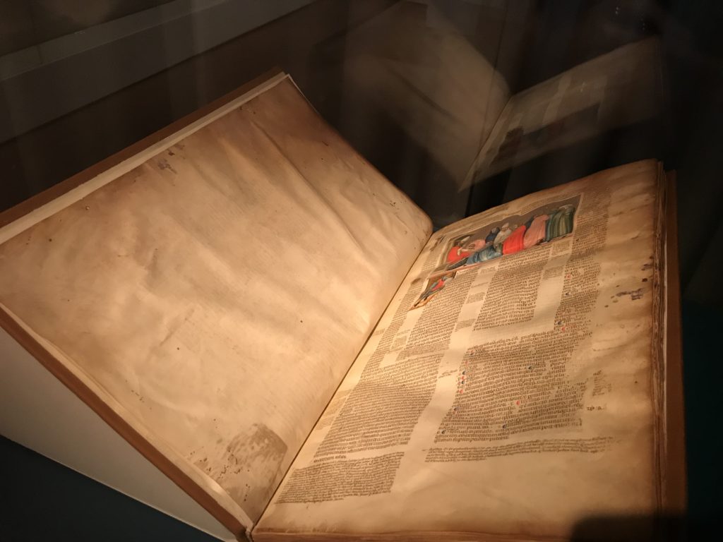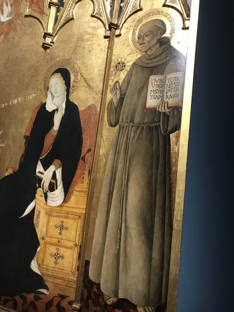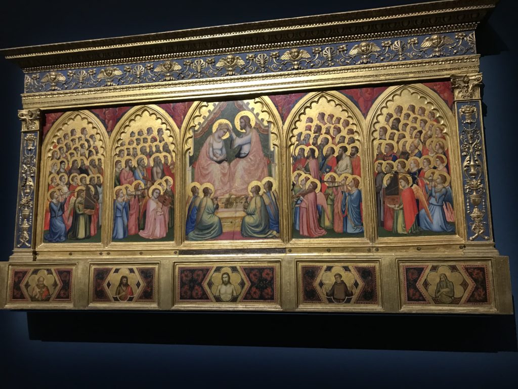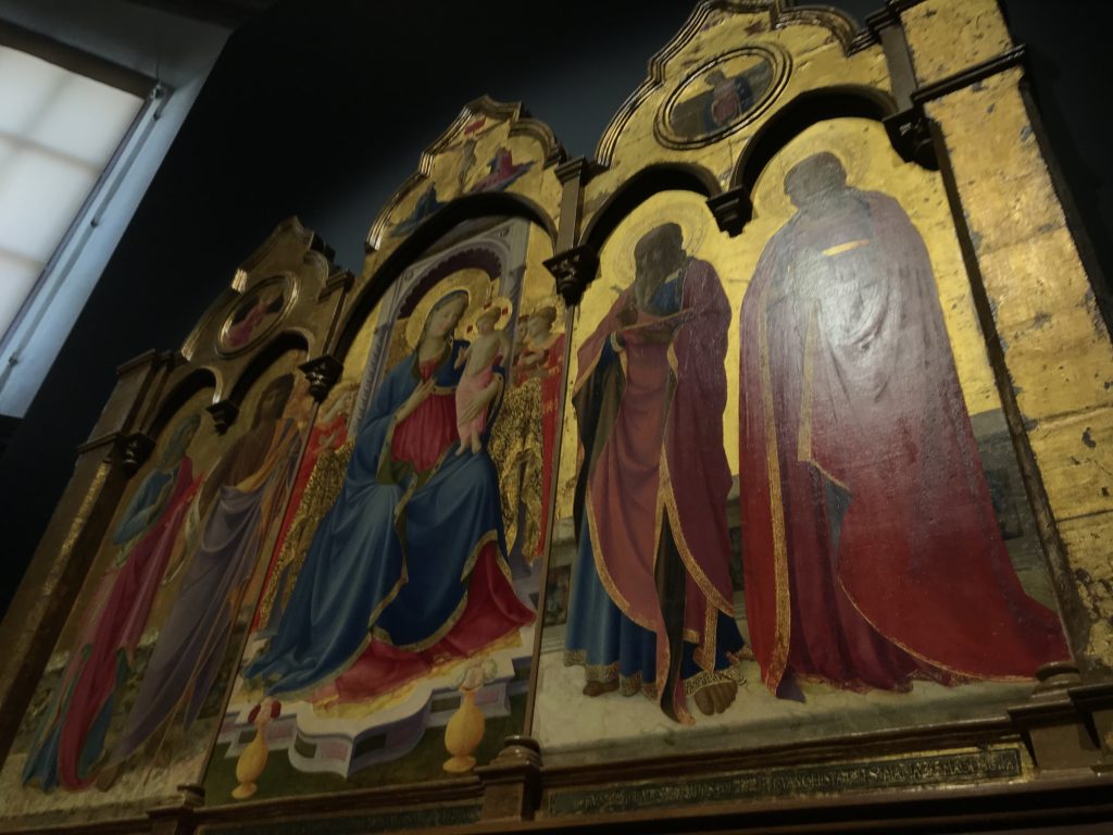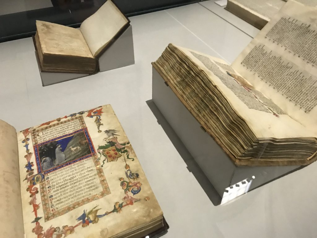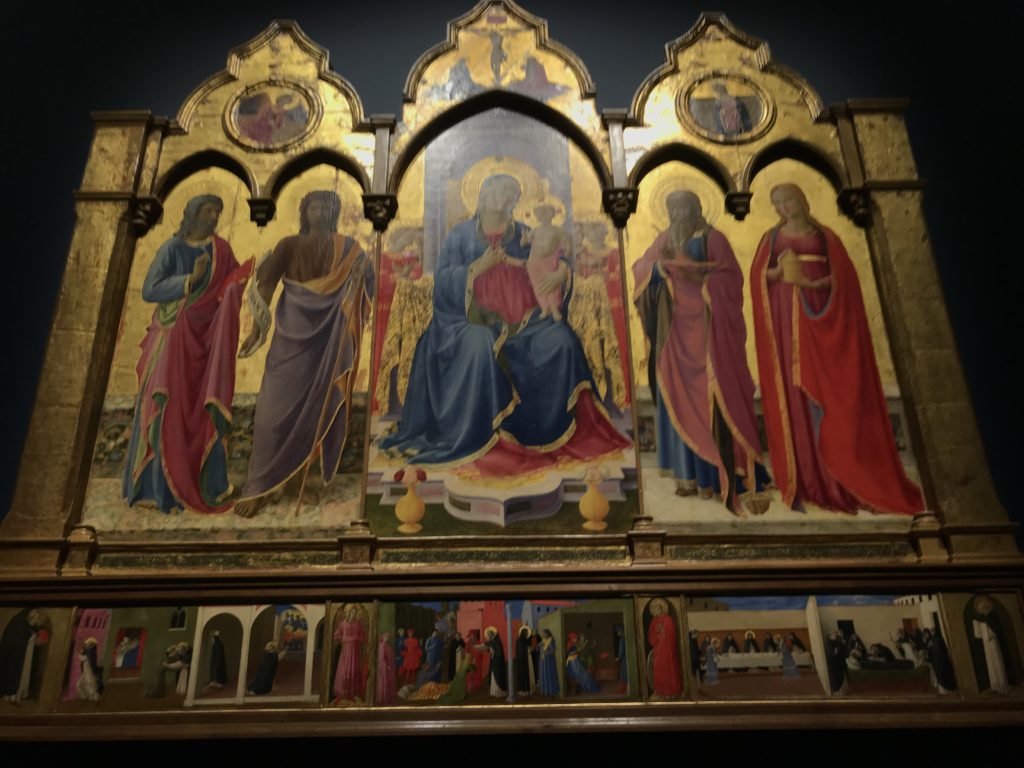 Forlì, tra il 1302 e 1313, è frequentata da Dante Alighieri, esule politico poiché ghibellino. La grande mostra multimediale sulla “Commedia”, e con rari pezzi provenienti da tutto il mondo, vuole rendere omaggio alla città romagnola. La figura di Dante è centrale, appunto, nella mostra “Dante, la visione dell’arte”, per le contaminazioni culturali in un arco temporale che va dal Duecento al Novecento. Le visioni figurative e a tratti oniriche di Cimabue, Giotto, Beato Angelico, Michelangelo, Tintoretto, Canova, Andrea del Castagno e molti altri sono state allestite, tutte, intorno al Sommo Poeta; e poi i preraffaeliti con Dante Gabriele Rossetti, i macchiaioli, i simbolisti e il Novecento di Galileo Chini, Plinio Nomellini, Felice Casorati, Lucio Fontana, Pablo Picasso. Più che una mostra, “Dante. La visione dell’arte”, nel settimo centenario della sua morte, è un evento culturale, un’occasione unica tra dipinti, sculture, disegni, illustrazioni e manoscritti. Beato Angelico, Michelangelo, Tintoretto gli autori che non ci si aspetta di vedere con alcune particolari opere (escono di rado dai loro musei), e oltre i maestri del Novecento su cui spicca Previati con il dipinto simbolista “Paolo e Francesca” di grande suggestione. La narrazione della “Divina Commedia” è l’asse centrale dell’esposizione intorno alla quale le arti visive si sono inchinate e hanno reso visuale e comunicativo per secoli, appunto, il suo testo, Michelangelo per primo, come effetto a dir poco esaltante della grande pittura scenica senza censure (inizialmente) nel “Giudizio” della Cappella Sistina. La mostra si pone su un livello internazionale, assolutamente da visitare, ho detto ai ragazzi del liceo “D. Cotugno” – L’Aquila durante l’esame di Stato. I grandi musei del pianeta: dall’Hermitage di San Pietroburgo, alla Walker Art Gallery di Liverpool, dalla National Gallery di Sofia alla Staatliche Kunstsammlungen di Dresda, dal Museum of Art di Toledo ai Musée des Beaux-Art di Nancy, di Tours, di Anger hanno fornito le loro più importanti collezioni insieme a quelli italiani: Galleria Nazionale d’Arte Moderna e Contemporanea di Roma, la Galleria Borghese, i Musei Vaticani e la Biblioteca Apostolica Vaticana, la Biblioteca Medicea Laurenziana, il Museo di Capodimonte. La visita. E’ come entrare in una dimensione sospesa che non si aspetta, bisogna poi avere il “Filo di Arianna” per muoversi nel complesso percorso espositivo – come fosse una capsula fuori dal tempo e dallo spazio – dentro musica, pittura, le parole e i versi di Dante proiettati nel complesso dei musei – convento di San Domenico come una sorta di ” lancio mediatico” insieme ai libri rari, proiezioni multimediali, allestimenti scenici, e infine trascorrere nella mostra un tempo particolare nel fascino interdisciplinare dei linguaggi e delle arti – un caleidoscopio che si muove nella griglia dei percorsi espositivi, – come non mai si potrà vedere per molti e molti anni nella grande bellezza figurativa, visionaria degli artisti, di secoli e secoli di interpretazioni su Dante, intorno a Dante, fino ai giorni d’oggi. La mostra: un’esperienza subliminale con i manoscritti e le prime edizioni a stampa della “Commedia”, i codici miniati del XIV e XV secolo, la stagione rinascimentale, il Neoclassicismo e la cultura preromantica e romantica, il Genio insomma, catalizza, anche il Risorgimento, la Prima Guerra Mondiale, e infine nella grafica e le edizioni a stampa tra la fine del Settecento e il Novecento mentre, nella scuola, Dante è sempre attuale e centrale per la formazione degli studenti, e per quel quinto canto dell’Inferno – l’ingresso nel Secondo Cerchio, i lussuriosi- divenuto un simbolo per un frastornato Dante. Vede loro che volano “due che ‘nsieme vanno,/ e paiono sì al vento esser , leggieri”… ( e come si diceva la straordinaria la pittura di Previati dei due amanti…) . Ma chi sono? Si svelano, ecco, l’incontro. Paolo e Francesca. In quel luogo buio e tetro di violenza, di bufera incessante, dove riecheggiano i pianti e gli stenti, si sente “ muggire” il vento, e i flussi di corrente contrari, e questa tempesta infernale non si arresta mai, trascina gli spiriti con la sua violenza, in particolare quando arrivano davanti al bordo del baratro infernale: la bufera delle passioni in vita è ora presente in quel luogo infimo dei lussuriosi, viceversa, Dante, utilizza parole che evocano la vita : “colombe”, “dolce”, “amor” quasi a tentare di assolverli, i due amanti, sdoganarli, i due amanti, a favore del “troppo amato…”, ma condannati infine all’ eterno dolore. Una dicotomia. Dunque lei, Francesca, parla, Paolo l’amore indissolubile piange intorno a lei, Dante è turbato, ha pena per quella categoria di dannati e Francesca è il primo peccatore a dialogare con lui che, sopraffatto, sviene. Una ulteriore prova della partecipazione emotiva davanti alla forza morale di Francesca, del suo spirito e della custodia, è l’affidamento e la protezione che ha nei confronti di Paolo quasi fosse indifeso. Ecco, ancora, torna l’interpretazione di Previati simbolista, visionario, che dipinge una versione di Paolo Malatesta e Francesca da Polenta (Paolo e Francesca, 1909, olio su tela, cm 230 x 260 ) nel vortice di quel campo visivo di una bellezza cruda, “oltre i confini della cornice”, la luminosità vibrante, elegante, immateriale dalle pennellate ondulate, i due volti cupi e solcati dalla stanchezza, i corpi giovani ma segnati dal dolore che si avvinghiano e salgono, quasi una levitazione alla ricerca della luce e dell’ossigeno sopra di loro, e le mani che si uniscono, i lunghi capelli rossi di Francesca che si sollevano dal corpo nel quadro quasi attratti da una forza occulta ascendente, i due corpi illuminati da un fascio di luce e dai colori tonali caldi e freddi nelle varianti cromatiche dell’ocra, della biacca, dei pas