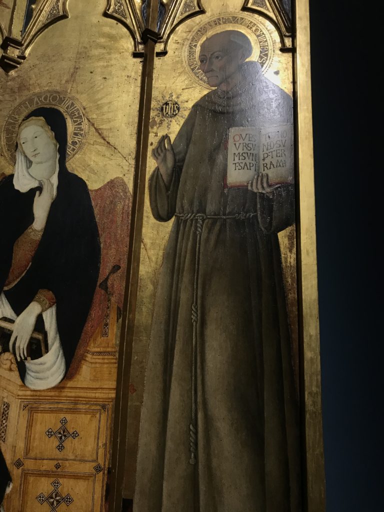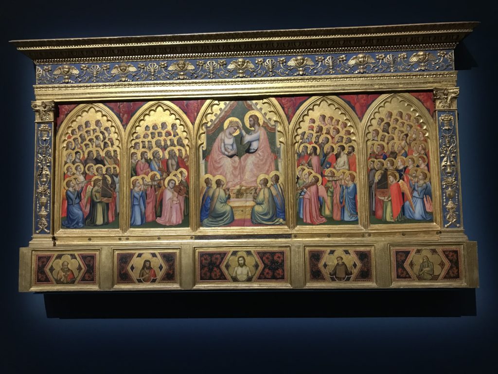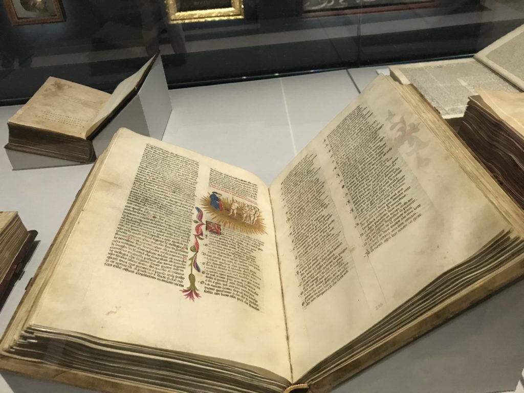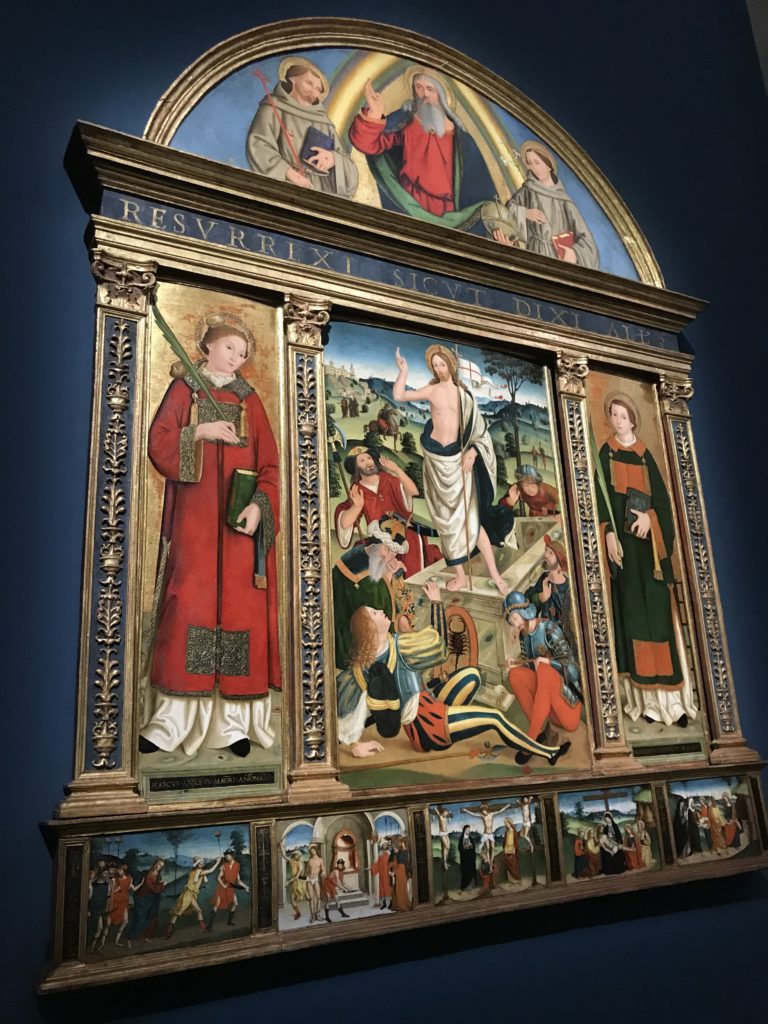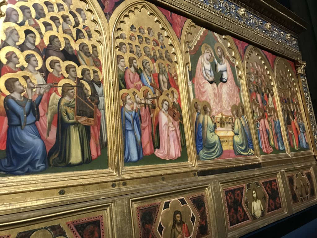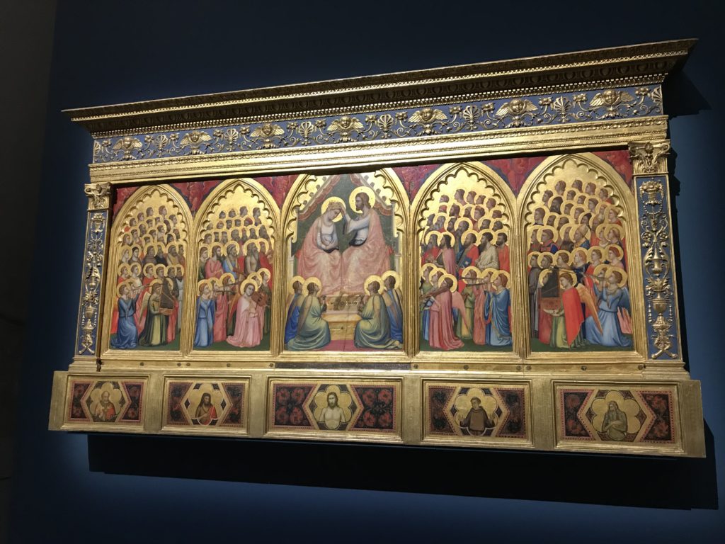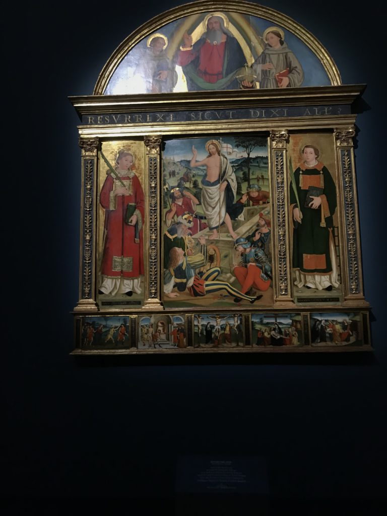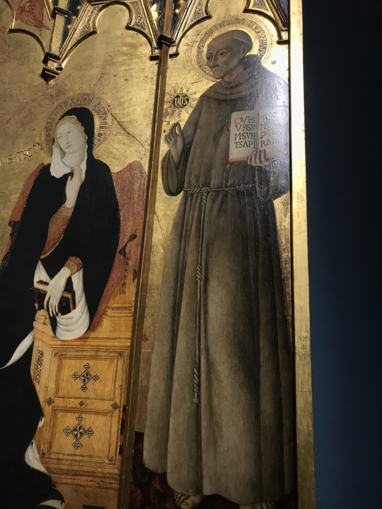 Forlì, tra il 1302 e 1313, è frequentata da Dante Alighieri, esule politico poiché ghibellino. La grande mostra multimediale sulla “Commedia”, e con rari pezzi provenienti da tutto il mondo, vuole rendere omaggio alla città romagnola. La figura di Dante è centrale, appunto, nella mostra “Dante, la visione dell’arte”, per le contaminazioni culturali in un arco temporale che va dal Duecento al Novecento. Le visioni figurative e a tratti oniriche di Cimabue, Giotto, Beato Angelico, Michelangelo, Tintoretto, Canova, Andrea del Castagno e molti altri sono state allestite, tutte, intorno al Sommo Poeta; e poi i preraffaeliti con Dante Gabriele Rossetti, i macchiaioli, i simbolisti e il Novecento di Galileo Chini, Plinio Nomellini, Felice Casorati, Lucio Fontana, Pablo Picasso. Più che una mostra, “Dante. La visione dell’arte”, nel settimo centenario della sua morte, è un evento culturale, un’occasione unica tra dipinti, sculture, disegni, illustrazioni e manoscritti. Beato Angelico, Michelangelo, Tintoretto gli autori che non ci si aspetta di vedere con alcune particolari opere (escono di rado dai loro musei), e oltre i maestri del Novecento su cui spicca Previati con il dipinto simbolista “Paolo e Francesca” di grande suggestione. La narrazione della “Divina Commedia” è l’asse centrale dell’esposizione intorno alla quale le arti visive si sono inchinate e hanno reso visuale e comunicativo per secoli, appunto, il suo testo, Michelangelo per primo, come effetto a dir poco esaltante della grande pittura scenica senza censure (inizialmente) nel “Giudizio” della Cappella Sistina. La mostra si pone su un livello internazionale, assolutamente da visitare, ho detto ai ragazzi del liceo “D. Cotugno” – L’Aquila durante l’esame di Stato. I grandi musei del pianeta: dall’Hermitage di San Pietroburgo, alla Walker Art Gallery di Liverpool, dalla National Gallery di Sofia alla Staatliche Kunstsammlungen di Dresda, dal Museum of Art di Toledo ai Musée des Beaux-Art di Nancy, di Tours, di Anger hanno fornito le loro più importanti collezioni insieme a quelli italiani: Galleria Nazionale d’Arte Moderna e Contemporanea di Roma, la Galleria Borghese, i Musei Vaticani e la Biblioteca Apostolica Vaticana, la Biblioteca Medicea Laurenziana, il Museo di Capodimonte. La visita. E’ come entrare in una dimensione sospesa che non si aspetta, bisogna poi avere il “Filo di Arianna” per muoversi nel complesso percorso espositivo – come fosse una capsula fuori dal tempo e dallo spazio – dentro musica, pittura, le parole e i versi di Dante proiettati nel complesso dei musei – convento di San Domenico come una sorta di ” lancio mediatico” insieme ai libri rari, proiezioni multimediali, allestimenti scenici, e infine trascorrere nella mostra un tempo particolare nel fascino interdisciplinare dei linguaggi e delle arti – un caleidoscopio che si muove nella griglia dei percorsi espositivi, – come non mai si potrà vedere per molti e molti anni nella grande bellezza figurativa, visionaria degli artisti, di secoli e secoli di interpretazioni su Dante, intorno a Dante, fino ai giorni d’oggi. La mostra: un’esperienza subliminale con i manoscritti e le prime edizioni a stampa della “Commedia”, i codici miniati del XIV e XV secolo, la stagione rinascimentale, il Neoclassicismo e la cultura preromantica e romantica, il Genio insomma, catalizza, anche il Risorgimento, la Prima Guerra Mondiale, e infine nella grafica e le edizioni a stampa tra la fine del Settecento e il Novecento mentre, nella scuola, Dante è sempre attuale e centrale per la formazione degli studenti, e per quel quinto canto dell’Inferno – l’ingresso nel Secondo Cerchio, i lussuriosi- divenuto un simbolo per un frastornato Dante. Vede loro che volano “due che ‘nsieme vanno,/ e paiono sì al vento esser , leggieri”… ( e come si diceva la straordinaria la pittura di Previati dei due amanti…) . Ma chi sono? Si svelano, ecco, l’incontro. Paolo e Francesca. In quel luogo buio e tetro di violenza, di bufera incessante, dove riecheggiano i pianti e gli stenti, si sente “ muggire” il vento, e i flussi di corrente contrari, e questa tempesta infernale non si arresta mai, trascina gli spiriti con la sua violenza, in particolare quando arrivano davanti al bordo del baratro infernale: la bufera delle passioni in vita è ora presente in quel luogo infimo dei lussuriosi, viceversa, Dante, utilizza parole che evocano la vita : “colombe”, “dolce”, “amor” quasi a tentare di assolverli, i due amanti, sdoganarli, i due amanti, a favore del “troppo amato…”, ma condannati infine all’ eterno dolore. Una dicotomia. Dunque lei, Francesca, parla, Paolo l’amore indissolubile piange intorno a lei, Dante è turbato, ha pena per quella categoria di dannati e Francesca è il primo peccatore a dialogare con lui che, sopraffatto, sviene. Una ulteriore prova della partecipazione emotiva davanti alla forza morale di Francesca, del suo spirito e della custodia, è l’affidamento e la protezione che ha nei confronti di Paolo quasi fosse indifeso. Ecco, ancora, torna l’interpretazione di Previati simbolista, visionario, che dipinge una versione di Paolo Malatesta e Francesca da Polenta (Paolo e Francesca, 1909, olio su tela, cm 230 x 260 ) nel vortice di quel campo visivo di una bellezza cruda, “oltre i confini della cornice”, la luminosità vibrante, elegante, immateriale dalle pennellate ondulate, i due volti cupi e solcati dalla stanchezza, i corpi giovani ma segnati dal dolore che si avvinghiano e salgono, quasi una levitazione alla ricerca della luce e dell’ossigeno sopra di loro, e le mani che si uniscono, i lunghi capelli rossi di Francesca che si sollevano dal corpo nel quadro quasi attratti da una forza occulta ascendente, i due corpi illuminati da un fascio di luce e dai colori tonali caldi e freddi nelle varianti cromatiche dell’ocra, della biacca, dei pas
