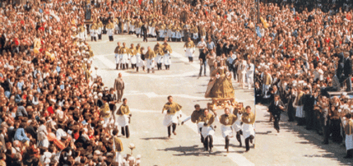 Presentazione mostra fotografica promossa e a cura dell’Editore Veniero De Giorgi. Chiesa di San Filippo Neri. L’Aquila, anno 1986. Sulmona, “la Madonna che scappa in piazza”.