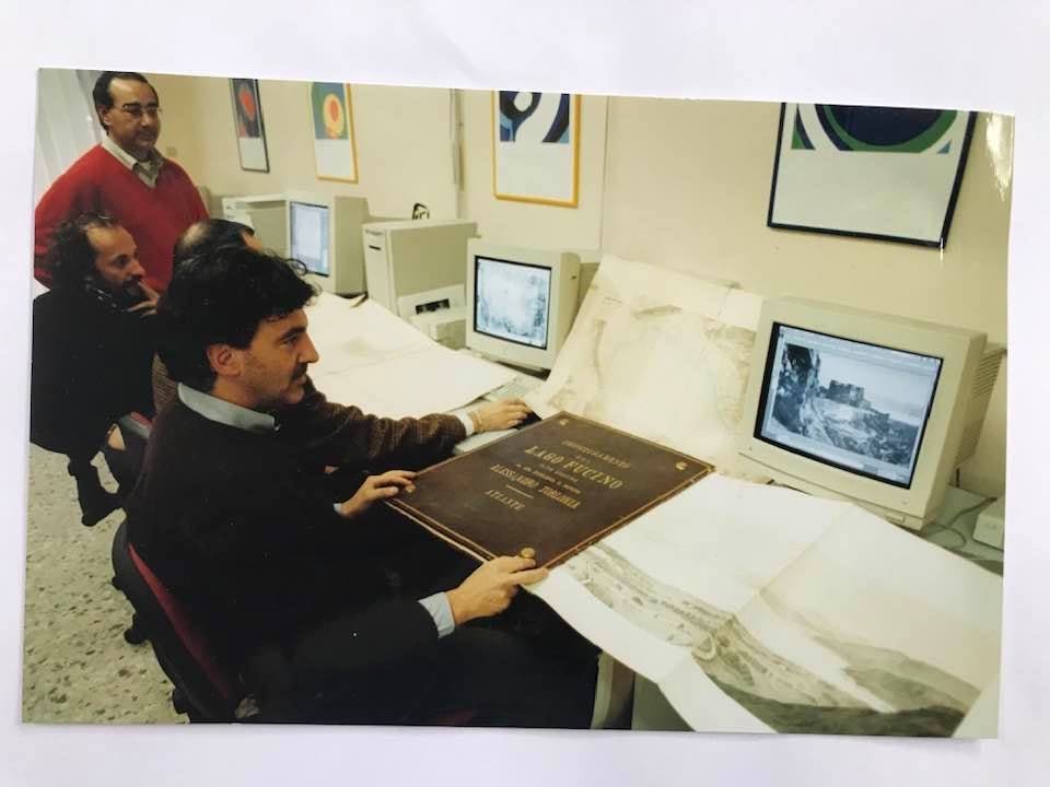 Consultazione documenti per la mostra digitale. Immagini di Terra Emerse, il Fucino dalla pesca del lago ai campi coltivati, di Vincenzo Battista .