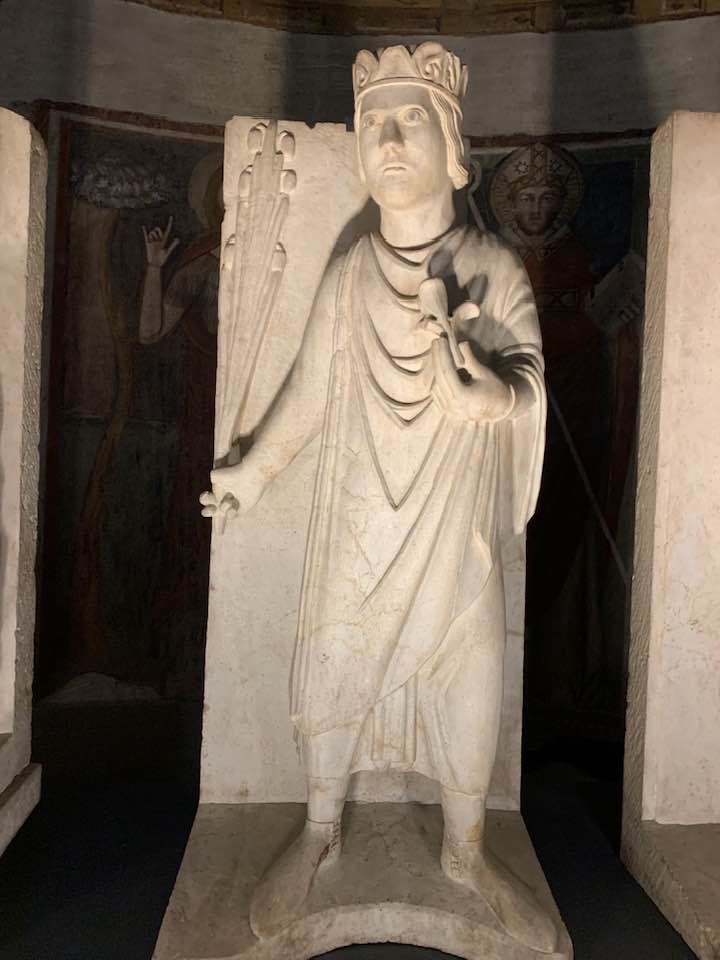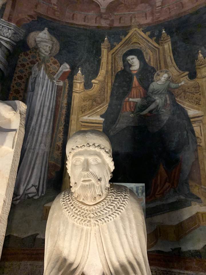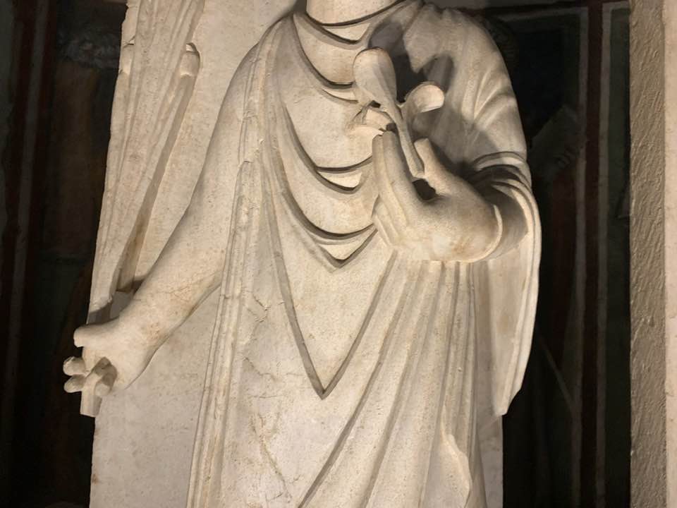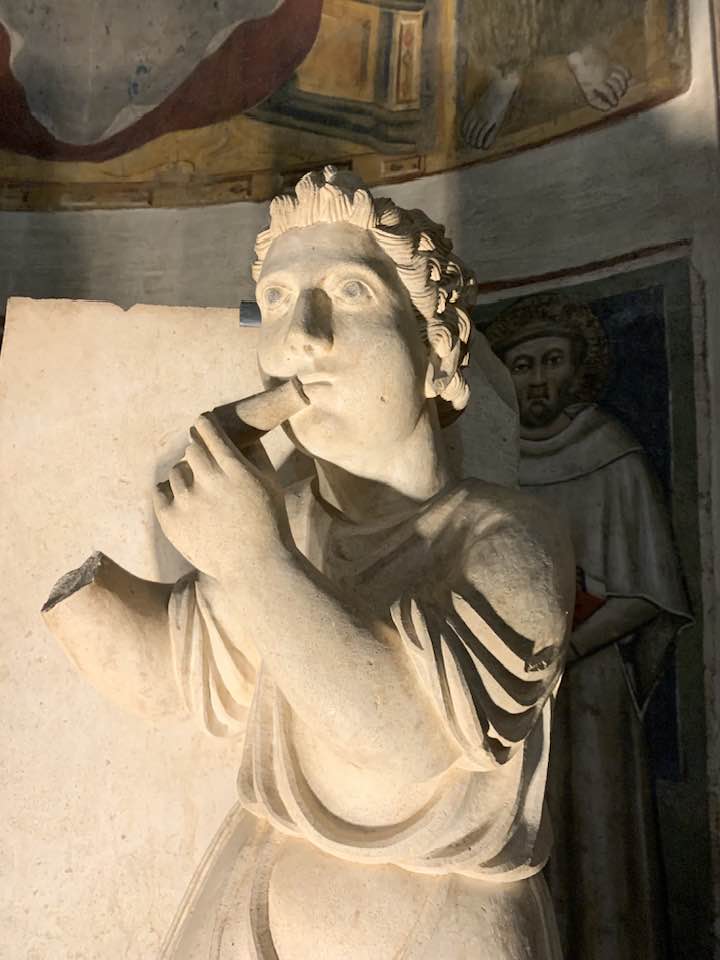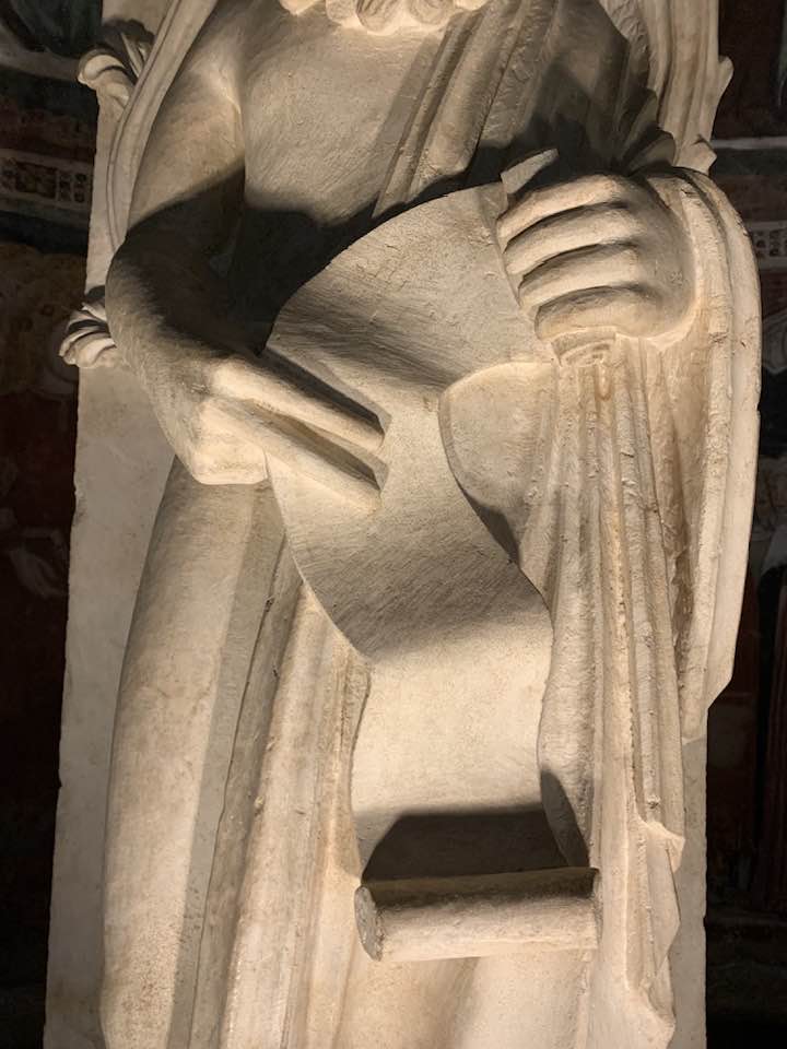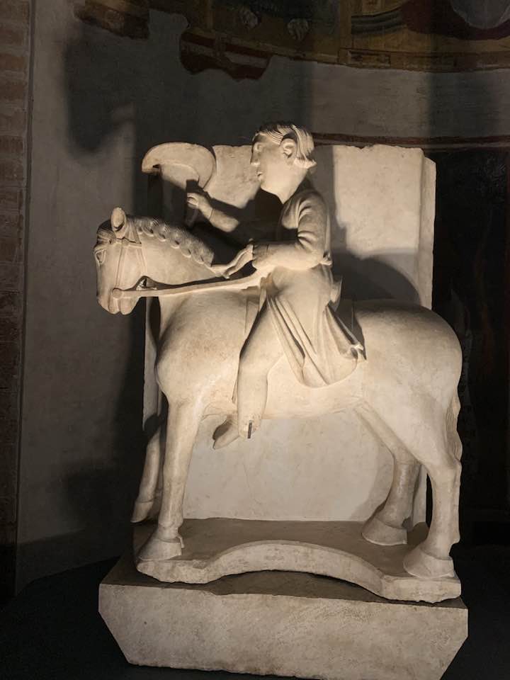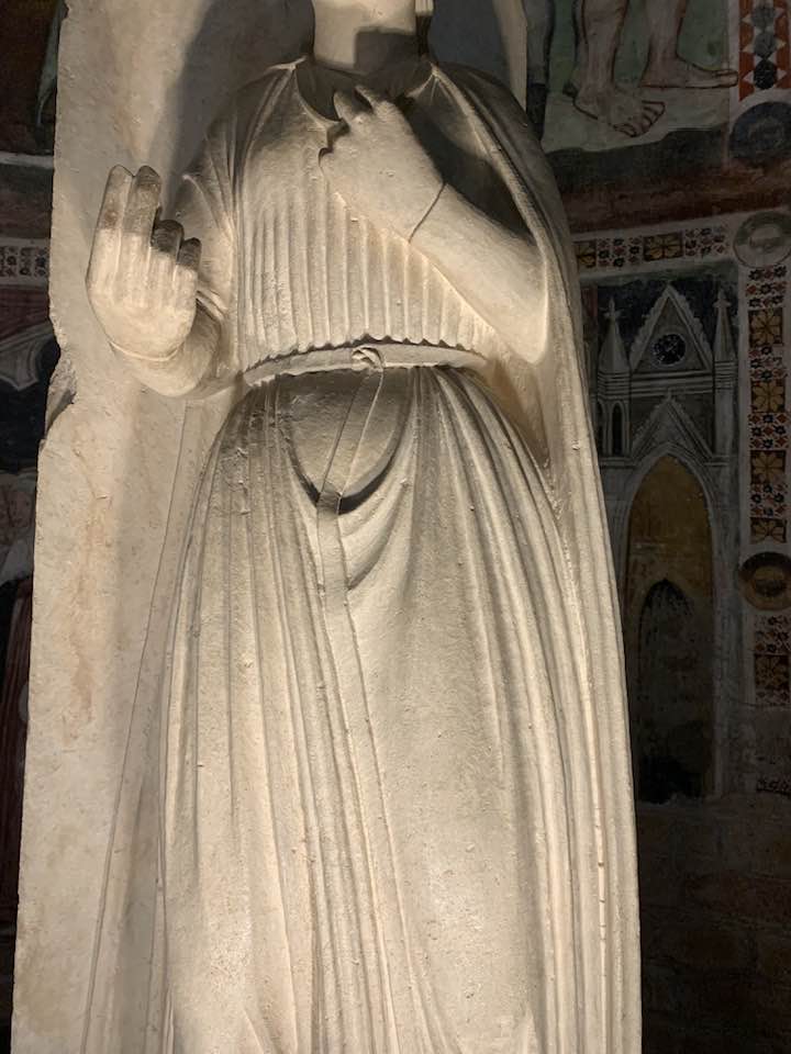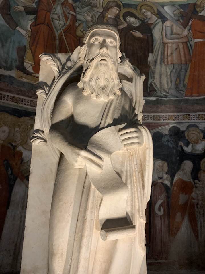 Il Gotico italiano: in questa cornice si iscrive lo scultore e architetto Antelami con l’uso di una scultura innovativa, tecnica di passaggio tra il Romanico e il Gotico. Spazio, profondità nell’esecuzione a tutto tondo e plasticità nelle sculture dei mesi, come nell’allegoria del mese di novembre, in cui un contadino raccoglie le rape, mentre in alto campeggia il segno – simbolo zodiacale del Sagittario. Il tempo scorre, le attività agricole e gli uomini sono i testimoni delle stagioni, simbologie realizzate nei primi anni del Duecento. Il Medioevo si presenta così con le pose che assumono i personaggi, gli abiti eleganti, le vesti regali di alcuni, le capigliature ben acconciate e nobili, gli sguardi immateriali, le pose nell’atto di esplicare il lavoro di cultura materiale e il rapporto con la terra.