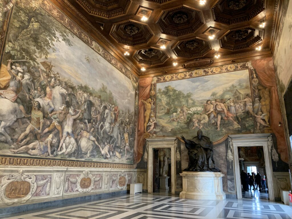 Il colle dove sorgono la piazza, i palazzi museali, le collezioni archeologiche e storico- artistiche, era frequentato già nell’età del Bronzo. Nel 1536 papa Paolo III Farnese, affida a Michelangelo la progettazione e l’esecuzione del Campidoglio come oggi noi lo vediamo. I Musei Capitolini s’inquadrano nel periodo del Quattrocento. Le opere d’arte rinvenute negli scavi archeologici di Roma residenziale e nel suburbio portarono alle collezioni che solo nel 1870 furono riordinate secondo criteri scientifici.