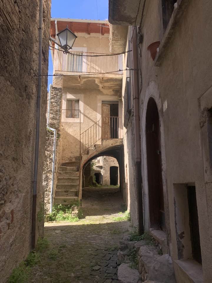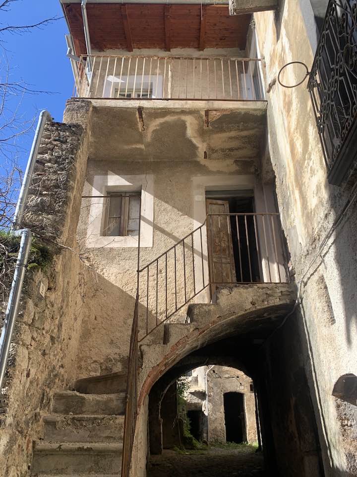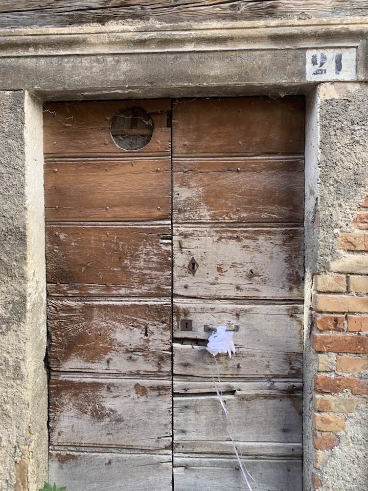 Lo “sguardo” che trasmette il fiocco in un borgo del Gran Sasso d’Italia, versante occidentale. Spopolamento, isolamento geografico, eventi legati al sisma caratterizzano la dimensione dell’abbandono. Lo svuotamento antropologico che mai più verrà colmato, i “passanti” storici delle generazioni che sono andate vie, incolmabili per uso, gestione, e lingua appunto nell’ambito urbano di un centro storico. La comunicazione è cessata. La memoria di coloro che abitavano le case, le loro aggregazioni e sistemi di relazioni tra i gruppi familiari oramai declinati e non più tracciabili. Il borgo è svuotato e silente, le voci si sono solidificate, nessuno abita più la memoria…