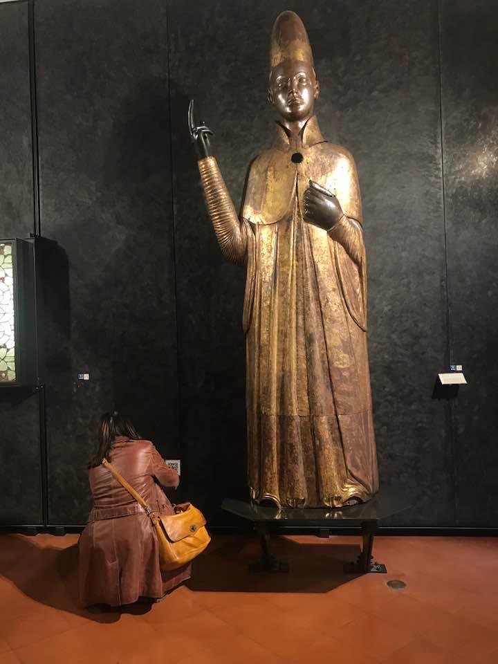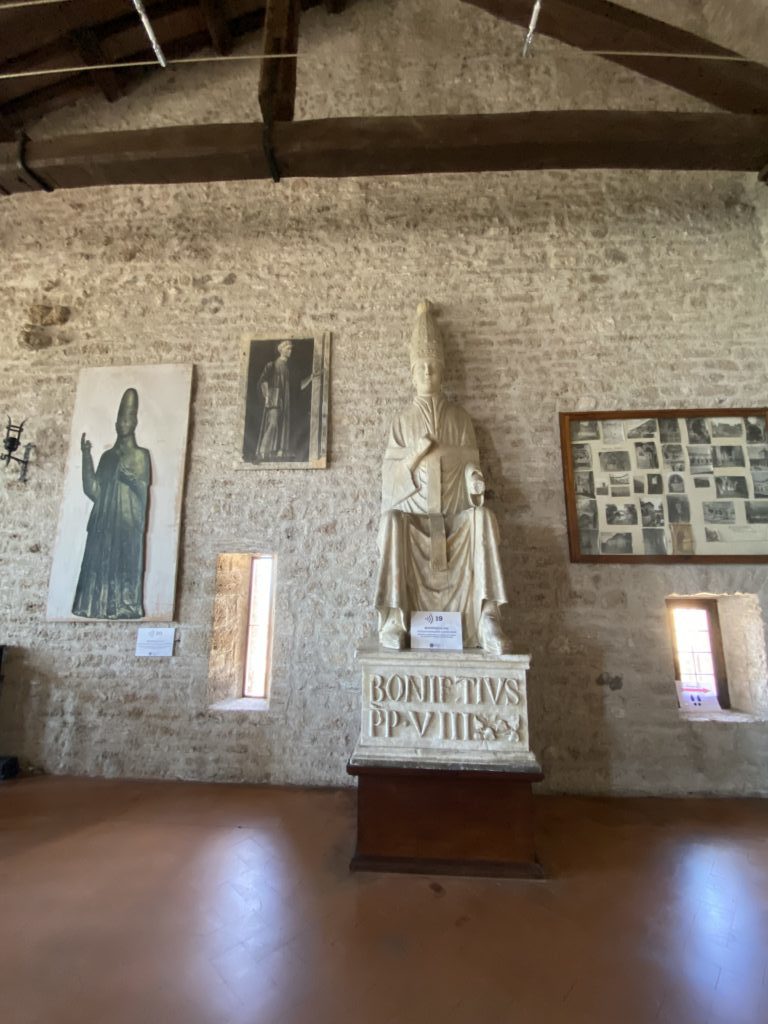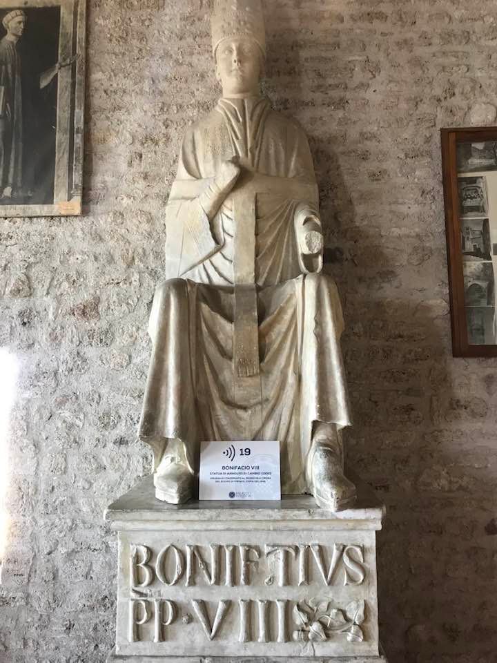 Mandante della sua abdicazione al Soglio pontificio con inganni e stratagemmi ( forme di occultismo ), e dopo aver tentato di sottrarre la Bolla della Perdonanza a L’Aquila, incarcerato il suo “rivale” fino alla morte per usare un eufemismo, asfaltato la memoria quindi di Papa Celestino V e il suo giubileo, Bonifacio VIII, il papa successore, alla maniera delle persecuzioni degli imperatori romani contro i cristiani : “Io sono Cesare, io sono l’imperatore” – disse di sé. Lui è quel Benedetto Caetani cardinale prima di Anagni che indossa così la sua vera veste e si rivela: ambizioso e autoritario, spietato e crudele. Sovranità teocratica, la scultura di Arnolfo di Cambio lo esalta nella plastica austerità e sacralità nel corpo del papa che rende la volontà di potenza. Relegata così la Perdonanza dell’Aquila, Celestino V e la sua “leggenda” ad una periferia fastidiosa della storia della Chiesa da far precipitare nel più cupo oblio, Bonifacio VIII proclama il giubileo nell’anno di grazia del 1300. Storica decisione la sua, una sorta di copia e incolla della Perdonanza aquilana: concedere la remissione e le indulgenze dai peccati, ma, non è un dettaglio, tramite l’acquisto di beni spirituali… Provate a pensare quali! Dante esecrò: scaraventa Bonifacio VIII all’Inferno tra i simoniaci, arso dal danaro e dal culto della personalità. Nella Basilica di San Giovanni in Laterano, una teca raccoglieva i “provisini”, spiccioli che i pellegrini di tutta Europa versavano per le indulgenze: tornesi di Francia, denari di Slavonia, bolognini, zecche feudali dalla Germania. La cronaca del tempo: “Notte e giorno due chierici stavano presso l’altare con in mano rastrelli e raccoglievano denaro senza fine…”. Così il Giubileo fece ricca la Roma di Bonifacio VIII in una sorta di Federal Reserve, senza considerare i nobili, feudatari, cavalieri e mercanti, famiglie dell’alta borghesia che non si limitavano agli spiccioli per le loro “alte “indulgenze. I pellegrini chiamati “romei”, una marea umane sull’onda delle profezie millenaristiche del pentimento e la fine dell’umanità, aveva invaso la città di Roma, accorse da tutti gli stati, dal nord Europa arrivava per la via Flaminia e dalla via Francigena a piedi, e poi quella Roma costruita da centinaia di torri già a partire dal XII e XIII secolo dalle famiglie più agiate: uno skyline unico, di grande impatto visivo. La grande bellezza. Roma. Avremmo incontrato Dante e Petrarca, Giotto, Arnolfo di Cambio, Cavallini, Cimabue. La Caput Mundi di un cantiere artistico dove resta la Torre delle Milizie che svetta alle spalle della Colonna Traiana, gli affreschi nella Basilica di Sant’Agnese fuori le mura, quelli di Santa Sabina e Santa Cecilia, quelli del Cavallini in Santa Maria in Trastevere, il presepe di Arnolfo di Cambio a Santa Maria Maggiore. Sì, la grande bellezza, ma il declino del papato medievale che Bonifacio VIII incarnava senza remore in quella ideologia perdente, inesorabile volgeva al tramonto, per sempre, nelle Grotte Vaticane… dimenticato Bonifacio VIII.