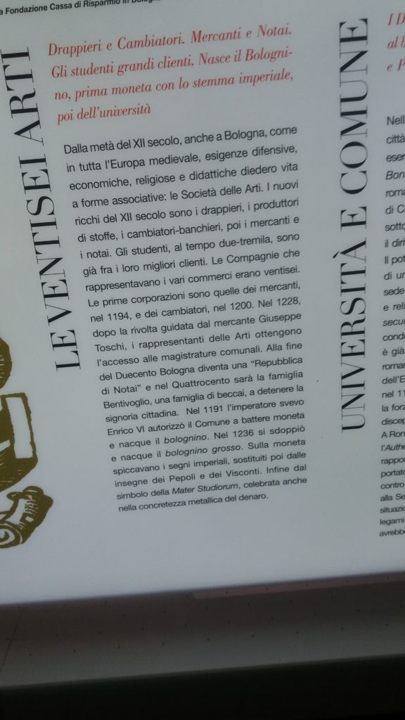 Il museo della Storia di Bologna, un percorso culturale e museale che racconta l’intero arco della storia della città e dei suoi abitanti a partire dagli Etruschi fino ai nostri giorni. Il racconto è strutturato in diverse sezioni distribuite in successione cronologica e per grandi temi per oltre 6.100 Le vicende cittadine sono raccontate in modo innovativo e dinamico, con tecniche espositive scenografiche e interattive e per certi versi inedite nel nostro Paese.
