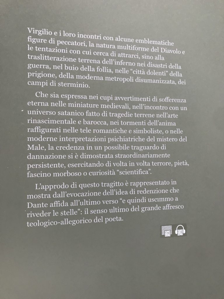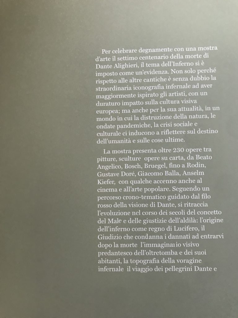 Settimo centenario della morte di Dante Alighieri, la grande esposizione internazionale “Inferno”. Scuderie del Quirinale, Roma.