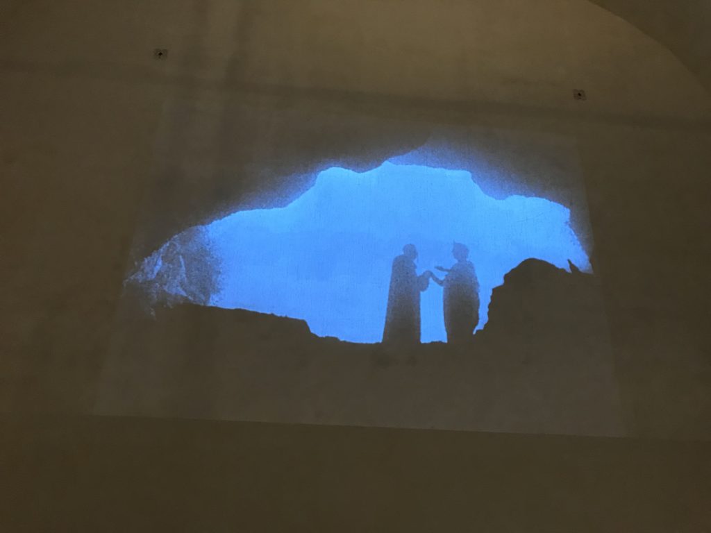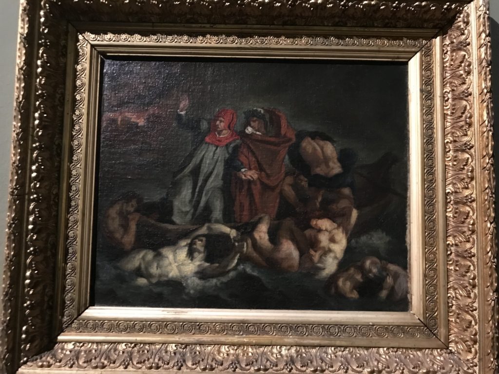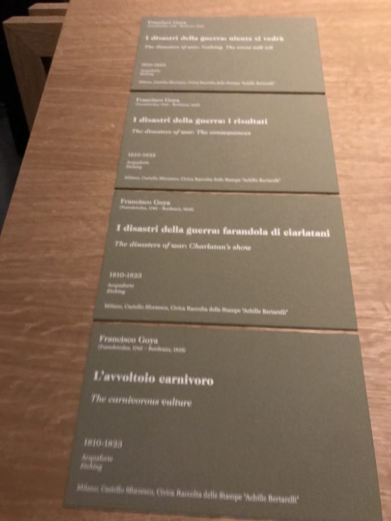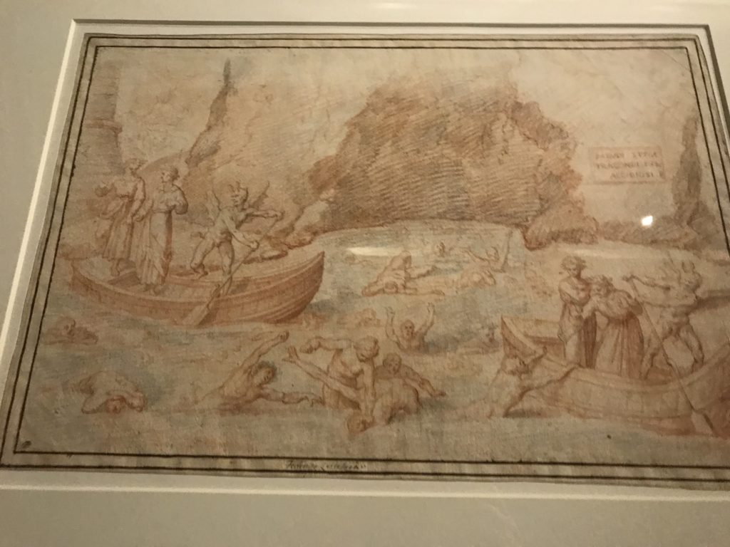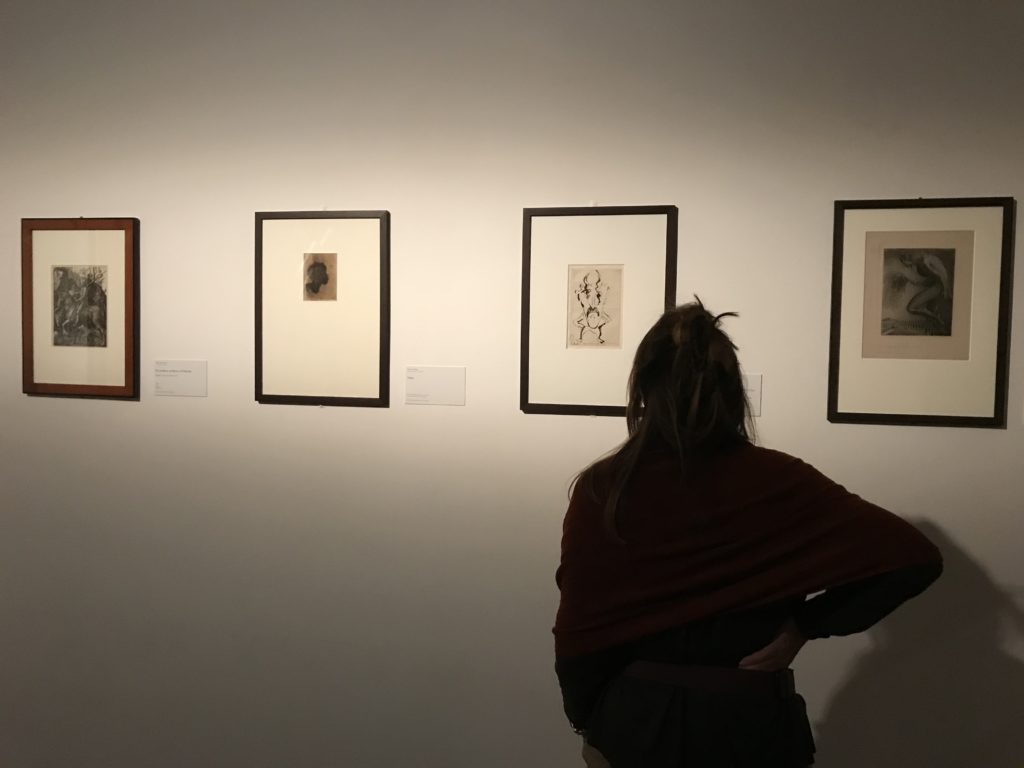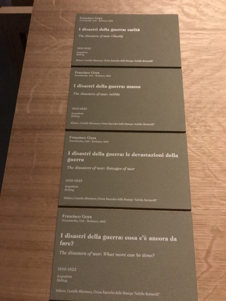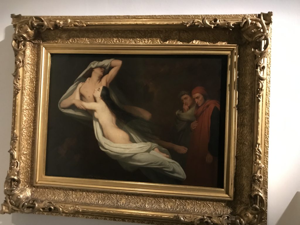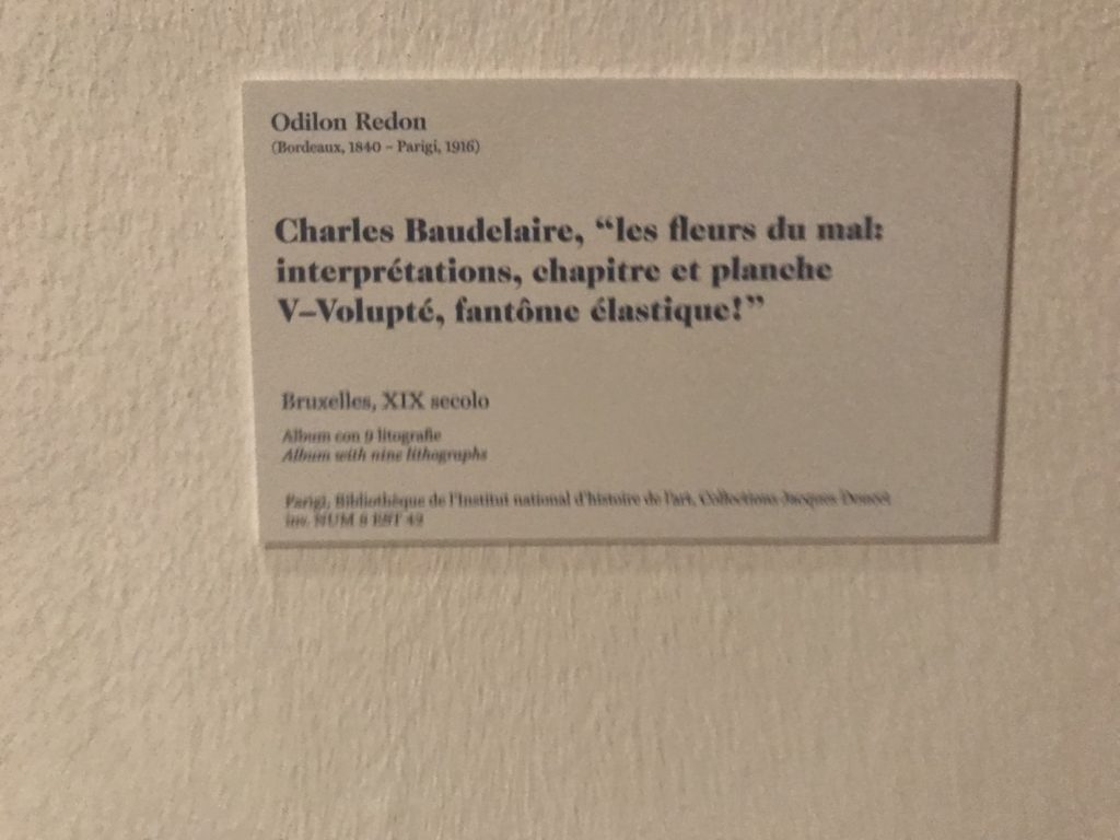 Le sezioni della mostra propongono, per esempio, dal Cristianesimo all’Umanesimo la liberazione poetica, gli incubi, l’Assoluto e Dio, la nuova Umanità. I pezzi esposti e la loro forza nella visione apocalittica. “Convensi dipartir da tanto male” è la frase che Virgilio impartisce a Dante, il viatico dopo l’incontro con Lucifero  prima di salire l’angusta via d’uscita per lasciare l’Inferno, che sancisce il carico di angoscia e prostrazione dei due personaggi. Ma poi lo stesso Dante, nell’epistola a Cangrande della Scala, in un estremo atto di pietas, scrive:” “Strappare l’anima dei viventi dalla condizione di incompiutezza e accompagnarli allo stato di grazia” in uno scatto morale di redenzione che corre in aiuto, anche contro le sue stesse Cantiche, poiché vuole far accedere quelle genti ad una più umana ragione universale di felicità.