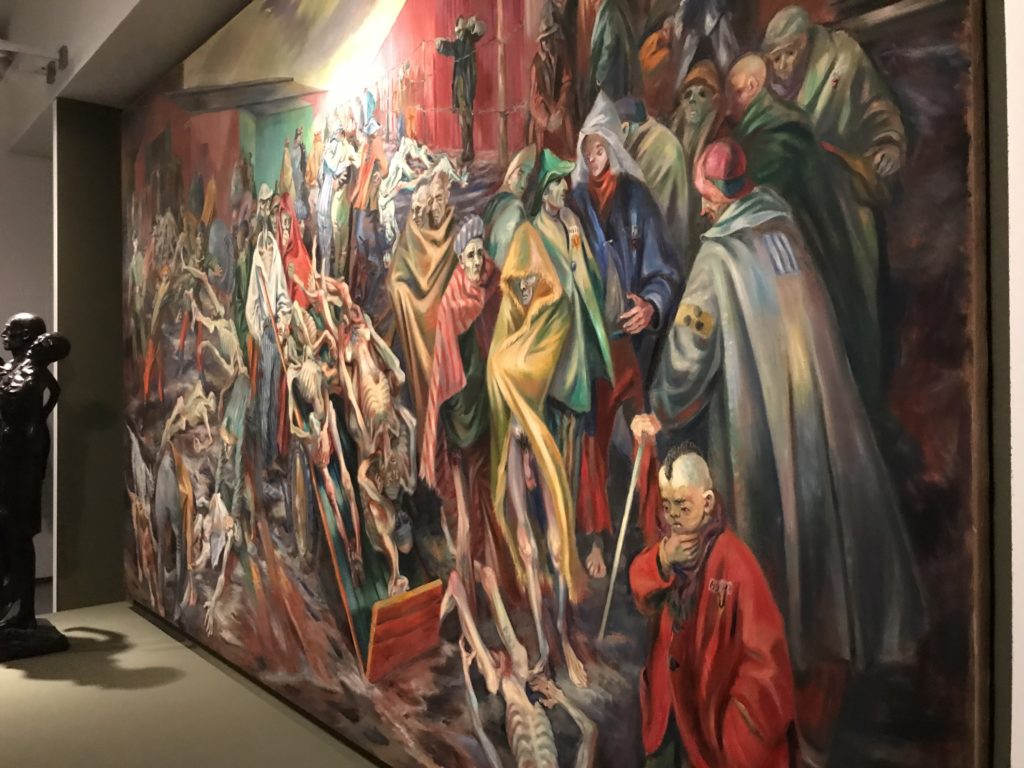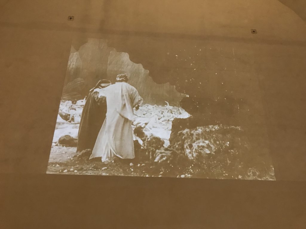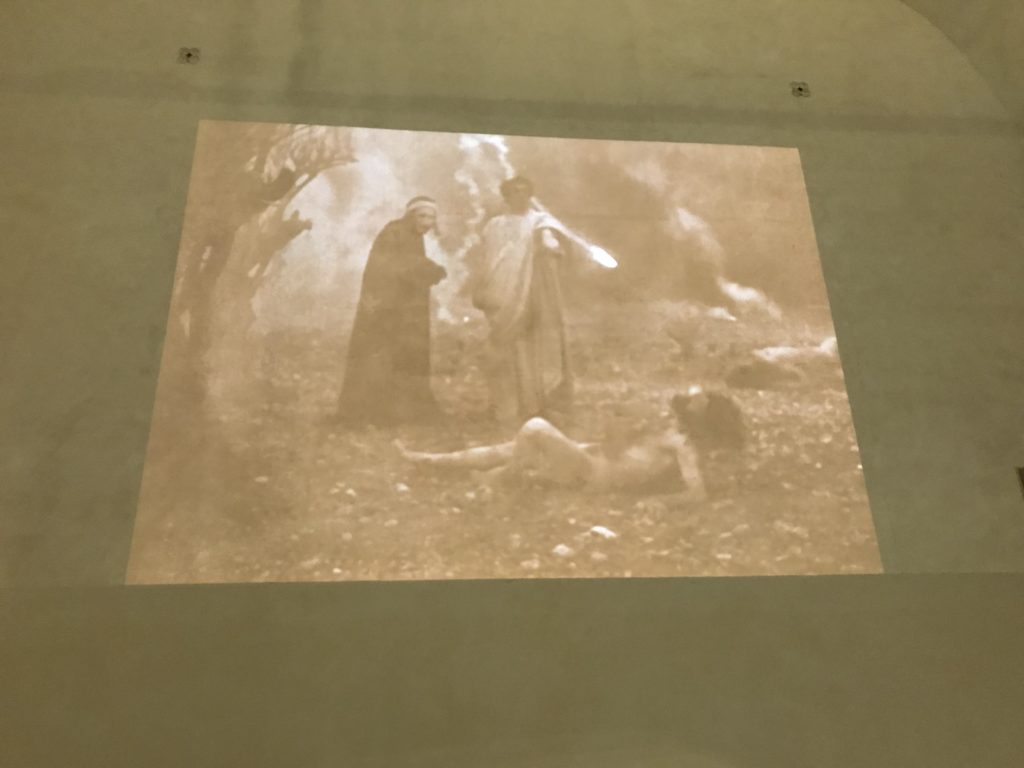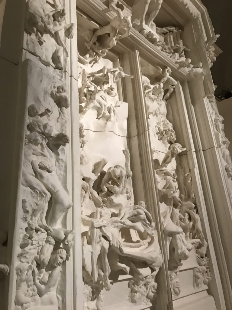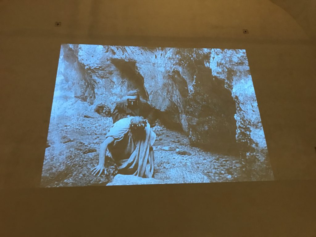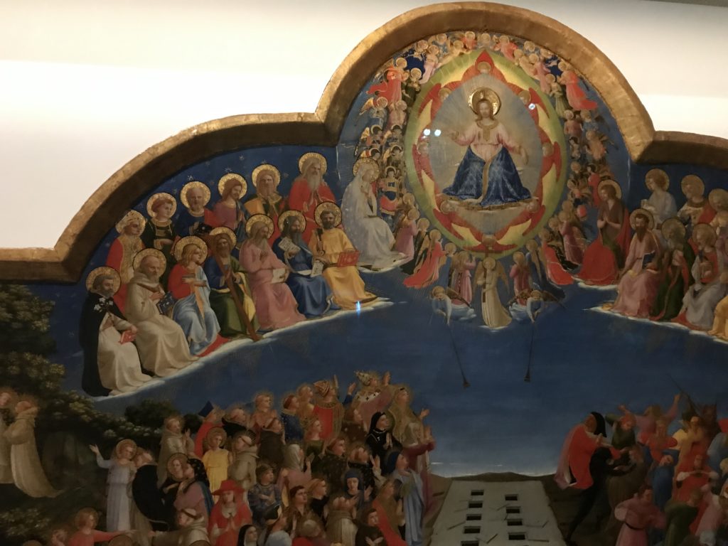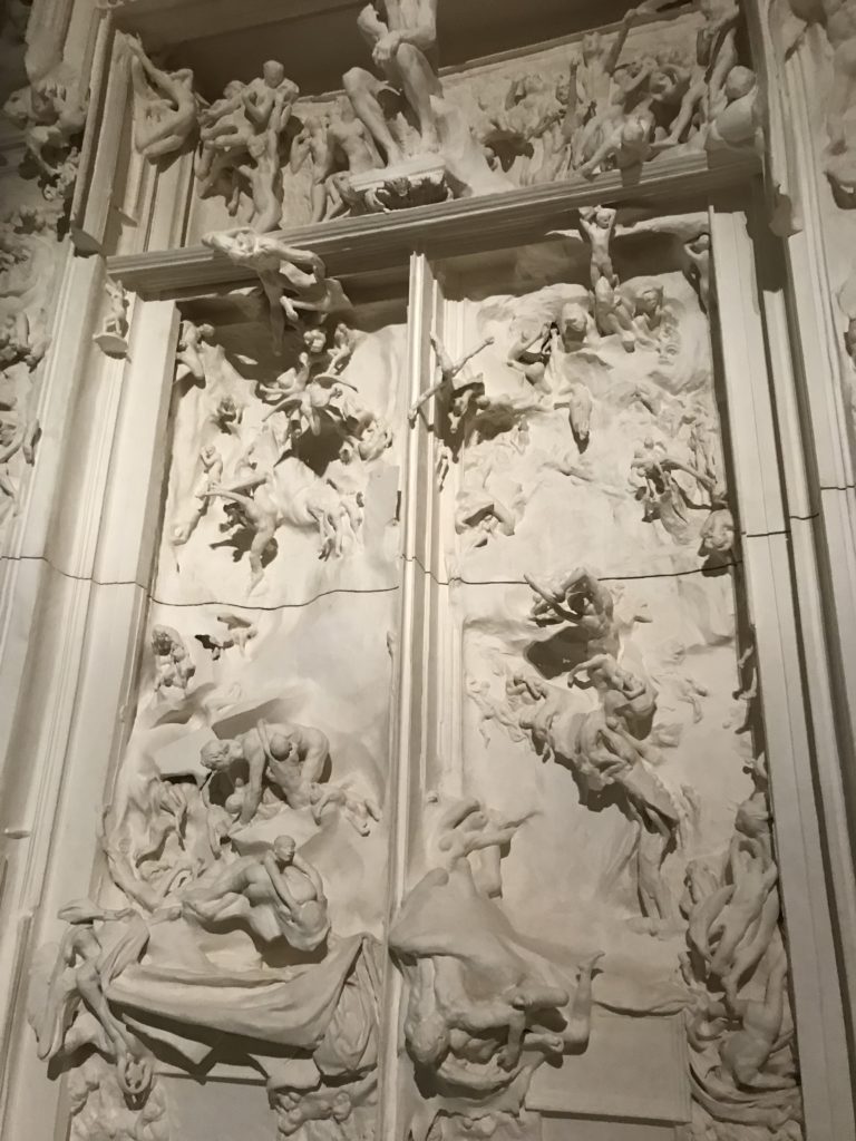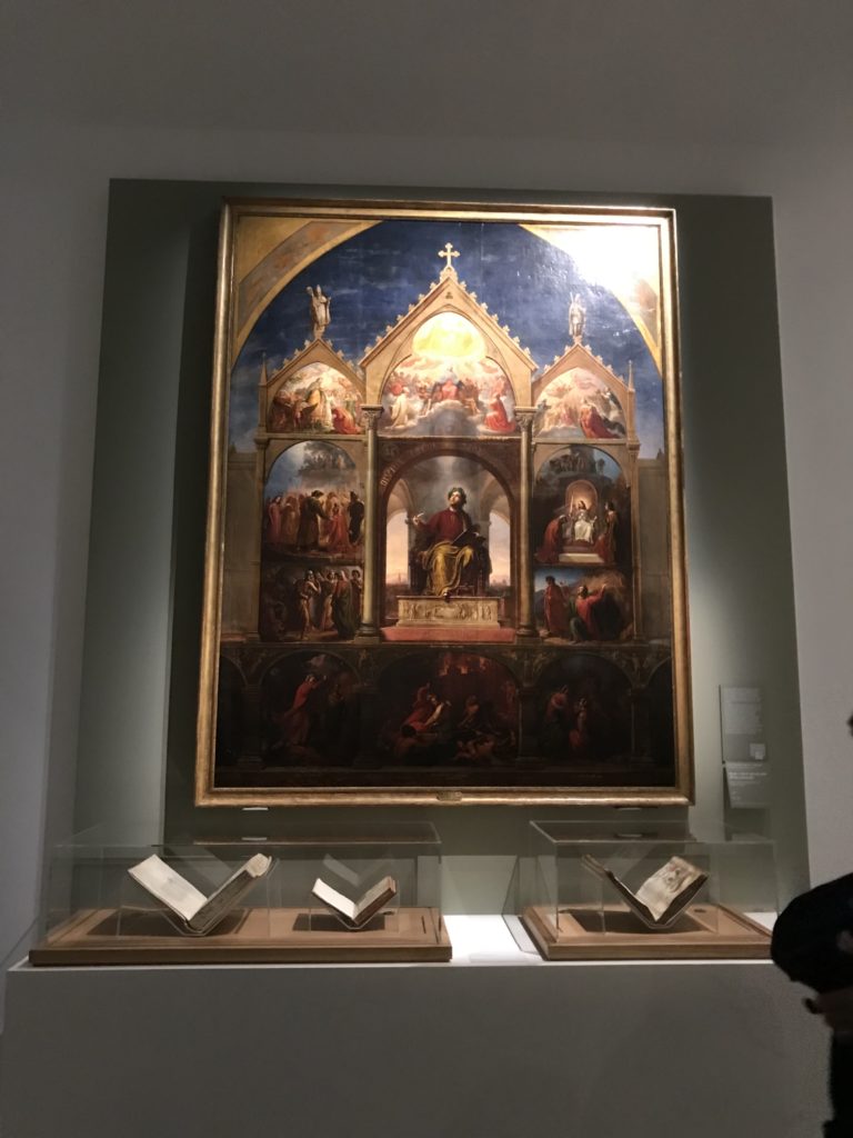 Le sezioni della mostra propongono, per esempio, dal Cristianesimo all’Umanesimo la liberazione poetica, gli incubi, l’Assoluto e Dio, la nuova Umanità. I pezzi esposti e la loro forza nella visione apocalittica. “Convensi dipartir da tanto male” è la frase che Virgilio impartisce a Dante, il viatico dopo l’incontro con Lucifero  prima di salire l’angusta via d’uscita per lasciare l’Inferno, che sancisce il carico di angoscia e prostrazione dei due personaggi. Ma poi lo stesso Dante, nell’epistola a Cangrande della Scala, in un estremo atto di pietas, scrive:” “Strappare l’anima dei viventi dalla condizione di incompiutezza e accompagnarli allo stato di grazia” in uno scatto morale di redenzione che corre in aiuto, anche contro le sue stesse Cantiche, poiché vuole far accedere quelle genti ad una più umana ragione universale di felicità.