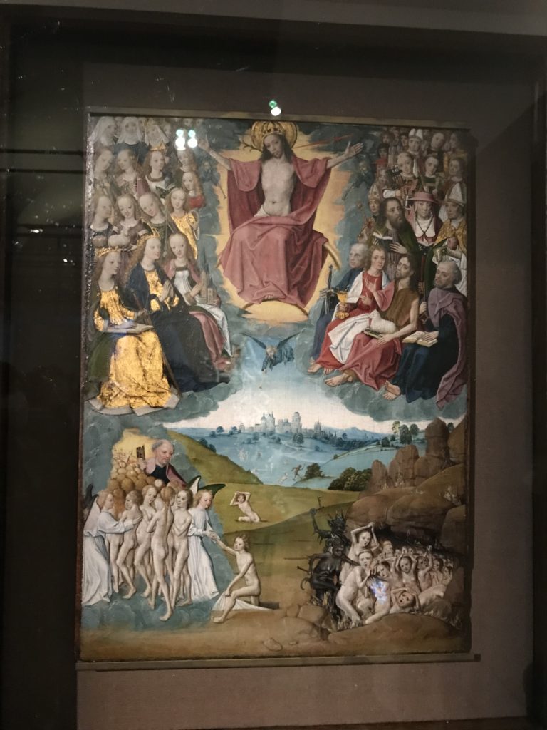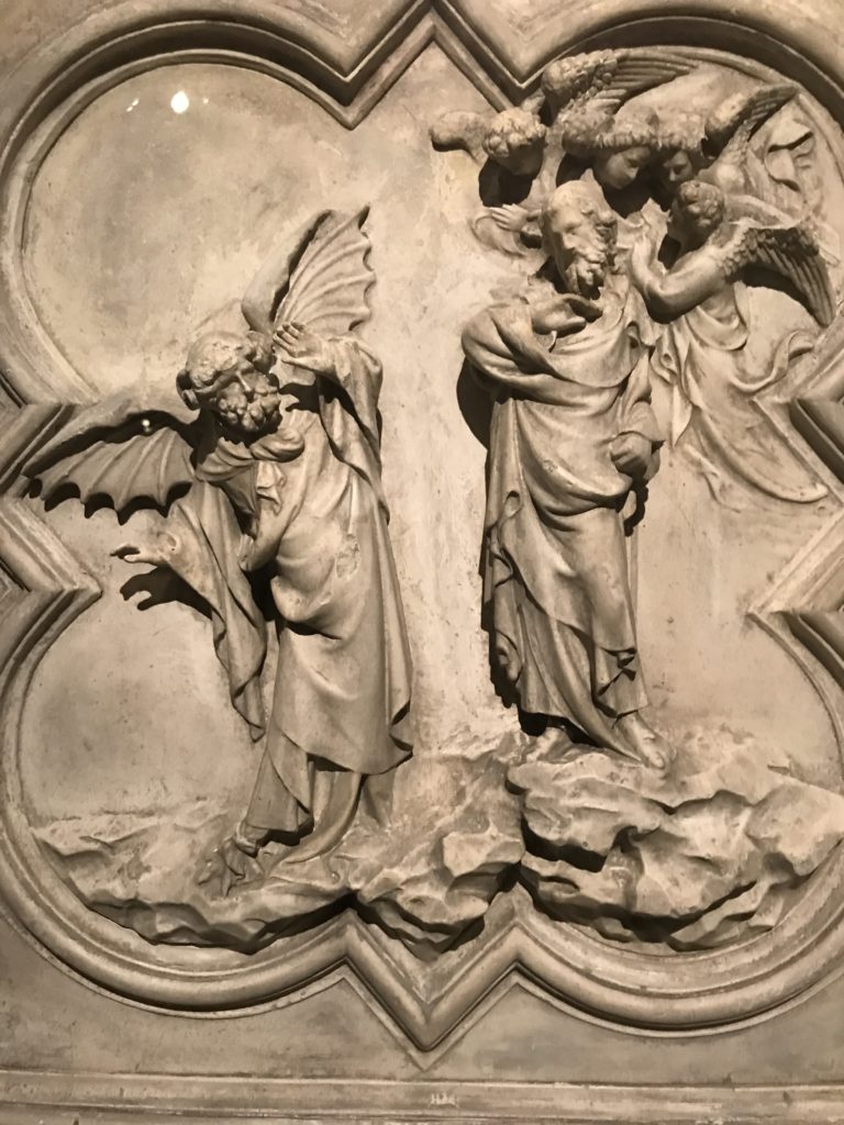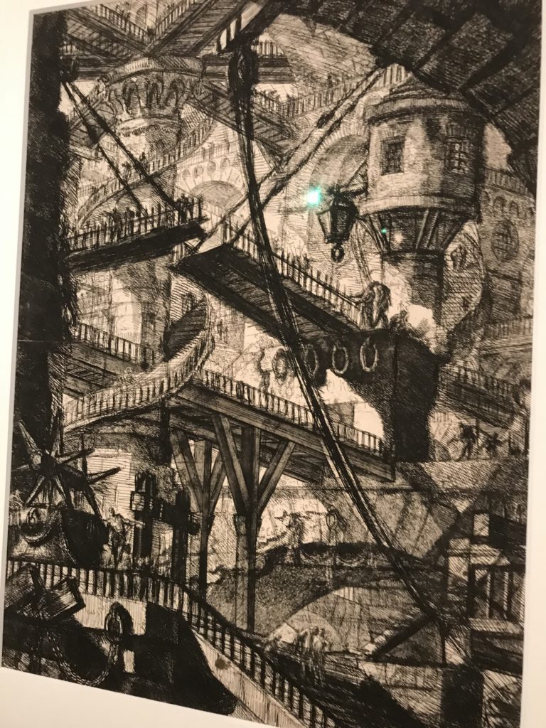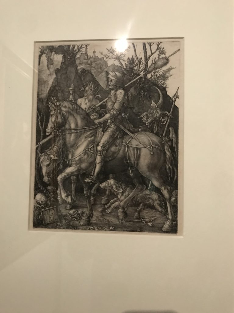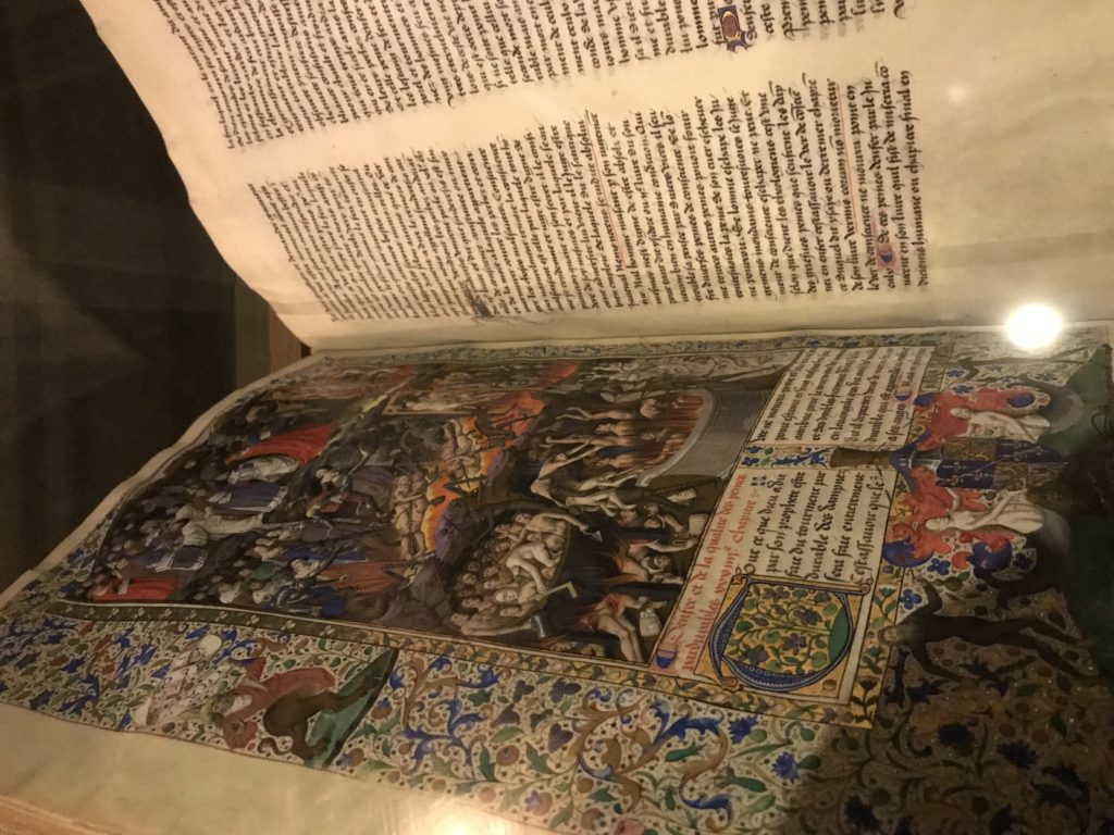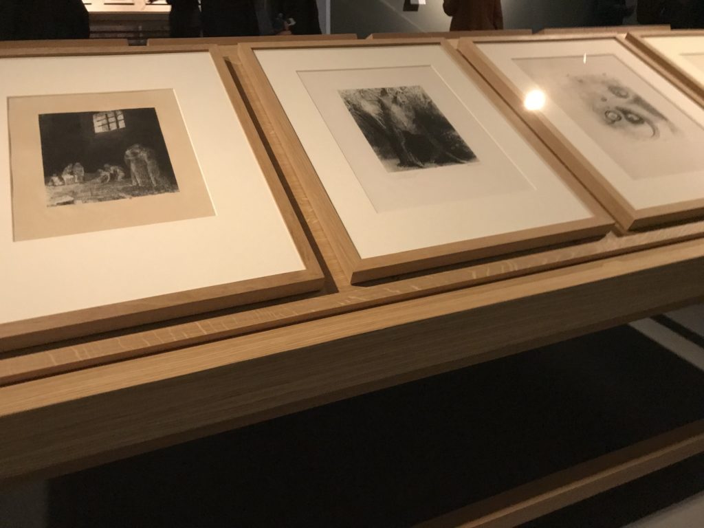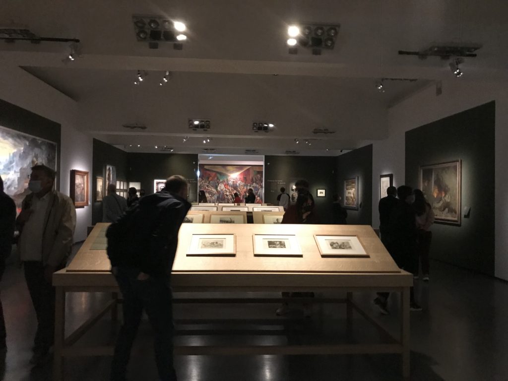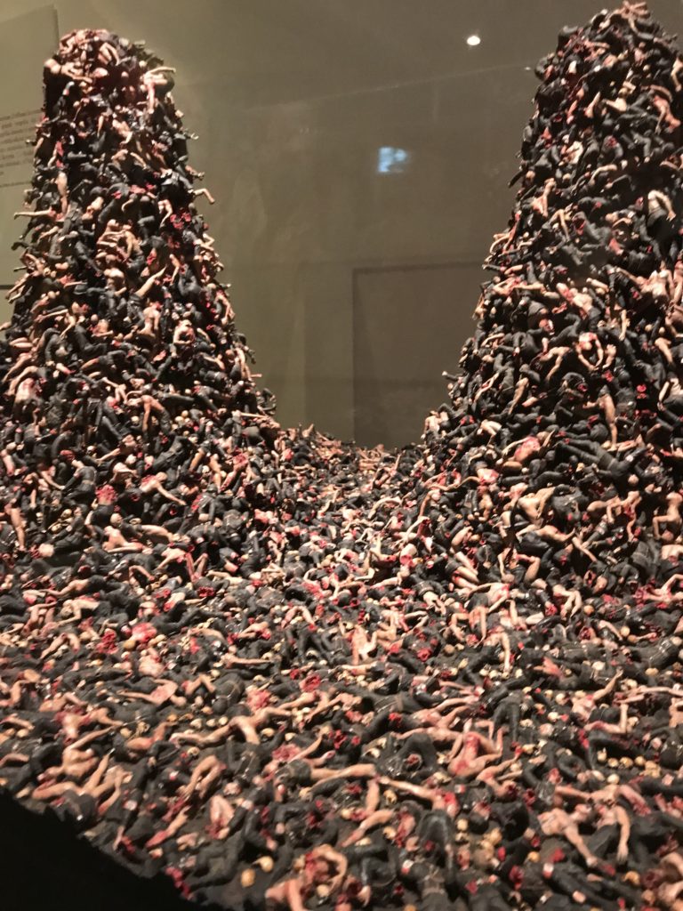 Le sezioni della mostra propongono, per esempio, dal Cristianesimo all’Umanesimo la liberazione poetica, gli incubi, l’Assoluto e Dio, la nuova Umanità. I pezzi esposti e la loro forza nella visione apocalittica. “Convensi dipartir da tanto male” è la frase che Virgilio impartisce a Dante, il viatico dopo l’incontro con Lucifero  prima di salire l’angusta via d’uscita per lasciare l’Inferno, che sancisce il carico di angoscia e prostrazione dei due personaggi. Ma poi lo stesso Dante, nell’epistola a Cangrande della Scala, in un estremo atto di pietas, scrive:” “Strappare l’anima dei viventi dalla condizione di incompiutezza e accompagnarli allo stato di grazia” in uno scatto morale di redenzione che corre in aiuto, anche contro le sue stesse Cantiche, poiché vuole far accedere quelle genti ad una più umana ragione universale di felicità.