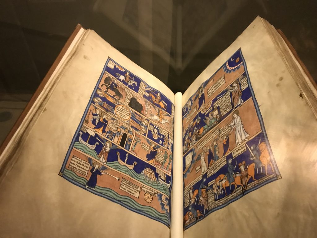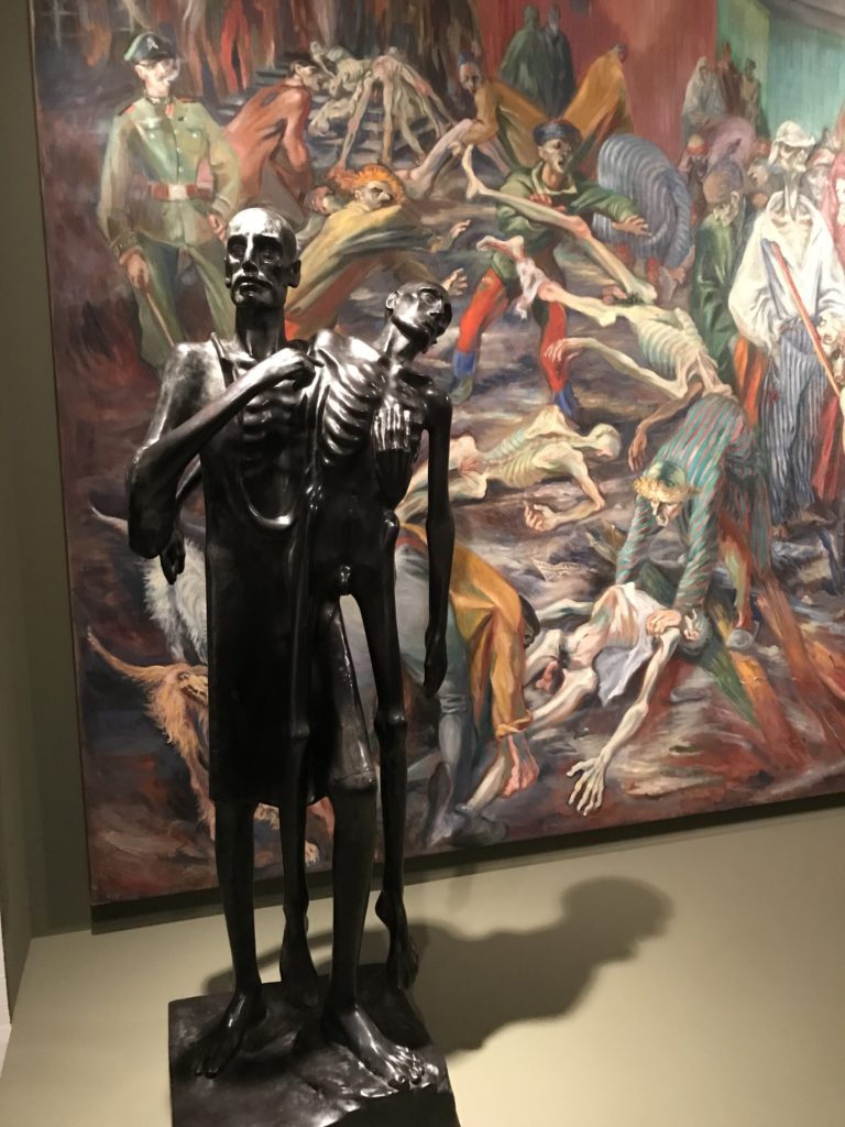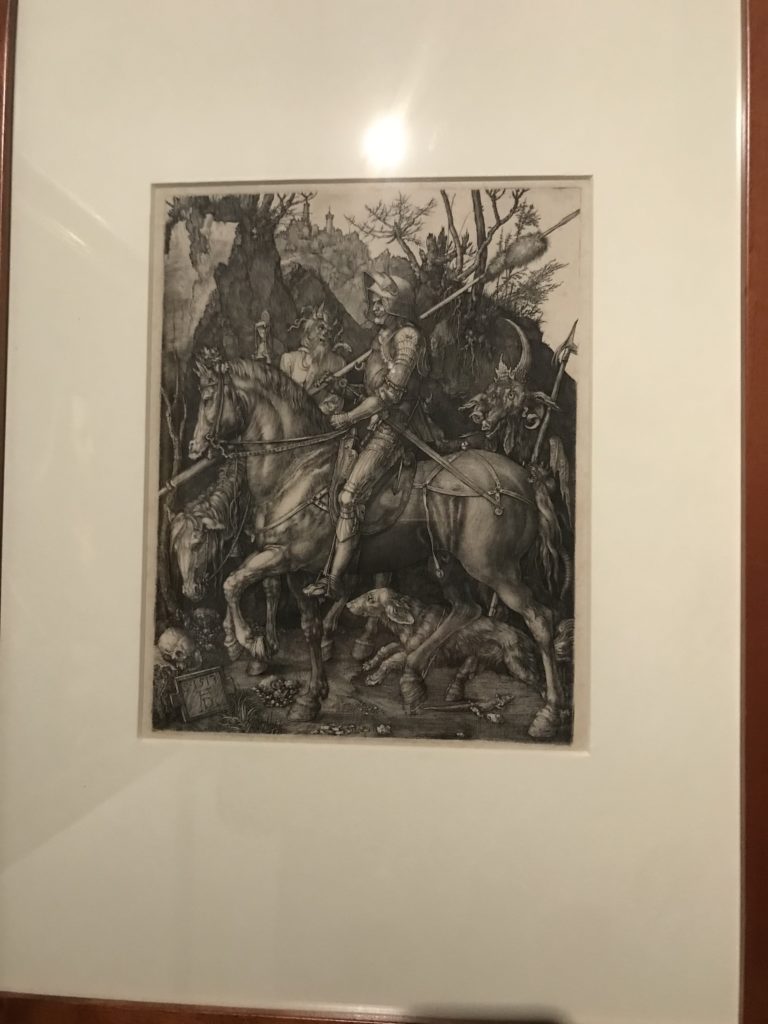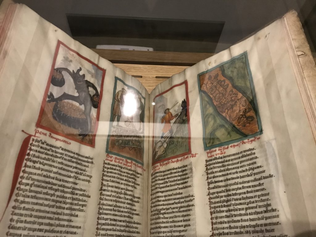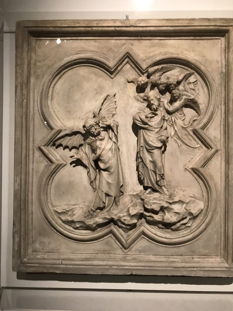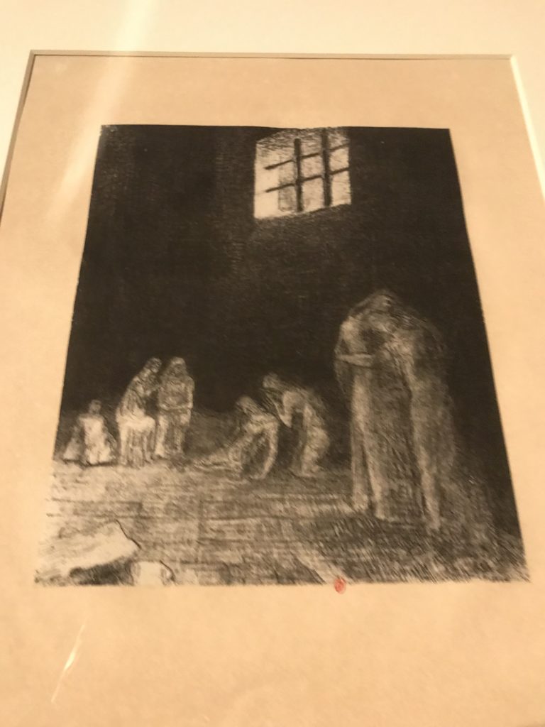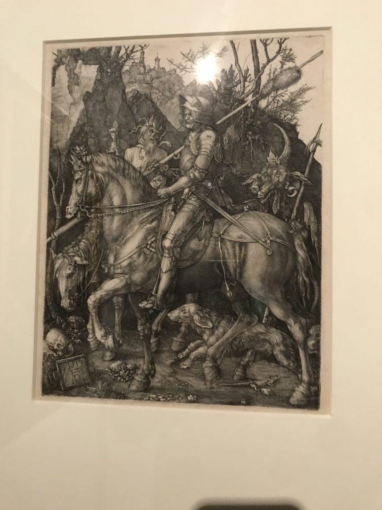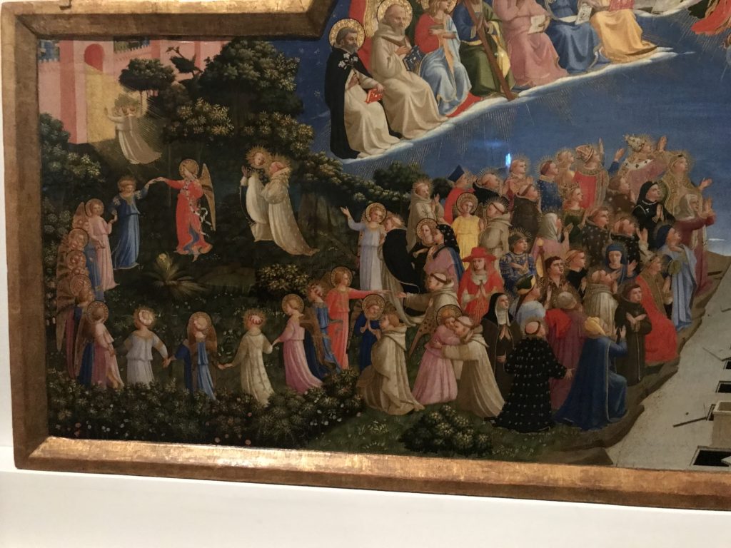 Le sezioni della mostra propongono, per esempio, dal Cristianesimo all’Umanesimo la liberazione poetica, gli incubi, l’Assoluto e Dio, la nuova Umanità. I pezzi esposti e la loro forza nella visione apocalittica. “Convensi dipartir da tanto male” è la frase che Virgilio impartisce a Dante, il viatico dopo l’incontro con Lucifero  prima di salire l’angusta via d’uscita per lasciare l’Inferno, che sancisce il carico di angoscia e prostrazione dei due personaggi. Ma poi lo stesso Dante, nell’epistola a Cangrande della Scala, in un estremo atto di pietas, scrive:” “Strappare l’anima dei viventi dalla condizione di incompiutezza e accompagnarli allo stato di grazia” in uno scatto morale di redenzione che corre in aiuto, anche contro le sue stesse Cantiche, poiché vuole far accedere quelle genti ad una più umana ragione universale di felicità.