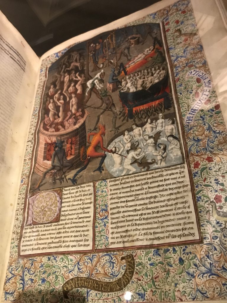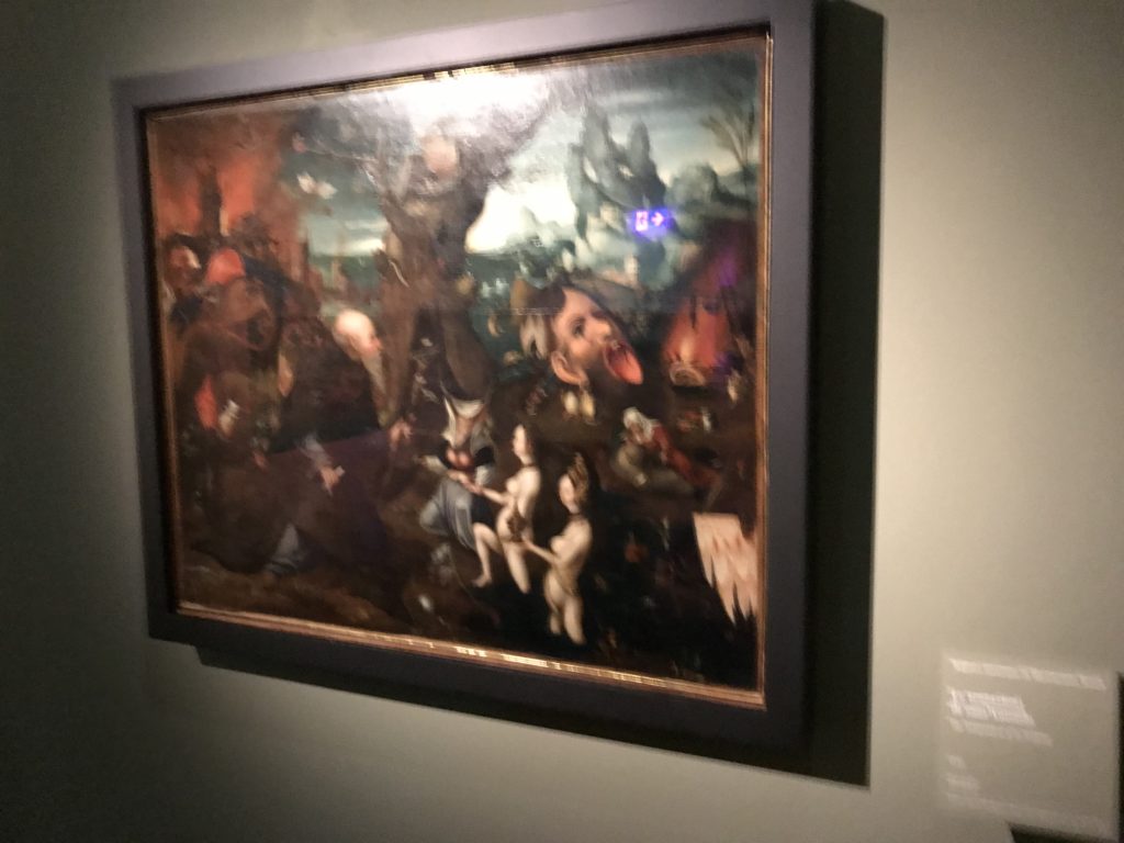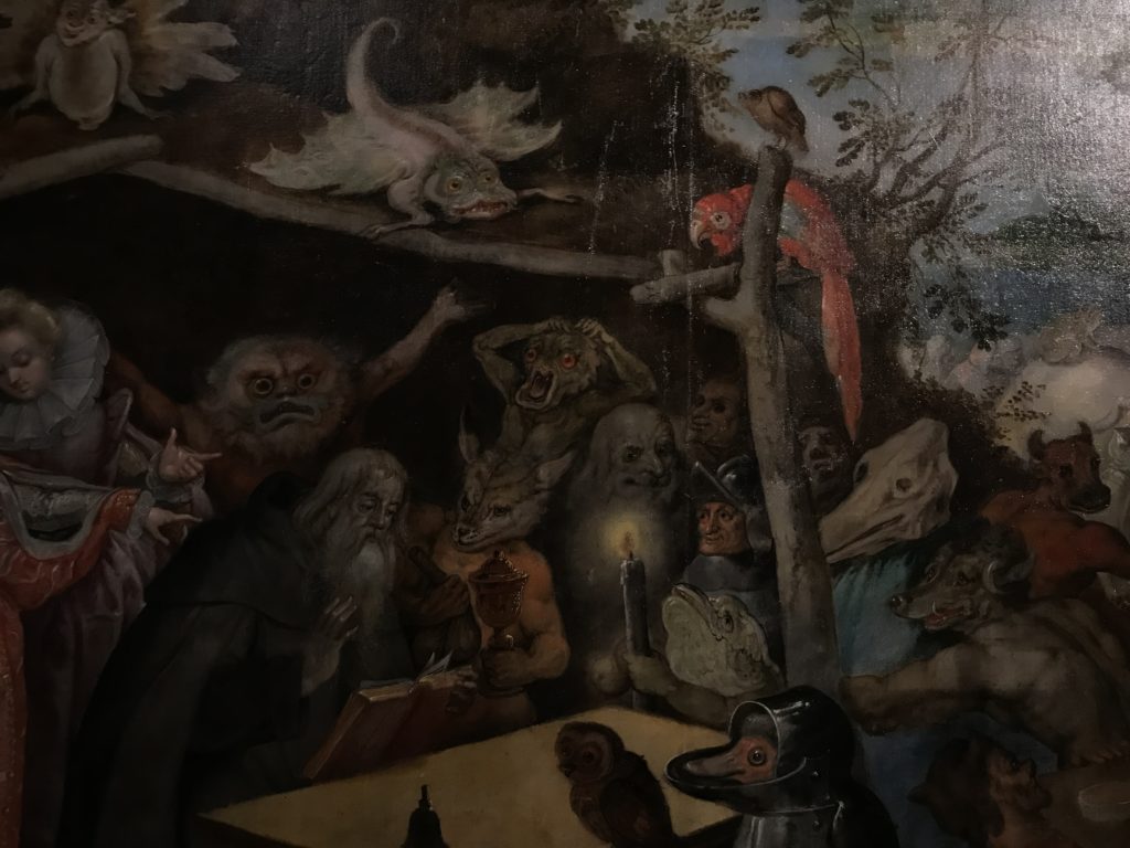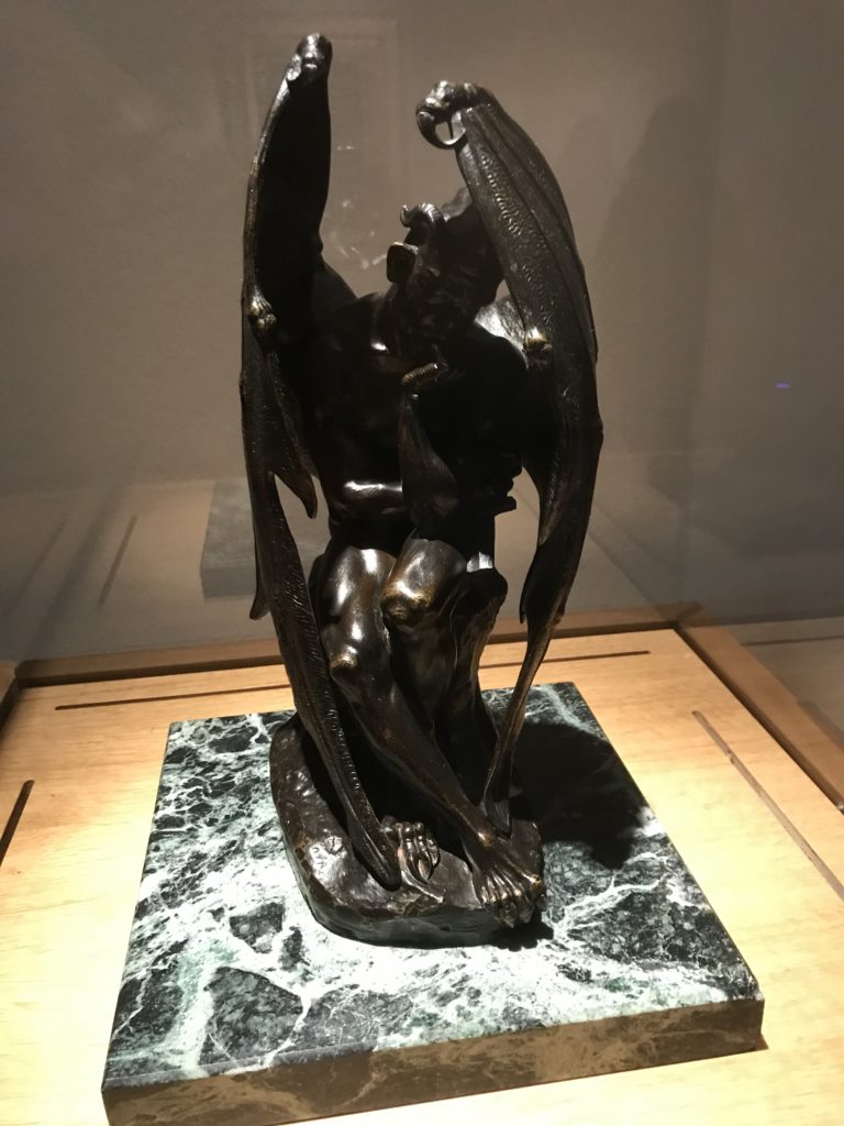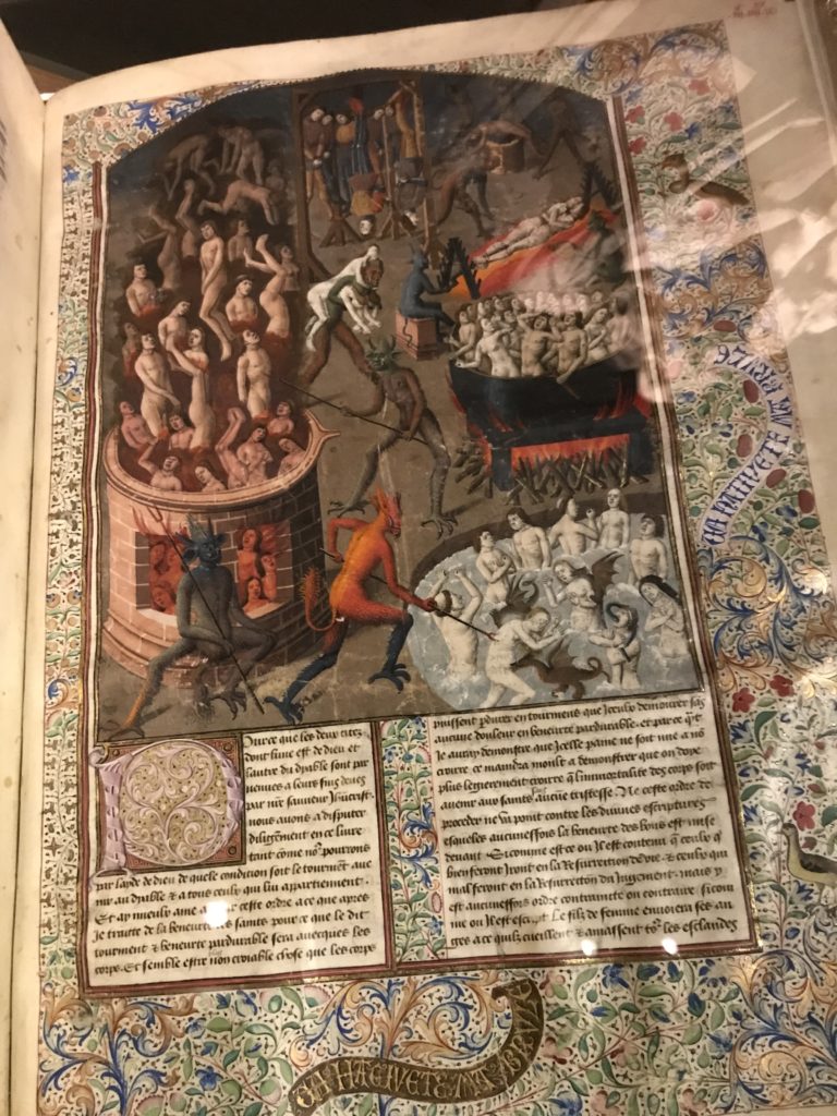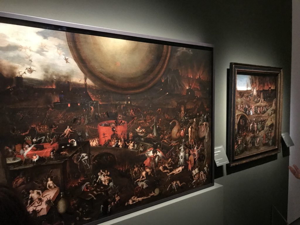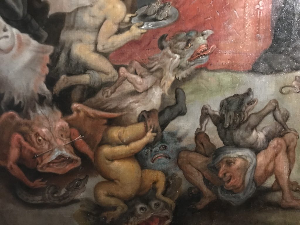L’incontro con l’universo satanico, l’iconografia infernale, il mondo come lo vediamo e la sua distruzione, sono sintetizzati, nella mostra, nei cupi avvertimenti di cui si fa carico la pittura, la scultura, film, allestimenti, libri e oggetti, miniature medievali, teatrini del male, stampe e grafica fino alle interpretazioni psichiatriche del mistero del Male.