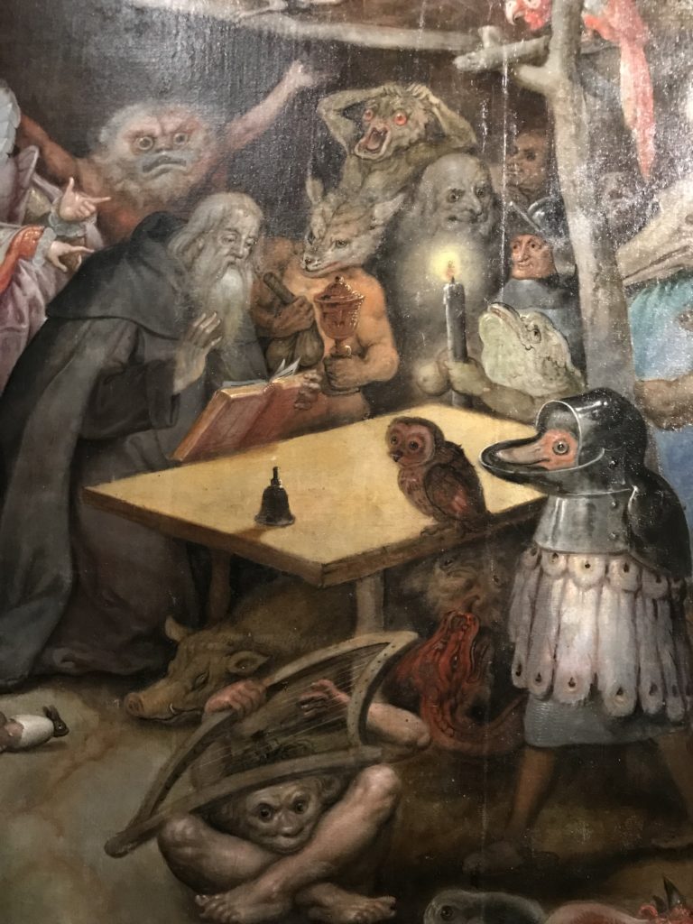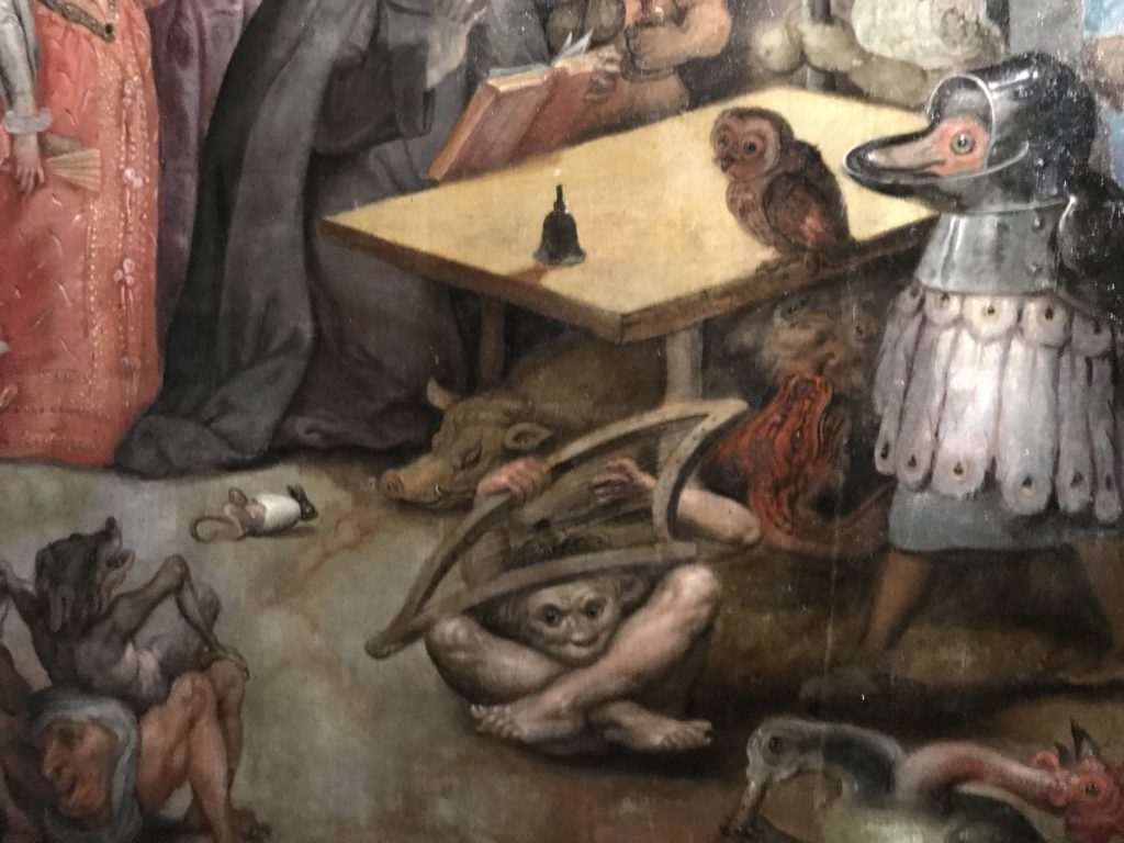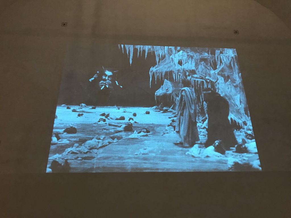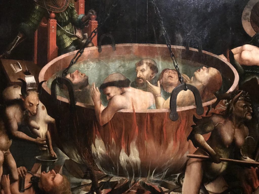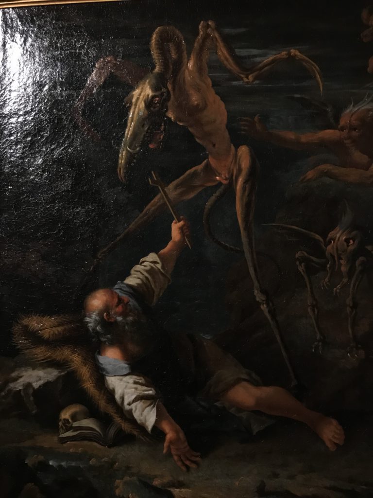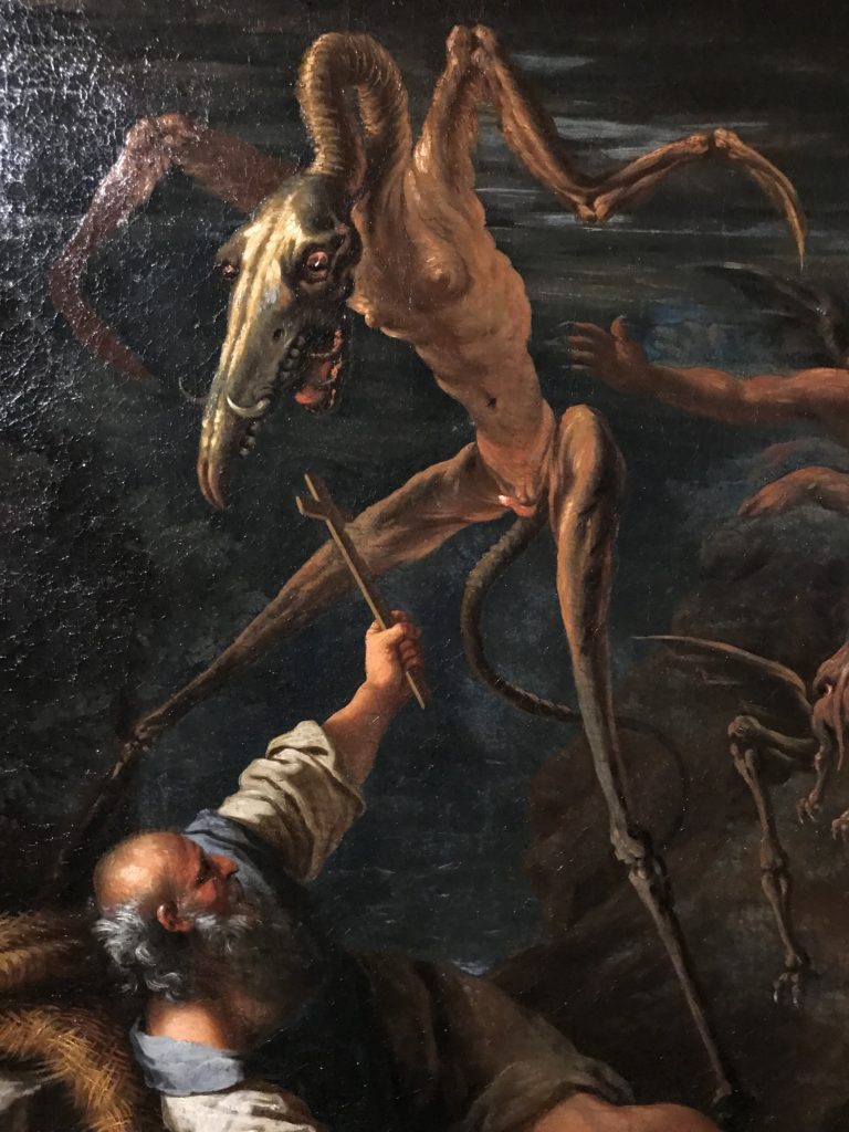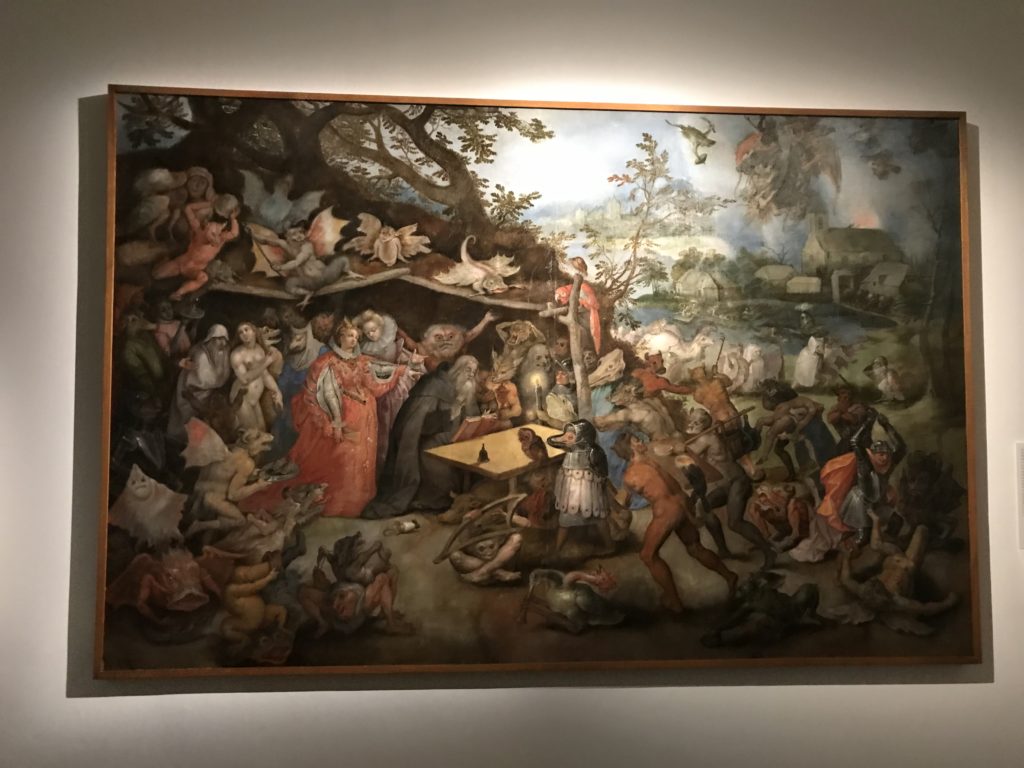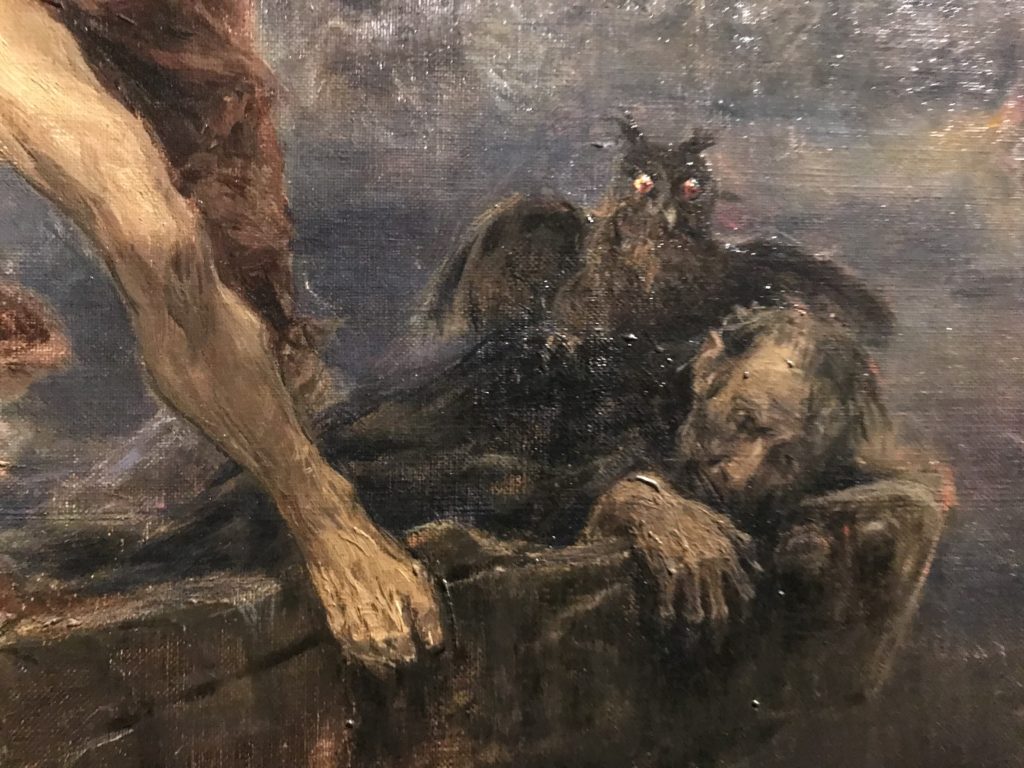 L’incontro con l’universo satanico, l’iconografia infernale, il mondo come lo vediamo e la sua distruzione, sono sintetizzati, nella mostra, nei cupi avvertimenti di cui si fa carico la pittura, la scultura, film, allestimenti, libri e oggetti, miniature medievali, teatrini del male, stampe e grafica fino alle interpretazioni psichiatriche del mistero del Male.