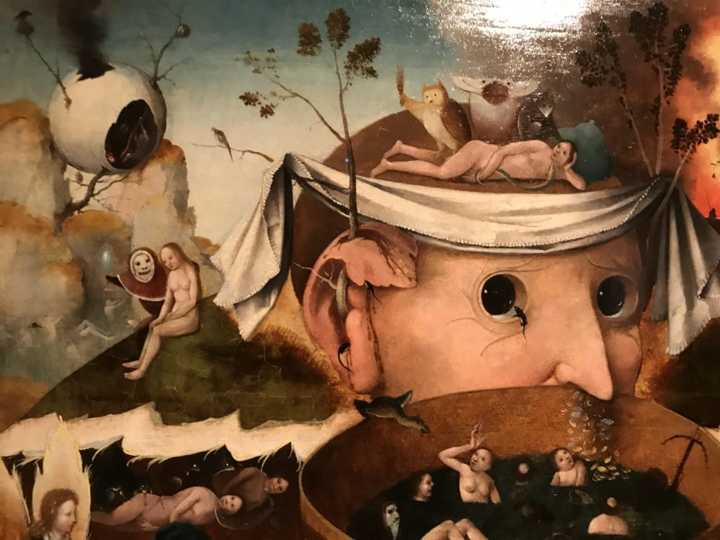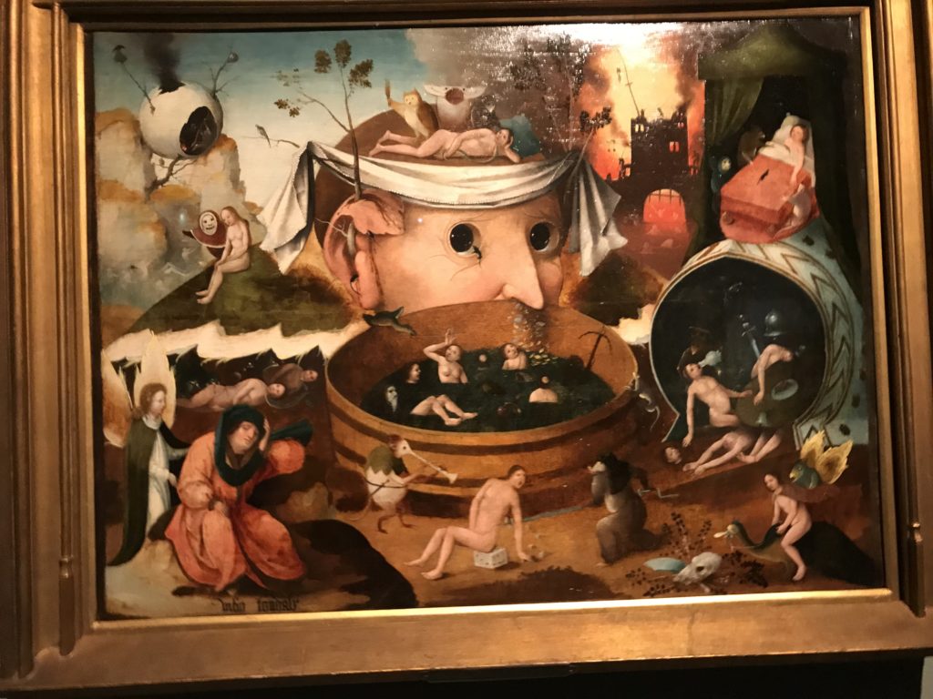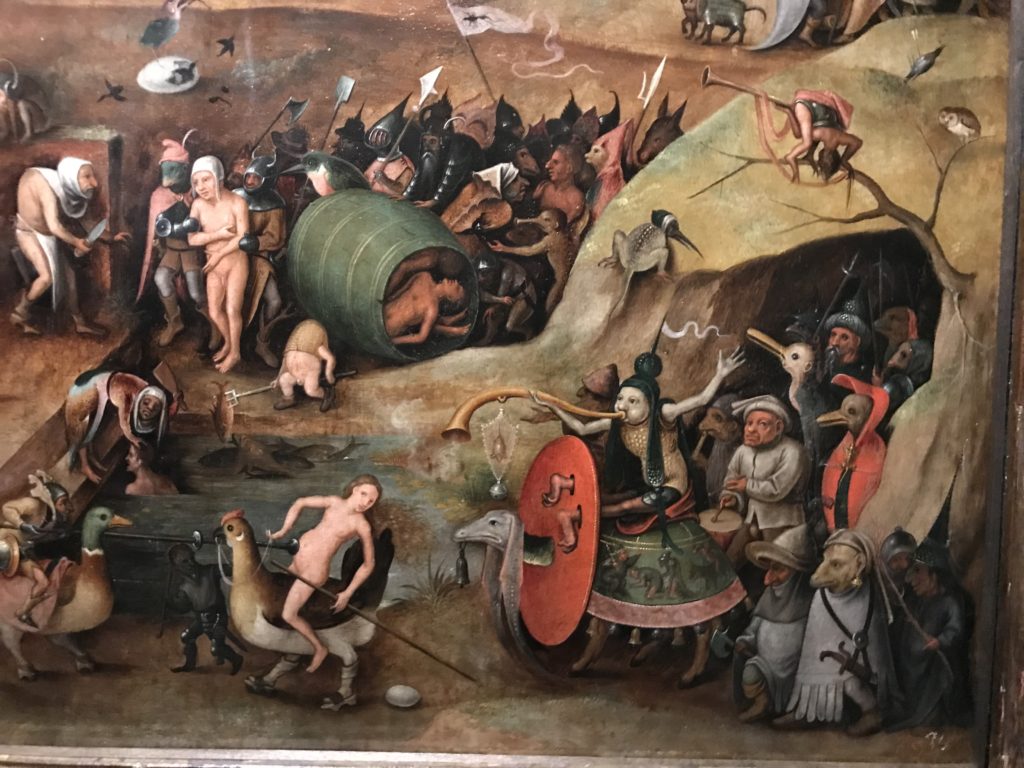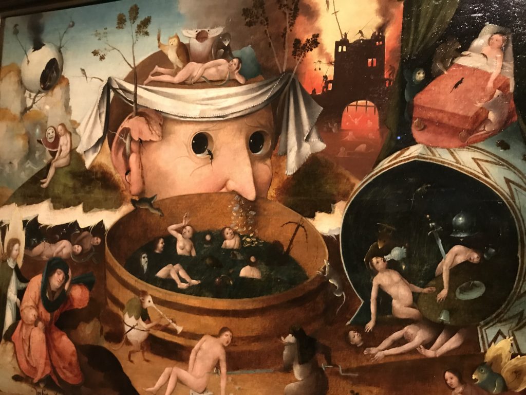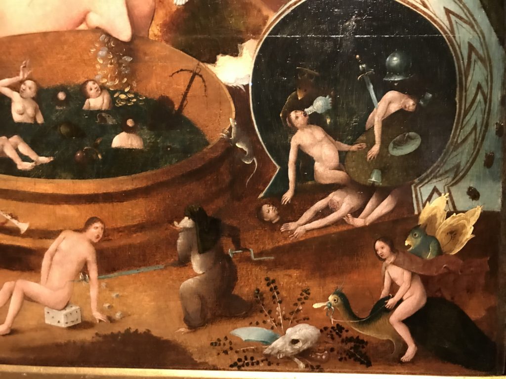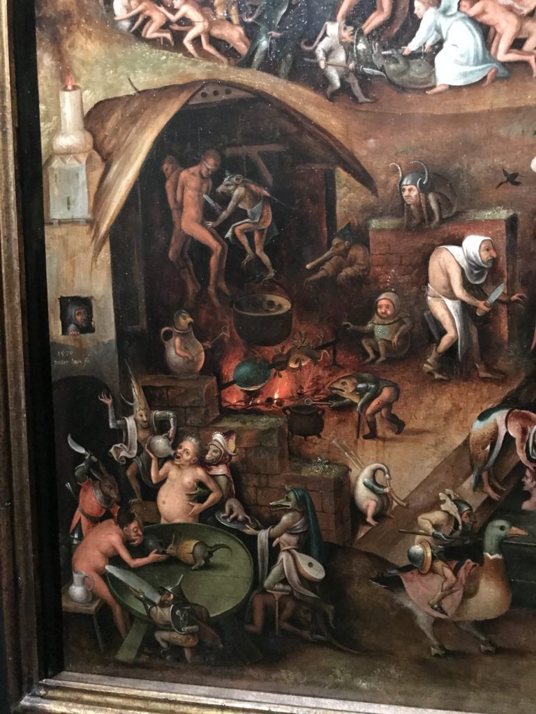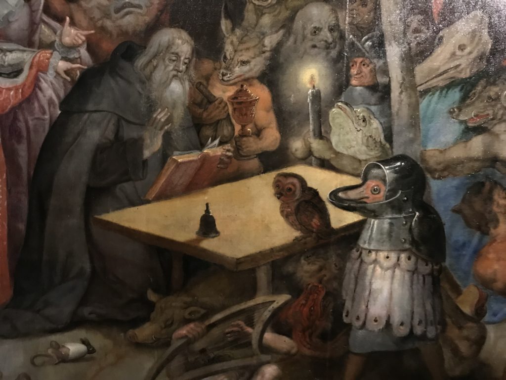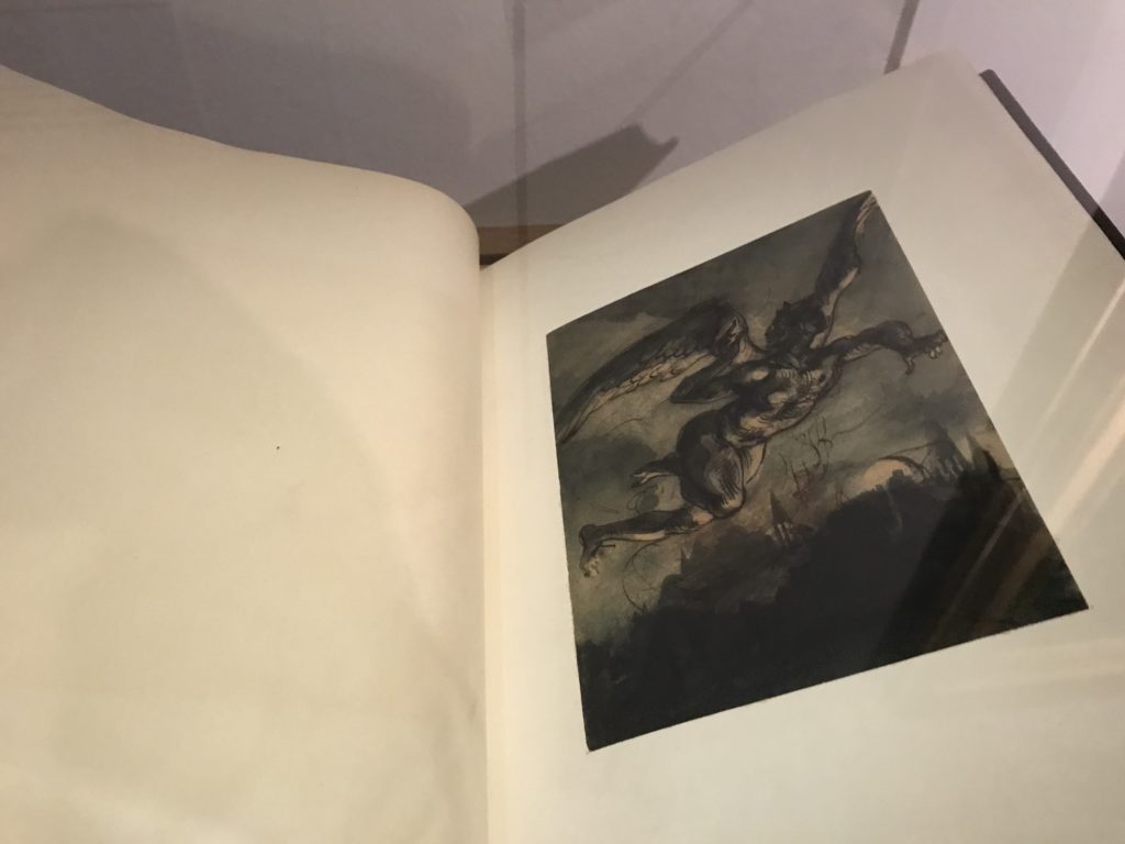 L’incontro con l’universo satanico, l’iconografia infernale, il mondo come lo vediamo e la sua distruzione, sono sintetizzati, nella mostra, nei cupi avvertimenti di cui si fa carico la pittura, la scultura, film, allestimenti, libri e oggetti, miniature medievali, teatrini del male, stampe e grafica fino alle interpretazioni psichiatriche del mistero del Male.