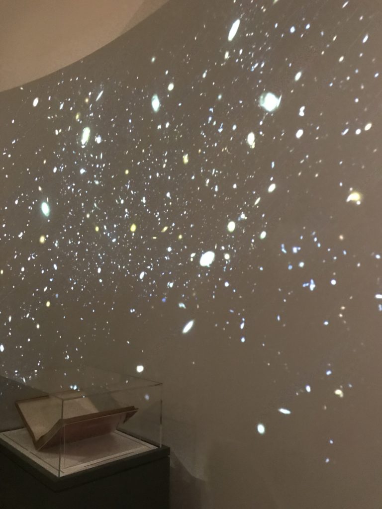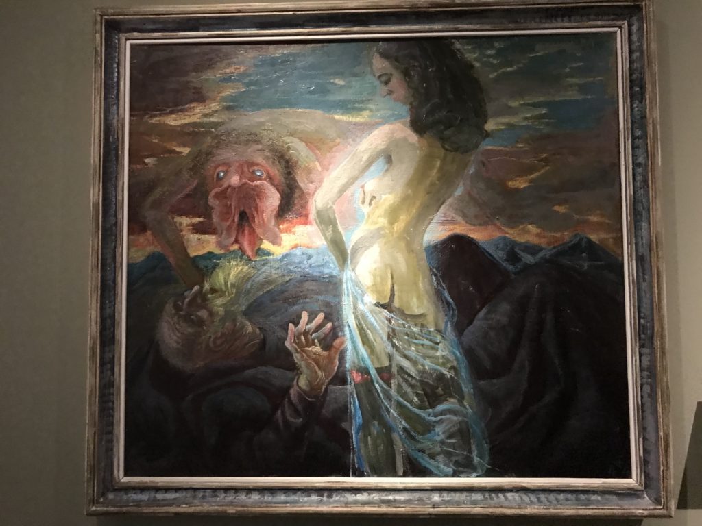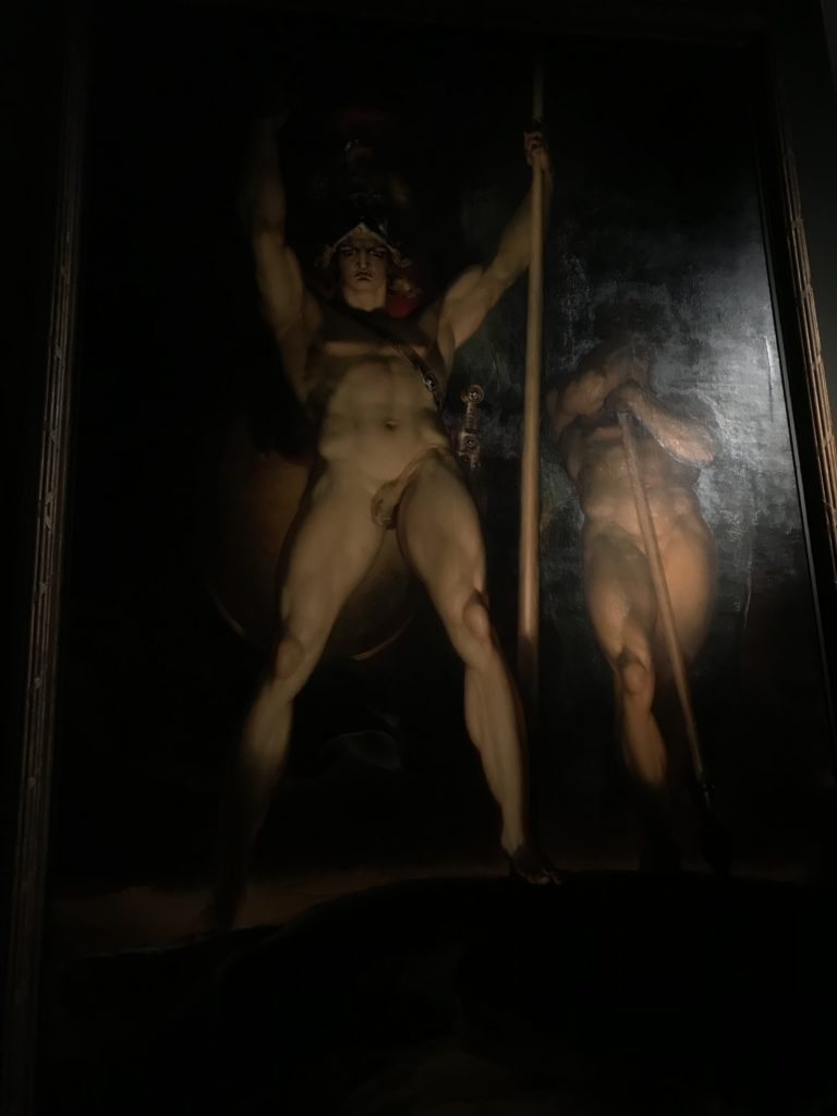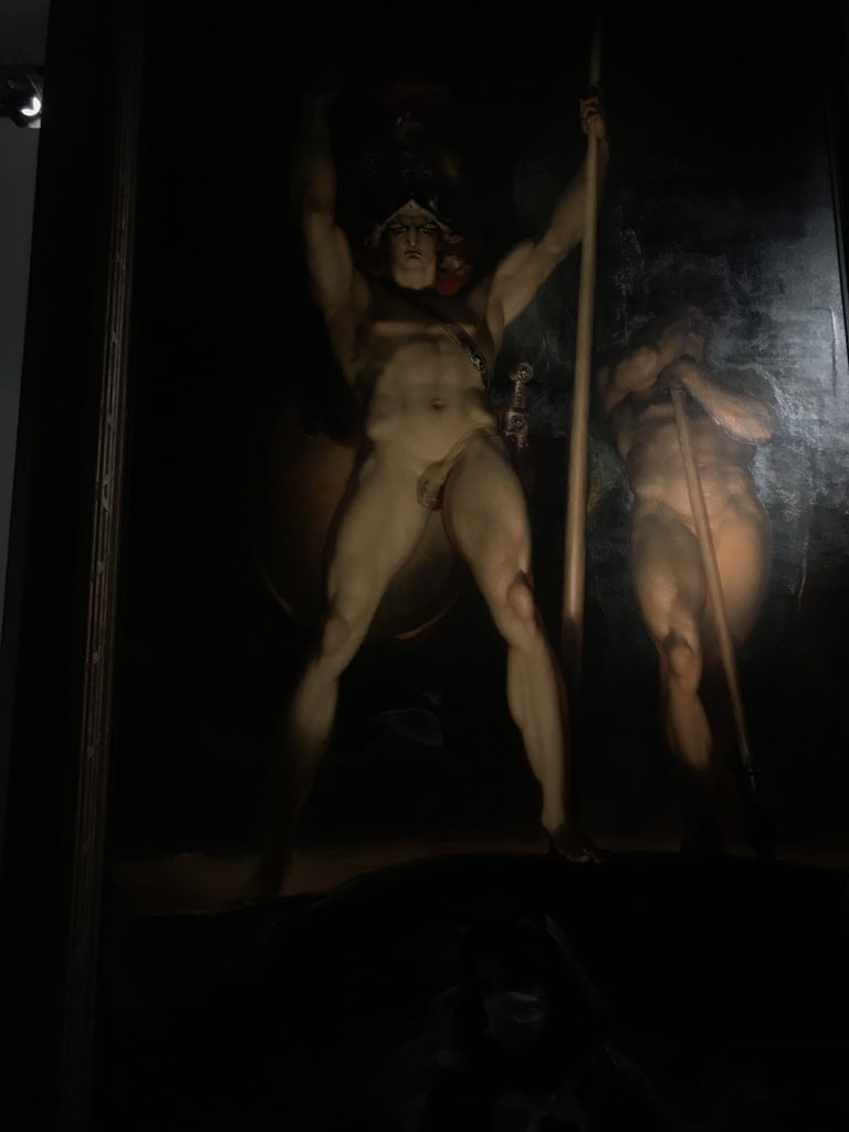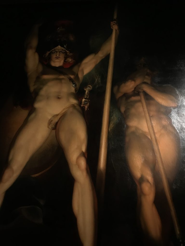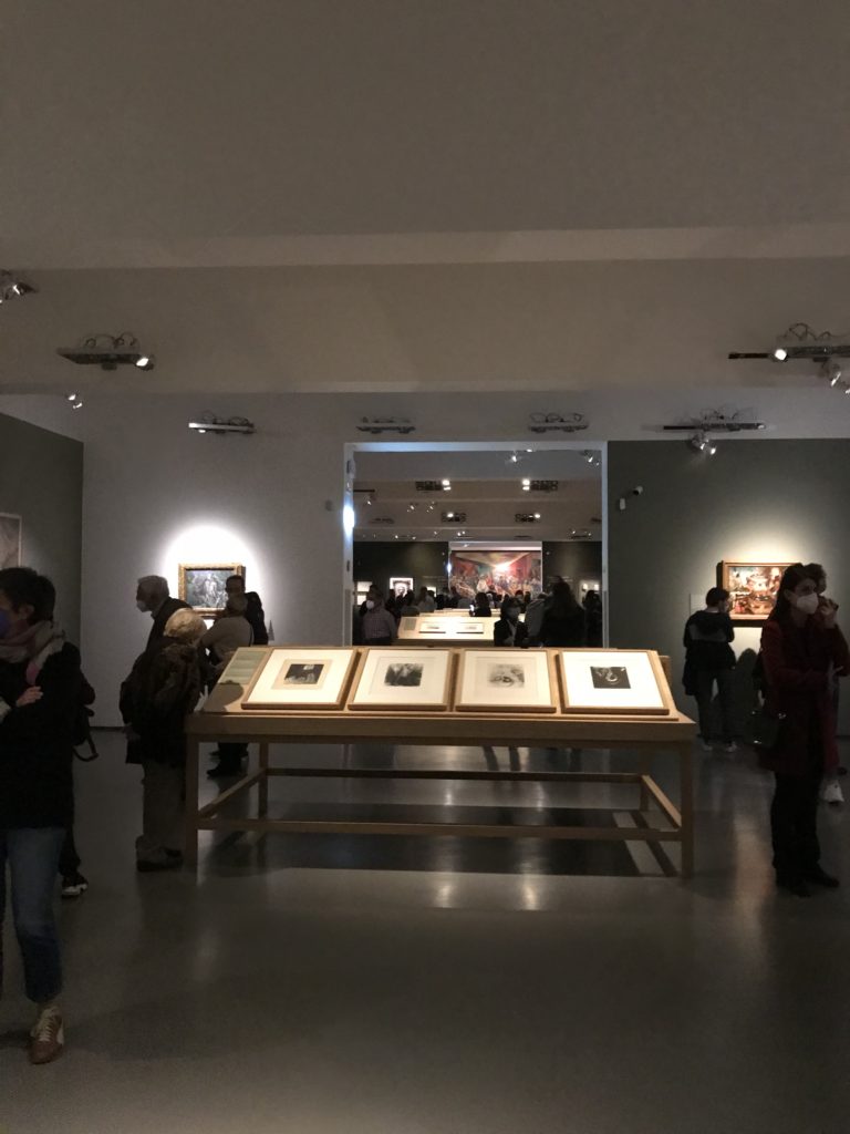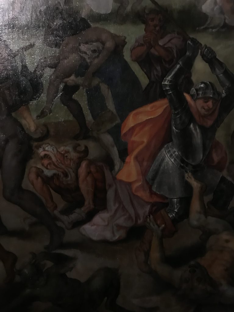 E poi, nelle sale, si avverte un peso emotivo, un’angoscia, una cappa psicologica che non si dissolve, scende e avvolge l’osservatore attento, nell’attraversare e sostare davanti alle opere. Quanto di più drammatico e inusuale (ma soprattutto così riunito iconograficamente) si possa osservare. Il mondo crudele e drammatico dei dannati, dal Medioevo fino ai nostri giorni, in oltre 200 opere provenienti da 80 musei europei e italiani, raccolte pubbliche, collezioni private. Dante, ultraterreno, osserva il grande Male e la sua Condanna, così, la cosmologia del suo pensiero, diviene forma comunicativa nella grande mostra. Tutto sembra convergere nel suo pensiero e le opere esposte – che “inseguono Dante” – ne sono testimonianza. L’inferno, Lucifero, il Giudizio, la Condanna, i Dannati, la topografia, quindi, del cono infernale dipinto, infine, da Sandro Botticelli come nessun altro. La natura mutevole del diavolo, giunge, alla fine delle sale espositive, alla traslazione dell’inferno nelle guerre e negli stermini (adesso intorno a noi), quell’inferno delle devastazioni, le reclusioni, i fronti di combattimento, ma oltre, le fabbriche e il lavoro alienate e tossico, i diritti privati, la dignità, definiti  inferno, e ancora la follia dell’uomo e il buio della malattia, lo sterminio e i campi di concentramento, l’orrore delle torri gemelle, le catastrofi e i terremoti. L’inferno è anche lì, presente, e la mostra se ne fa carico. Ma poi, in questi gironi delle Scuderie del Quirinale che attraversiamo “ insieme” a Dante, quando il Male raggiunge il suo culmine ( e lo vediamo in una serrata e marcata visuale raccapricciante della pittura e della scultura), il poeta affida all’ultimo verso della Cantica il “respiro” che torna normale, non più affannoso per quel che si è visto (ma anche il nostro respiro) : “ E quindi uscimmo a riveder le stelle”, passo mutuato  da Virgilio che Dante accoglie e compendia. Nell’ultima sala, quindi,  le stelle, il cosmo, la galassia, l’astronomia, le sonde spaziali, il nostro sistema solare che allontanano il grande Male della terra e noi, da soli, scopriamo, davanti a questi allestimenti scenici della Nasa, se ce ne fosse bisogno, non siamo nulla nell’infinito e per questo centrali…
