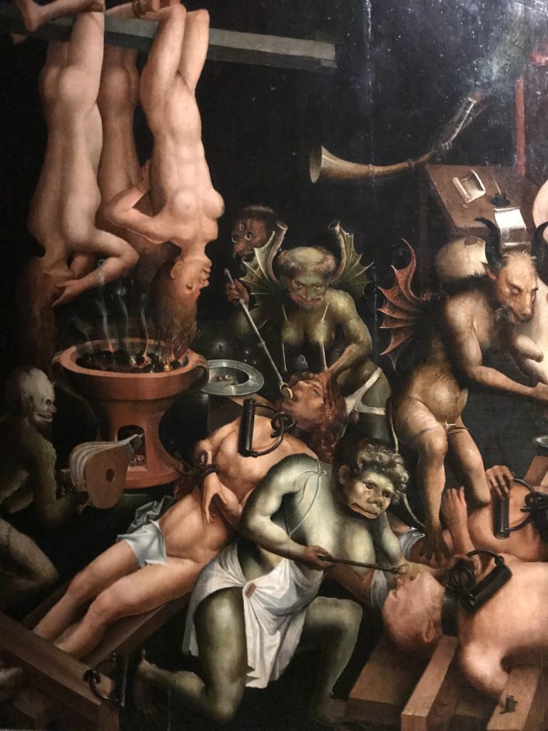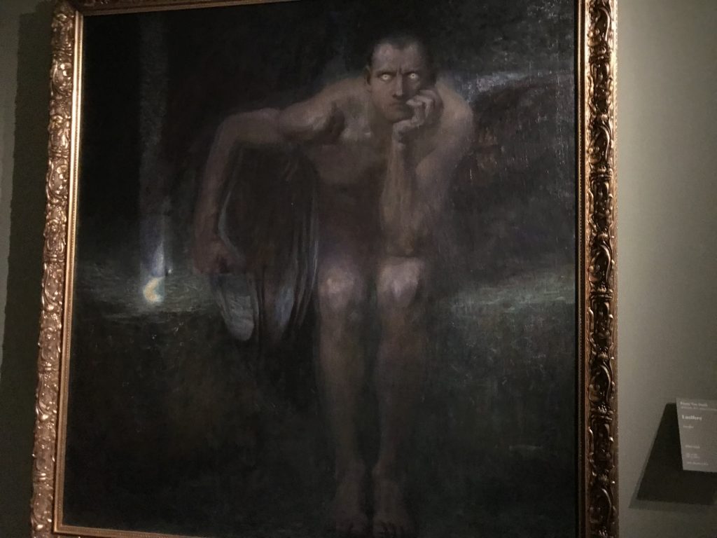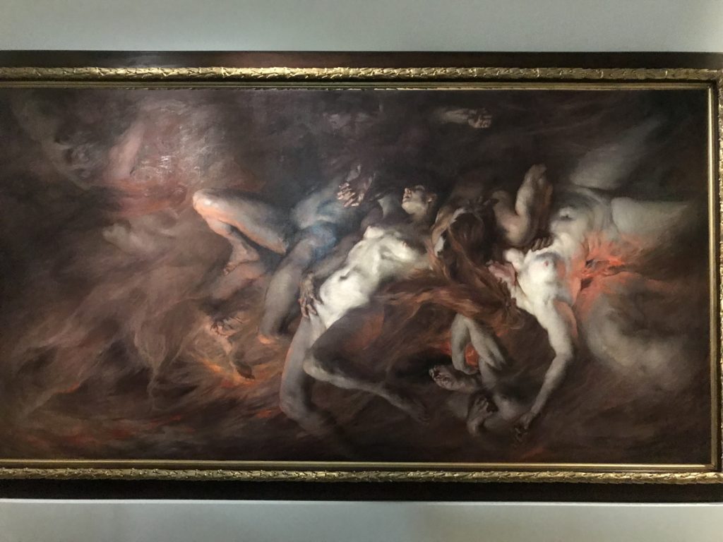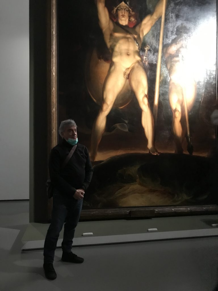 Come detto, l’Umanesimo e l’arte Rinascimentale, poi il Barocco, le tele Romantiche e Simboliste e l’Arte Contemporanea: il satanico non ha epoche. Fino alle crisi sociali attuali. L’espiazione dell’Inferno, ventre della penitenza e dell’alienazione umana dove il Male divora e la morte che non arriva. Il giudizio e poi la sua declinazione nella guerra, prigioni, sterminio, follia. La mostra è anche un percorso spirituale seguendo le opere d’arte e la loro sinistra insistenza nel tormento e la fine dell’umanità, così come s’intendeva in determinate epoche storiche, per poi concludere nell’ottimismo delle stelle. Ma, prima,  le epoche e stili diversi accompagnati da cruda e irriverente visione dell’arte. Letteratura, pittura, scultura, astronomia, e poesia si fondono, in una visione fuori dalla nostra concezione. Peccato e castigo, dannazione e espiazione, infine la Redenzione e la salvezza lì, nell’universo “riveder le stelle”, magari con gli studenti del “Cotugno” dell’Aquila, se il quadro della pandemia, magari, nei prossimi mesi dovesse retrocedere e finire, per toccare con mano l’interdisciplinarietà delle arti nei suoi variegati linguaggi, in un “viaggio“unico e irripetibile che resterà nella formazione e nella memoria dei ragazzi.