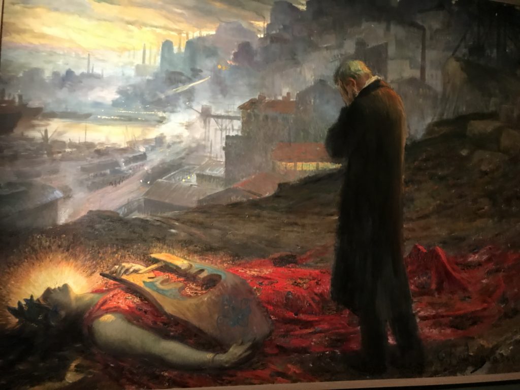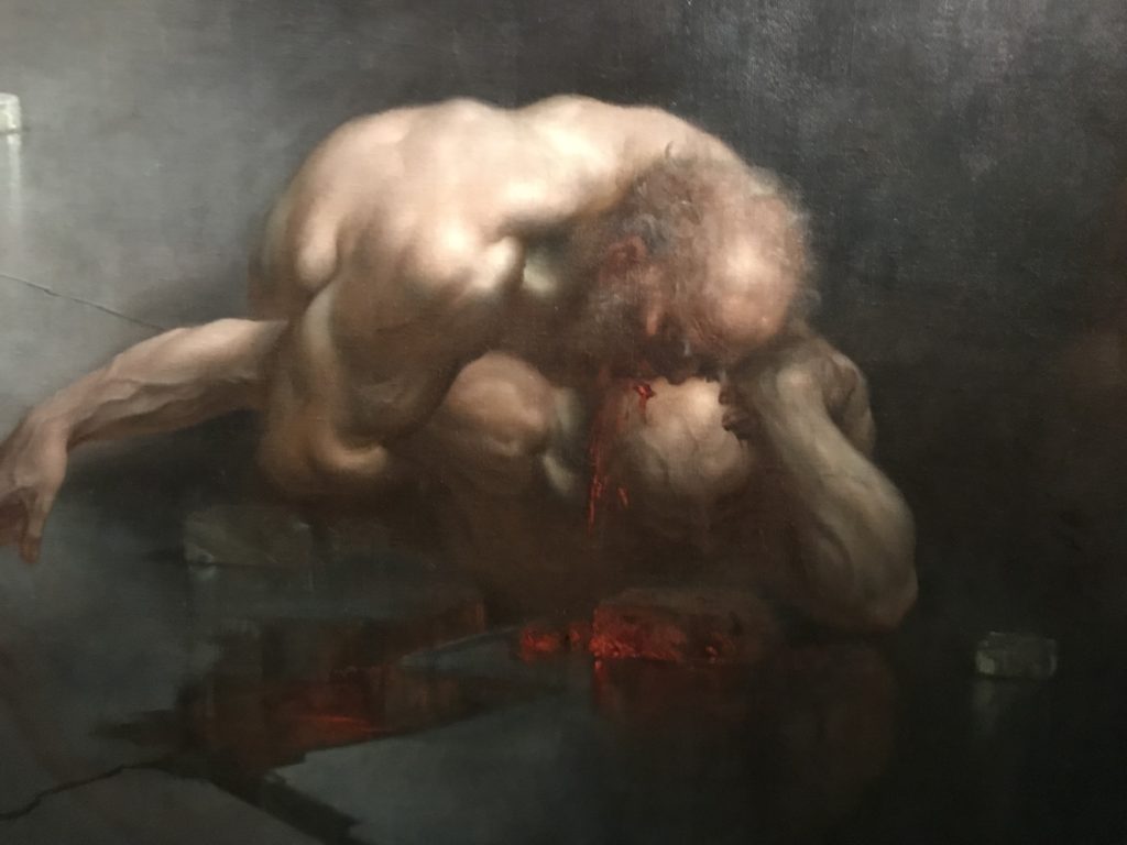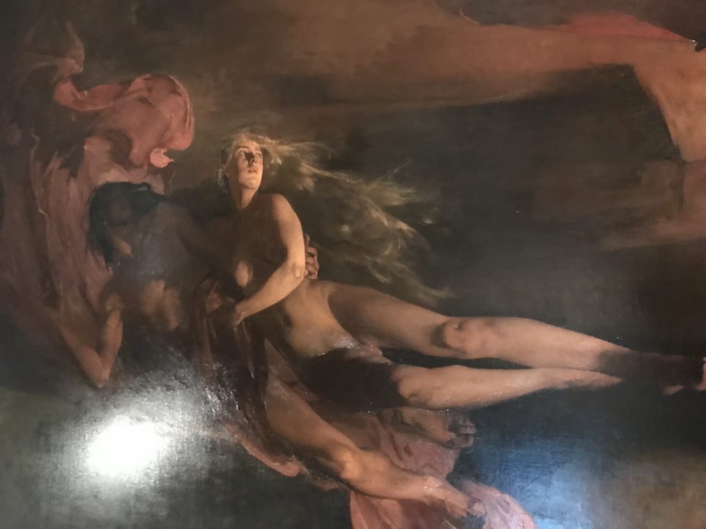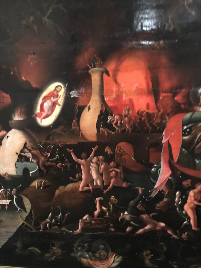 Come detto, l’Umanesimo e l’arte Rinascimentale, poi il Barocco, le tele Romantiche e Simboliste e l’Arte Contemporanea: il satanico non ha epoche. Fino alle crisi sociali attuali. L’espiazione dell’Inferno, ventre della penitenza e dell’alienazione umana dove il Male divora e la morte che non arriva. Il giudizio e poi la sua declinazione nella guerra, prigioni, sterminio, follia. La mostra è anche un percorso spirituale seguendo le opere d’arte e la loro sinistra insistenza nel tormento e la fine dell’umanità, così come s’intendeva in determinate epoche storiche, per poi concludere nell’ottimismo delle stelle. Ma, prima,  le epoche e stili diversi accompagnati da cruda e irriverente visione dell’arte. Letteratura, pittura, scultura, astronomia, e poesia si fondono, in una visione fuori dalla nostra concezione. Peccato e castigo, dannazione e espiazione, infine la Redenzione e la salvezza lì, nell’universo “riveder le stelle”, magari con gli studenti del “Cotugno” dell’Aquila, se il quadro della pandemia, magari, nei prossimi mesi dovesse retrocedere e finire, per toccare con mano l’interdisciplinarietà delle arti nei suoi variegati linguaggi, in un “viaggio“unico e irripetibile che resterà nella formazione e nella memoria dei ragazzi.