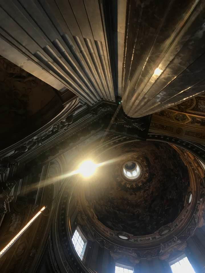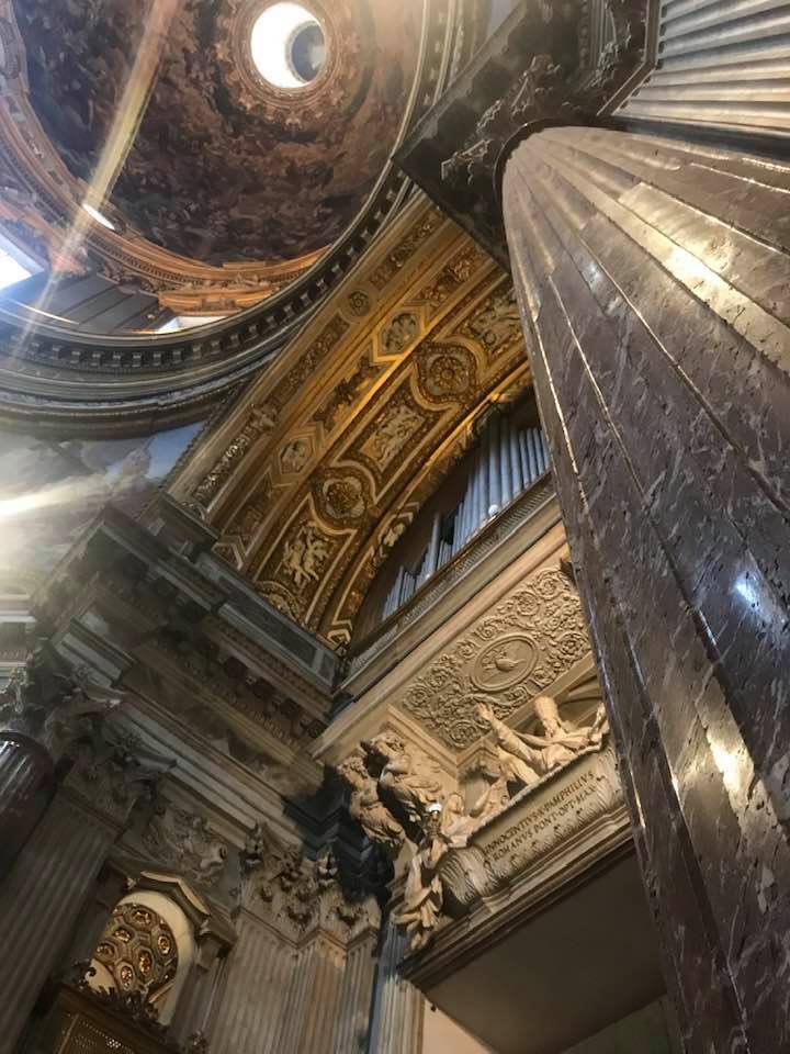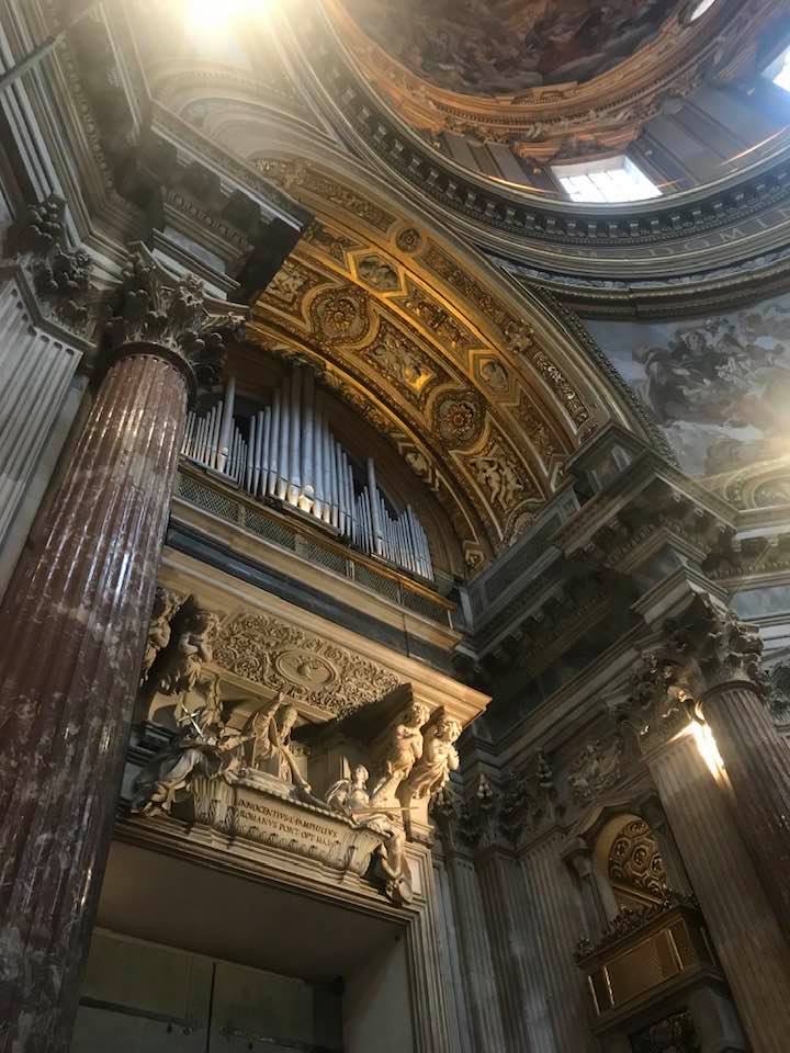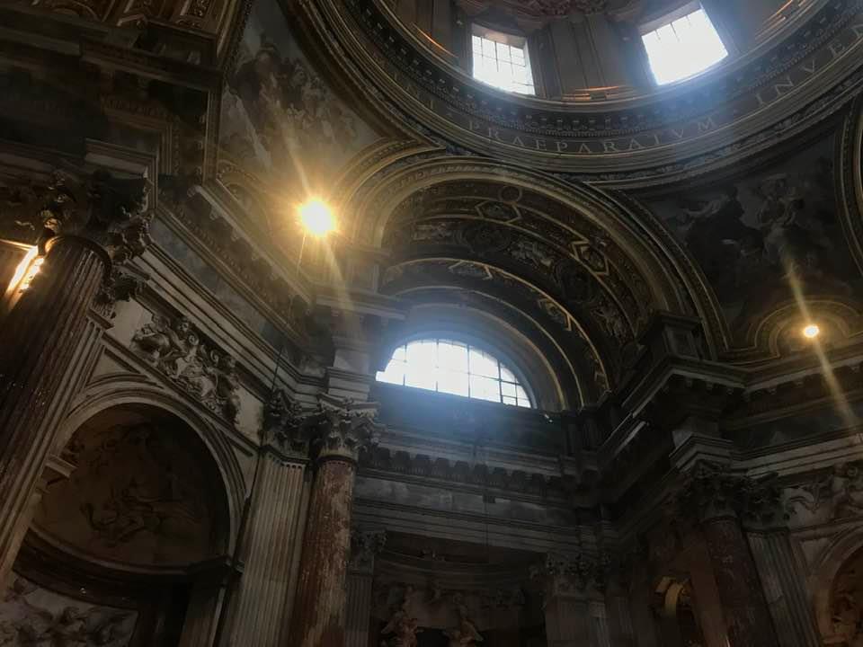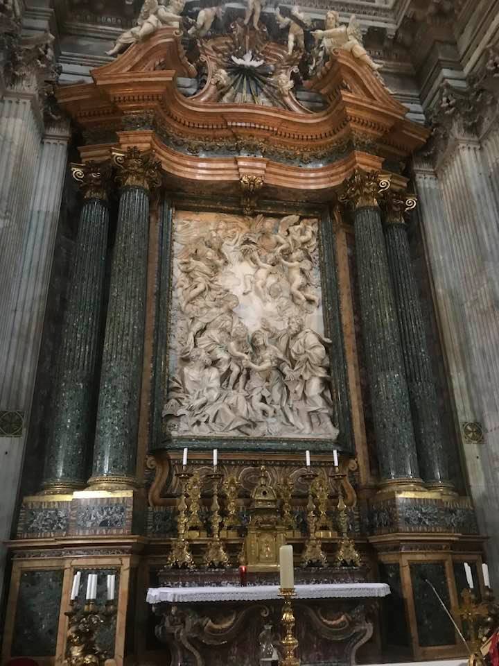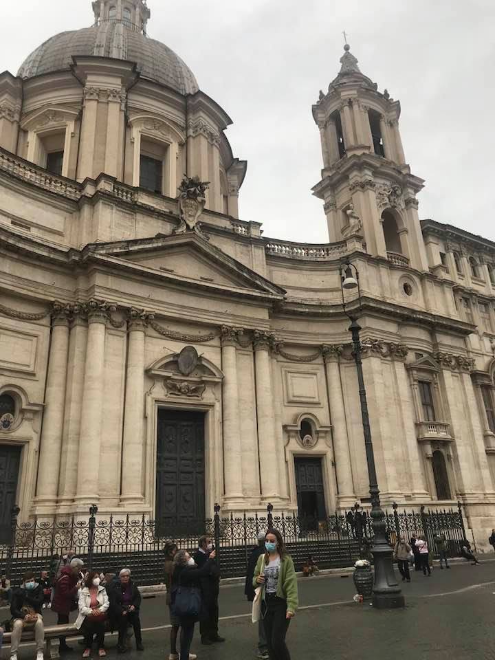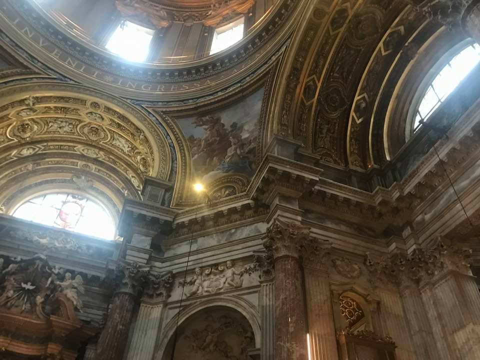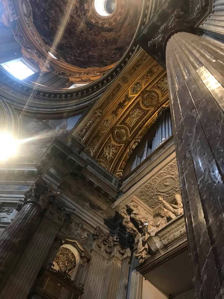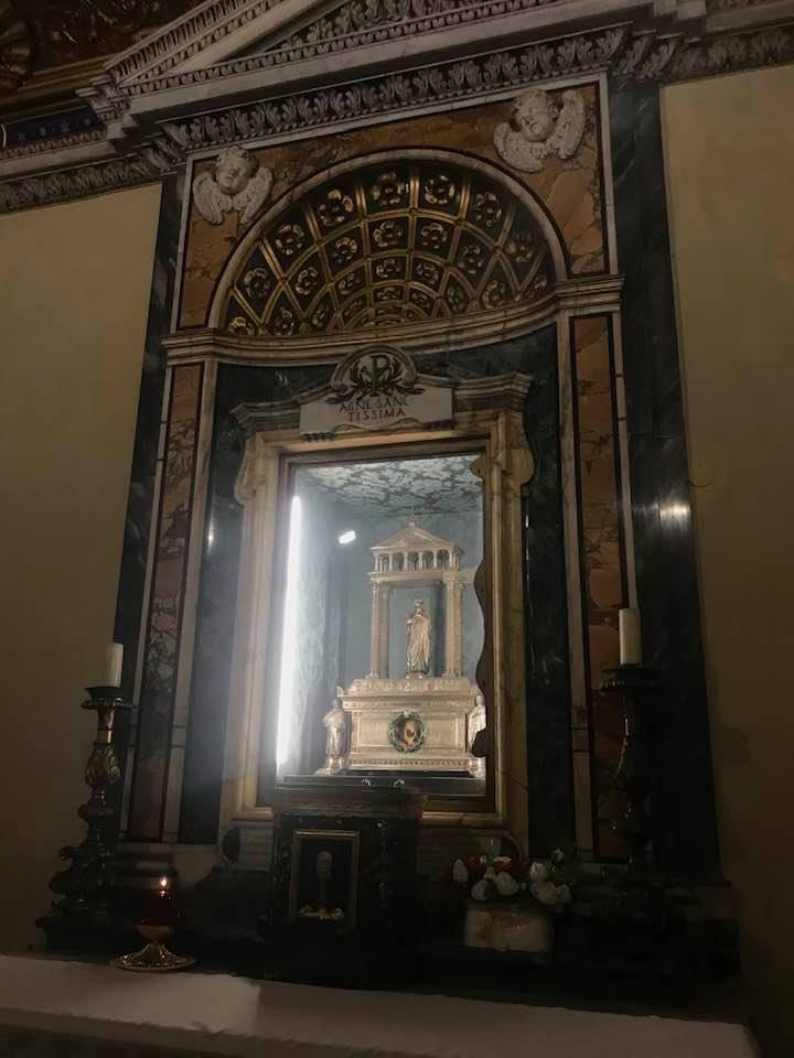 Papa Alessandro VII, successore di Innocenzo X Panphilj ( 1651, sceglie Borromini per edificare il tempio religioso) , revocò l’incarico all’architetto Borromini che si apprestava all’ultimazione architettonica della Basilica di Sant’Agnese a Piazza Navona. Rapporti difficili, dispute, incomprensioni, accuse per gli errori compiuti nel progetto, fino all’abbandono da parte dell’architetto nei lavori quasi ultimati. La chiesa nella sua facciata si caratterizza con curve laterali, al centro due campanili, ghirlande e lesene e tre portali. L’interno ha una pianta a croce greca. I quattro bracci sono sontuosamante decorati come imponeva il barocco nell’epoca. Gli stucchi di eccellente fattura sono presenti nella navata, nell’abside, nei transetti e nelle volte. Quattro altari dedicati ai santi Alessio, Ermenziana, Eustacchio e Cecilia. I transetti sono invece dedicati a Sant’Agnese. L’ altare maggiore ha quattro colonne scanalate in marmo verde antico provenienti dall’Arco di Marco Aurelio al Corso. Di notevole rilevanza la cripta del IV secolo di Sant’Agnese, sito dove fu uccisa la giovane martire. L’apparato decorativo- iconografico si estende sulle pareti affrescate, nelle volte con interventi borrominiani. Colonne e capitelli sorreggono il luogo paleocristiano. Nella Basilica è presente la tomba di Innocenzo X.