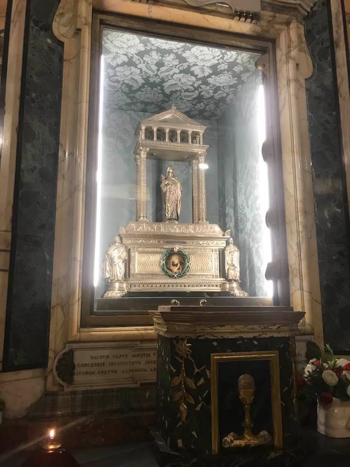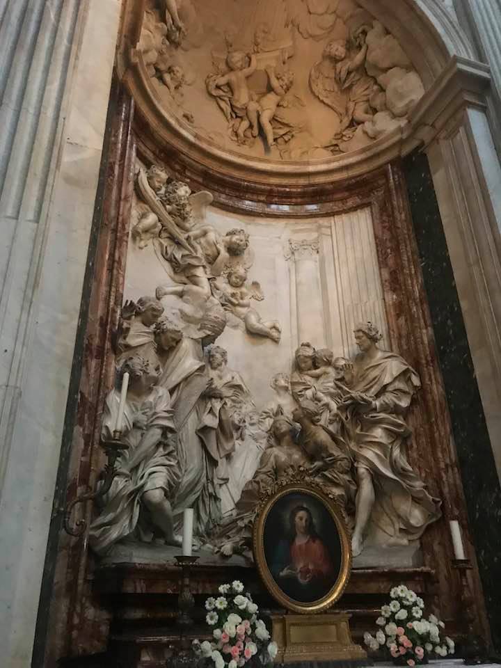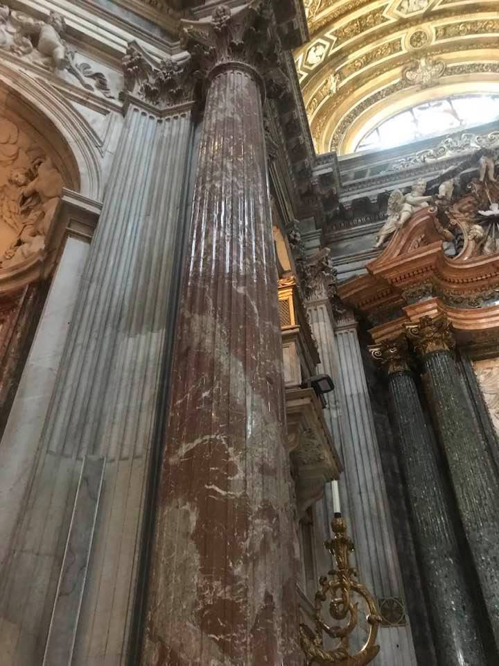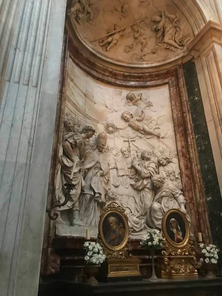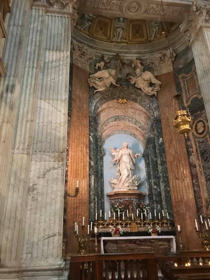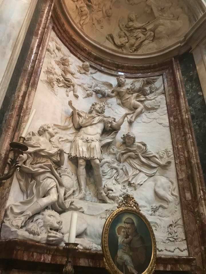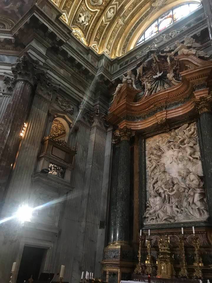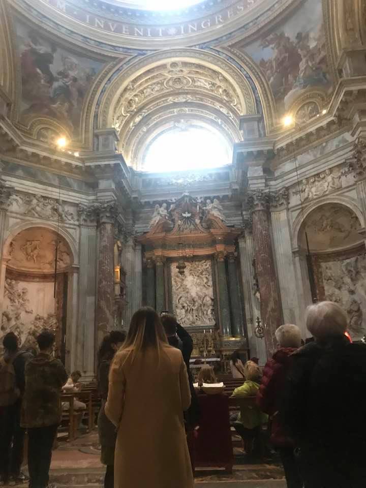 Papa Alessandro VII, successore di Innocenzo X Panphilj ( 1651, sceglie Borromini per edificare il tempio religioso) , revocò l’incarico all’architetto Borromini che si apprestava all’ultimazione architettonica della Basilica di Sant’Agnese a Piazza Navona. Rapporti difficili, dispute, incomprensioni, accuse per gli errori compiuti nel progetto, fino all’abbandono da parte dell’architetto nei lavori quasi ultimati. La chiesa nella sua facciata si caratterizza con curve laterali, al centro due campanili, ghirlande e lesene e tre portali. L’interno ha una pianta a croce greca. I quattro bracci sono sontuosamante decorati come imponeva il barocco nell’epoca. Gli stucchi di eccellente fattura sono presenti nella navata, nell’abside, nei transetti e nelle volte. Quattro altari dedicati ai santi Alessio, Ermenziana, Eustacchio e Cecilia. I transetti sono invece dedicati a Sant’Agnese. L’ altare maggiore ha quattro colonne scanalate in marmo verde antico provenienti dall’Arco di Marco Aurelio al Corso. Di notevole rilevanza la cripta del IV secolo di Sant’Agnese, sito dove fu uccisa la giovane martire. L’apparato decorativo- iconografico si estende sulle pareti affrescate, nelle volte con interventi borrominiani. Colonne e capitelli sorreggono il luogo paleocristiano. Nella Basilica è presente la tomba di Innocenzo X.