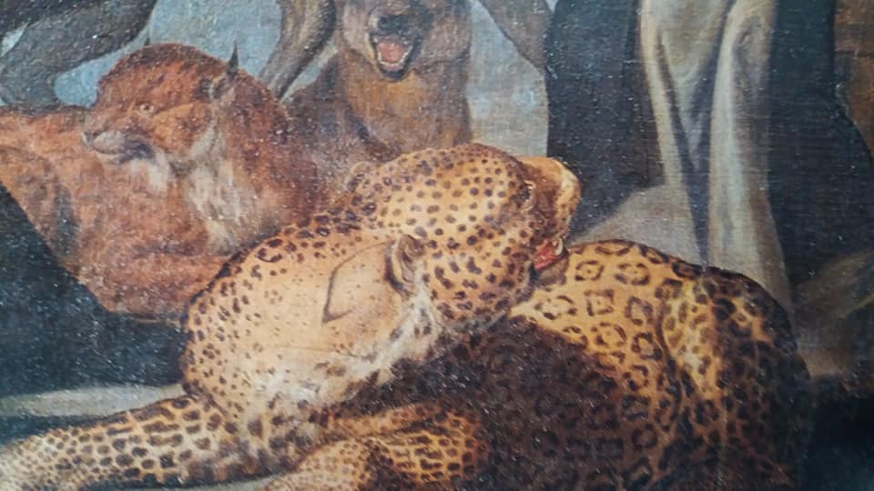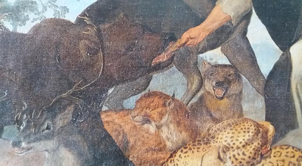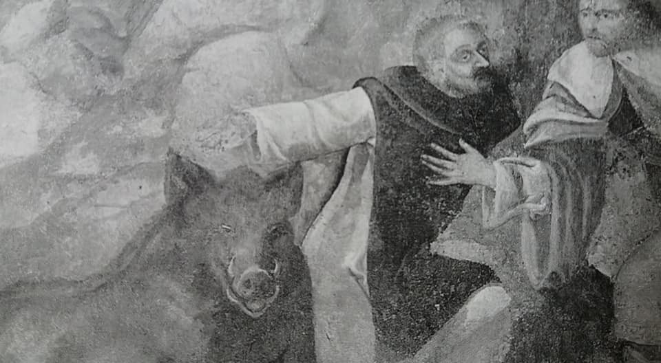 - Particolari del Ruther, Pietro dal Morrone con gli animali ammansiti.