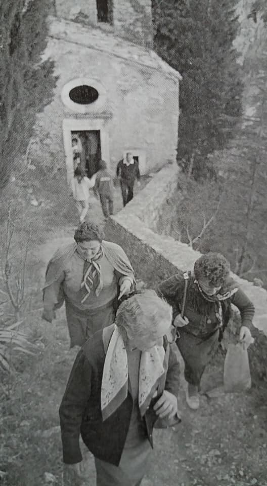 Noi custodi dell’eremo mettiamo monticelli di pietre, le prendiamo fuori con cinque o sei secchi. Le pietre sono piccole. Facciamo questi mucchi perché altrimenti la gente spacca i muri per prenderle e lanciarle giù: più lontano si lancia la pietra, più lontano si scaccia il demonio”, la tentazione nella sottostante valle dell’Inferno con le sue grotte nascoste dalla radura, centinaia di metri di parete a strapiombo, liscia, ingoia il precipizio, insieme ai sassi gettati, giù, dentro le forze occulte, le forze infernali che si sono date appuntamento in un luogo puro, frontiera del mito, della fede, e non poteva essere che così, per raccontare le sfide continue tra il bene e il male, tra la montagna sacra e le sue radici demoniache, celate, infestate dalle nostre paure e infine liberate dai nostri desideri….