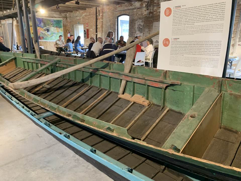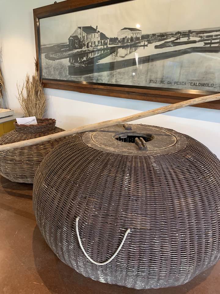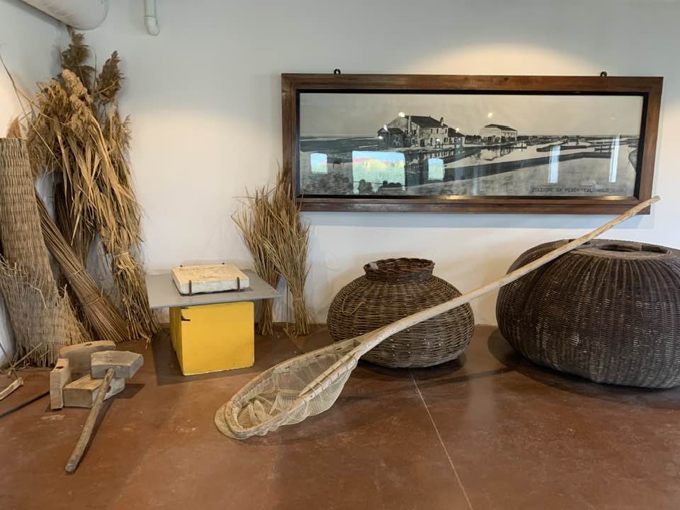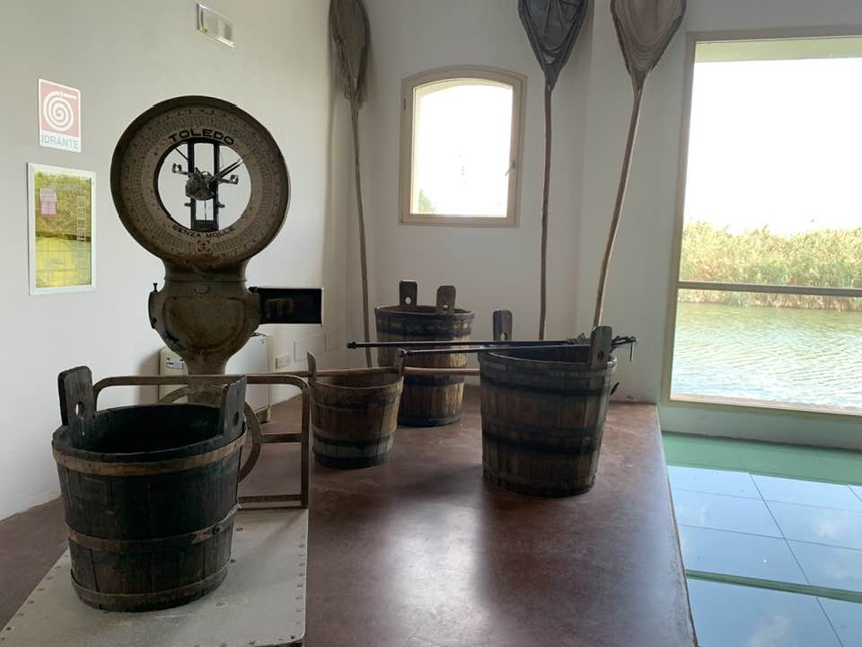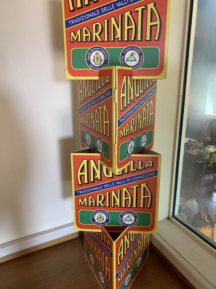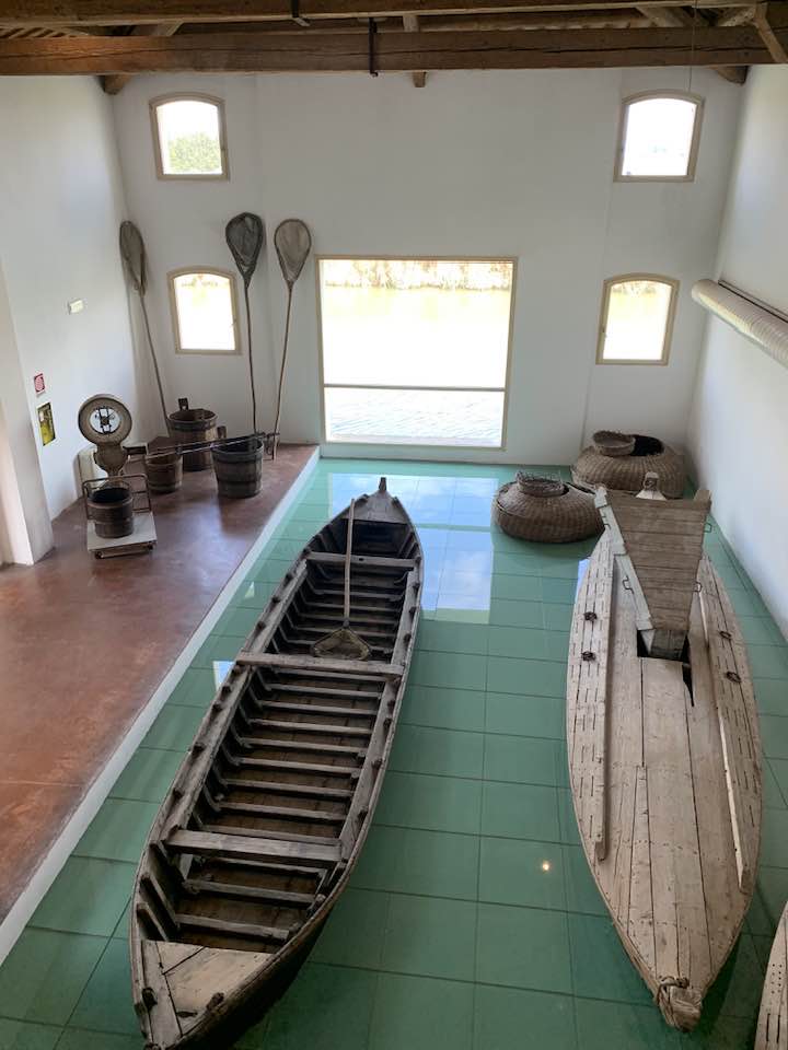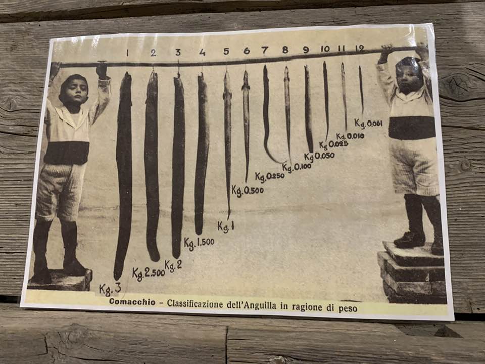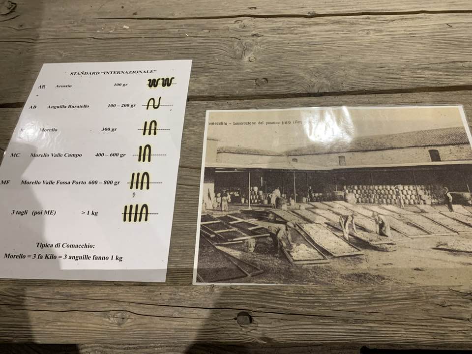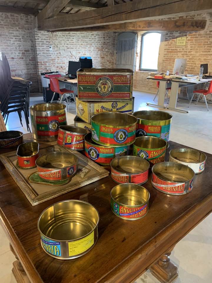 La lavorazione delle anguille viene eseguita con la stessa metodologia invariata nel tempo: la marinatura con aceto di vino bianco, alloro e sale di Cervia. Il disciplinare è noto già dal 1818. L’anguilla viene cotta nelle griglie alla brace e inscatolata appunto in salamoia. La Manifattura dei Marinati, lo stabilimento per la trasformazione del prodotto anguilla, è stato destinato a sito museale delle valli di Comacchio. I grandi camini per la cottura alla brace, i tini, i cesti per il trasporto delle anguille, le botti per la salamoia, la sala degli aceti, la sala dei fuochi, le barche e gli oggetti d’uso, i timbri e i marchi per le spedizioni delle partite di anguille, le tecniche di pesca e di lavorazione, la cultura materiale eredita da generazioni nei gesti e nelle metodiche che non sono mutati nei decenni trascorsi nelle valli di Comacchio. La lavorazione delle anguille: il taglio, la spiedatura, la cottura con uno spiedo al fuoco della brace e infine il confezionamento. La sala dei fuochi dello stabilimento dei Marinati, la manifattura con i grandi camini risale all’inizio del ‘900. La “maròta o la “marutina” è un’imbarcazione con il fondo piatto, con i fori e le fessuri sul fondo e lungo le fiancate per la fuoriuscita dell’acqua. Con queste imbarcazioni si trasportava il pesce sulle lunghe distanze, veri e propri vivai galleggianti, le barche sono state realizzate dai maestri artigiani costruttori di barche, i calafati. Nelle botti e nei tini venivano conservate le anguille per la marinatura. L’anguilla vive nelle acque salmastre e dolci nel delta del Po, migra in mare per la riproduzione. La fiocina con diverse punte nell’estremità veniva fissata in un lungo palo in legno, nella pesca notturna, con le lampade a petrolio o candele collocate nelle prue delle imbarcazioni. Nel delta del Po, ossia le valli di Comacchio, i “lavorieri” in canne palustri (camere di attraversamento dei pesci immersi nell’acqua), chiamate bocche di mare che presentano visivamente la laguna come una sorta di grande peschiera dove gli avannotti delle anguille si alimentano.
