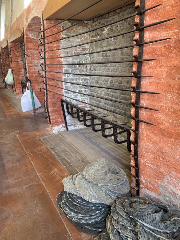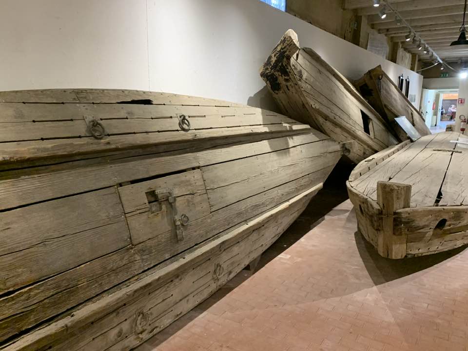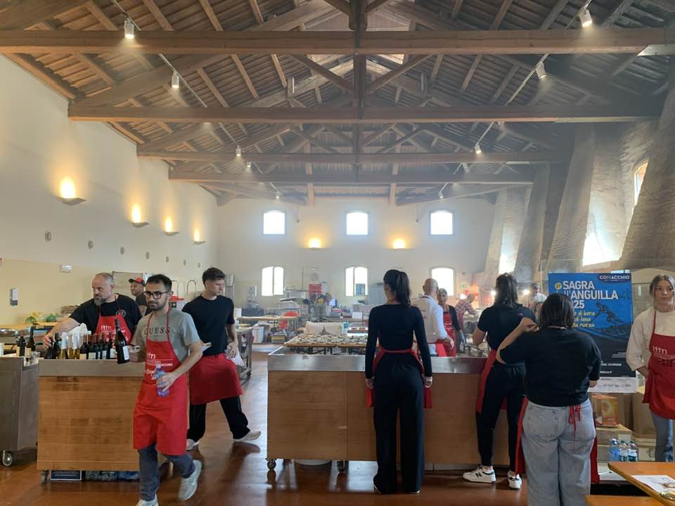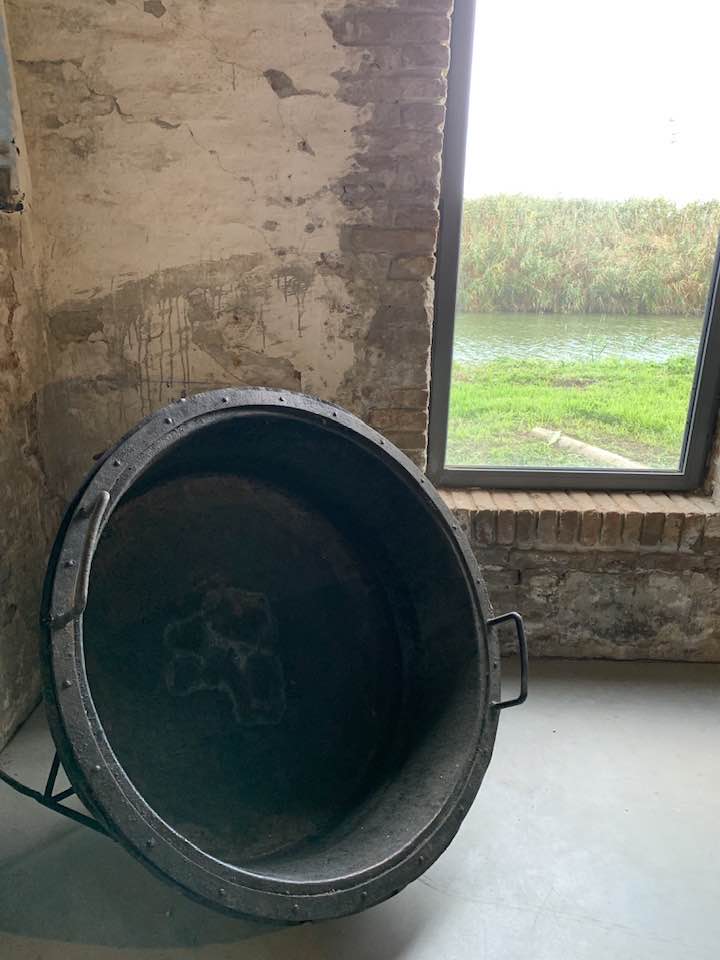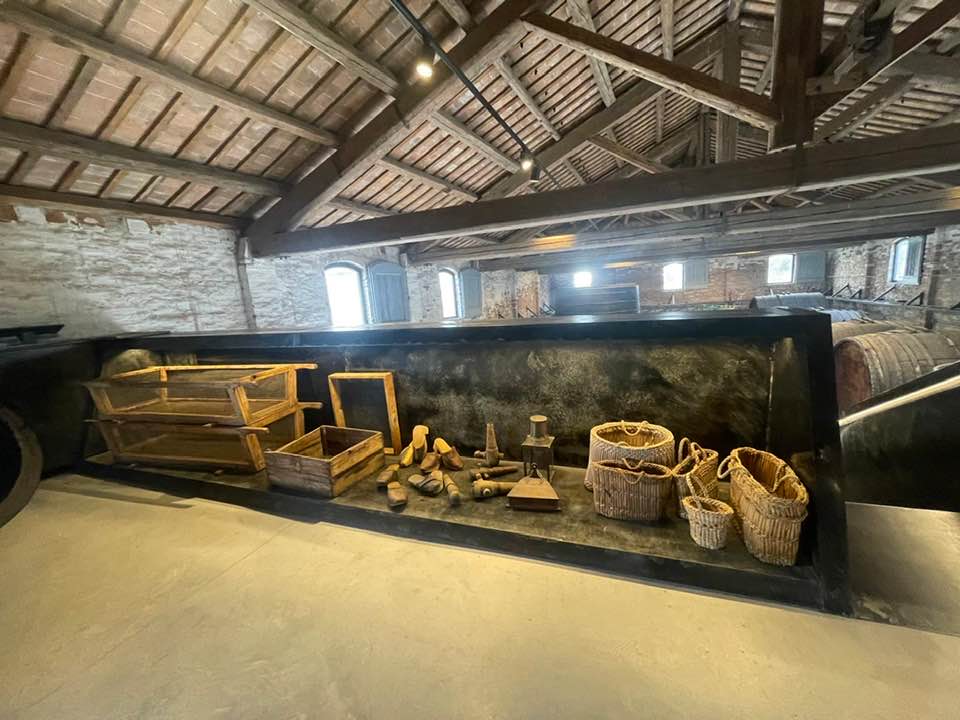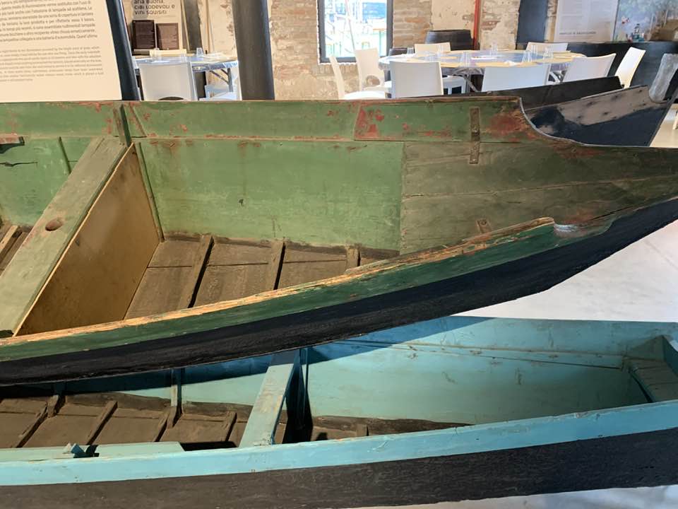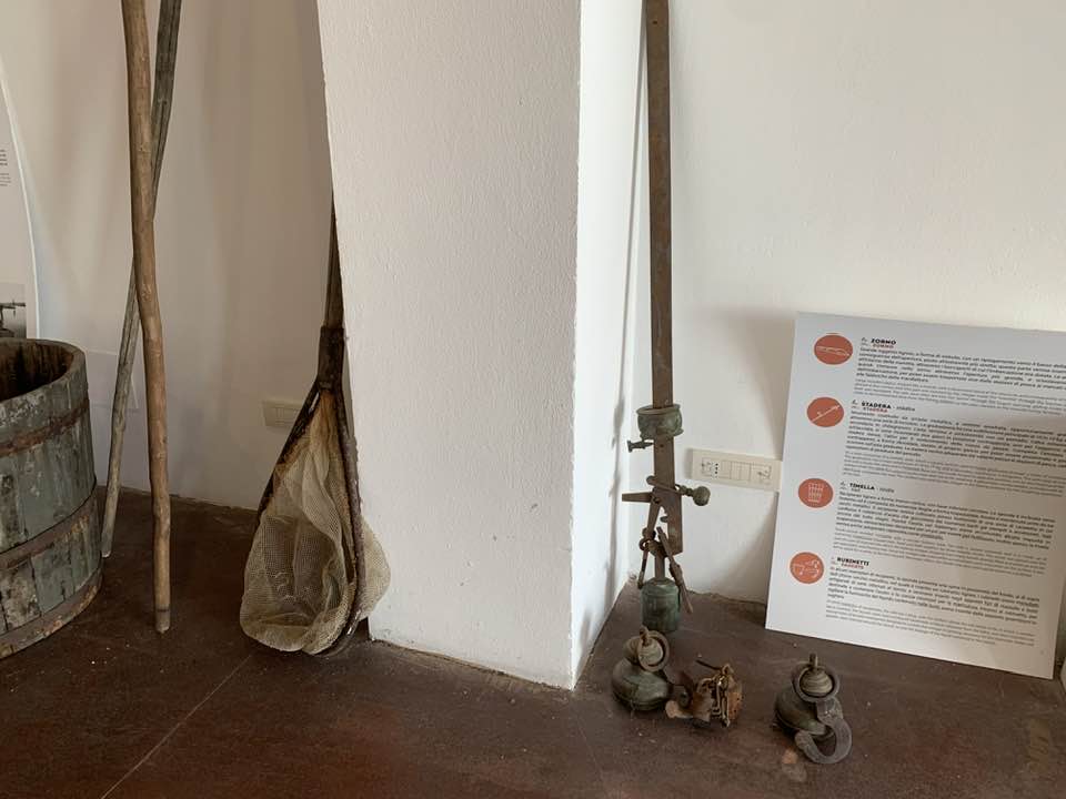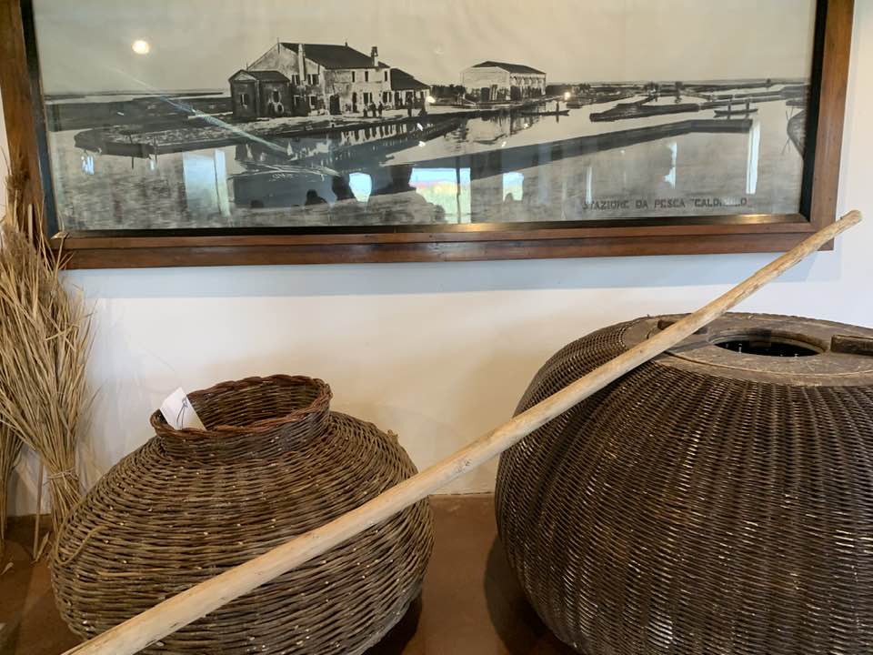 La lavorazione delle anguille viene eseguita con la stessa metodologia invariata nel tempo: la marinatura con aceto di vino bianco, alloro e sale di Cervia. Il disciplinare è noto già dal 1818. L’anguilla viene cotta nelle griglie alla brace e inscatolata appunto in salamoia. La Manifattura dei Marinati, lo stabilimento per la trasformazione del prodotto anguilla, è stato destinato a sito museale delle valli di Comacchio. I grandi camini per la cottura alla brace, i tini, i cesti per il trasporto delle anguille, le botti per la salamoia, la sala degli aceti, la sala dei fuochi, le barche e gli oggetti d’uso, i timbri e i marchi per le spedizioni delle partite di anguille, le tecniche di pesca e di lavorazione, la cultura materiale eredita da generazioni nei gesti e nelle metodiche che non sono mutati nei decenni trascorsi nelle valli di Comacchio. La lavorazione delle anguille: il taglio, la spiedatura, la cottura con uno spiedo al fuoco della brace e infine il confezionamento. La sala dei fuochi dello stabilimento dei Marinati, la manifattura con i grandi camini risale all’inizio del ‘900. La “maròta o la “marutina” è un’imbarcazione con il fondo piatto, con i fori e le fessuri sul fondo e lungo le fiancate per la fuoriuscita dell’acqua. Con queste imbarcazioni si trasportava il pesce sulle lunghe distanze, veri e propri vivai galleggianti, le barche sono state realizzate dai maestri artigiani costruttori di barche, i calafati. Nelle botti e nei tini venivano conservate le anguille per la marinatura. L’anguilla vive nelle acque salmastre e dolci nel delta del Po, migra in mare per la riproduzione. La fiocina con diverse punte nell’estremità veniva fissata in un lungo palo in legno, nella pesca notturna, con le lampade a petrolio o candele collocate nelle prue delle imbarcazioni. Nel delta del Po, ossia le valli di Comacchio, i “lavorieri” in canne palustri (camere di attraversamento dei pesci immersi nell’acqua), chiamate bocche di mare che presentano visivamente la laguna come una sorta di grande peschiera dove gli avannotti delle anguille si alimentano.