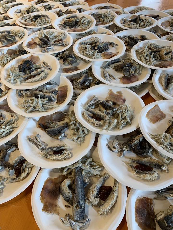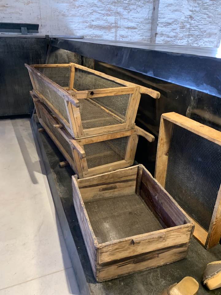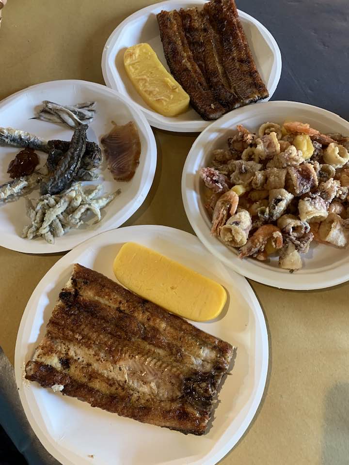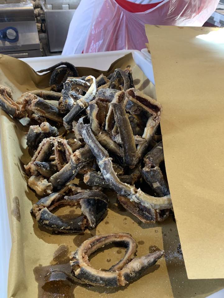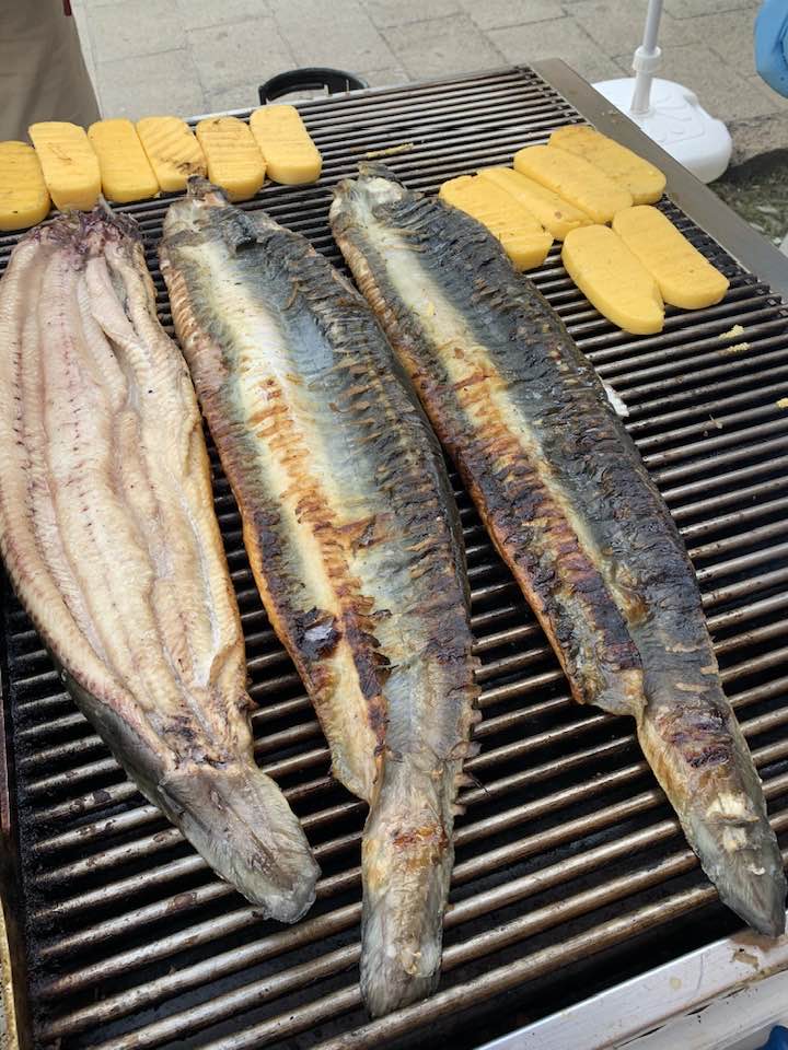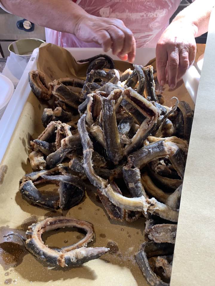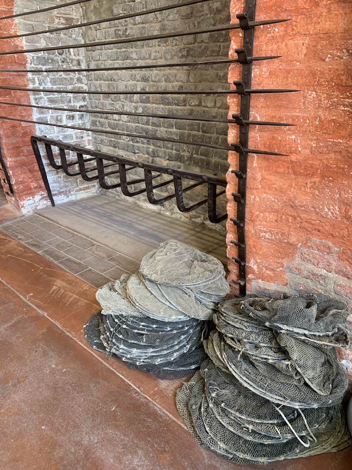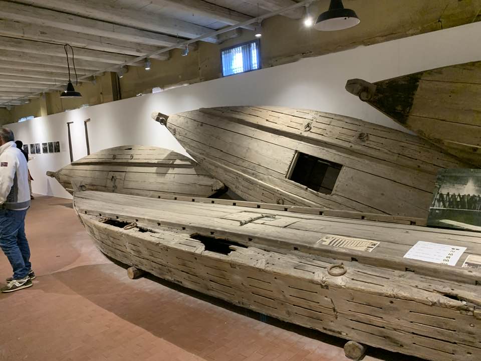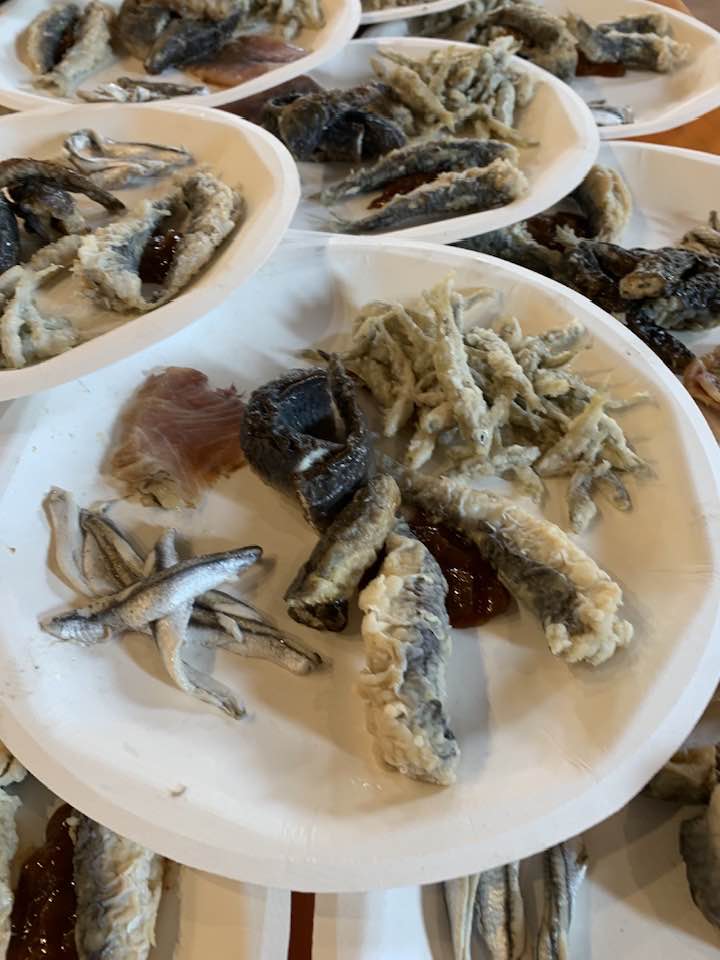 La lavorazione delle anguille viene eseguita con la stessa metodologia invariata nel tempo: la marinatura con aceto di vino bianco, alloro e sale di Cervia. Il disciplinare è noto già dal 1818. L’anguilla viene cotta nelle griglie alla brace e inscatolata appunto in salamoia. La Manifattura dei Marinati, lo stabilimento per la trasformazione del prodotto anguilla, è stato destinato a sito museale delle valli di Comacchio. I grandi camini per la cottura alla brace, i tini, i cesti per il trasporto delle anguille, le botti per la salamoia, la sala degli aceti, la sala dei fuochi, le barche e gli oggetti d’uso, i timbri e i marchi per le spedizioni delle partite di anguille, le tecniche di pesca e di lavorazione, la cultura materiale eredita da generazioni nei gesti e nelle metodiche che non sono mutati nei decenni trascorsi nelle valli di Comacchio. La lavorazione delle anguille: il taglio, la spiedatura, la cottura con uno spiedo al fuoco della brace e infine il confezionamento. La sala dei fuochi dello stabilimento dei Marinati, la manifattura con i grandi camini risale all’inizio del ‘900. La “maròta o la “marutina” è un’imbarcazione con il fondo piatto, con i fori e le fessuri sul fondo e lungo le fiancate per la fuoriuscita dell’acqua. Con queste imbarcazioni si trasportava il pesce sulle lunghe distanze, veri e propri vivai galleggianti, le barche sono state realizzate dai maestri artigiani costruttori di barche, i calafati. Nelle botti e nei tini venivano conservate le anguille per la marinatura. L’anguilla vive nelle acque salmastre e dolci nel delta del Po, migra in mare per la riproduzione. La fiocina con diverse punte nell’estremità veniva fissata in un lungo palo in legno, nella pesca notturna, con le lampade a petrolio o candele collocate nelle prue delle imbarcazioni. Nel delta del Po, ossia le valli di Comacchio, i “lavorieri” in canne palustri (camere di attraversamento dei pesci immersi nell’acqua), chiamate bocche di mare che presentano visivamente la laguna come una sorta di grande peschiera dove gli avannotti delle anguille si alimentano.