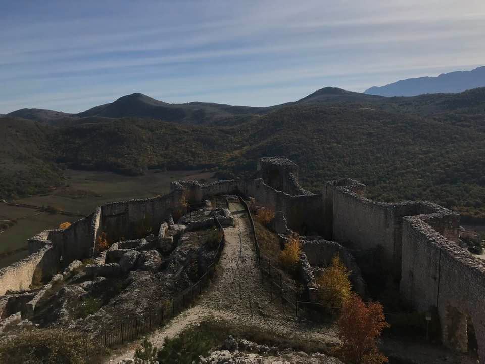 C’era una volta un uomo ricco e potente che viveva in un castello. Lo aveva costruito lui, in tanto e tanti anni, raccogliendo le pietre dalla montagna. La torre, le mura che si appoggiavano su un dirupo e i camminamenti, le cisterne d’acqua, i magazzini per le scorte alimentari, le stalle e le cantine, la grande porta di accesso avevano preso forma in quel luogo sorto su un’altura a guardia del paesaggio sottostante. Ma una notte senti bisbigliare, mormorare, e quando il vento si alzò improvvisamente e le foglie volarono via avvolte da una enorme nube, il castello iniziò a brillare di una luce bianca, si affaccio quindi il ricco signore ad una finestra del torrione e vide un vapore di colore azzurro salire dalla cinta muraria. Lentamente avvolse tutto il castello. Scese dalla sua residenza, poggio i piedi nel recinto fortificato del castello, inizio a camminare per capire che cosa stesse accadendo davanti ai suoi occhi sorpresi e preoccupati, di così magico e misterioso. Poi si fermò improvvisamentete attratto da qualcosa, e vide che le pietre da lui raccolte…