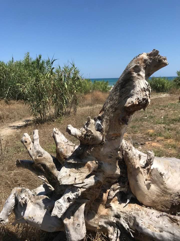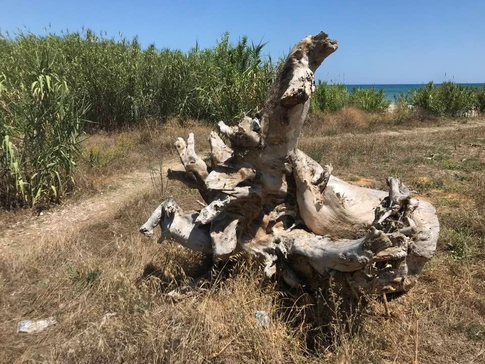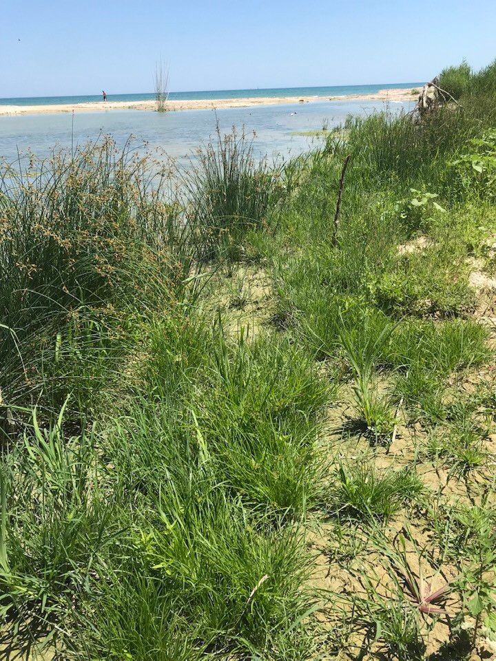 Il Salinello e la sua foce: salinum per la presenza di saline. Il fiume entra nel mare Adriatico dopo aver percorso 45 chilometri. La foce muta continuamente per la portata delle acque. L’ampio bacino è soggetto alle mareggiate che ne modificano la morfologia delle dune. Il folto canneto delle due sponde e la presenza dell’Airone Cenerino che nidifica lungo i margini del corso d’acqua e le anatre dentro la flora fluviale, caratterizzano la zona costiera che conserva un primato dell’avifauna locale e della vegetazione fluviale. Le gobbe sabbiose, lunghe, che salgono al centro del bacino, sono gli accumuli che segnano il punto di contatto delle acque del fiume e del mare che s’incontrano e modellano visivamente l’habitat sommitale che emerge nel bacino del Salinello.