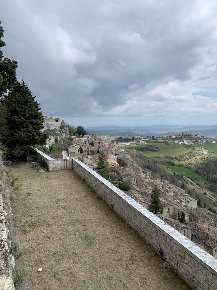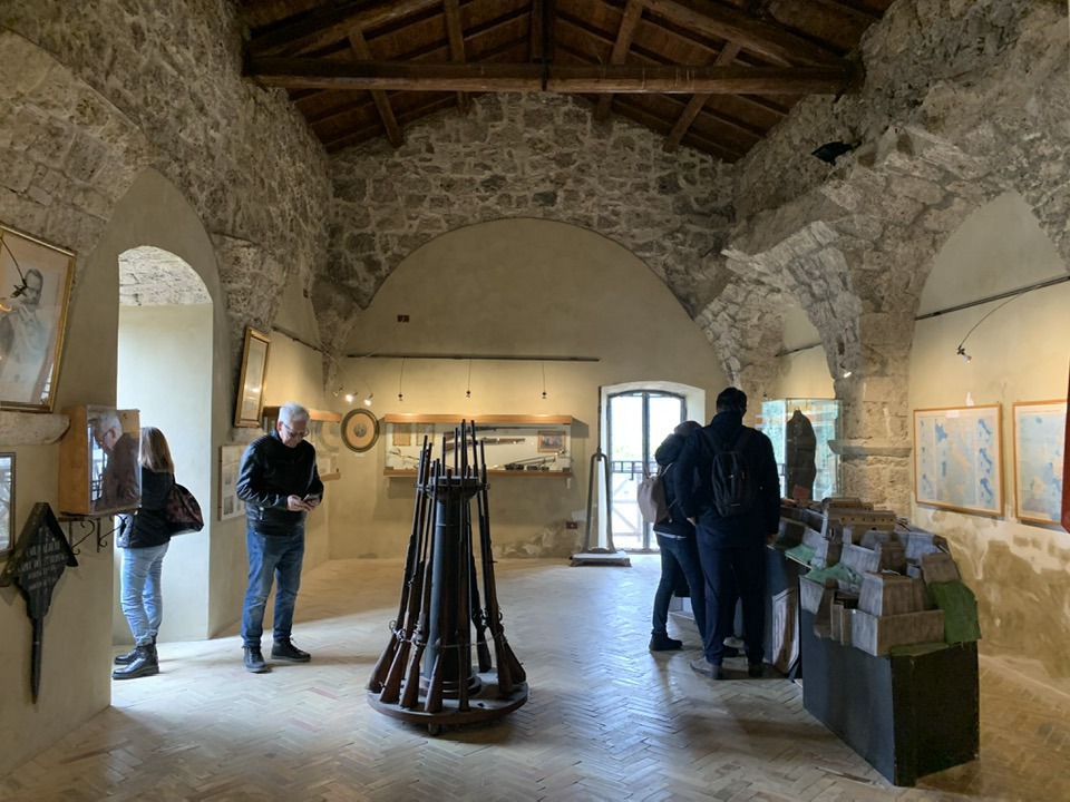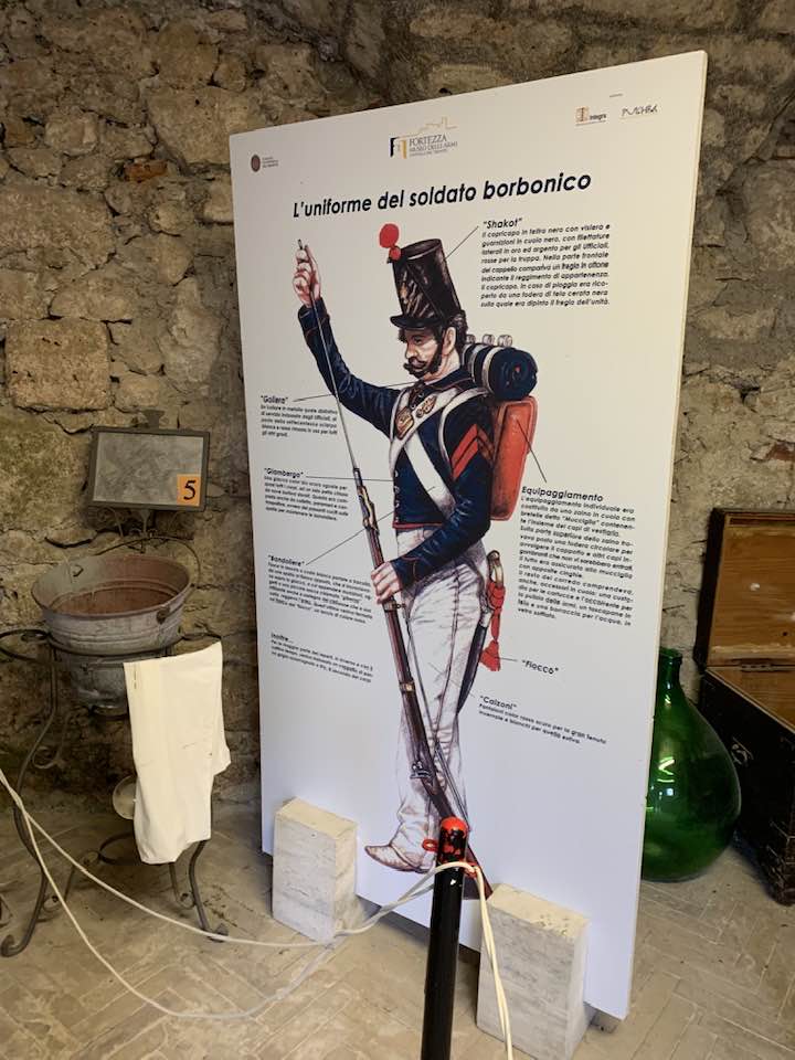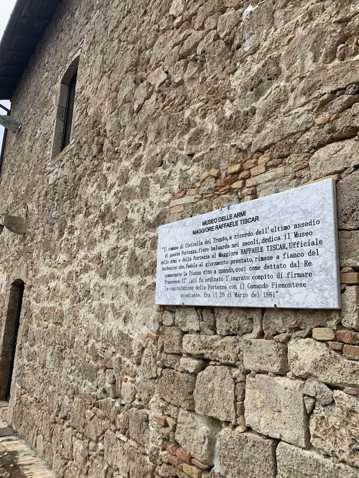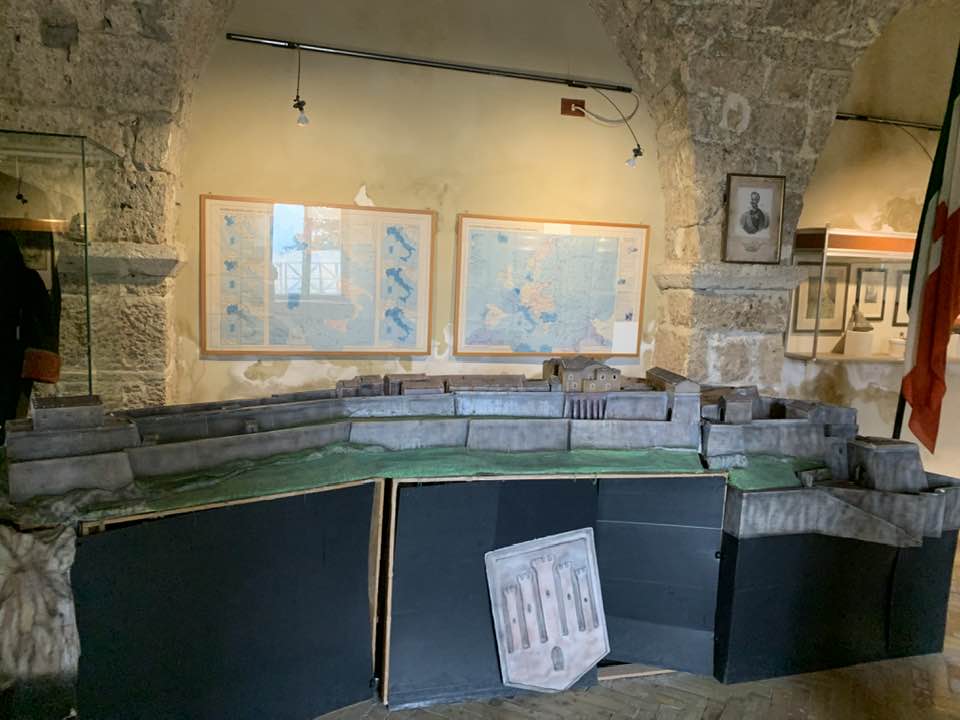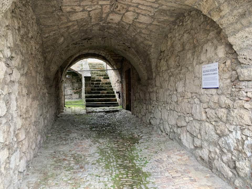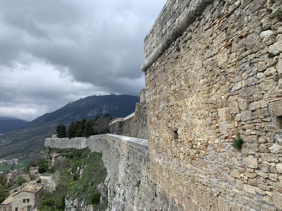 La fortezza di Civitella del Tronto, 600 metri di quota, strategica nella concezione dei confini settentrionali del viceregno di Napoli. Opera di alta ingegneria militare, ubicata su un costone carsico, è questa un’area difensiva di 25.000 mq. che si allunga sulla linea di crinale di oltre 500 metri sulle curve di livello del terreno. Ma prima della rocca Aragonese, le preesistenze medioevali nei rinvenimenti dell’edificato. Nella metà del ‘500 la definitiva costruzione della fortezza come oggi appare. Poi gli Asburgo, e infine i Borboni, l’assedio dei Francesi nel 1806 e i Piemontesi nel 1860/61. Lasciata in abbandono, saccheggiata nella sua muratura, depredata a abbattuta in parte per ricavarne materiali da costruzione per il borgo sottostante. La cortina difensiva, i camminamenti coperti, le piazze d’arme per i raduni militari, le cisterne per l’acqua, il palazzo del governatore, la chiesa di San Giuseppe, i locali della caserma dei soldati e ufficiali, la stanza della tortura e infine in museo delle Armi.