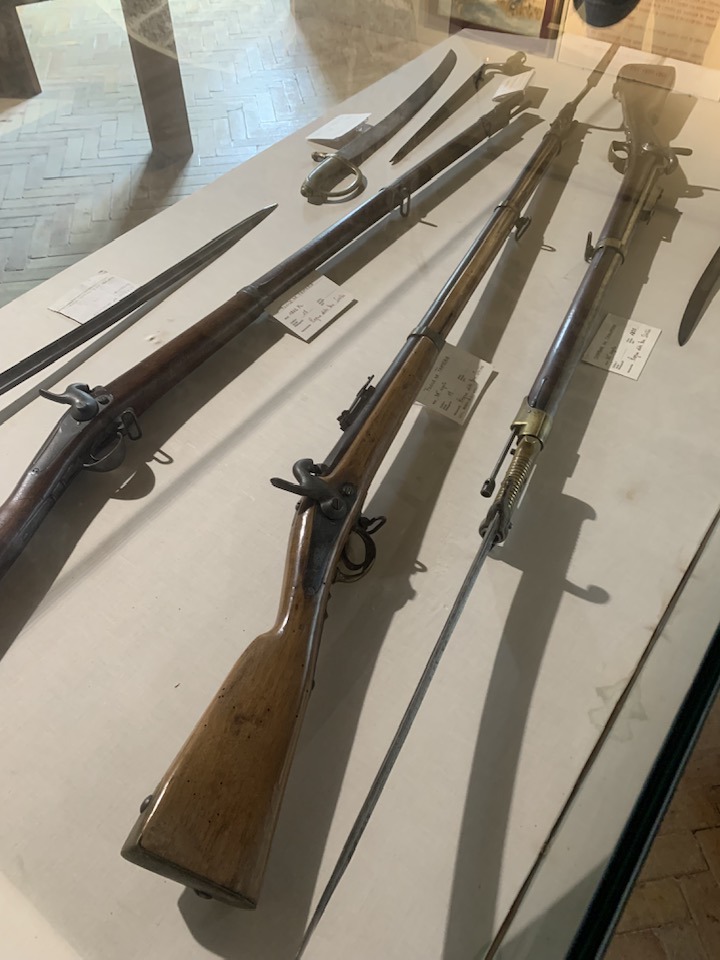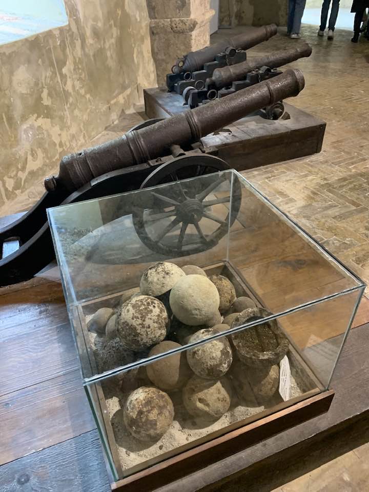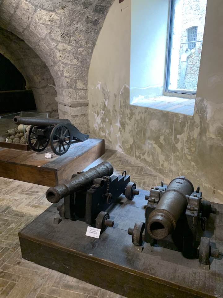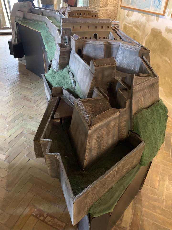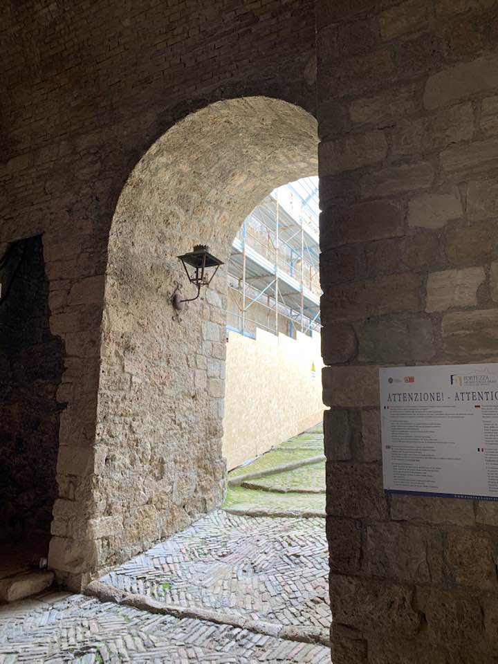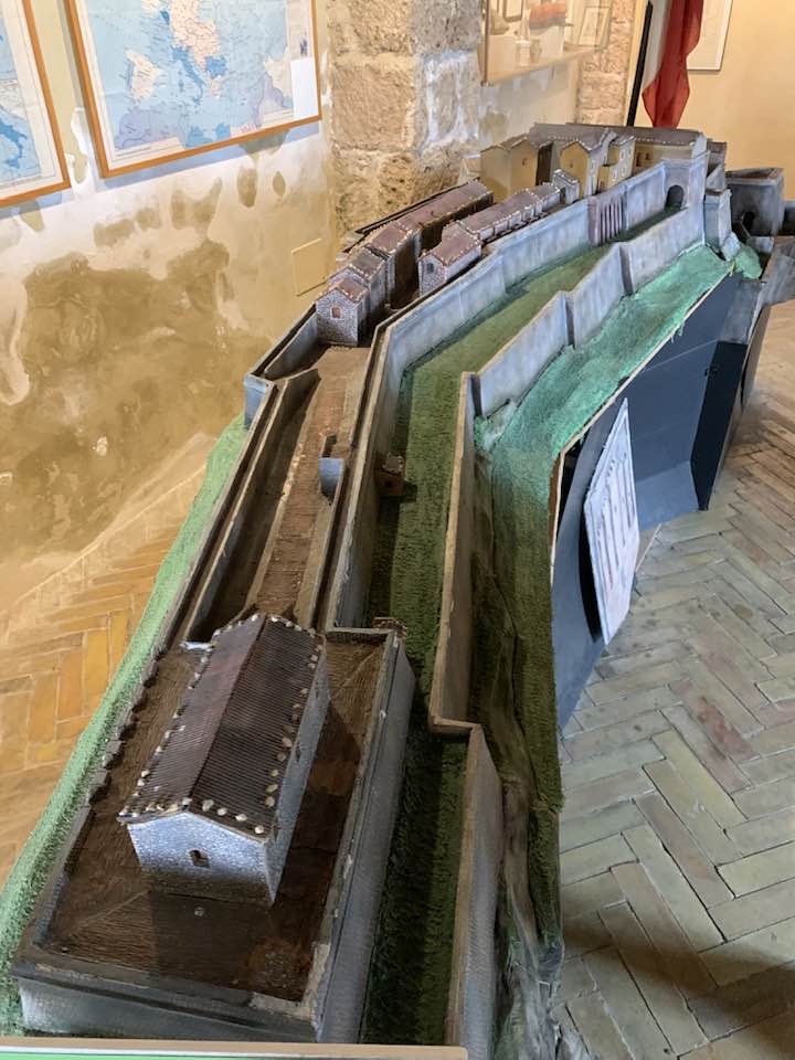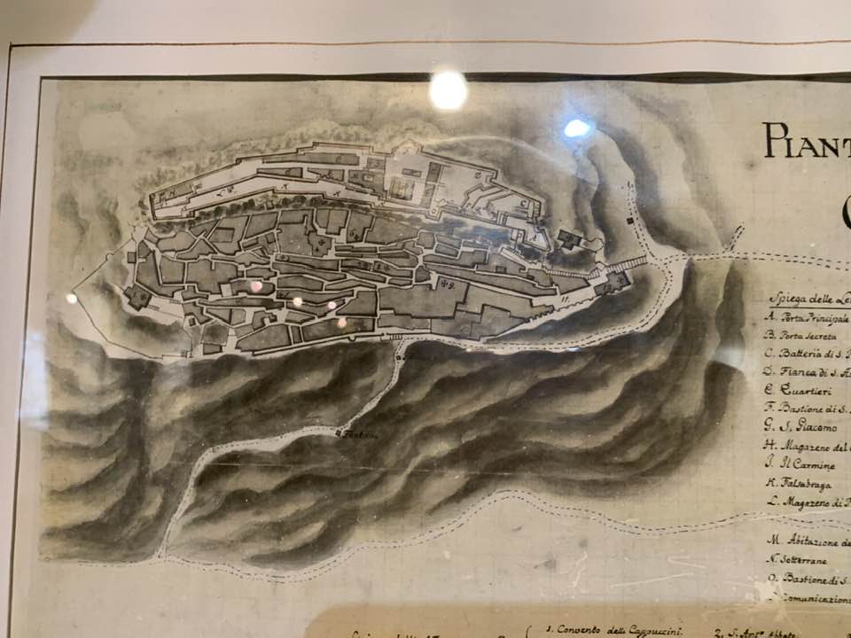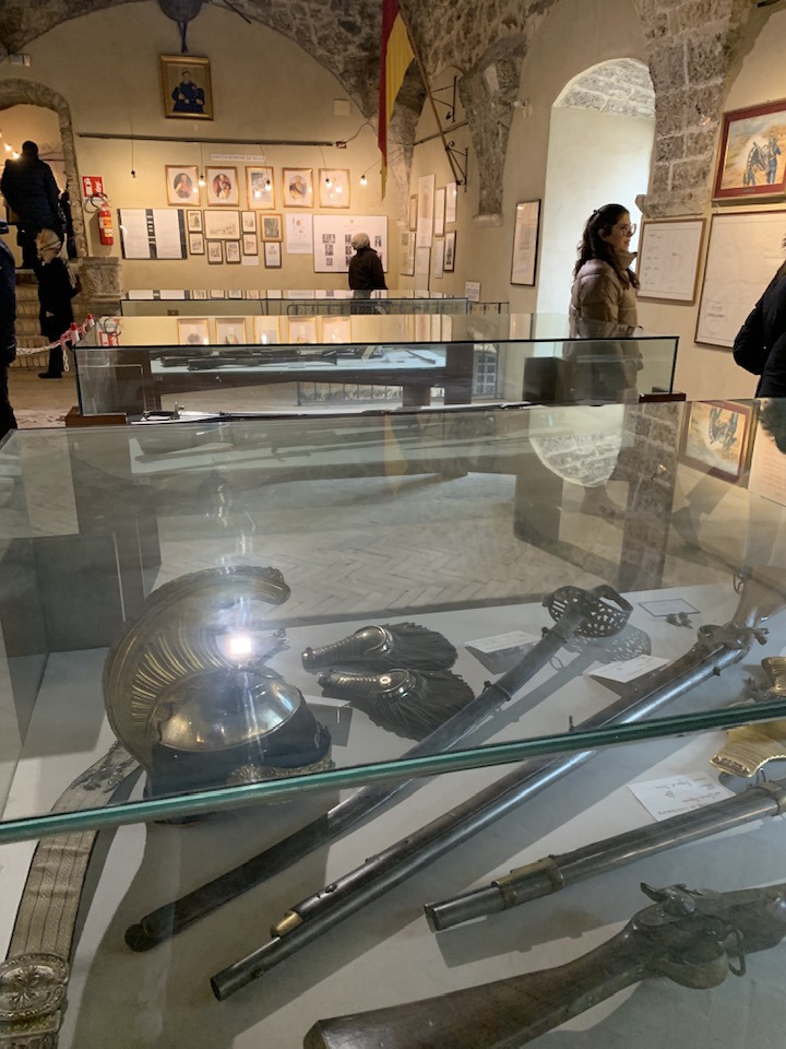 La fortezza di Civitella del Tronto, 600 metri di quota, strategica nella concezione dei confini settentrionali del viceregno di Napoli. Opera di alta ingegneria militare, ubicata su un costone carsico, è questa un’area difensiva di 25.000 mq. che si allunga sulla linea di crinale di oltre 500 metri sulle curve di livello del terreno. Ma prima della rocca Aragonese, le preesistenze medioevali nei rinvenimenti dell’edificato. Nella metà del ‘500 la definitiva costruzione della fortezza come oggi appare. Poi gli Asburgo, e infine i Borboni, l’assedio dei Francesi nel 1806 e i Piemontesi nel 1860/61. Lasciata in abbandono, saccheggiata nella sua muratura, depredata a abbattuta in parte per ricavarne materiali da costruzione per il borgo sottostante. La cortina difensiva, i camminamenti coperti, le piazze d’arme per i raduni militari, le cisterne per l’acqua, il palazzo del governatore, la chiesa di San Giuseppe, i locali della caserma dei soldati e ufficiali, la stanza della tortura e infine in museo delle Armi.