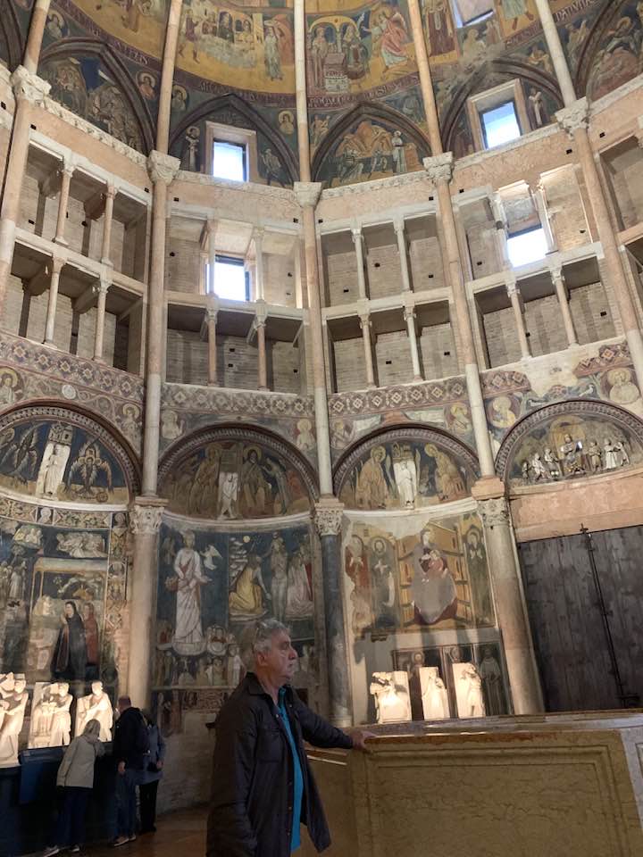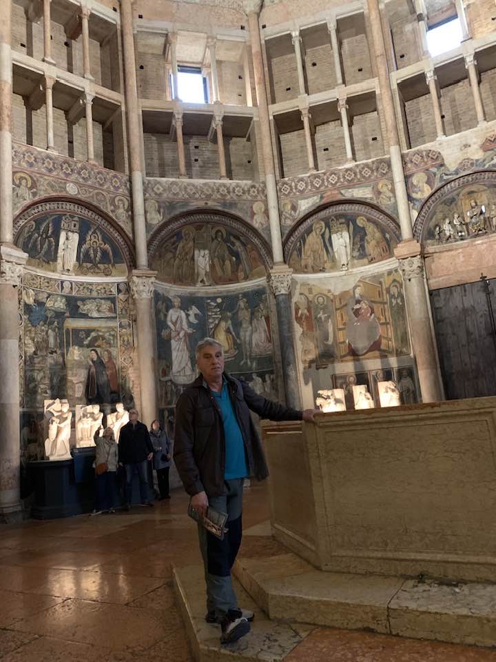 L’opera d’arte “La Madonna e il Bambino” è conservata all’interno del Battistero di Parma.