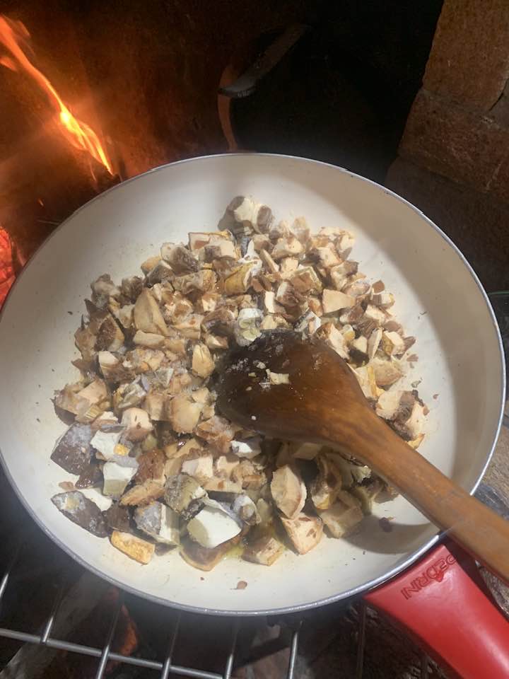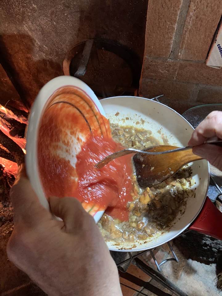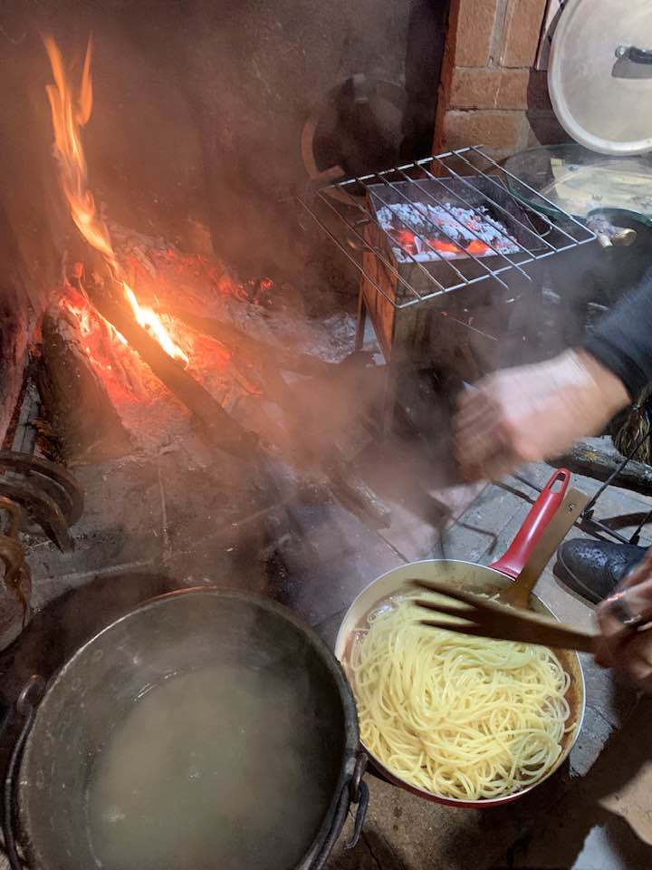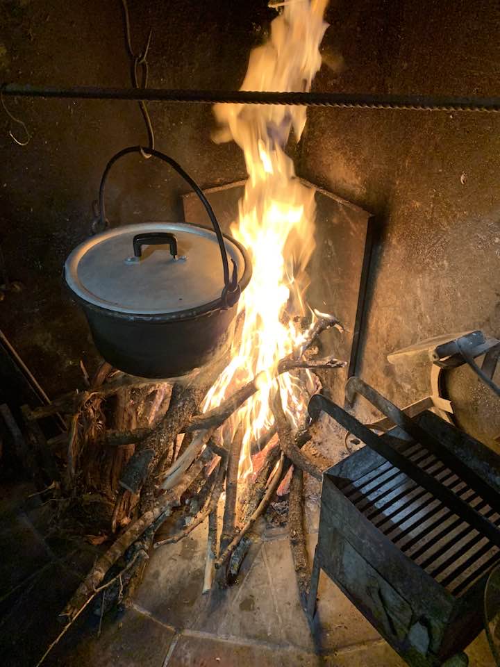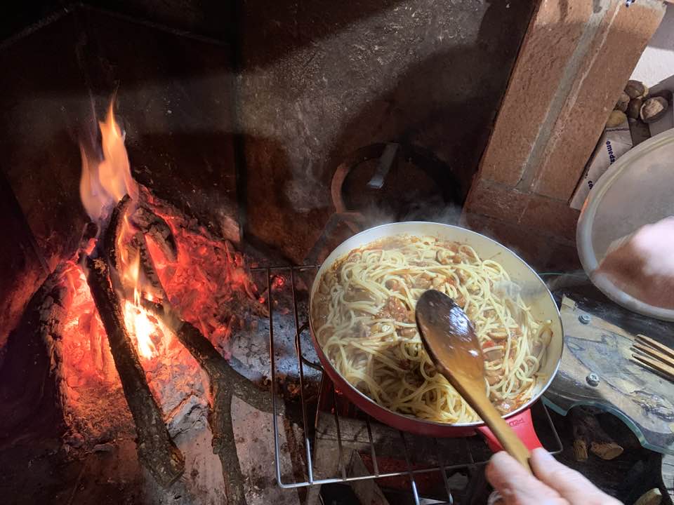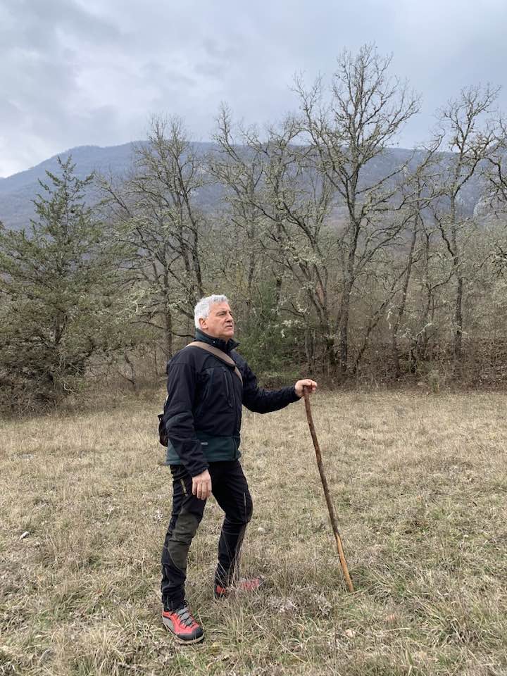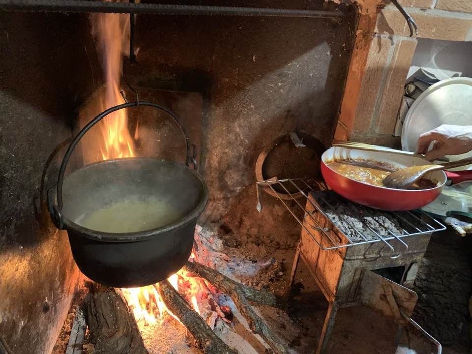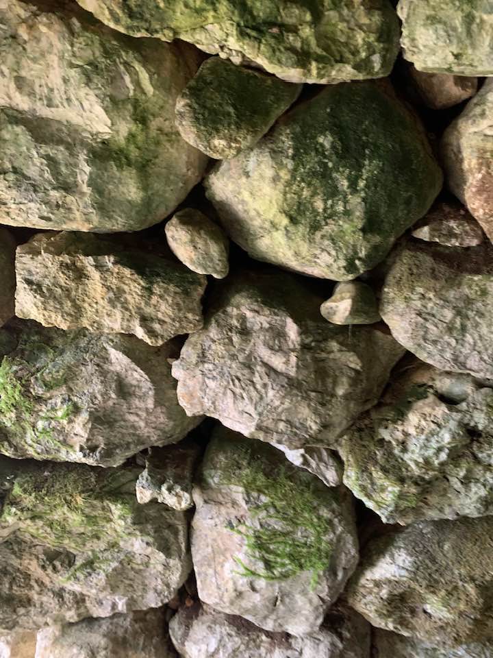 Un lembo di territorio che si appoggia alla riva occidentale del fiume Aterno, area densa di “macerine” e cumuli di pietra, risultato dello spietramento che è proprio di una particolare lavorazione del terreno, eseguita sempre in fase di preparazione del suolo a usi agricoli come le semine. Un lavoro duro, praticato nei decenni trascorsi per il miglioramento fondiario di piccoli appezzamenti, per rimuovere dal terreno pietre e grandi massi per le coltivazioni di cereali e legumi e rendere più agevole la lavorazione del suolo, quindi bonificarlo dalle pietre superficiali che venivano rimosse e accatastate seguendo un ordine ben preciso nel paesaggio agrario diffuso del Solco dell’Aterno, con un’attenzione rivolta a non occupare le aree rese così fertili dallo stesso spietramento. Con le medesime pietre si determinavano e si costruivano le capanne in pietra a cupola, composte manualmente a secco: pietre unite tra loro senza calce, con la giusta inclinazione verso l’interno della capanna che lentamente prendeva forma. La struttura si alzava a forma di cono fino alla chiusura sommitale e, per compressione tra loro, le pietre garantivano la tenuta del manufatto agricolo che non aveva smottamenti. Utilizzate per ripararsi in caso di maltempo oppure come ricovero per la notte per non tornare nelle abitazioni di Fontecchio. Dalle prime ore del giorno (“da stella a stella”, raccontano), dall’alba al tramonto, si lavoravano le terre. L’ingresso della capanna in pietra, nell’esempio osservato e rilevato (la capanna è stata costruita su uno spietramento, ma elevata in altezza), si presenta con grandi pietre che fungono da spalle (cornici e contorni, rivestimento laterale dello stipite) dell’ingresso della struttura. Due massi allungati, e forse questi sgrossati e lavorati con la mazzetta in ferro per dare una forma similare agli stessi massi, formano così una cuspide che, anch’essa per compressione, mantiene l’ingresso ben congiunto, anche con la spinta verso il basso che esercitano le grandi pietre poste sopra le due forme cuspidali citate che si osservano appunto sul frontale della capanna: danno in altezza l’accesso verso l’interno. In altre capanne della zona, l’ingresso è con pietre architravate. La struttura in pietra a secco poteva ospitare anche tre persone che prendevano posto nel perimetro interno della stessa capanna in pietra. La terra e il muschio, infine, hanno rivestito nel corso dei decenni la parte sommitale del ricovero. L’orientamento dell’ingresso della capanna era rivolto verso i campi coltivati. L’interno della capanna presenta le pietre abbastanza livellate tra loro che formano, infine, una cortina ben uniforme. Lo spietramento dei campi era complesso: le pietre venivano ammassate su un fronte che doveva restare compatto e non scivolare sui terreni. I massi venivano incastrati sapientemente e con perizia tra loro, fino a creare un vero muro di sostegno, e poi si procedeva a scaricare i massi sulla sommità che si allargava ed oggi è ricoperta da muschio, mentre il perimetro murario del fronte dello spietramento si allungava e scendeva, seguendo l’andamento inclinato del suolo. I contadini delle aree contigue e confinanti, che coltivavano i campi, scaricavano i massi su un unico spietramento comune, e per questo si osserva una serie di spietramenti su tutto il paesaggio di “Colle Caio”. Lo spietramento, tuttavia, era considerato una pratica manuale comune e diffusa nella rimozione dei massi, storicamente eseguita a mano, estremamente difficoltosa e pesante nel lavoro dei fondi agricoli. Le pietre venivano trasportate con le ceste fino al luogo di deposito oppure a braccia nude, e formavano cumuli che crescevano in altezza ai bordi dei campi coltivati, come si osserva nel territorio alle pendici di “Colle Caio” (Colle Caldo) preso in esame. Vicino a questi terreni, in un fosso scavato, una nicchia con una sorgente rara e preziosa per tutto il versante, ancora adesso, dalla quale prelevavano l’acqua i contadini con un contenitore e una corda che scendeva nel fosso. Fino agli anni ’60 del Novecento, si racconta, l’acqua del fiume Aterno si poteva bere. L’ingresso della capanna in pietra a secco veniva protetto contro gli animali selvatici, soprattutto la notte, con i rovi intrecciati. Infine, il cibo, preparato in una “casetta” nell’immediato borgo di Fontecchio con i prodotti locali, veniva cotto nel fuoco del camino, come vuole la tradizione locale.