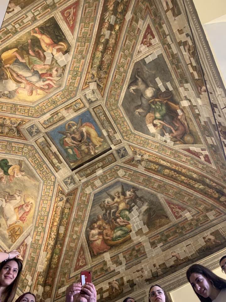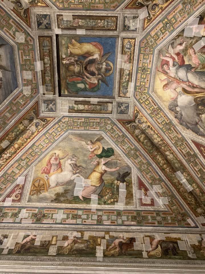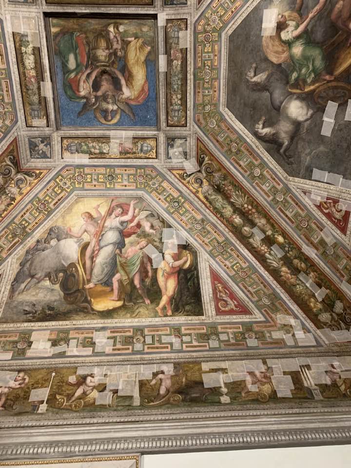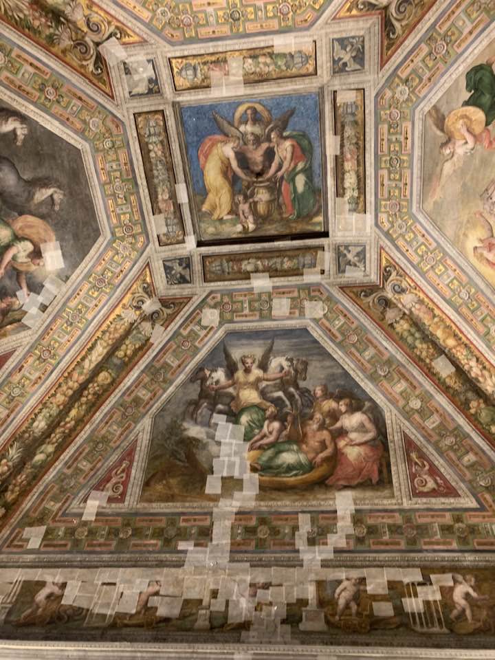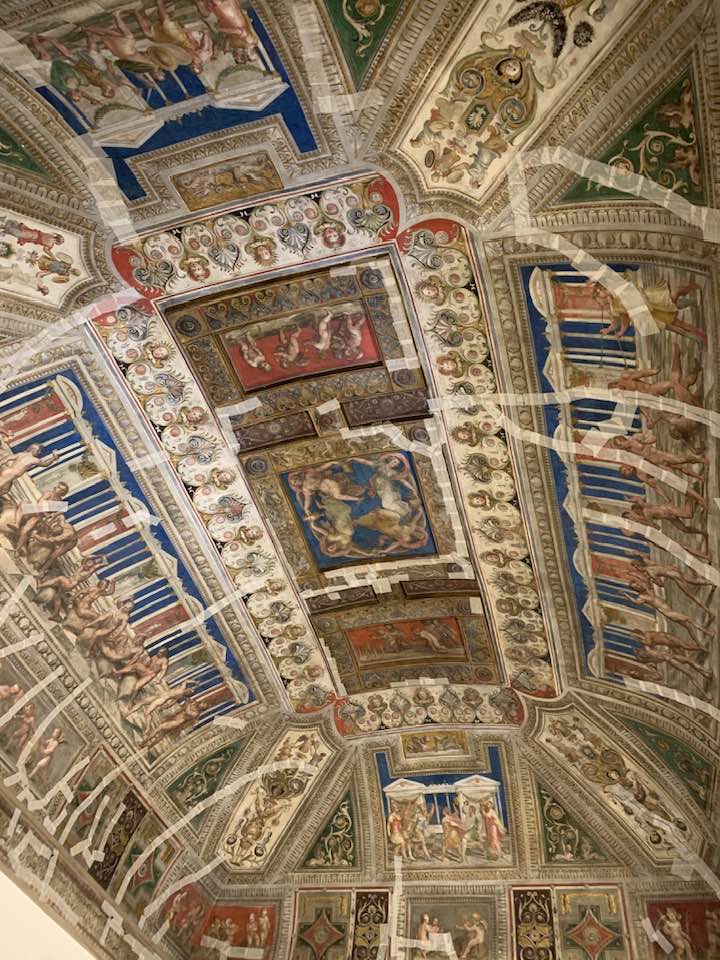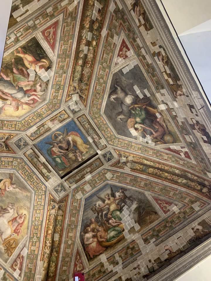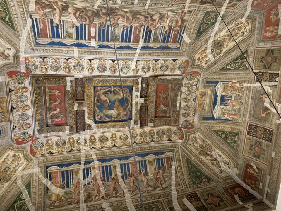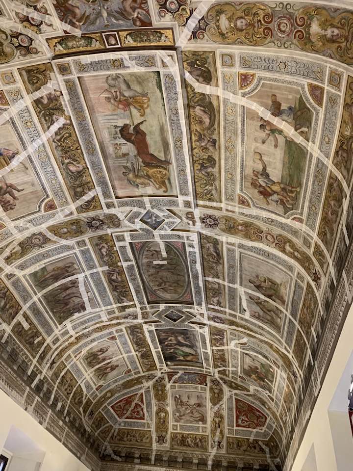I soffitti del Castello Estense di Ferrara. Dal Rinascimanto all’Ottocento. I miti classici che si rincorrono nella Sala dell’Aurora, i soffitti a cassettoni, la policromia della pittura, le allegorie tanto richieste nella cultura del Rinascimento, la Sala del Governo e la Sala dei Veleni. L’illusionismo nella Sala dei Paesaggi. Decorazioni, visioni trascedentali di forme in una esistenza mitica non riconducibile alle determinazioni dell’esperienze umane: il “sogno”, dove vorremmo essere. L’apoteosi della pittura ma molto di più nei soffitti dipinti a “Grottesco”, lo stile decorativo parietale rinascimentale.